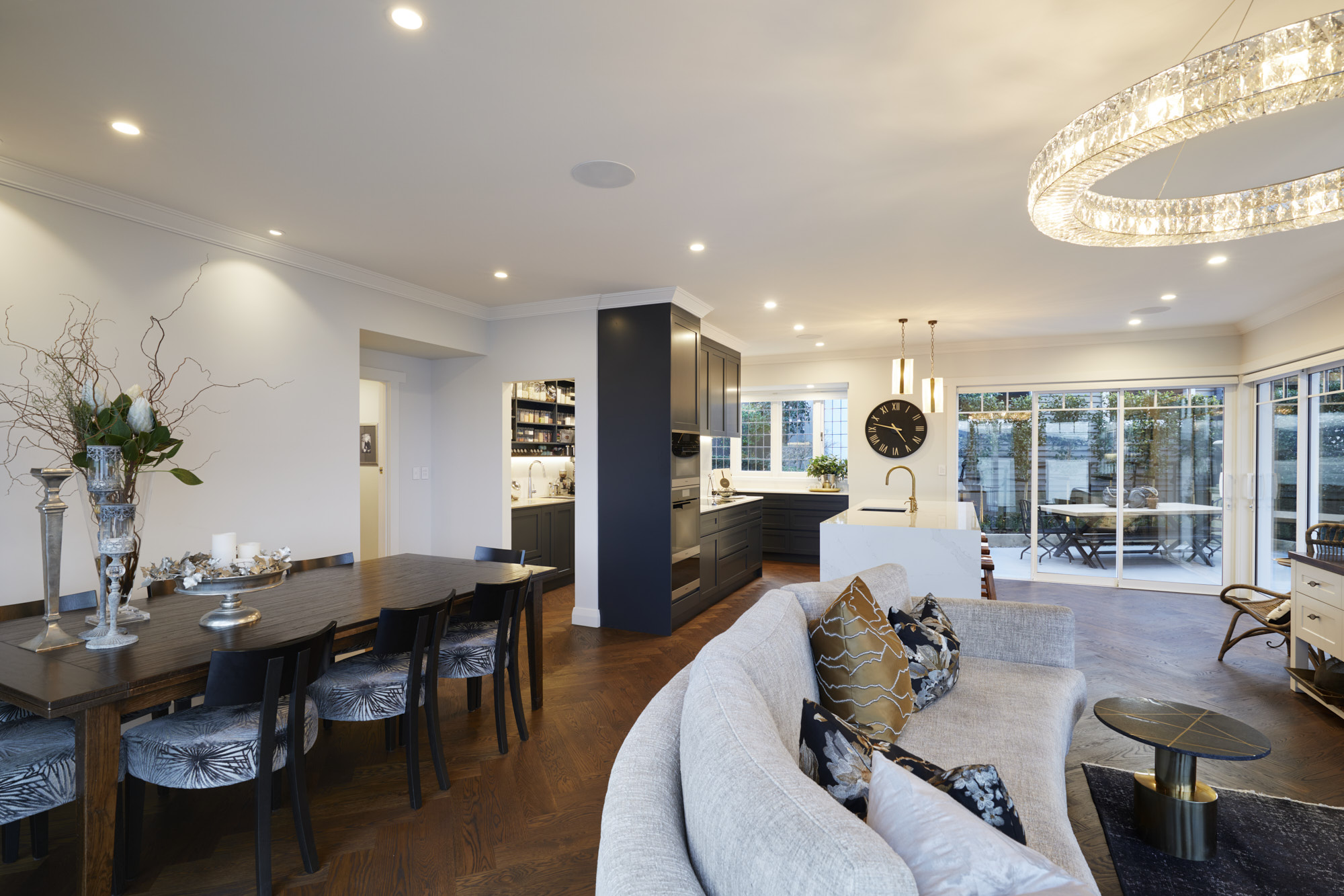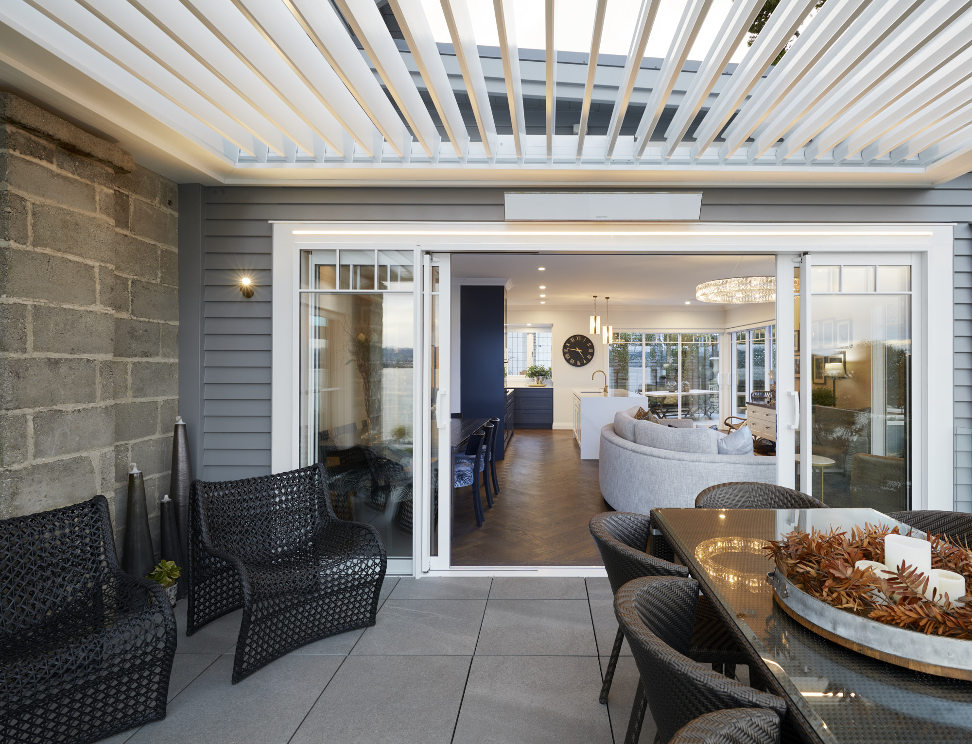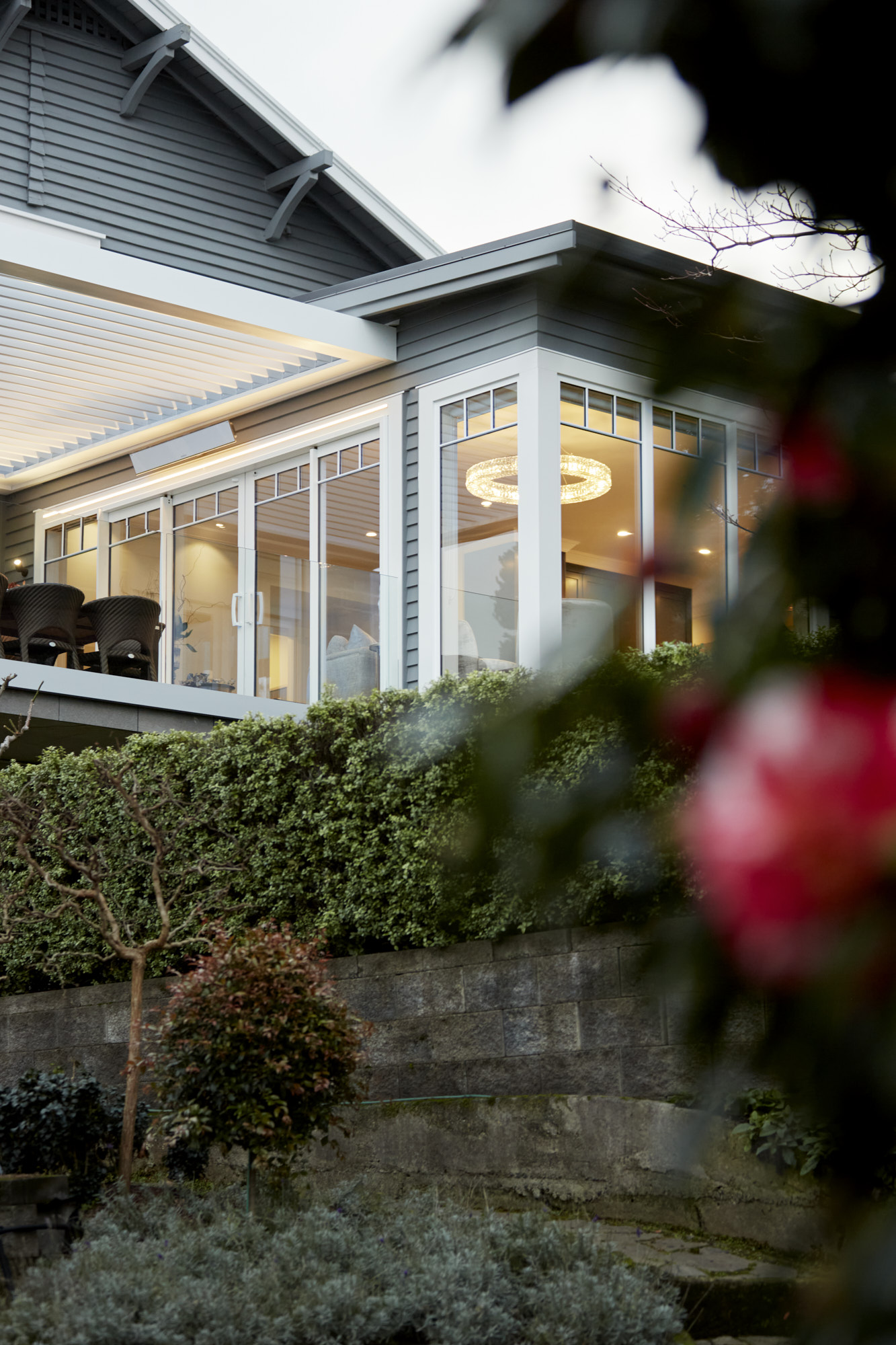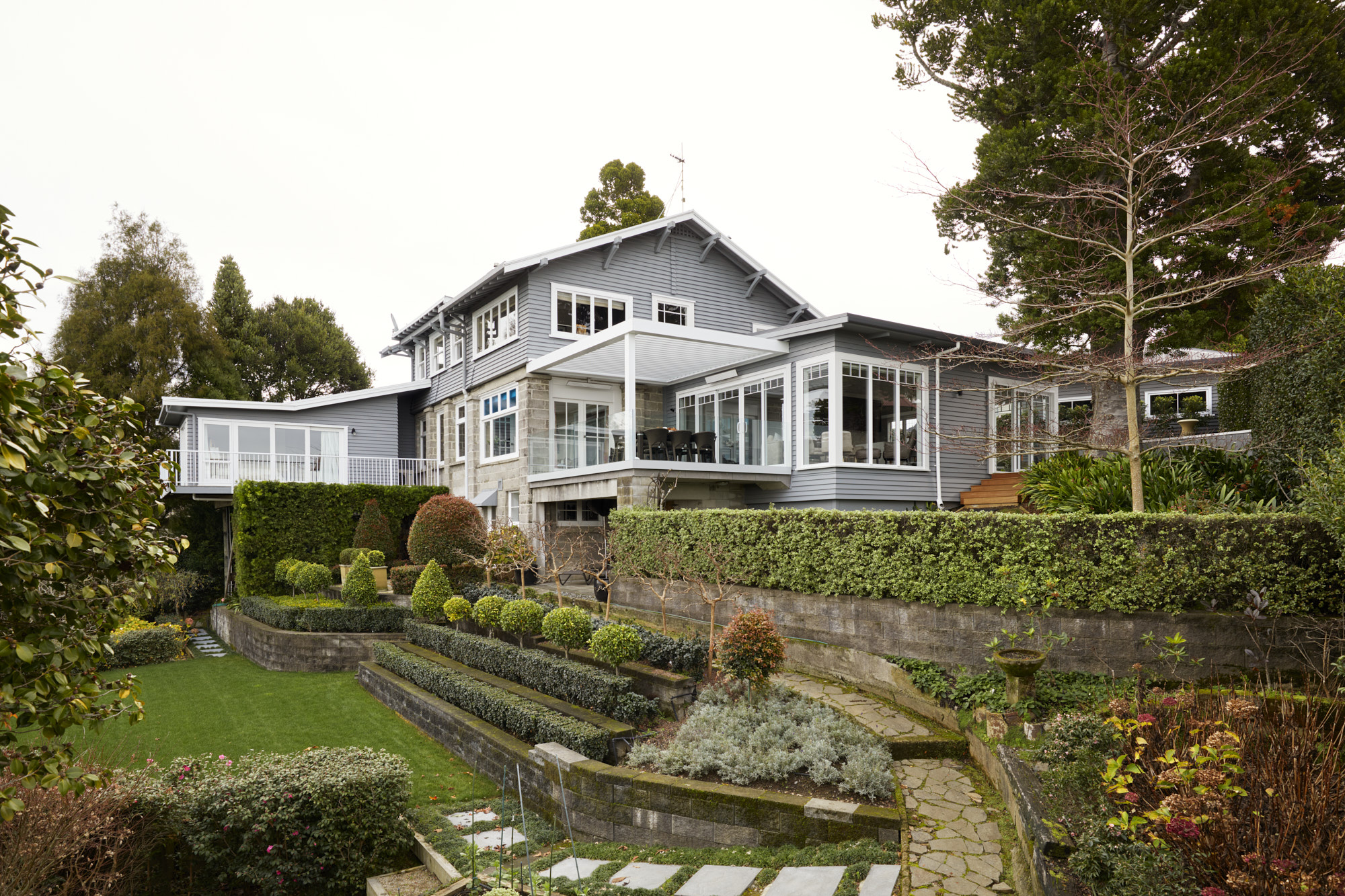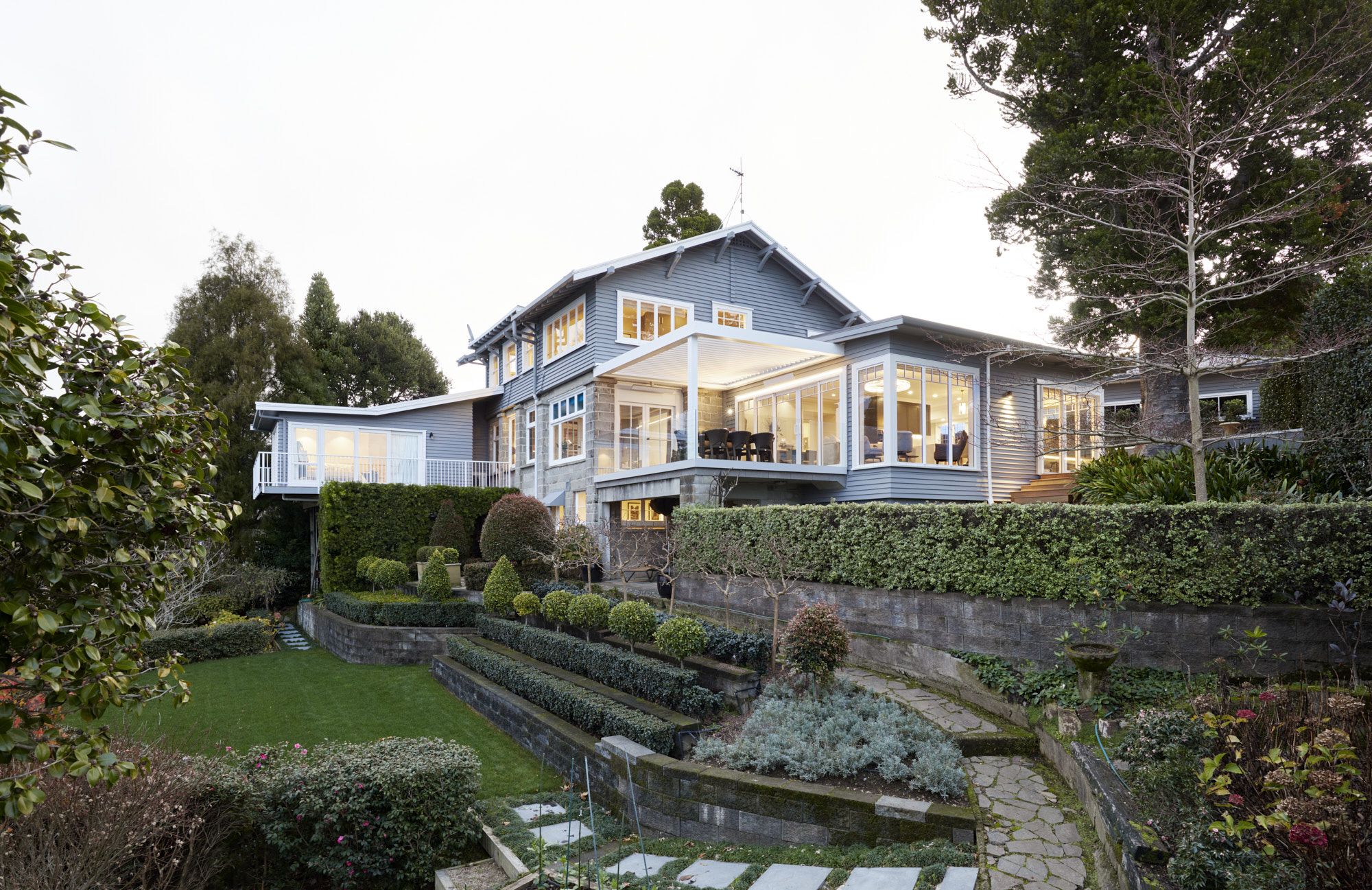 A sympathetic approach was needed to renovate and extend this beautiful character house built more than a century ago. So, the owners, former clients of Calley Homes, called in the building firm to carry out the sensitive project – an addition with living and entertaining spaces, inside and out. The renovation included an open-plan kitchen with scullery, plus dining spaces that seamlessly link to two outdoor areas. The first, a louvre-covered deck leading off the dining room, is an alfresco delight serving up views of Tauranga harbour. The other is a sheltered patio leading off the kitchen and set into the hillside. Inside, parquet timber flooring has been added and a kitchen – heritage in style and colour, but with all the modern advantages – has been installed. This is at the centre of the new space and features lighting that brings a sense of drama and wow-factor. Every detail here has been carefully considered and crafted – even the new architectural windows had to fit with the originals. It’s clear the heritage home has been given the love and respect it deserves, and no stone has been left unturned.
