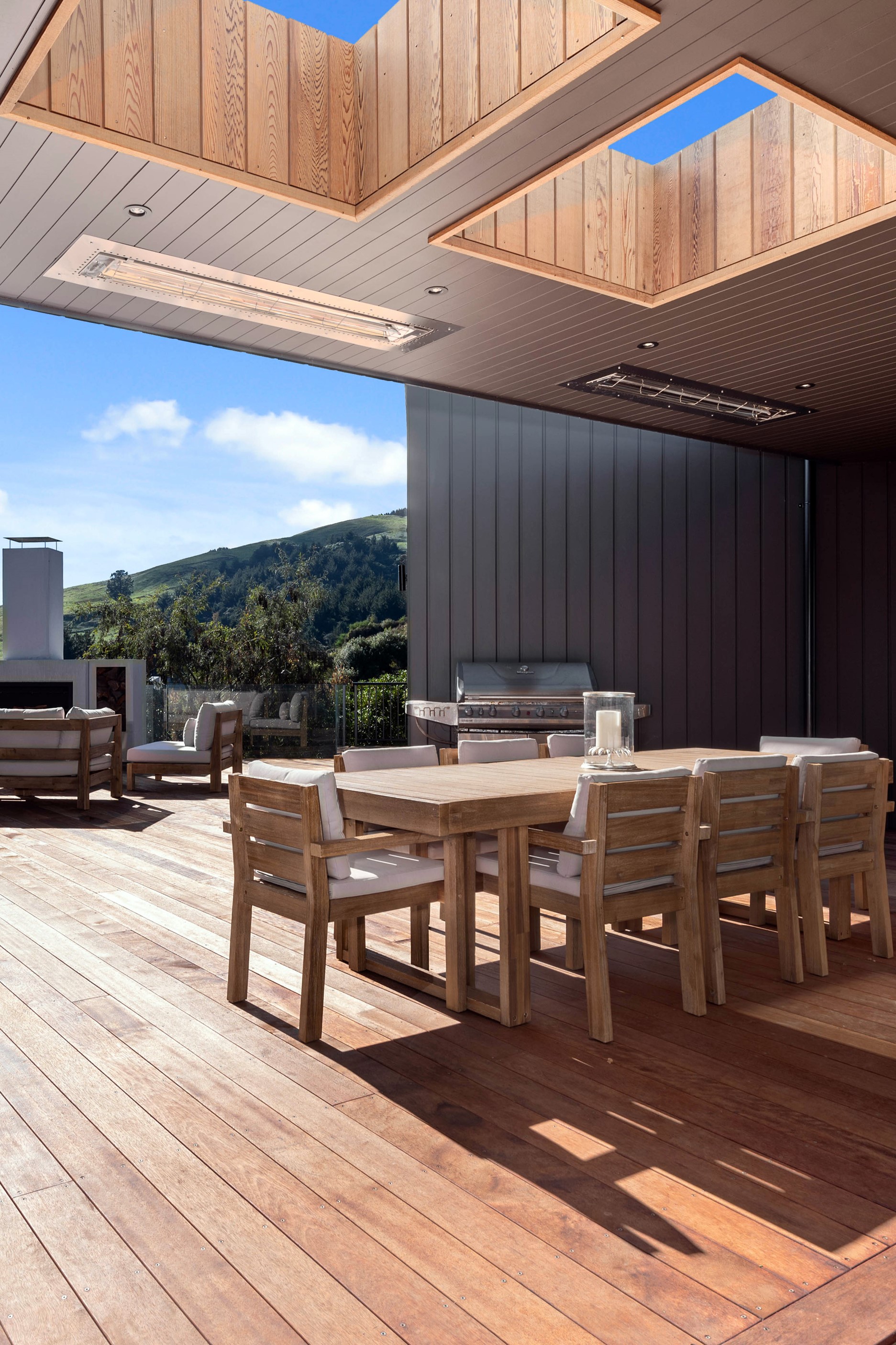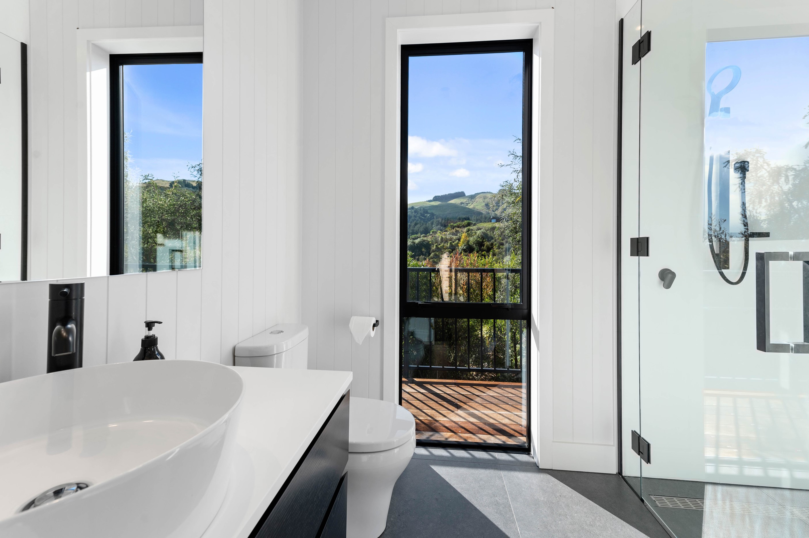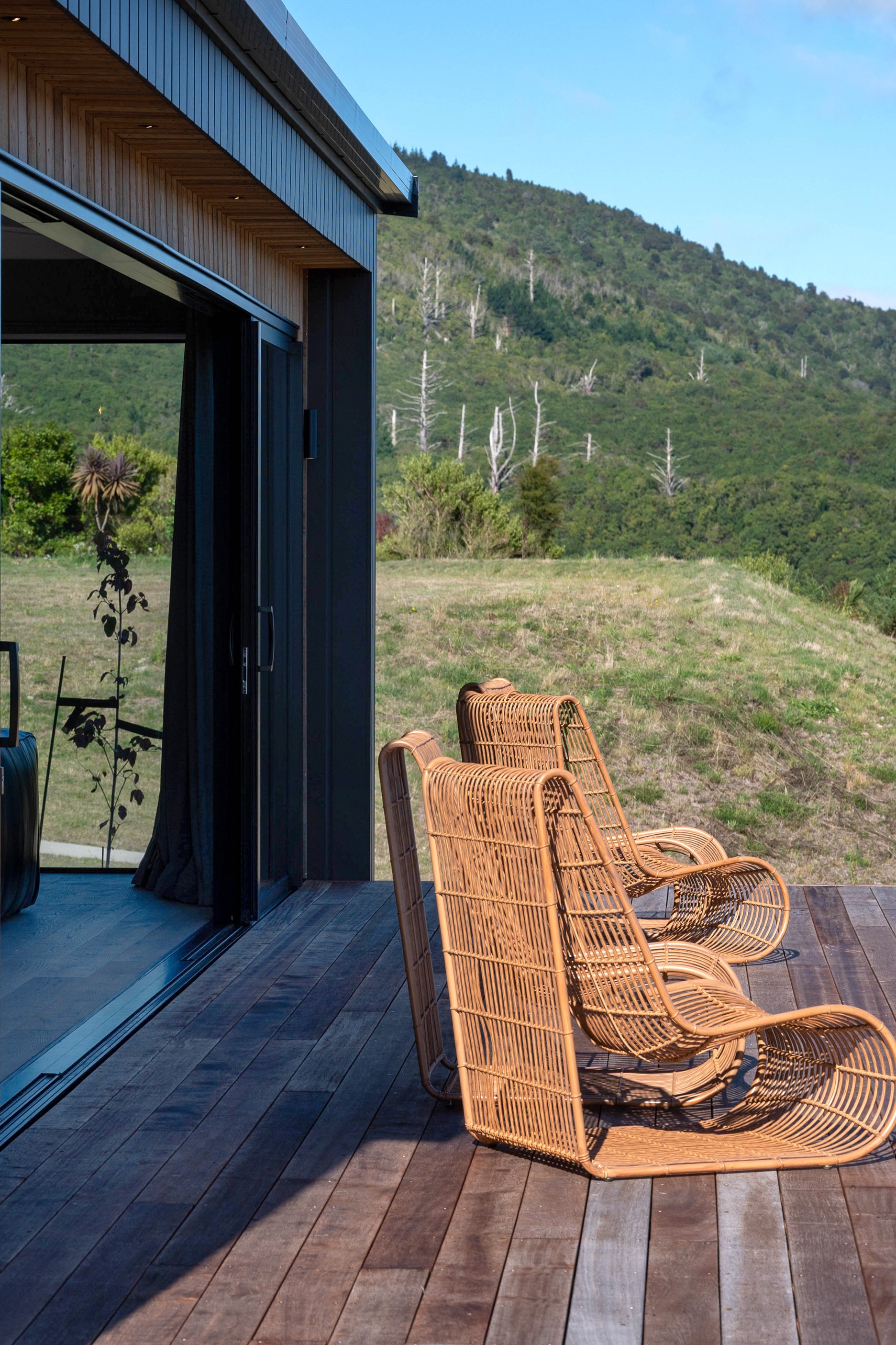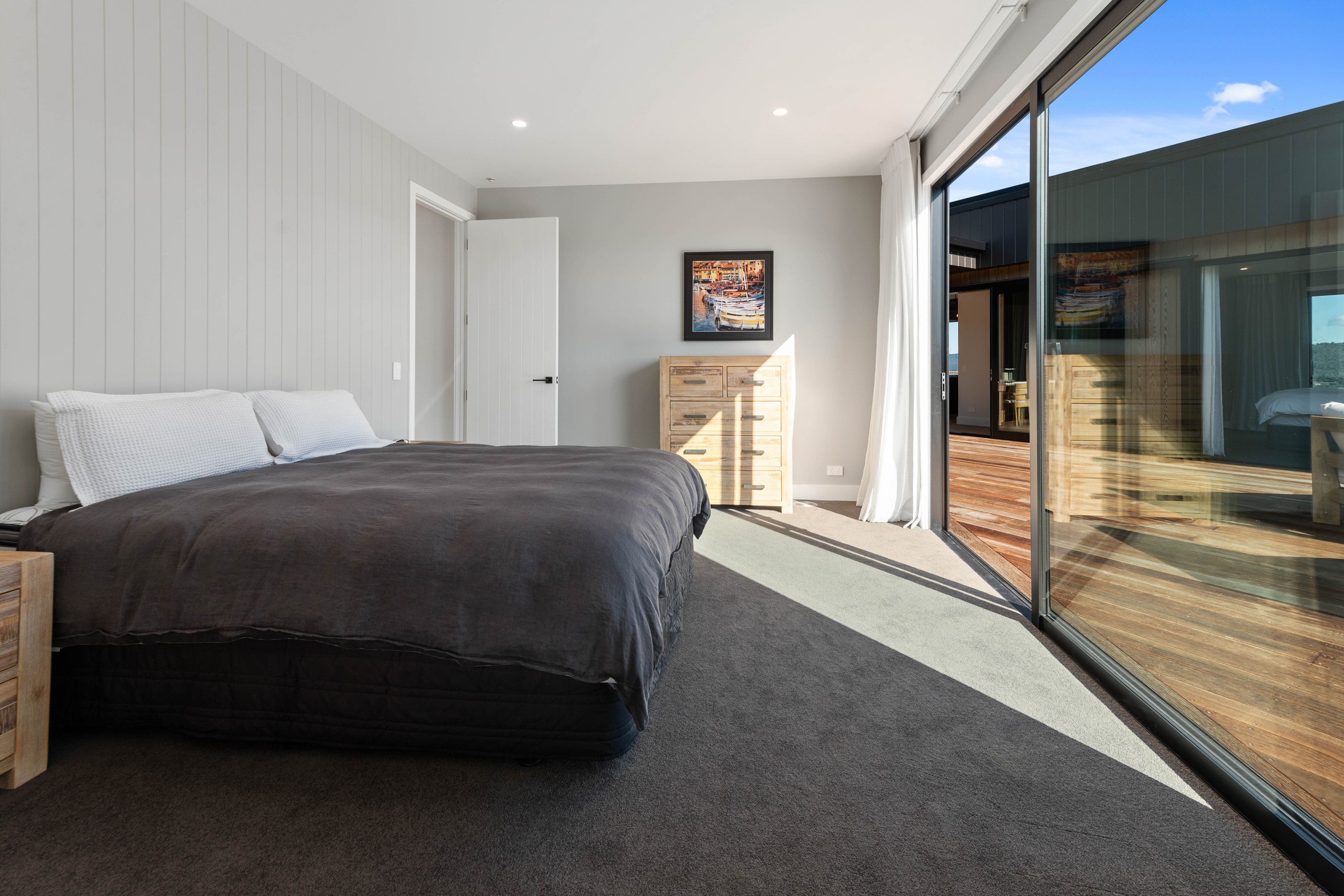 At first glance, this house is a stunner, its dark, woody exterior juxtaposed against the shades-of-green landscape and blues of Lake Taupō. On closer inspection, you’ll find plenty more features that take the 302sqm home to the next level. One of the major drawcards is a 240sqm wrap-around timber deck with an outdoor fire and bath. Is there a better, more tranquil place from which to enjoy the panoramic views of land and lake? And because part of this sprawling terrace is covered, rainy weather is never an issue. Inside, you’ll find four bedrooms, three high-end bathrooms and two living areas. Almost every room has a view and dark cabinetry creates a moody style. The living area, combined with a cleverly designed kitchen and scullery, make it a natural for entertaining. A blackened steel fireplace anchors the main living space, creating a dramatic but cosy effect and an extra-large glass sliding door maximises that remarkable view. Nothing has been left to chance in this light, airy and sunny architectural home, from the way it occupies its site to the many special features within.