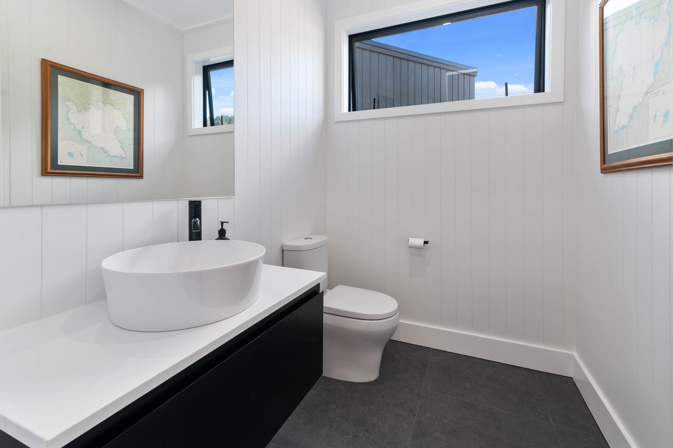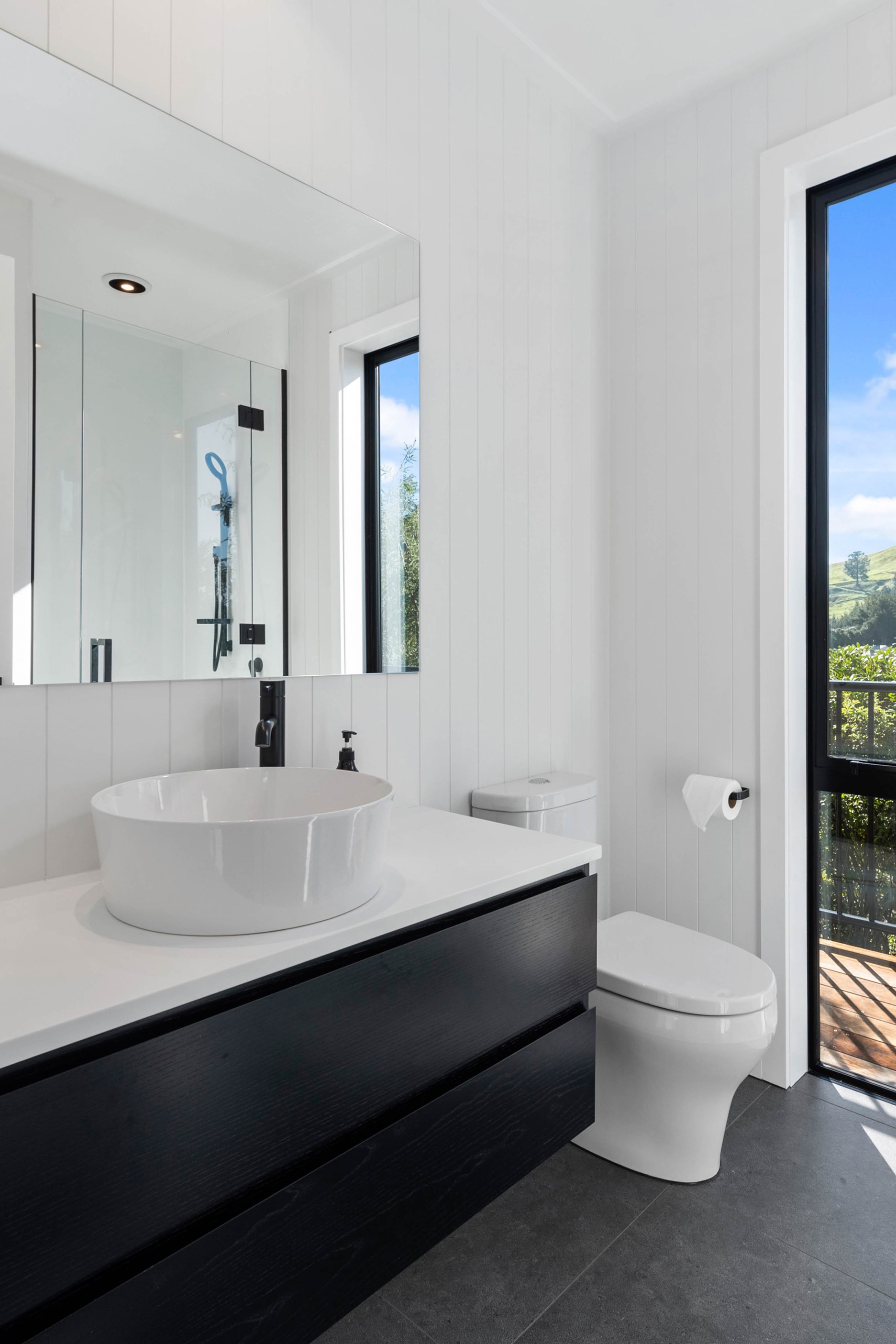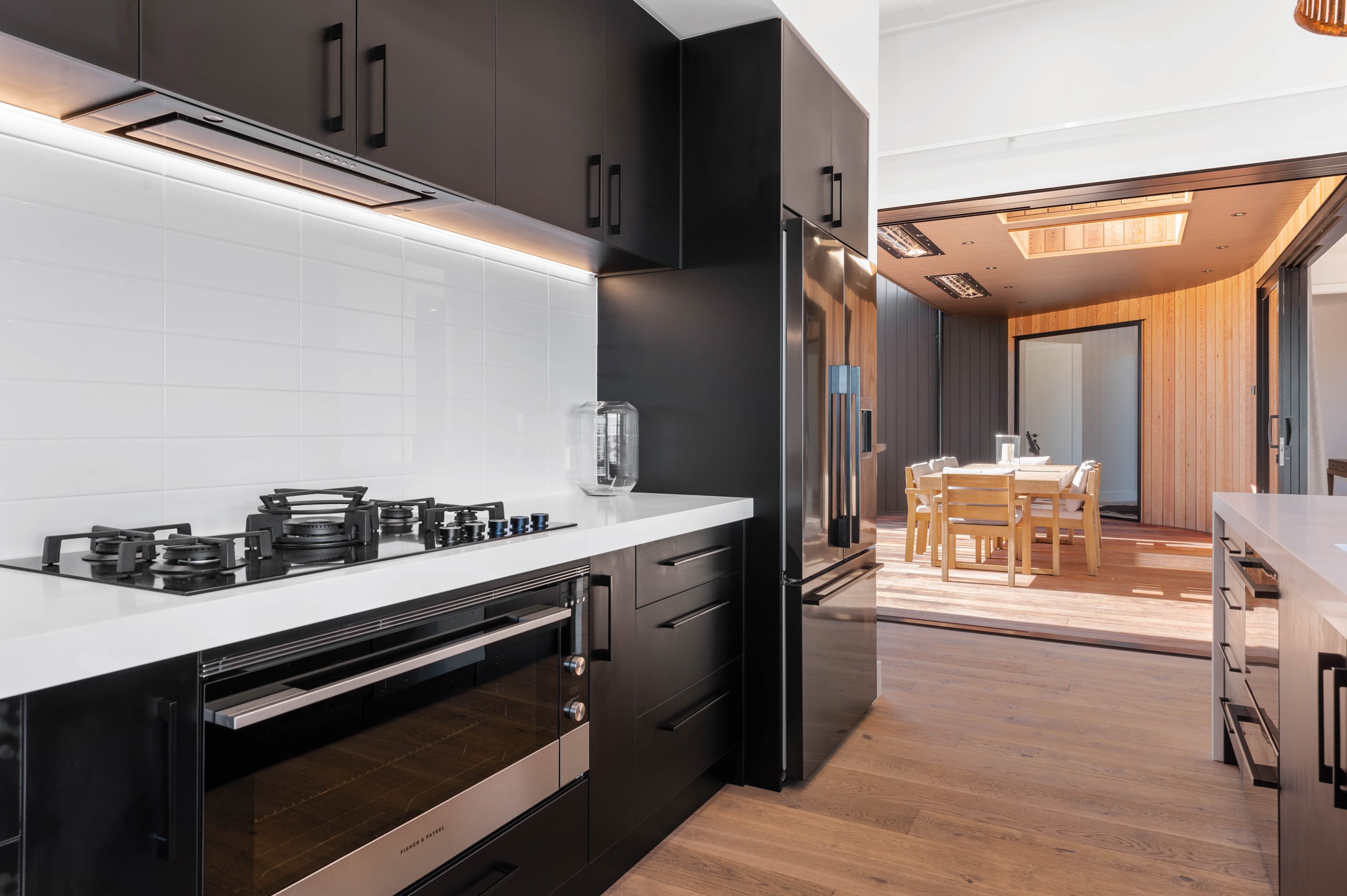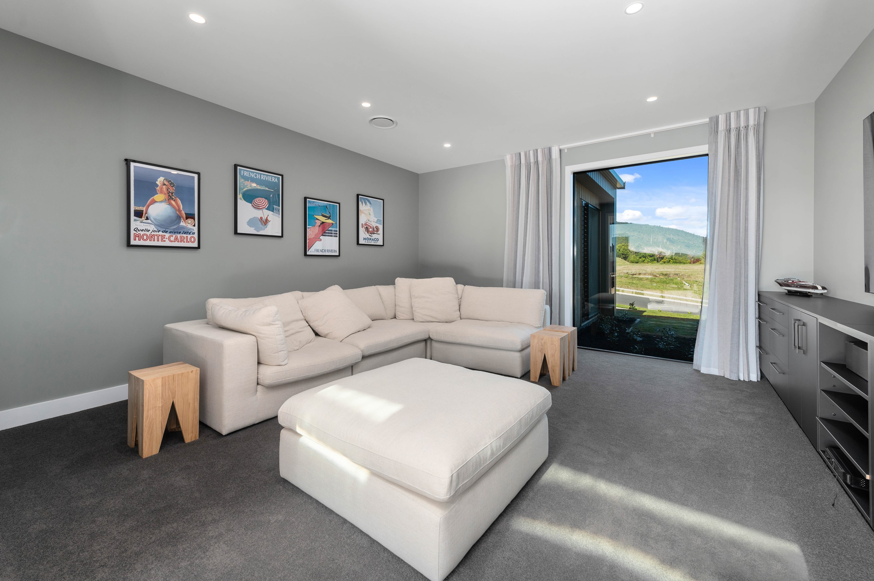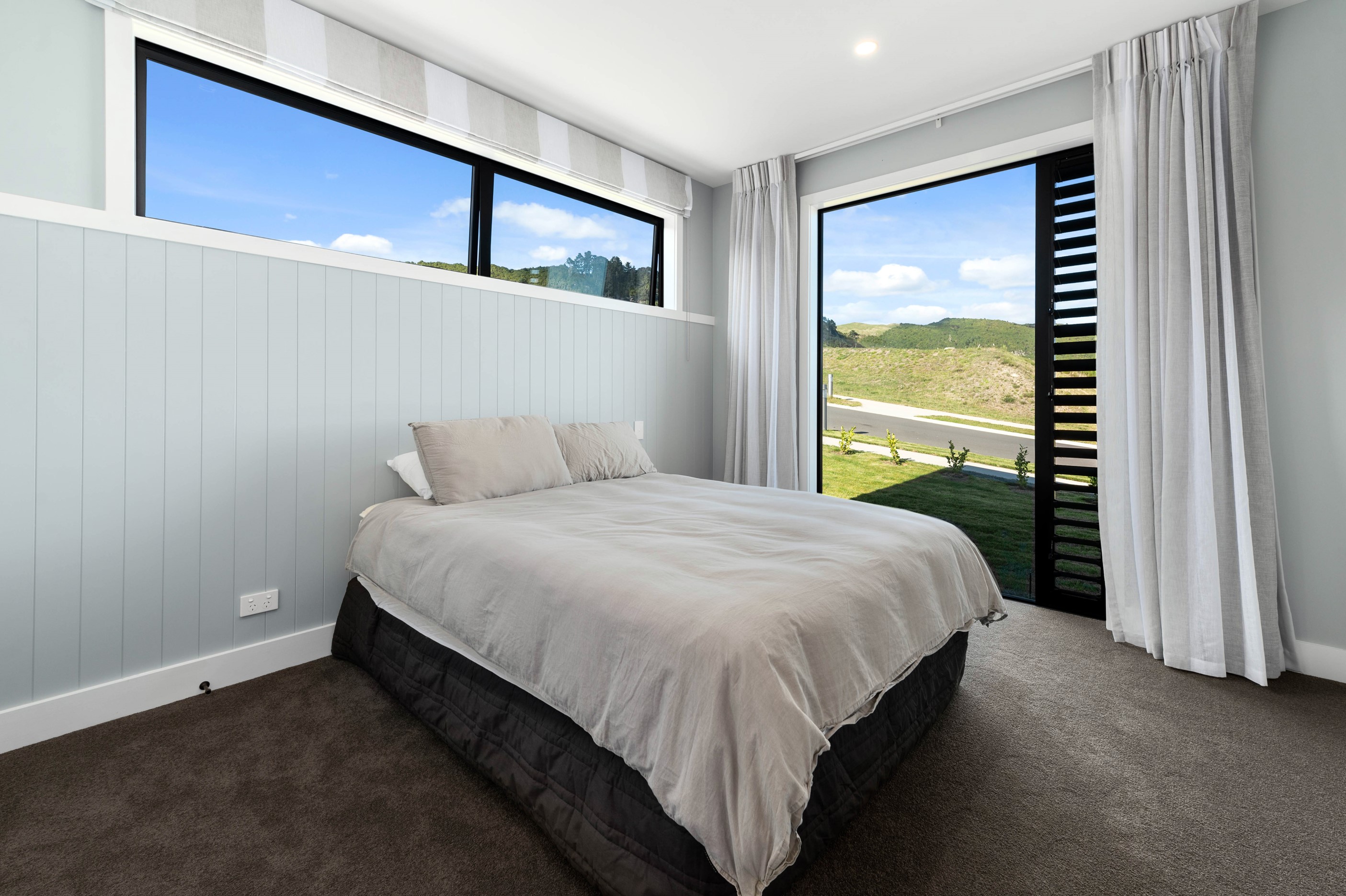 At first glance, this house is a stunner, its dark, woody exterior juxtaposed against the shades-of-green landscape and blues of Lake Taupō. On closer inspection, you’ll find plenty more features that take the 302sqm home to the next level. One of the major drawcards is a 240sqm wrap-around timber deck with an outdoor fire and bath. Is there a better, more tranquil place from which to enjoy the panoramic views of land and lake? And because part of this sprawling terrace is covered, rainy weather is never an issue. Inside, you’ll find four bedrooms, three high-end bathrooms and two living areas. Almost every room has a view and dark cabinetry creates a moody style. The living area, combined with a cleverly designed kitchen and scullery, make it a natural for entertaining. A blackened steel fireplace anchors the main living space, creating a dramatic but cosy effect and an extra-large glass sliding door maximises that remarkable view. Nothing has been left to chance in this light, airy and sunny architectural home, from the way it occupies its site to the many special features within.