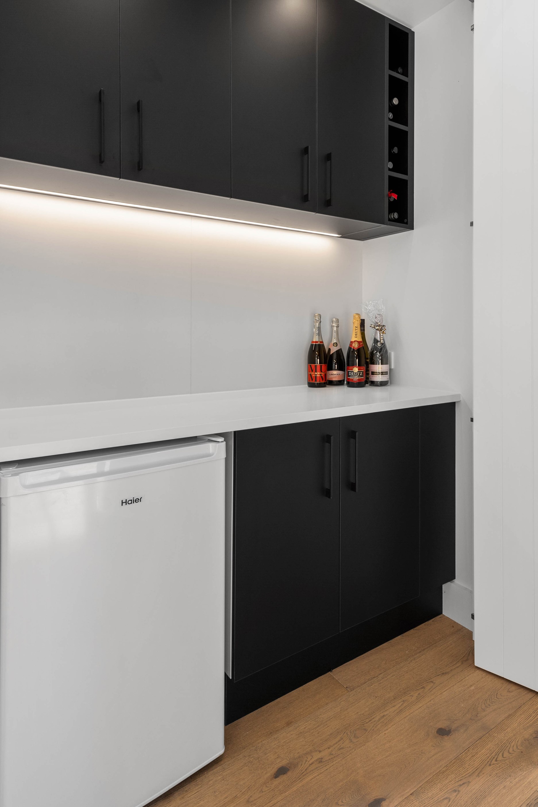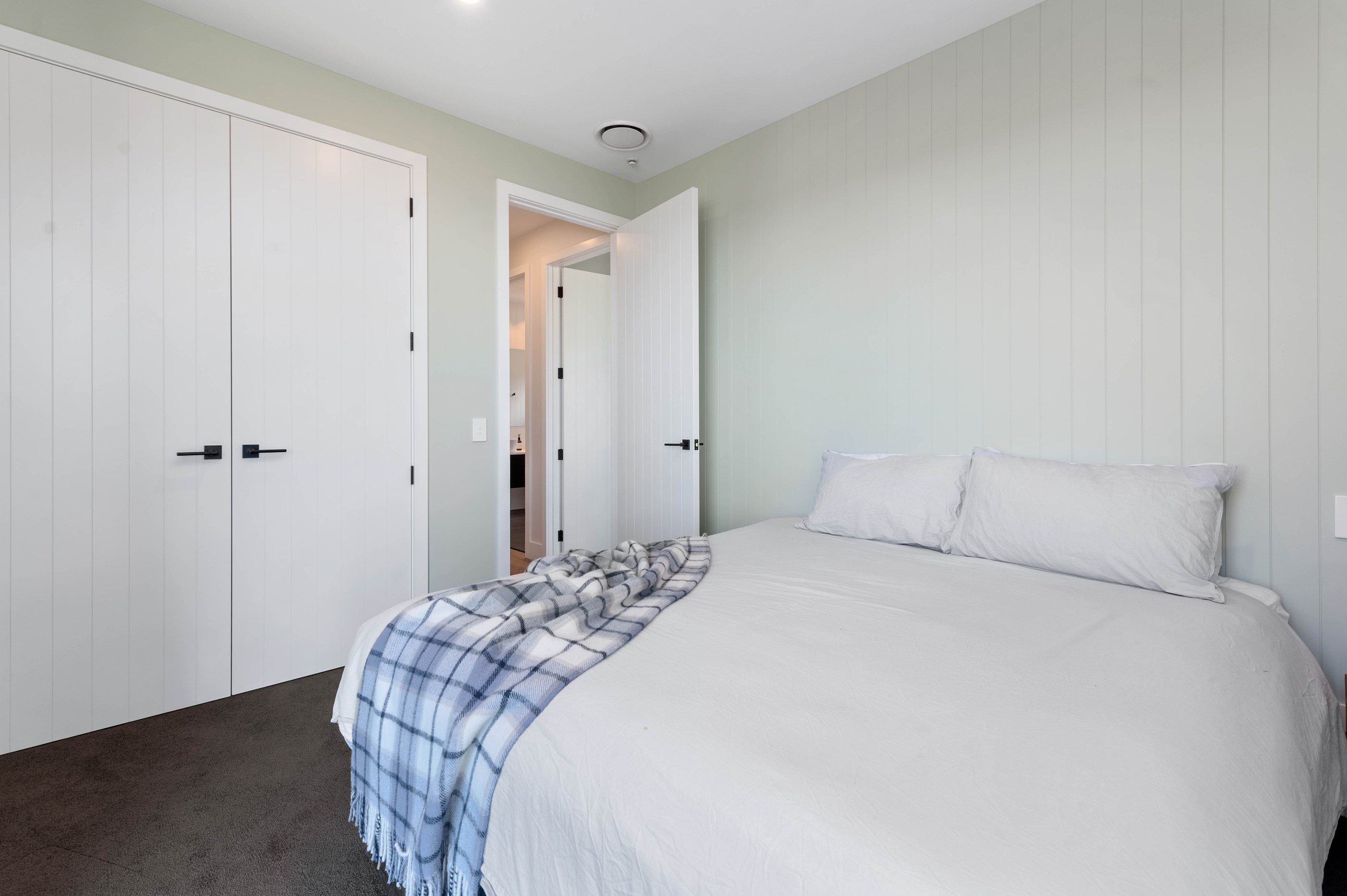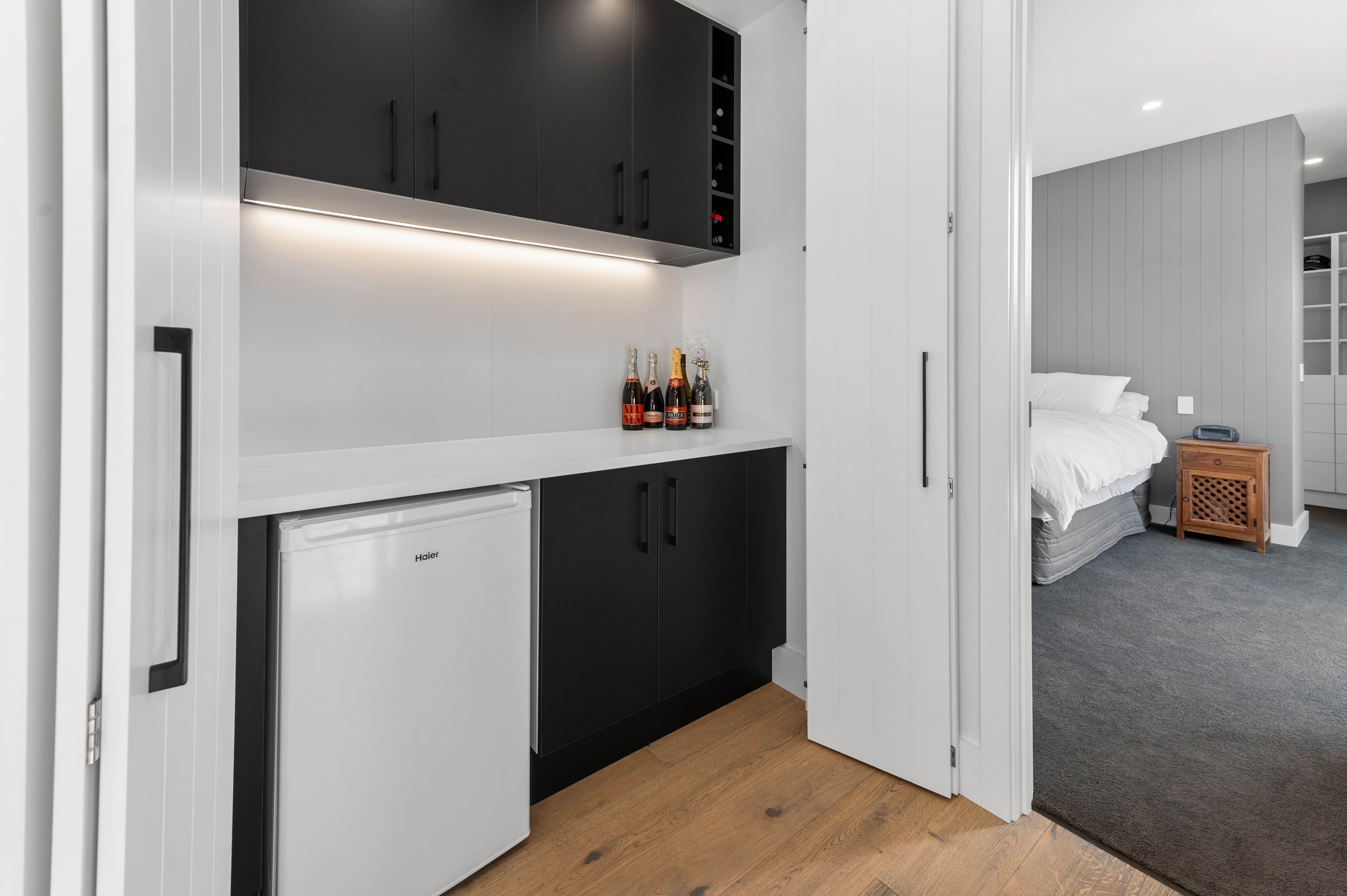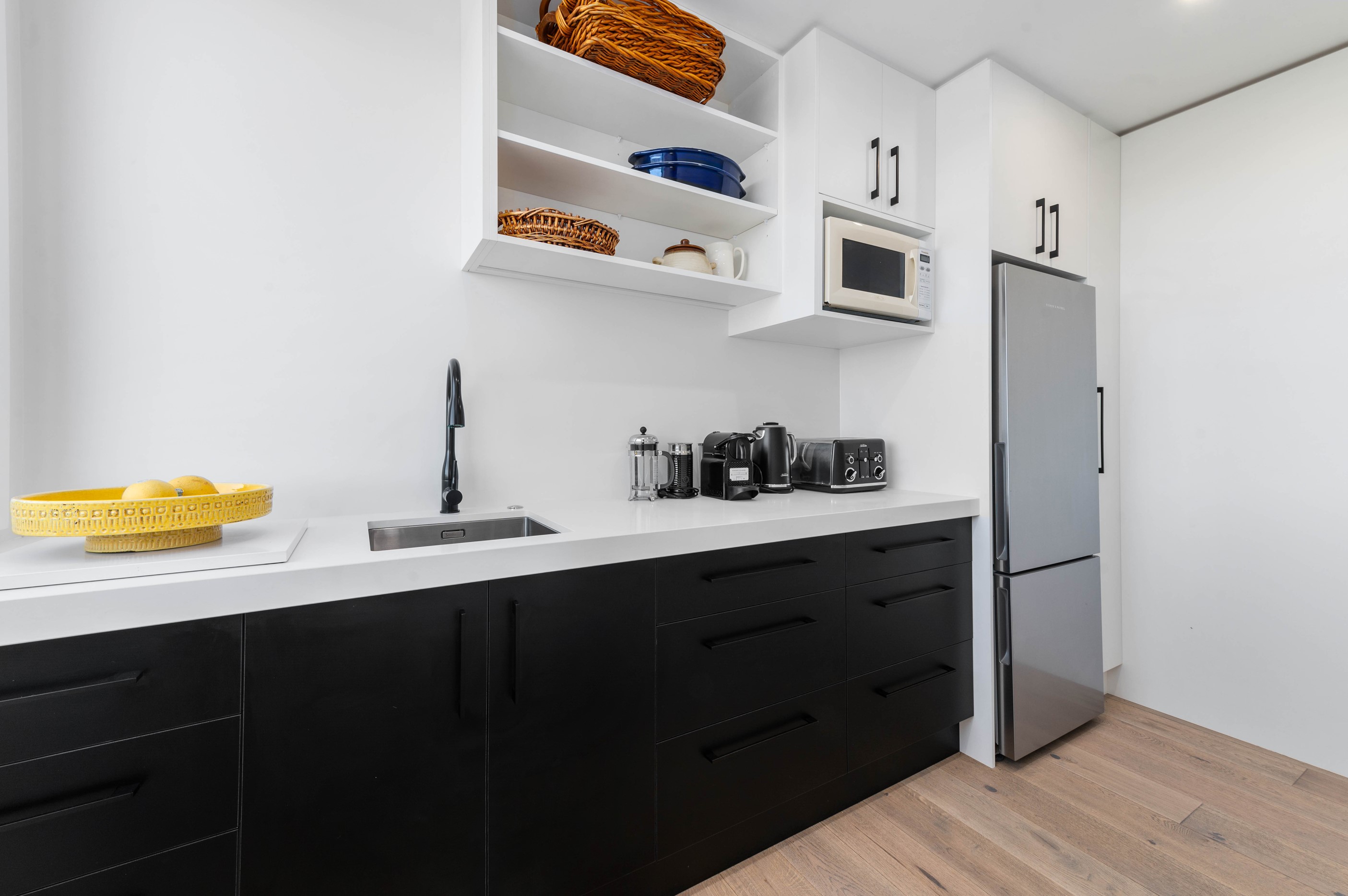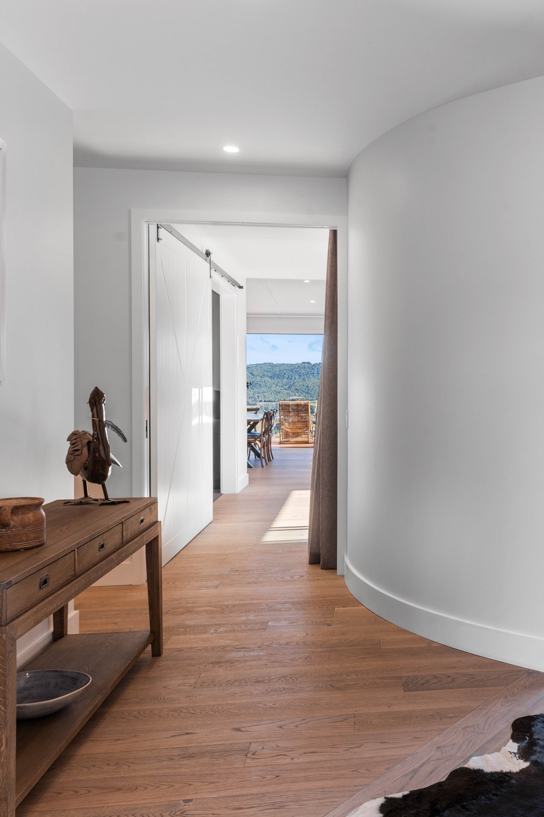 At first glance, this house is a stunner, its dark, woody exterior juxtaposed against the shades-of-green landscape and blues of Lake Taupō. On closer inspection, you’ll find plenty more features that take the 302sqm home to the next level. One of the major drawcards is a 240sqm wrap-around timber deck with an outdoor fire and bath. Is there a better, more tranquil place from which to enjoy the panoramic views of land and lake? And because part of this sprawling terrace is covered, rainy weather is never an issue. Inside, you’ll find four bedrooms, three high-end bathrooms and two living areas. Almost every room has a view and dark cabinetry creates a moody style. The living area, combined with a cleverly designed kitchen and scullery, make it a natural for entertaining. A blackened steel fireplace anchors the main living space, creating a dramatic but cosy effect and an extra-large glass sliding door maximises that remarkable view. Nothing has been left to chance in this light, airy and sunny architectural home, from the way it occupies its site to the many special features within.
