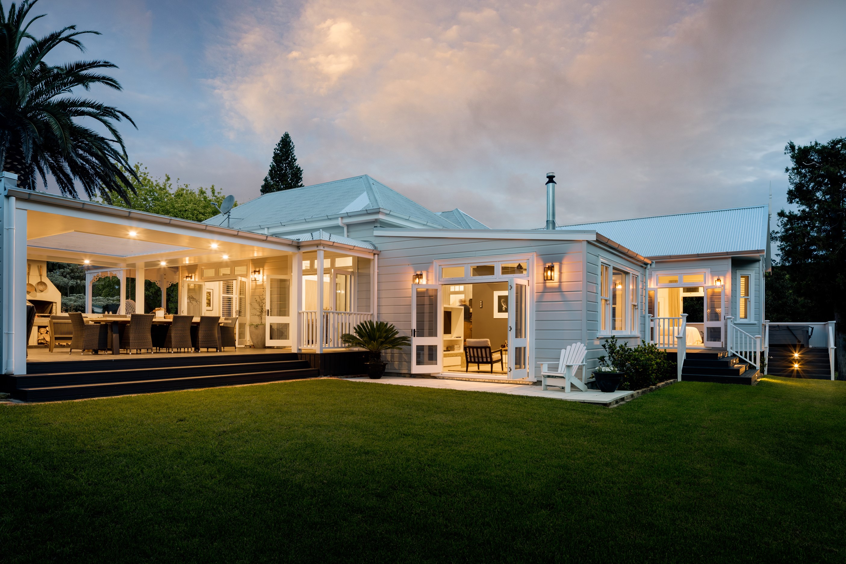 Talk about taking a stroll down memory lane. This one comes in the shape of a century-old villa that was moved onto an orchard that once was a dairy farm. The owners wanted to preserve the integrity of the original home, while dressing it with the accoutrements of modern-day living. What they got was a perfect fit for their brief. Their request for a spacious, functional home that kept the character and feel of the grand 1880s dame was met with double-glazing, upgraded insulation and the marriage of the indoors with the landscaped grounds. The use of original trims, timber joinery and flooring pay detailed homage to the villa’s beginnings. Modernised bathrooms – two of them – and a meticulously appointed kitchen add another contemporary touch. Three bedrooms and two living rooms further illustrate the harmony between old and new. Original high ceilings and large windows offer a perfect rural outlook. “As you walk up the path, you feel like you have stepped back in time,” says the builder. Take a seat on the glorious deck and you will agree.