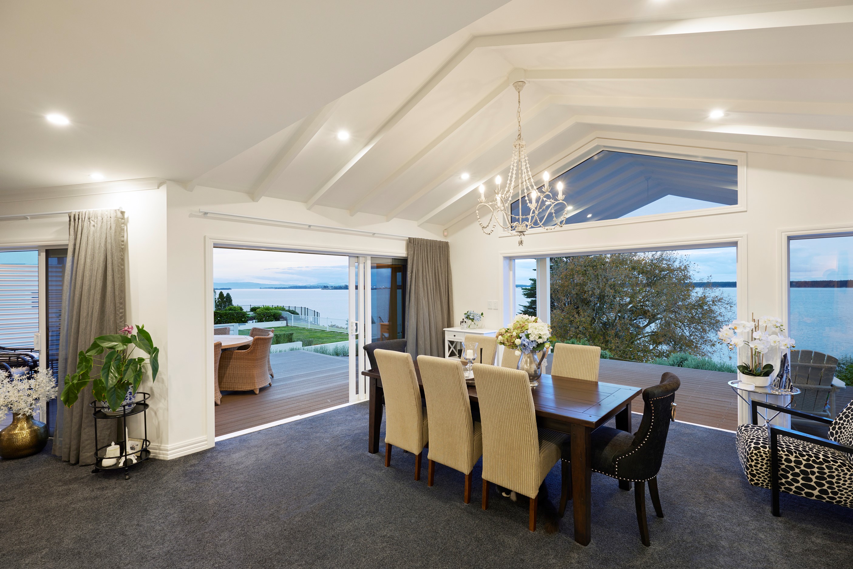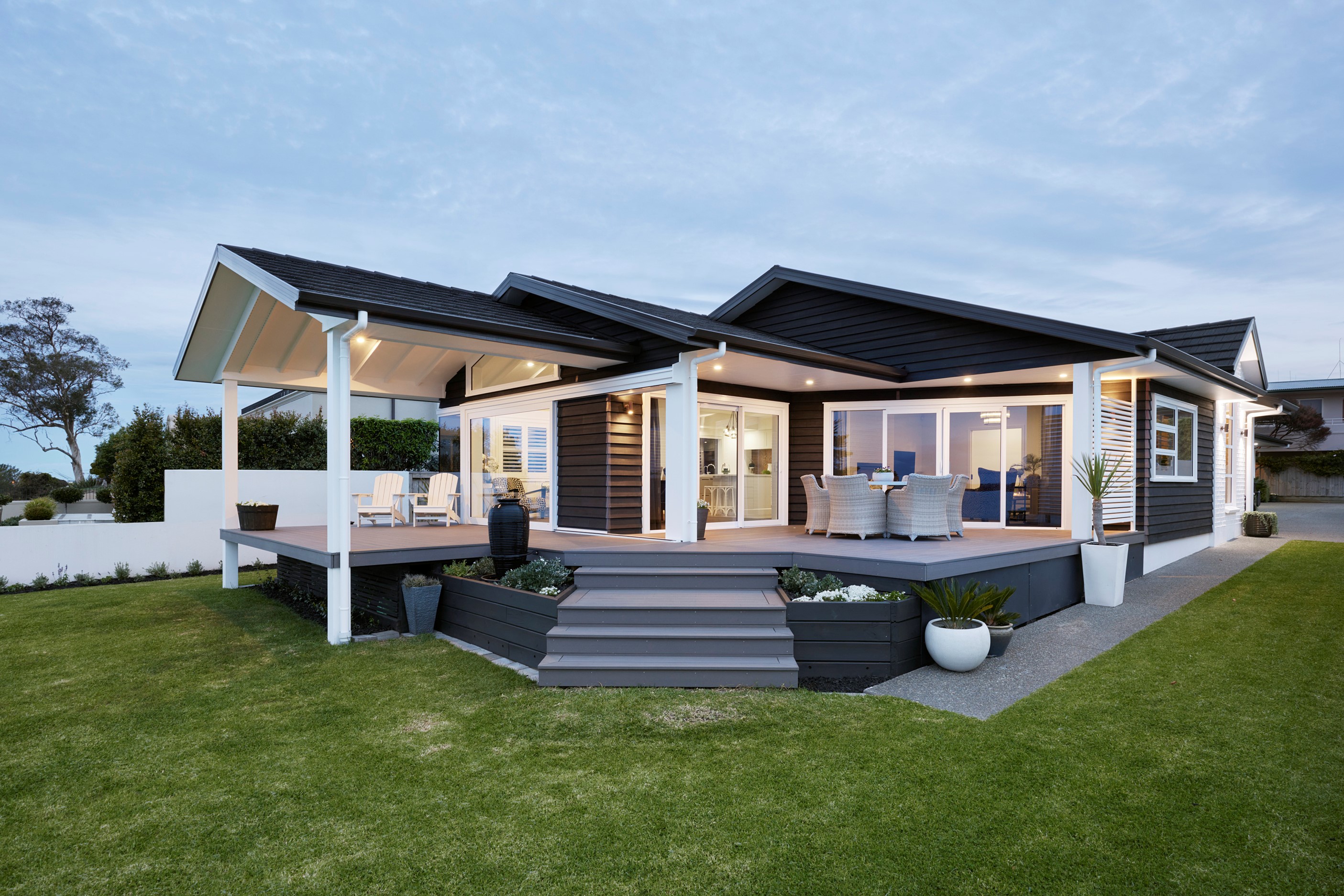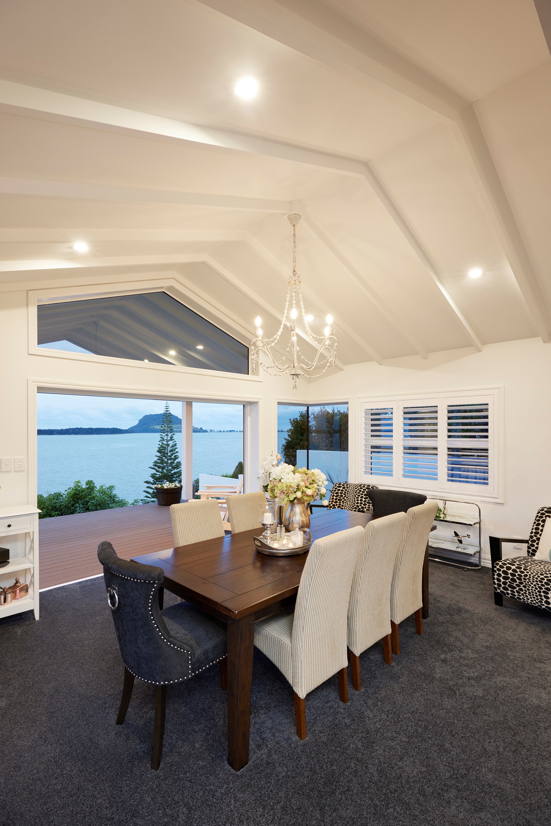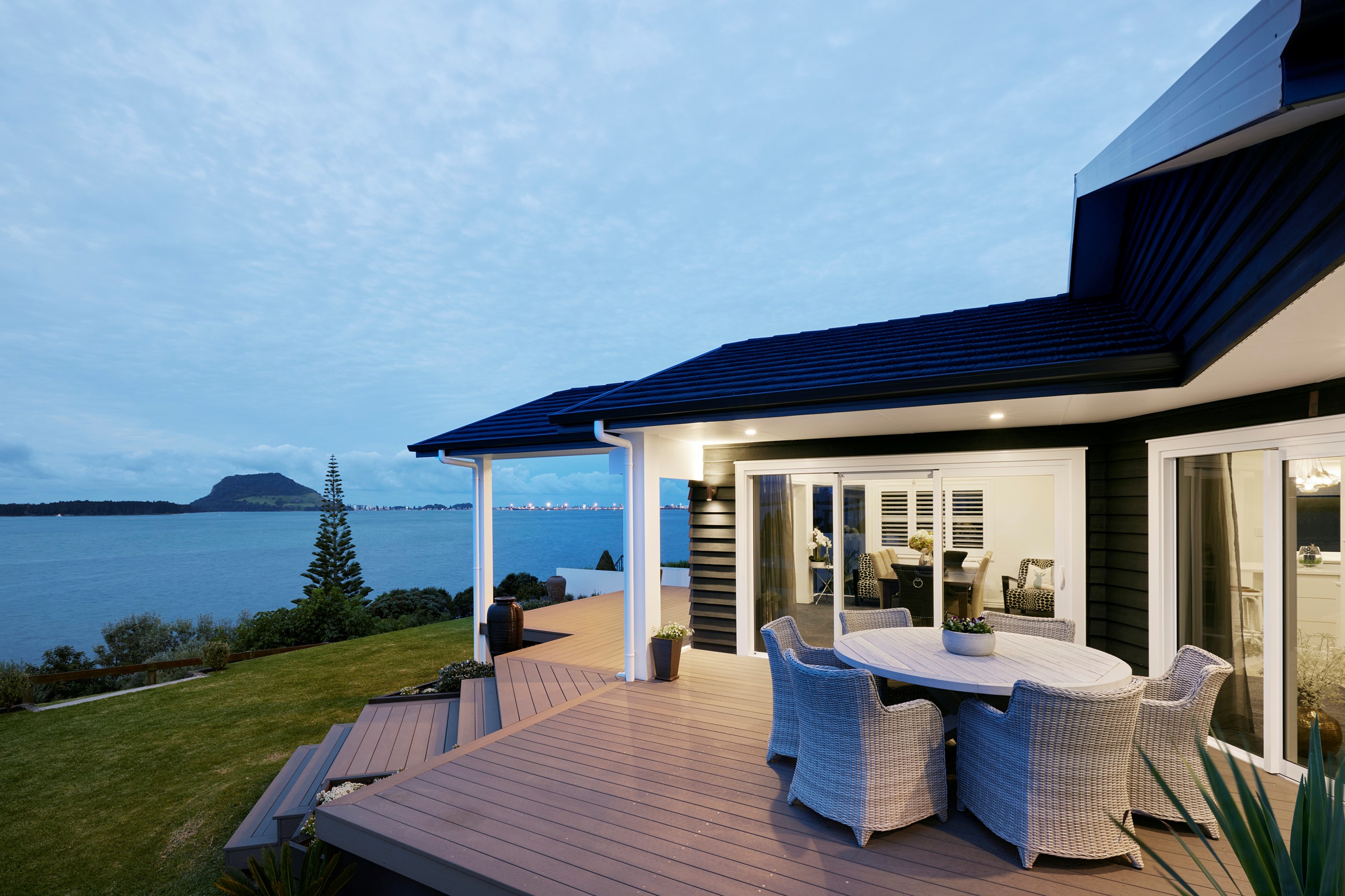 If you’d seen this harbour-side house before its renovation, you’d scarcely believe it is the same place. That’s because the exceptional renovation of the 1960s property has resulted in something quite special – inside and out. With its prime position on Tauranga Harbour, it made perfect sense to reconfigure the house so as many rooms as possible could enjoy the outstanding views. The renovation didn’t require a whole lot of extra area to achieve the goal, however. The new house covers 257.78sqm, just 2.96sqm more than the original floor plan. The design is just smarter and has been created to capture widespread vistas of the water, plus Matakana Island, Mount Maunganui and Mauao in the distance. Looking out from the inside is remarkably beautiful, but the opposite is also true. Dark bevel-back weatherboards with white trim and brick-veneer features modernise the exterior, without it appearing out of place in its established neighbourhood. The revamped alfresco living leaves nothing to chance – if you’re on the deck or portico, you can’t help but enjoy what nature has on offer.