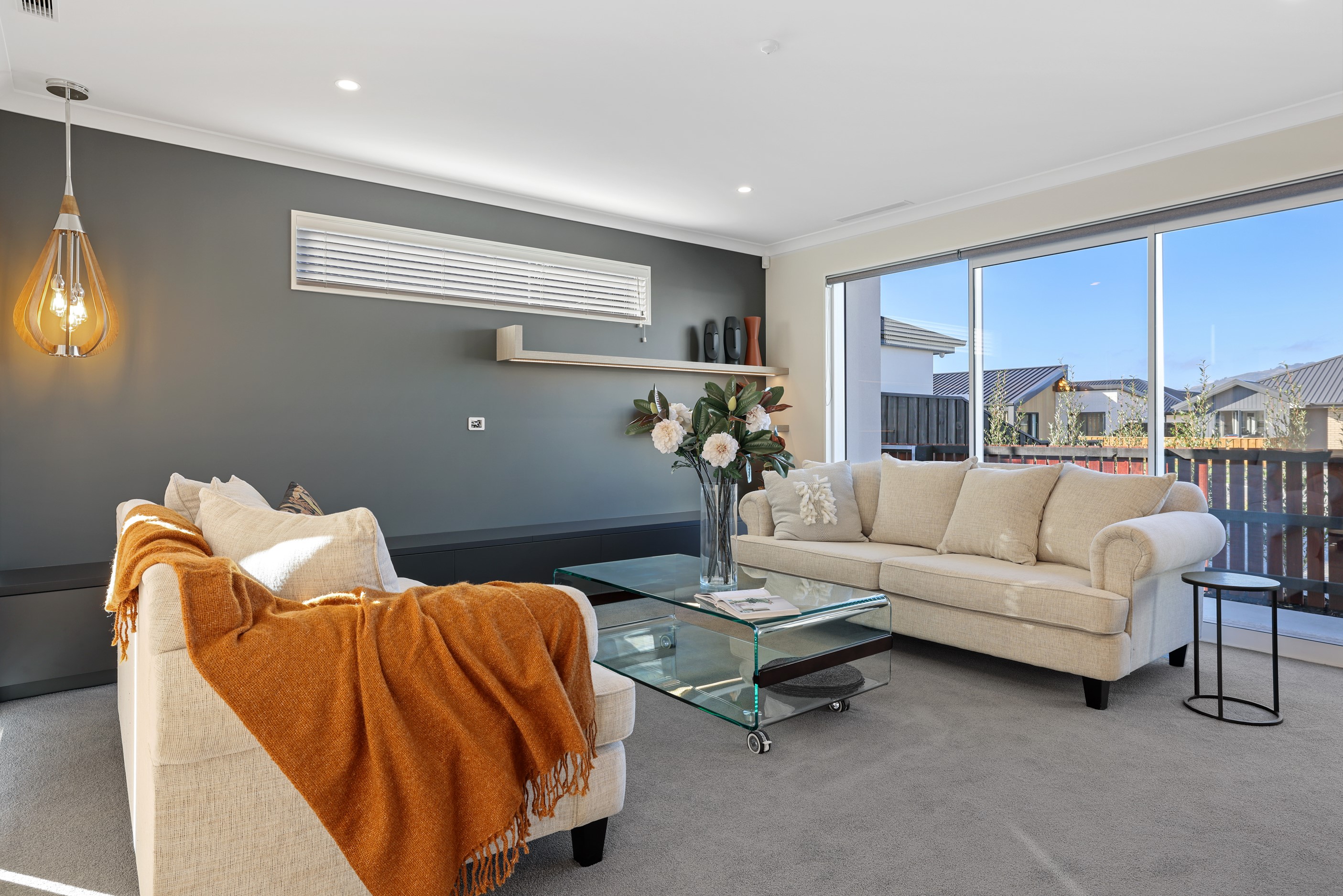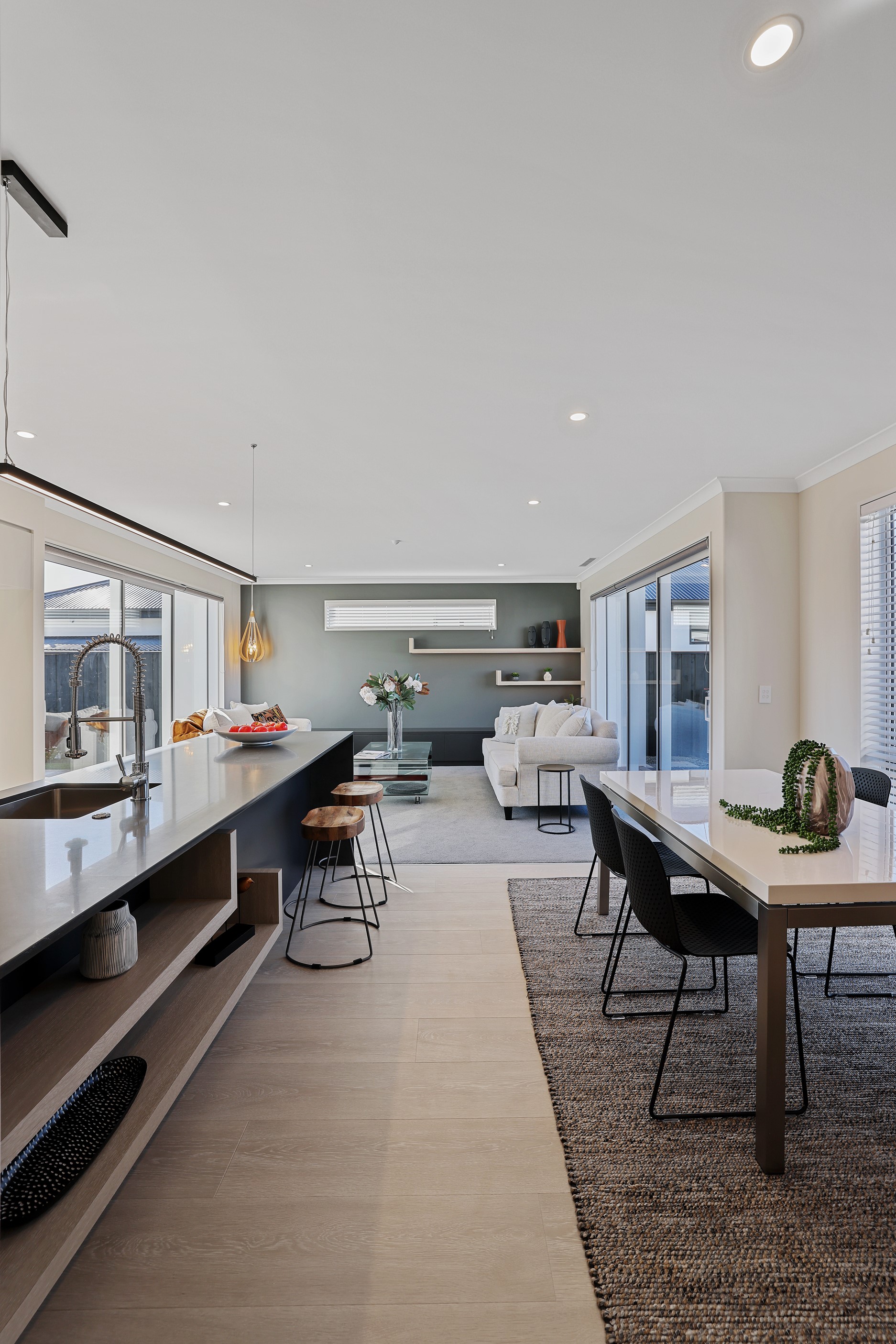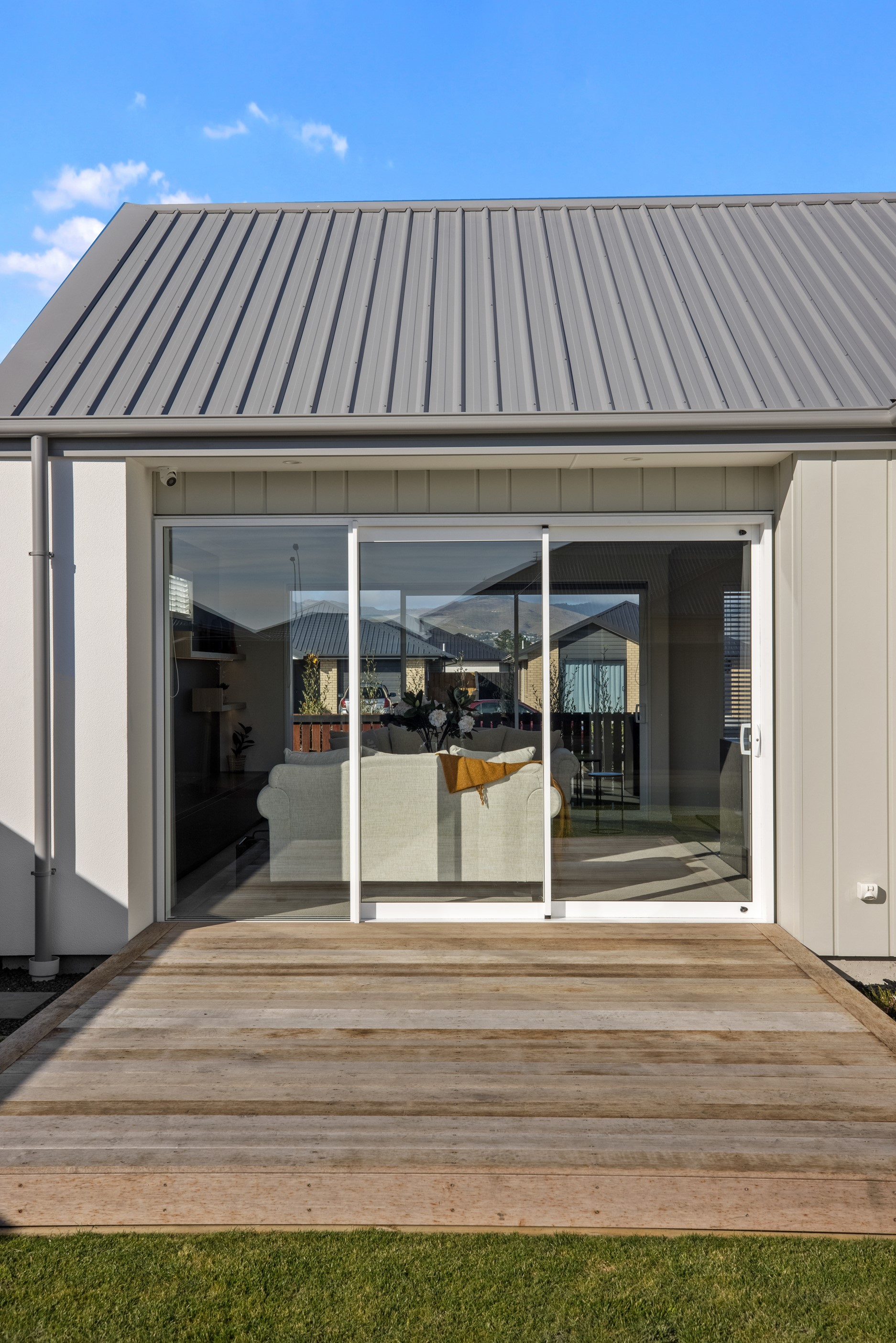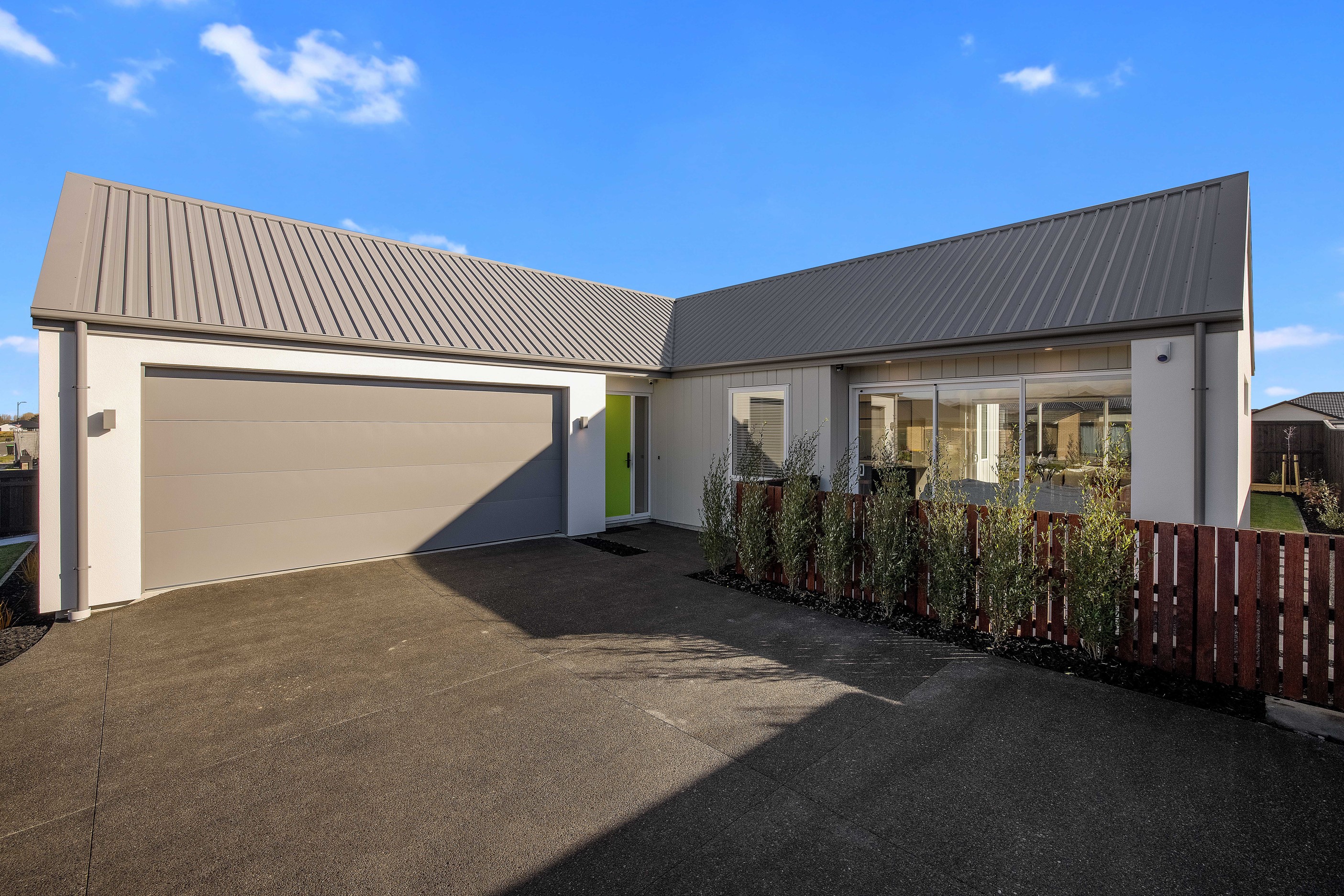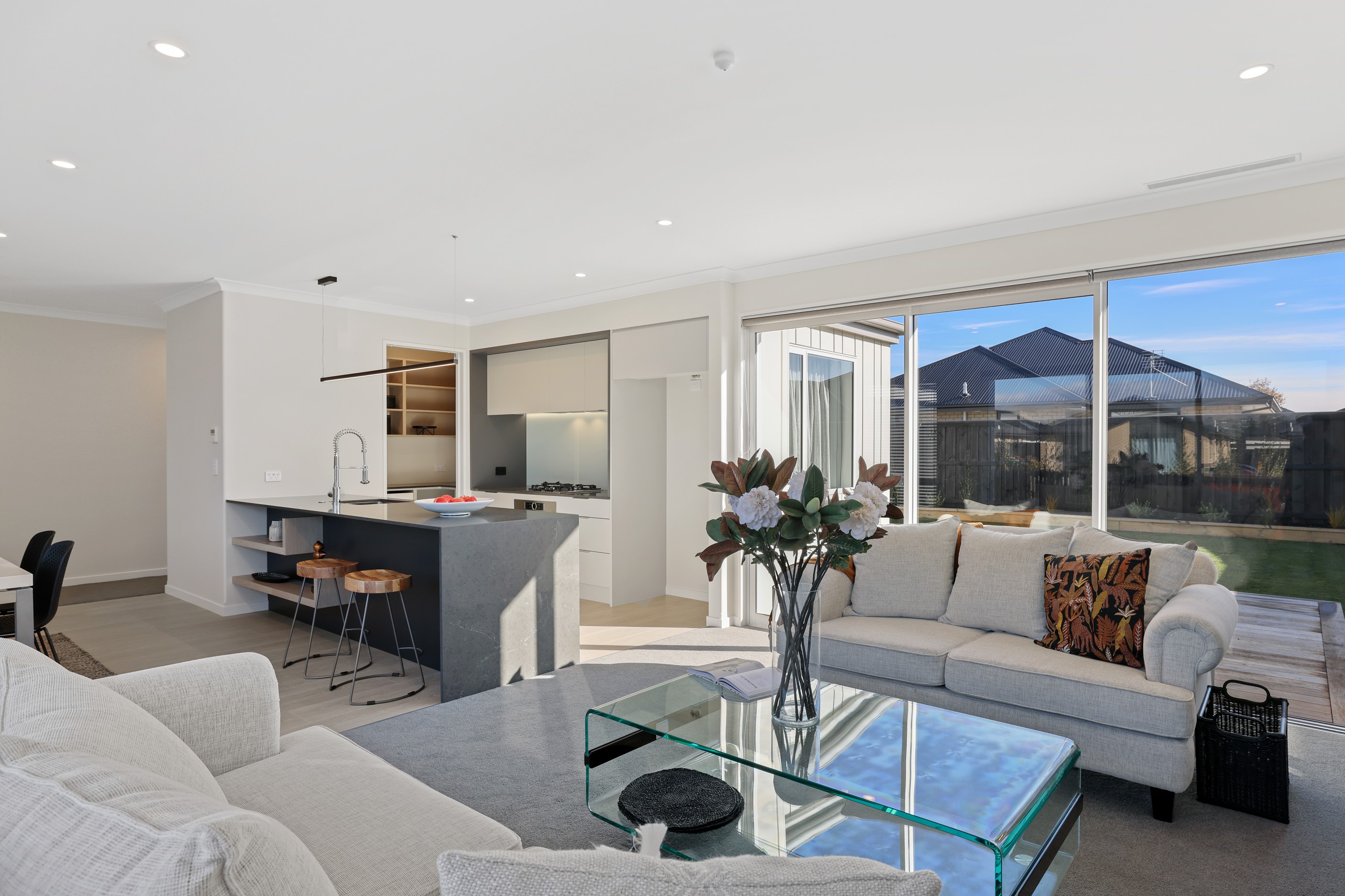 Traditional style meets modern comfort in this three-bedroom home. Living spaces merge naturally and then flow out to decks and patios. The main living space has them on either side – one for your morning coffee and the other for relaxing in the evening. You can move as sunshine and wind conditions change. What could be better? The main bedroom also has a patio. Two elegant tiled bathrooms provide everyday luxury and the well-designed kitchen, with scullery, is a dream for entertainers. The long island bench with seating is just the place to congregate with friends and family, or to chat with the chef. You’ll also find a separate laundry, garage, and main bedroom with ensuite and walk-in wardrobe. But the 170sqm property is much more than a smart, well-designed home – there are personal touches throughout. Stylised floating shelves and painted features – a green front door, an intense blue base to the kitchen island and blue-grey feature walls – bring personality to this property. Handsome in Linea Oblique weatherboard and plaster cladding, this home is designed for family life, and it shows.