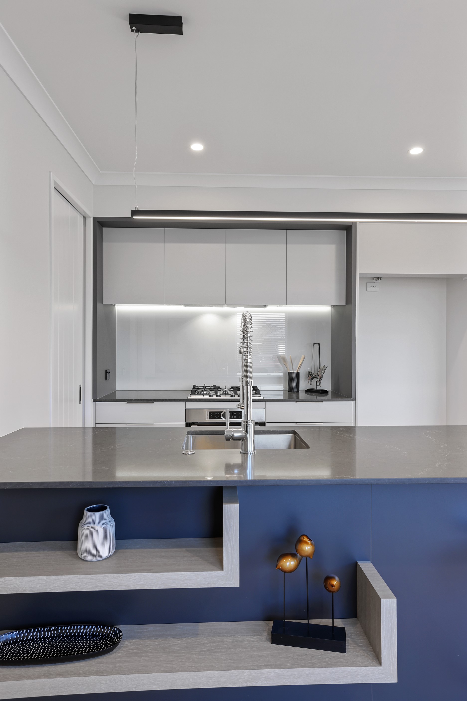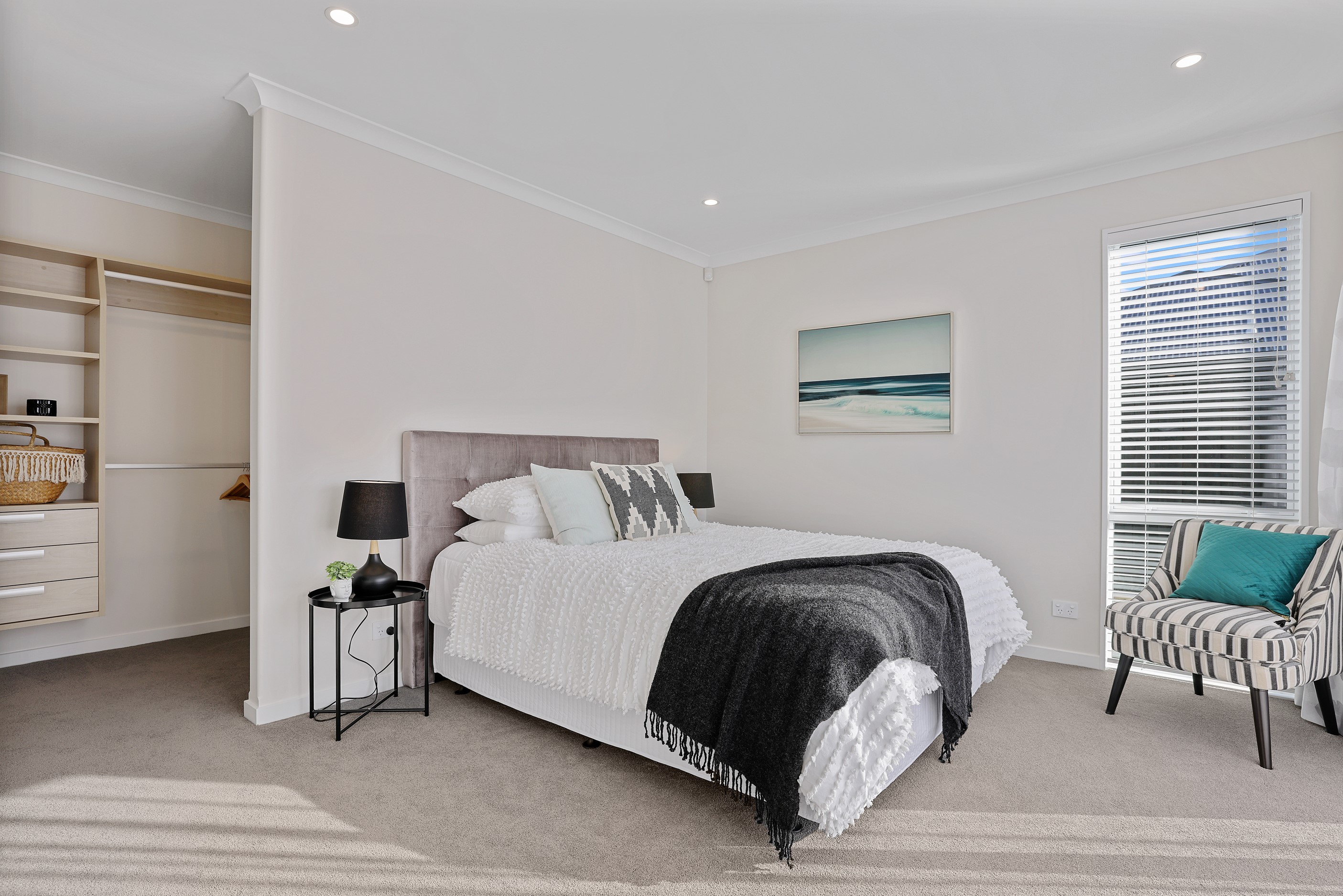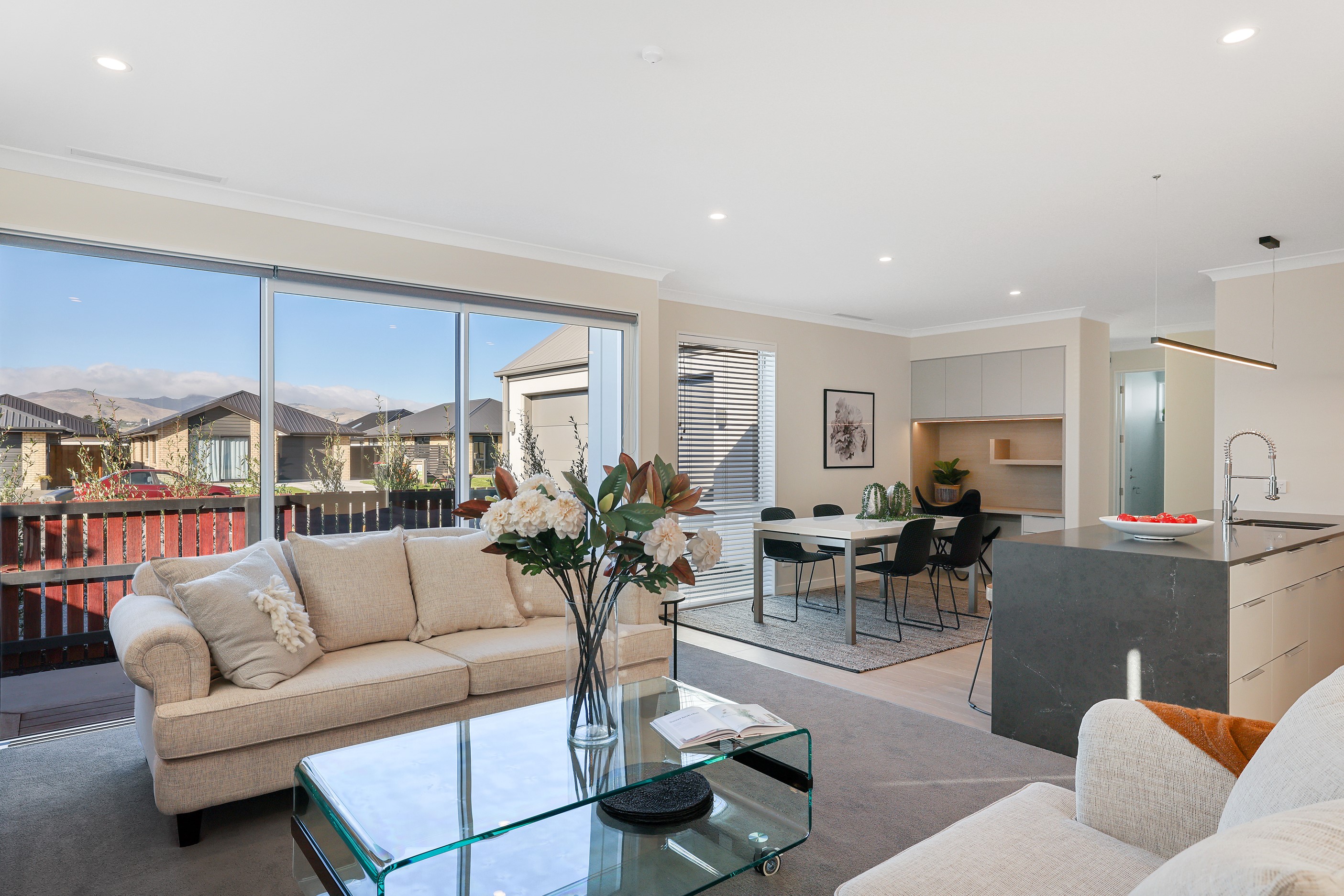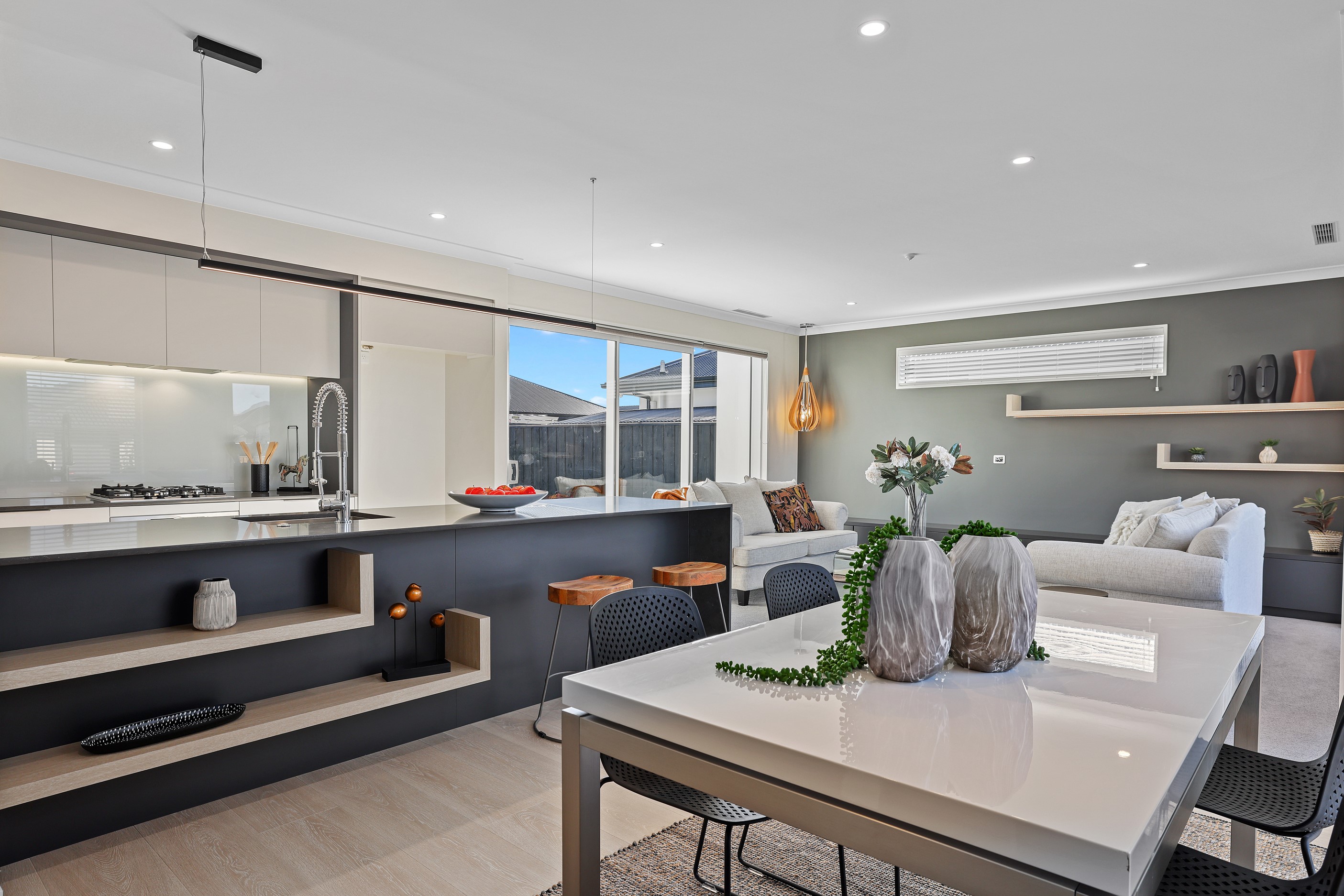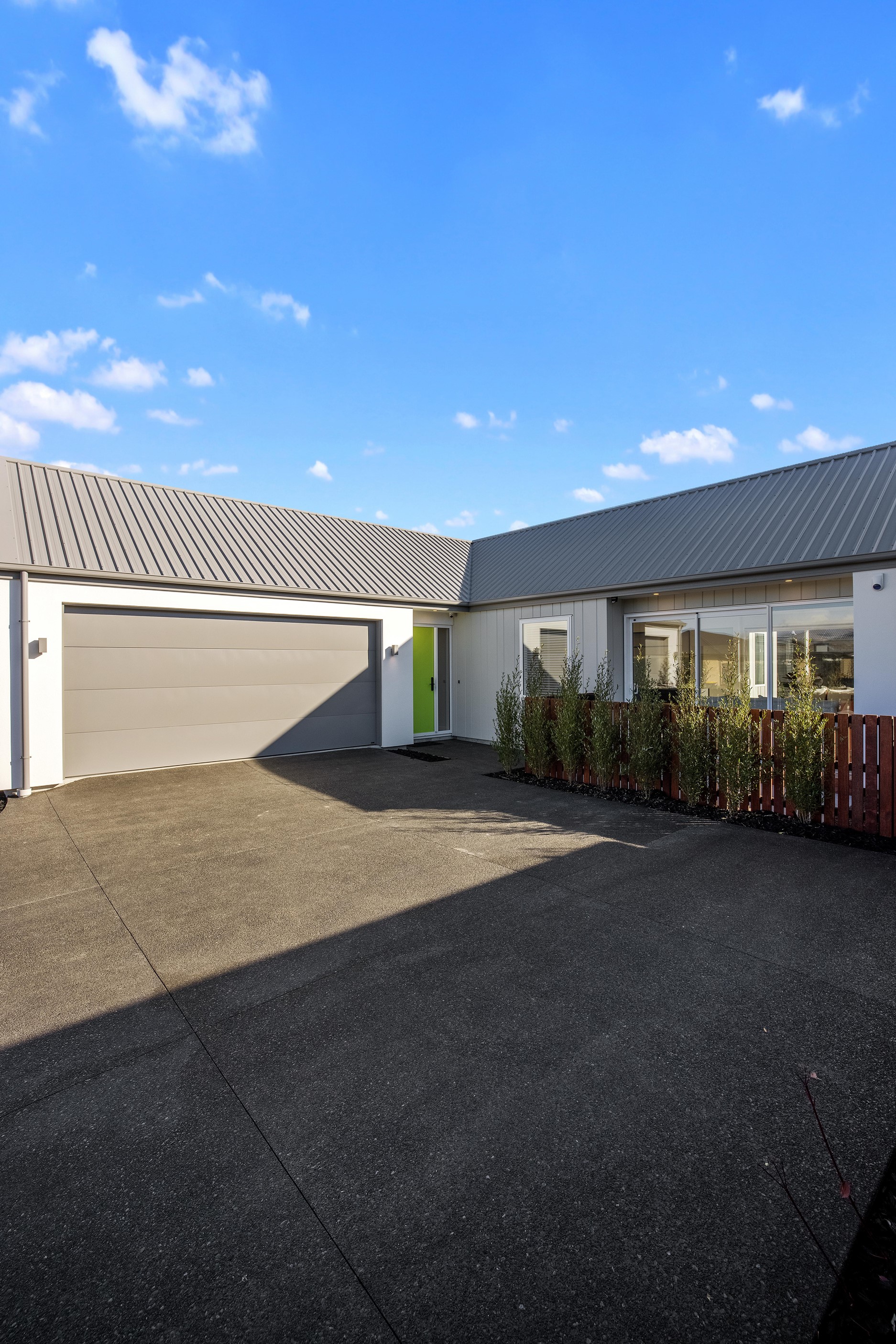 Traditional style meets modern comfort in this three-bedroom home. Living spaces merge naturally and then flow out to decks and patios. The main living space has them on either side – one for your morning coffee and the other for relaxing in the evening. You can move as sunshine and wind conditions change. What could be better? The main bedroom also has a patio. Two elegant tiled bathrooms provide everyday luxury and the well-designed kitchen, with scullery, is a dream for entertainers. The long island bench with seating is just the place to congregate with friends and family, or to chat with the chef. You’ll also find a separate laundry, garage, and main bedroom with ensuite and walk-in wardrobe. But the 170sqm property is much more than a smart, well-designed home – there are personal touches throughout. Stylised floating shelves and painted features – a green front door, an intense blue base to the kitchen island and blue-grey feature walls – bring personality to this property. Handsome in Linea Oblique weatherboard and plaster cladding, this home is designed for family life, and it shows.