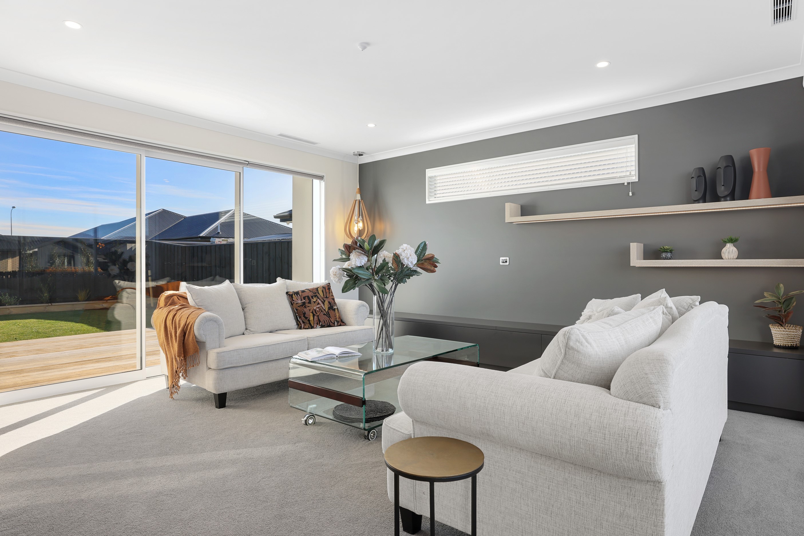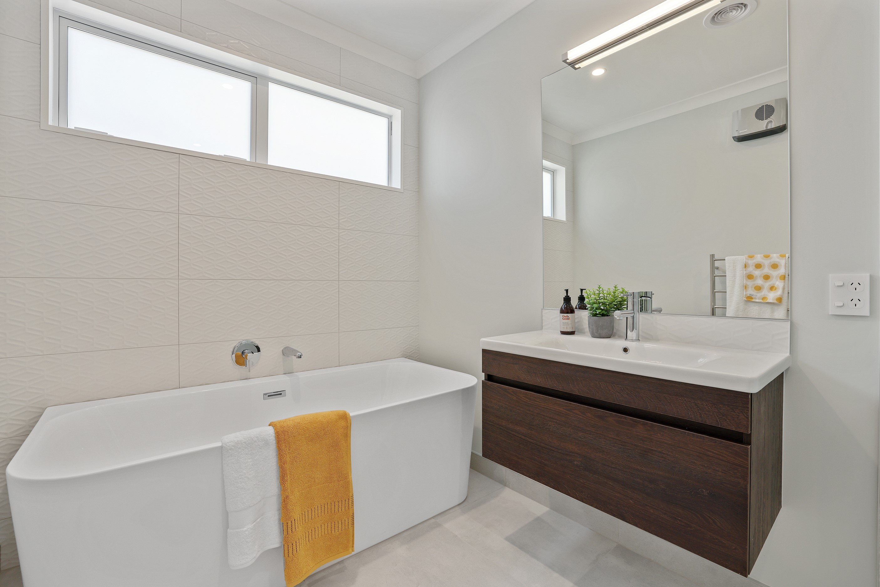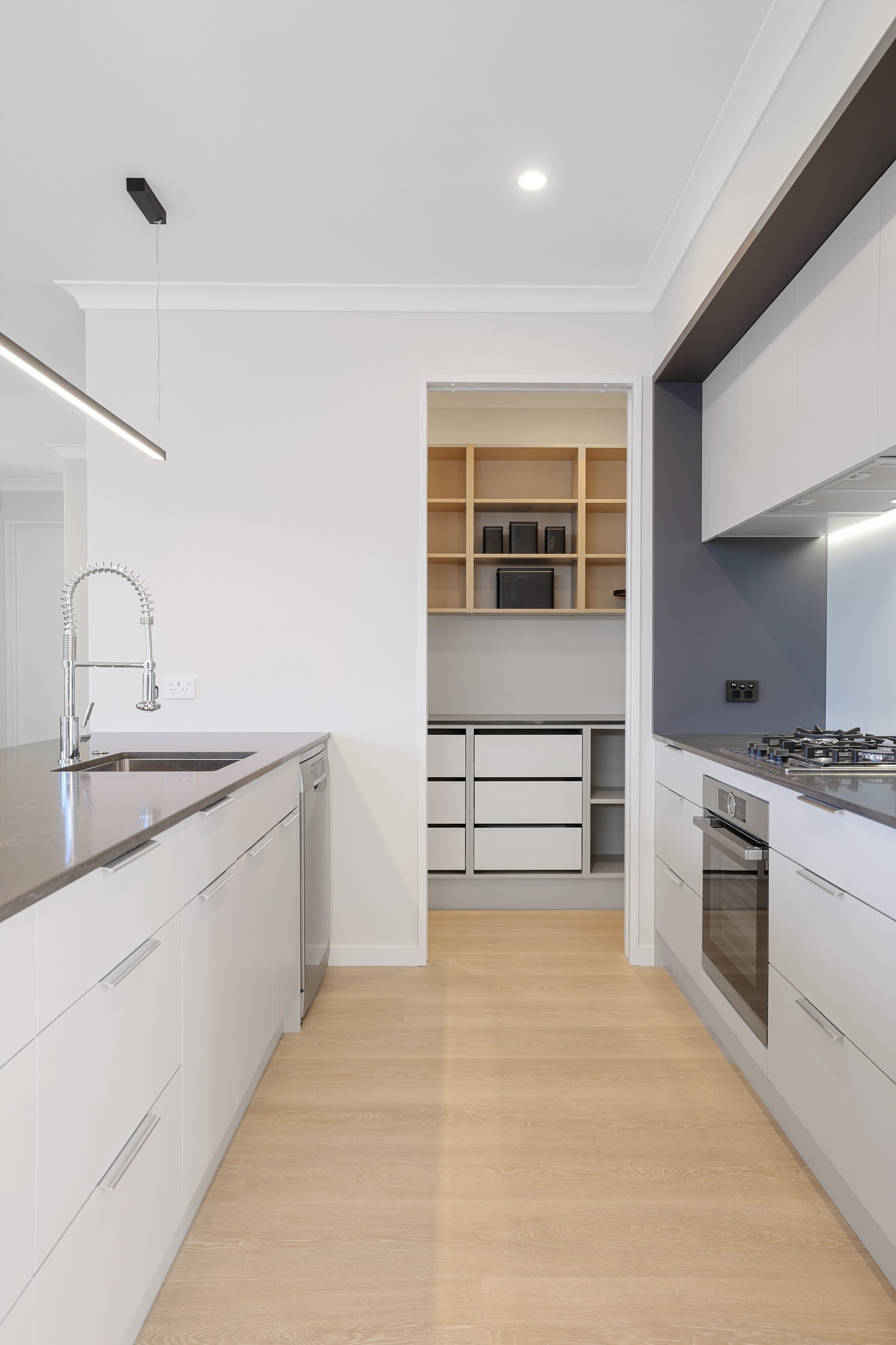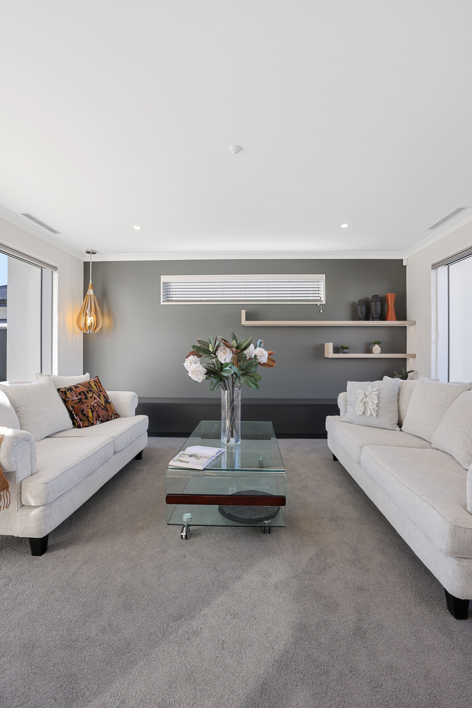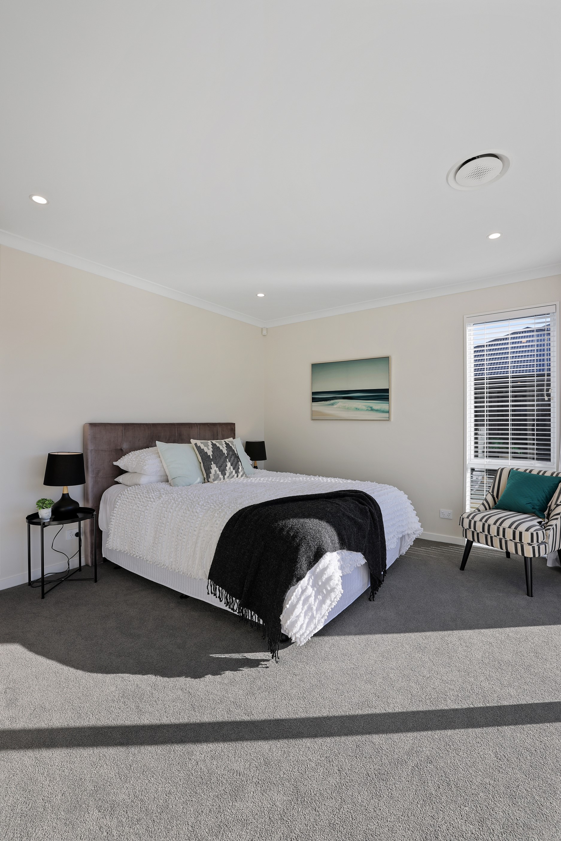 Traditional style meets modern comfort in this three-bedroom home. Living spaces merge naturally and then flow out to decks and patios. The main living space has them on either side – one for your morning coffee and the other for relaxing in the evening. You can move as sunshine and wind conditions change. What could be better? The main bedroom also has a patio. Two elegant tiled bathrooms provide everyday luxury and the well-designed kitchen, with scullery, is a dream for entertainers. The long island bench with seating is just the place to congregate with friends and family, or to chat with the chef. You’ll also find a separate laundry, garage, and main bedroom with ensuite and walk-in wardrobe. But the 170sqm property is much more than a smart, well-designed home – there are personal touches throughout. Stylised floating shelves and painted features – a green front door, an intense blue base to the kitchen island and blue-grey feature walls – bring personality to this property. Handsome in Linea Oblique weatherboard and plaster cladding, this home is designed for family life, and it shows.