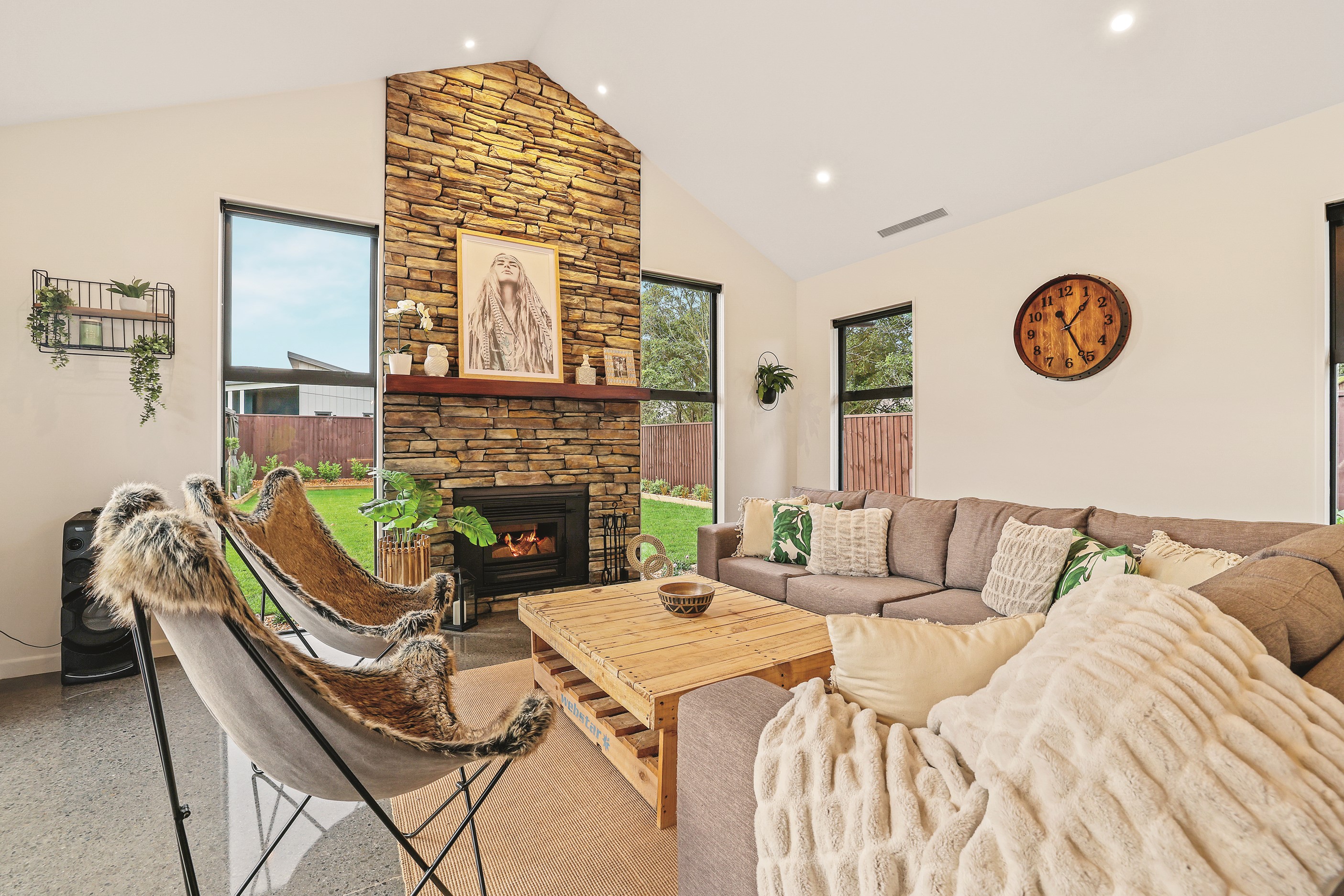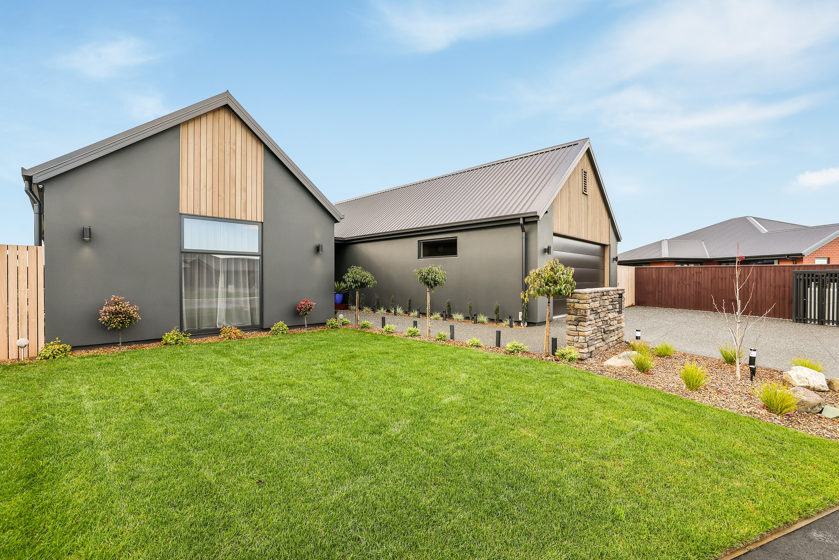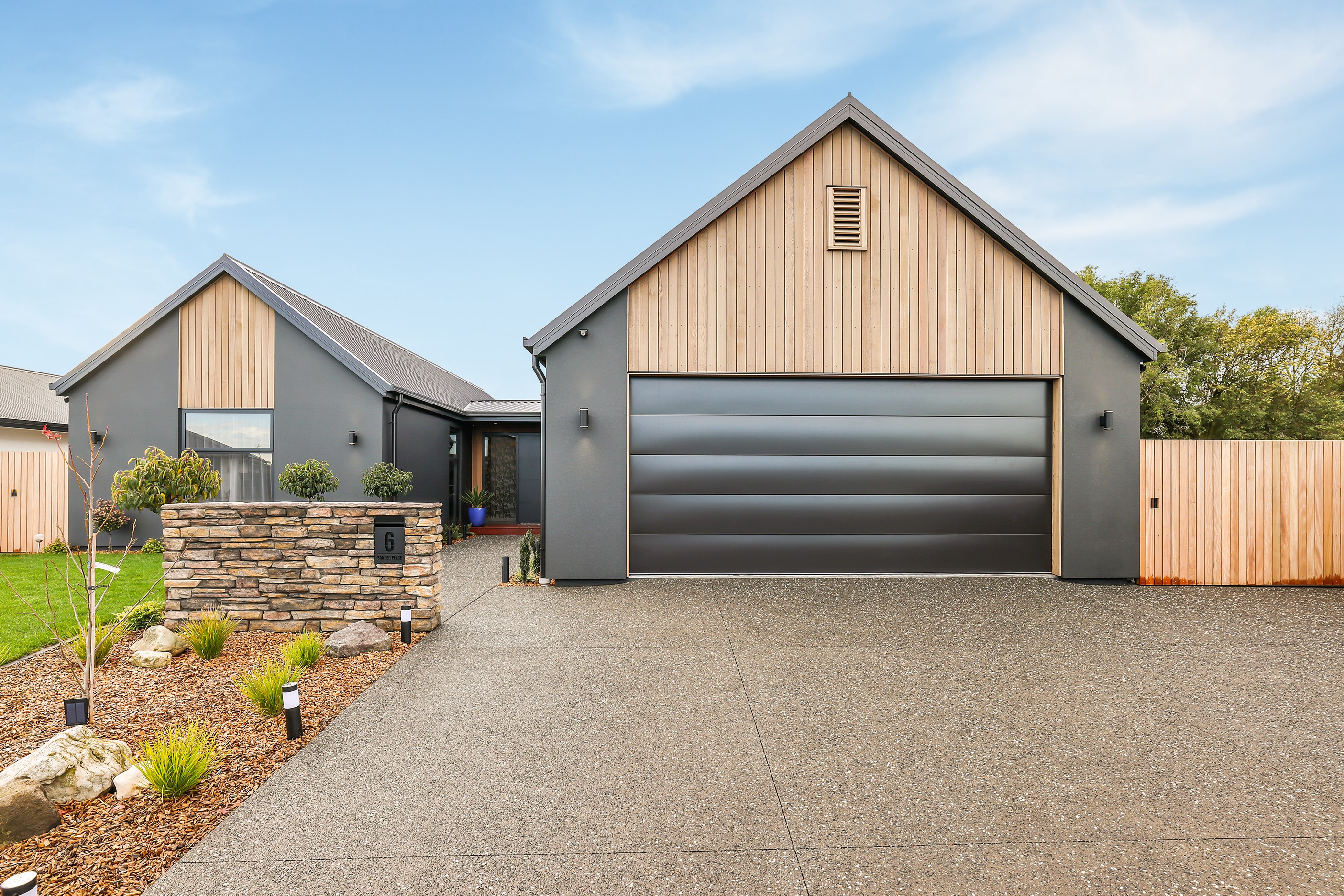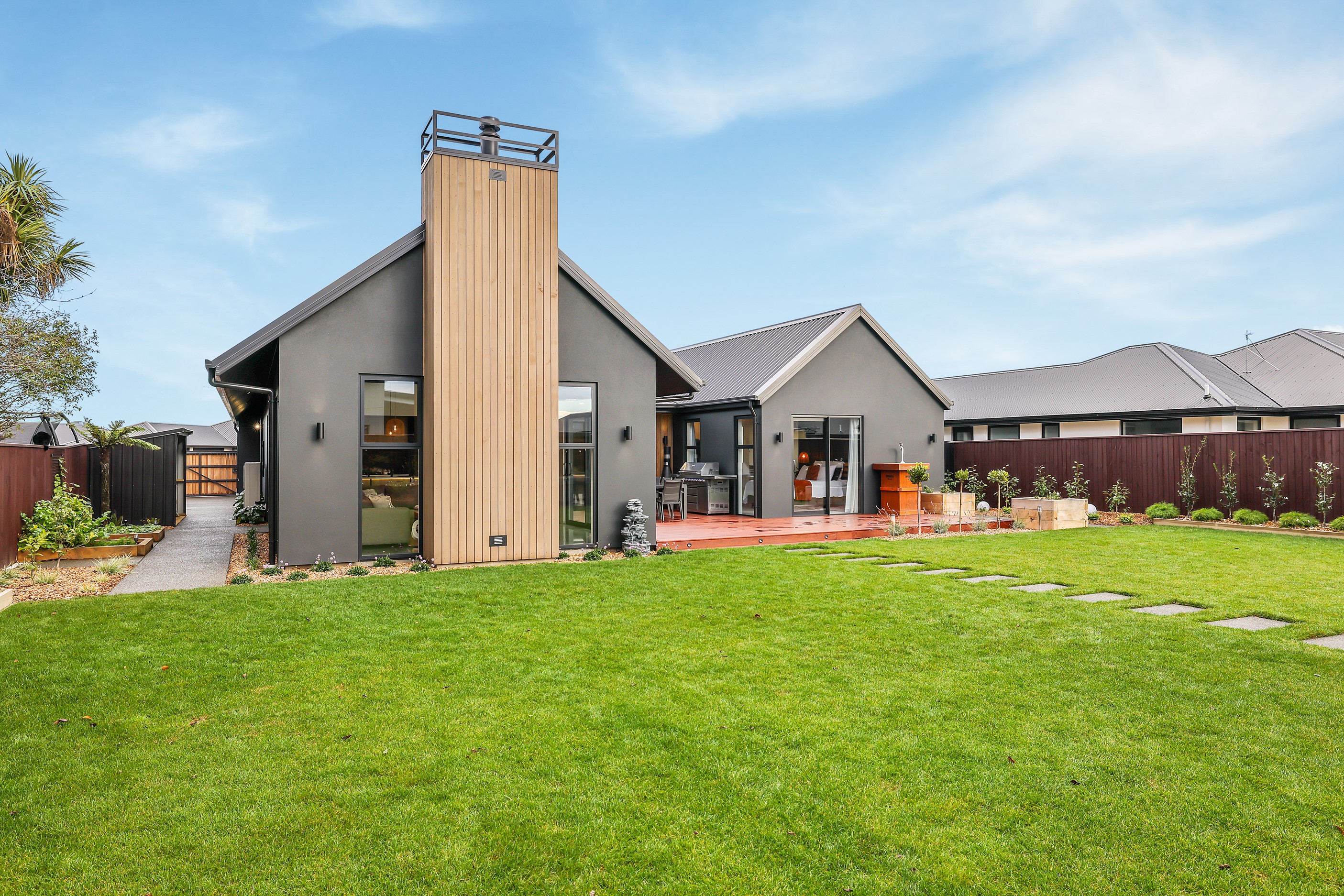 Located in the popular Falcons Landing subdivision, a residential development in sought-after Rolleston, this high-quality home presents easy living at its best. Family life is well catered to with four bedrooms, two bathrooms and two living rooms within the 247sqm H-shaped footprint. The fully equipped kitchen benefits from a spacious scullery, stone benchtops, an attractive splashback and premium appliances. You’ll have the choice of curling up with a book in the large open-plan living area or relaxing in the separate formal lounge. Polished concrete flooring and a full-height stone fireplace demonstrate the excellent craftsmanship found throughout this outstanding family home. A simple yet stylish palette of cedar, black, white and earthy tones feature throughout the property, including the relaxing bathrooms. Soak away the day in the freestanding bath in the main bathroom, or step into the double shower in the superbly appointed ensuite. A seamless transition between indoors and out has been created with the sun-soaked living area spilling out to a decked alfresco entertaining space.