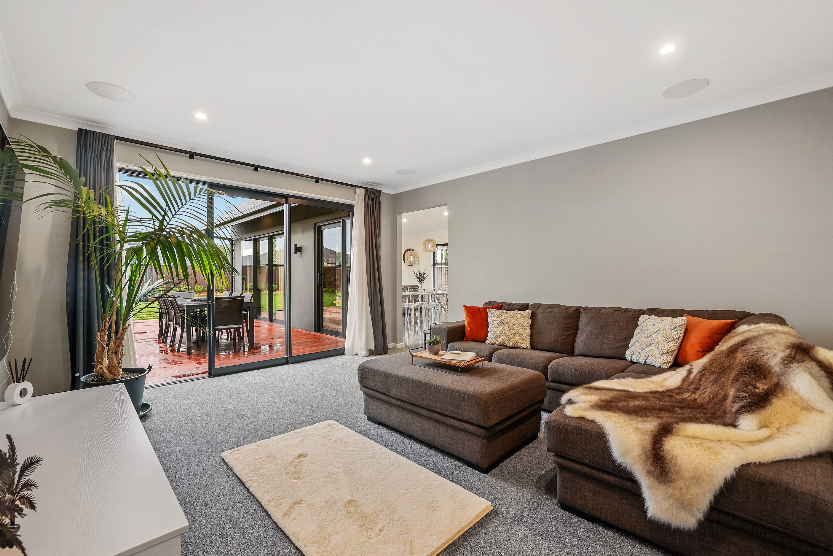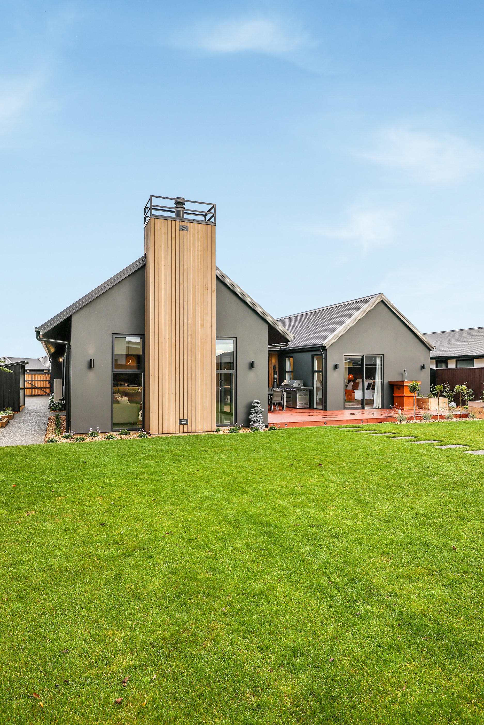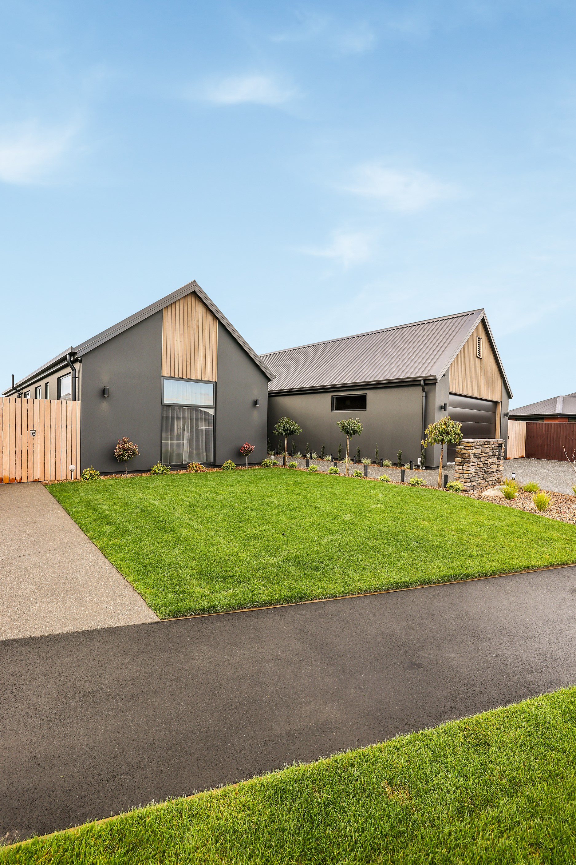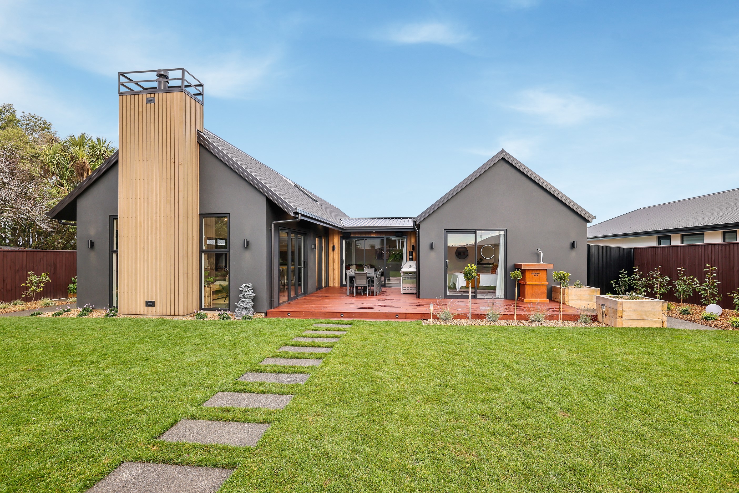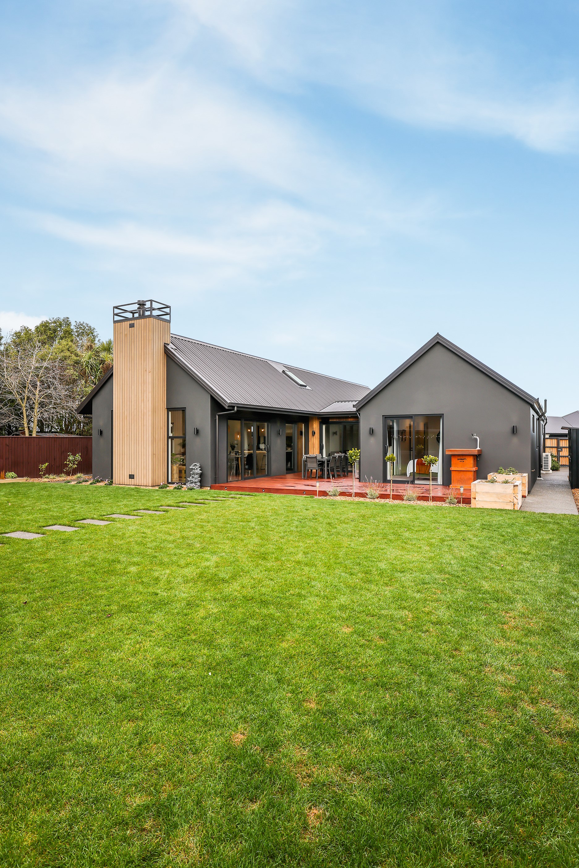 Located in the popular Falcons Landing subdivision, a residential development in sought-after Rolleston, this high-quality home presents easy living at its best. Family life is well catered to with four bedrooms, two bathrooms and two living rooms within the 247sqm H-shaped footprint. The fully equipped kitchen benefits from a spacious scullery, stone benchtops, an attractive splashback and premium appliances. You’ll have the choice of curling up with a book in the large open-plan living area or relaxing in the separate formal lounge. Polished concrete flooring and a full-height stone fireplace demonstrate the excellent craftsmanship found throughout this outstanding family home. A simple yet stylish palette of cedar, black, white and earthy tones feature throughout the property, including the relaxing bathrooms. Soak away the day in the freestanding bath in the main bathroom, or step into the double shower in the superbly appointed ensuite. A seamless transition between indoors and out has been created with the sun-soaked living area spilling out to a decked alfresco entertaining space.