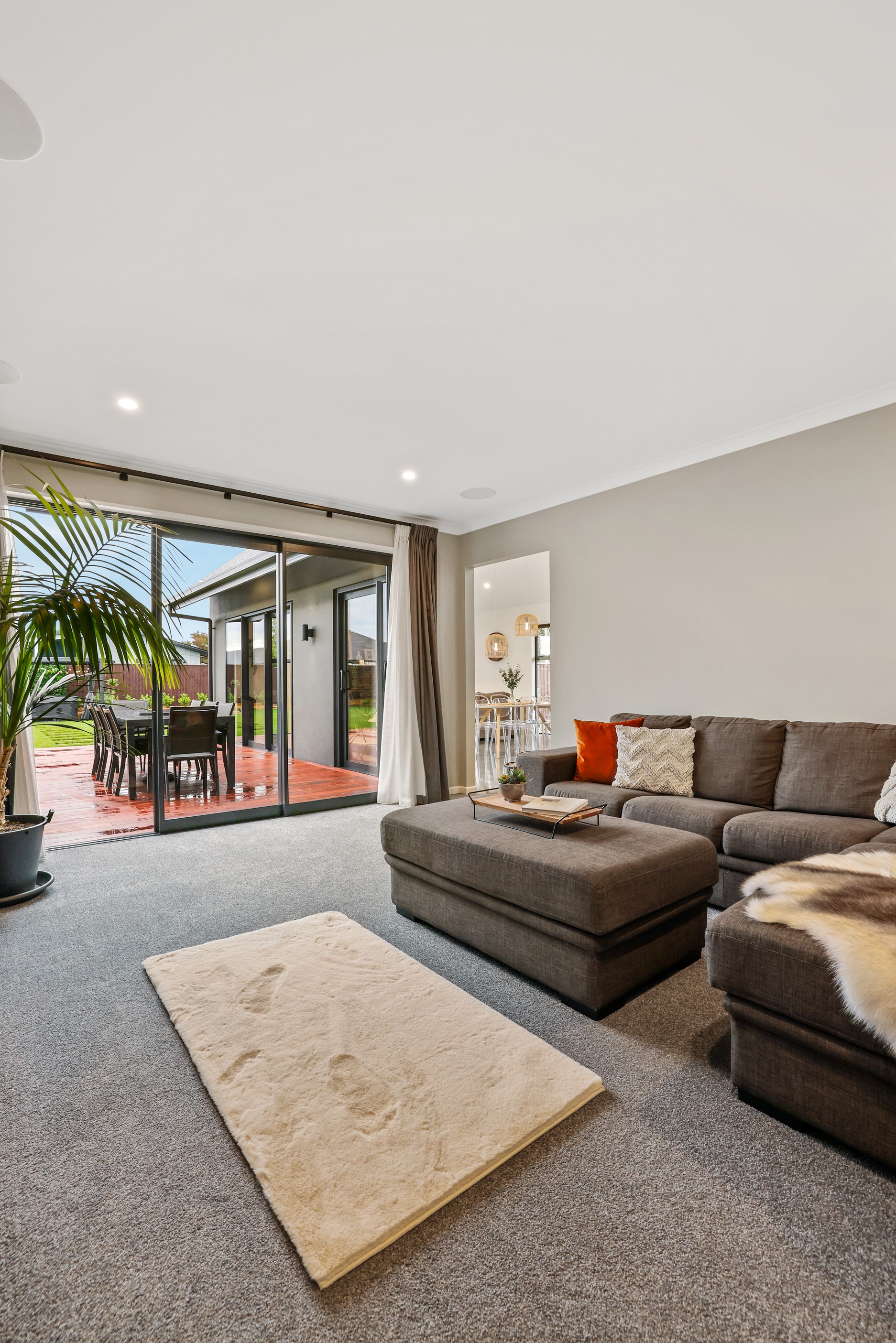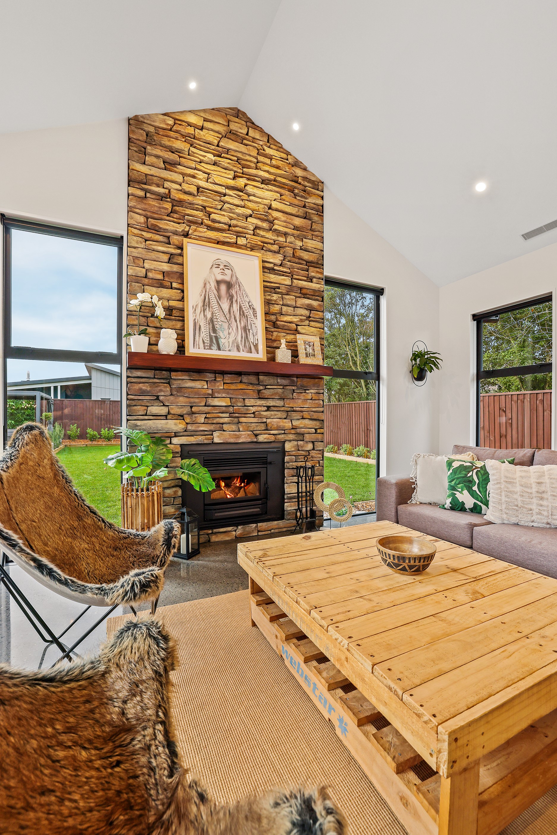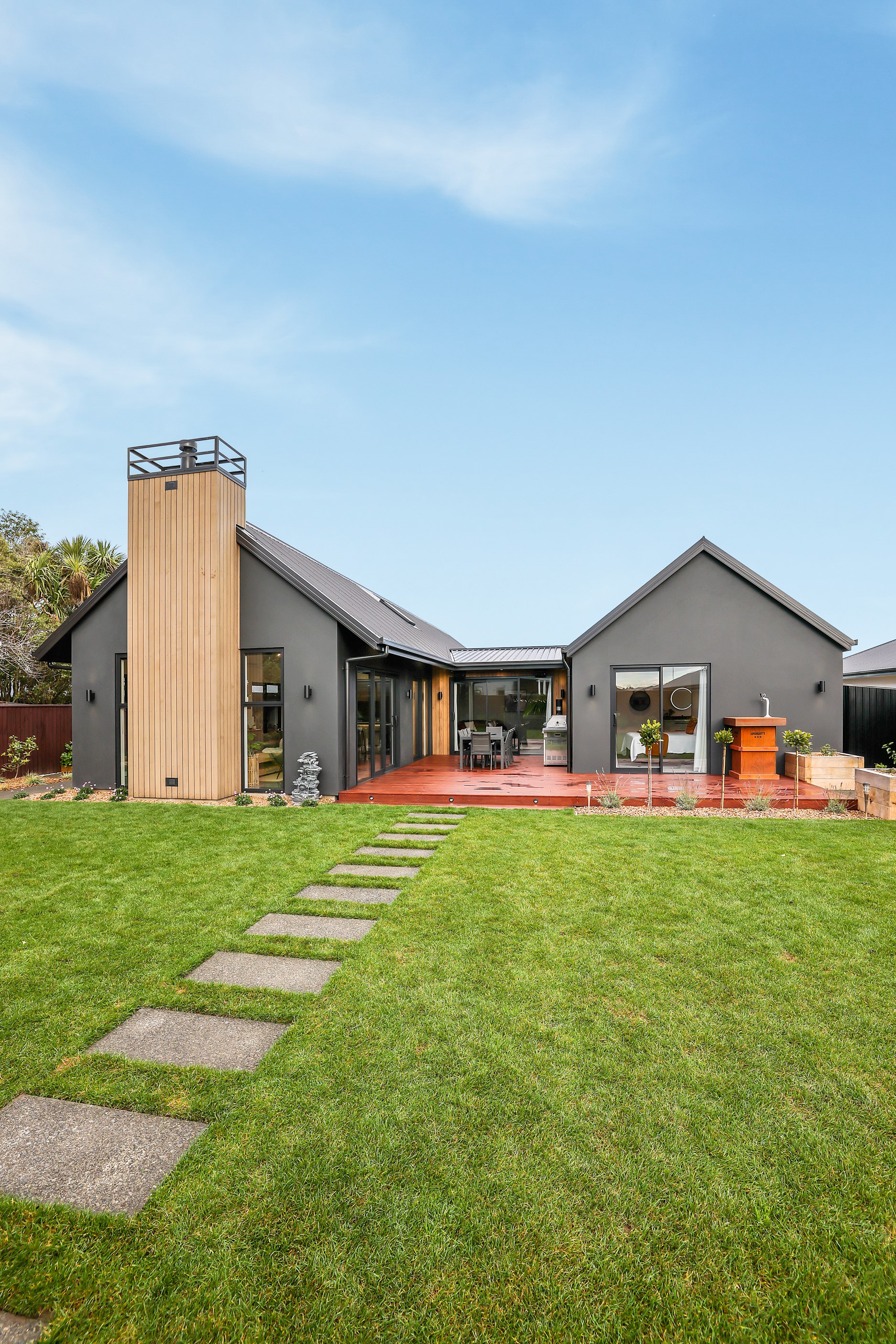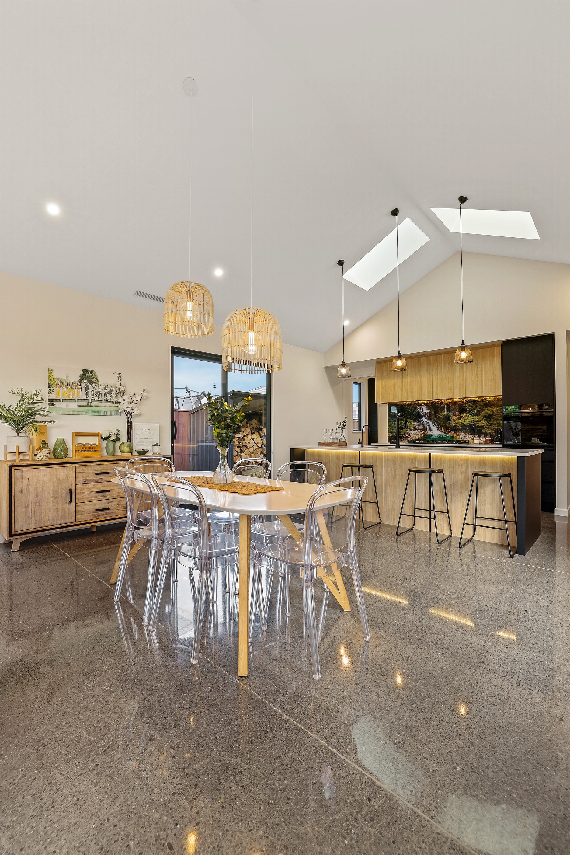 Located in the popular Falcons Landing subdivision, a residential development in sought-after Rolleston, this high-quality home presents easy living at its best. Family life is well catered to with four bedrooms, two bathrooms and two living rooms within the 247sqm H-shaped footprint. The fully equipped kitchen benefits from a spacious scullery, stone benchtops, an attractive splashback and premium appliances. You’ll have the choice of curling up with a book in the large open-plan living area or relaxing in the separate formal lounge. Polished concrete flooring and a full-height stone fireplace demonstrate the excellent craftsmanship found throughout this outstanding family home. A simple yet stylish palette of cedar, black, white and earthy tones feature throughout the property, including the relaxing bathrooms. Soak away the day in the freestanding bath in the main bathroom, or step into the double shower in the superbly appointed ensuite. A seamless transition between indoors and out has been created with the sun-soaked living area spilling out to a decked alfresco entertaining space.