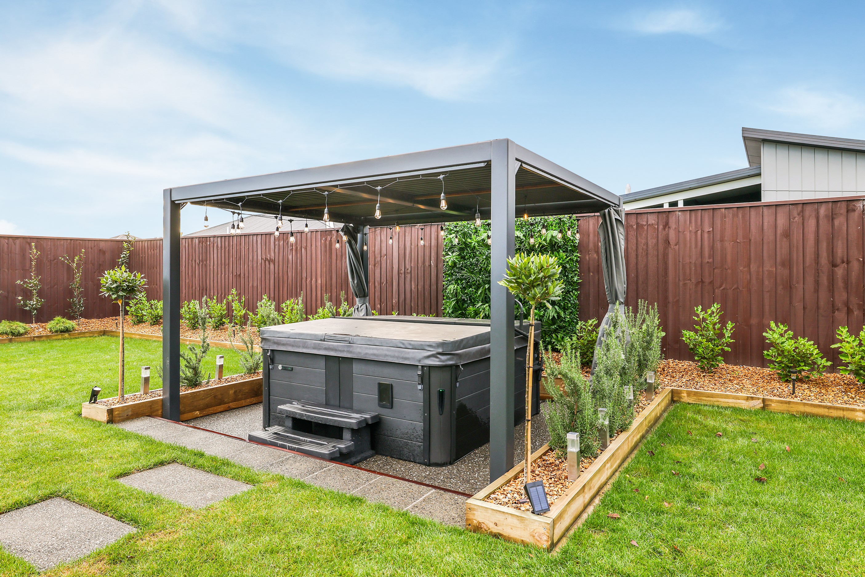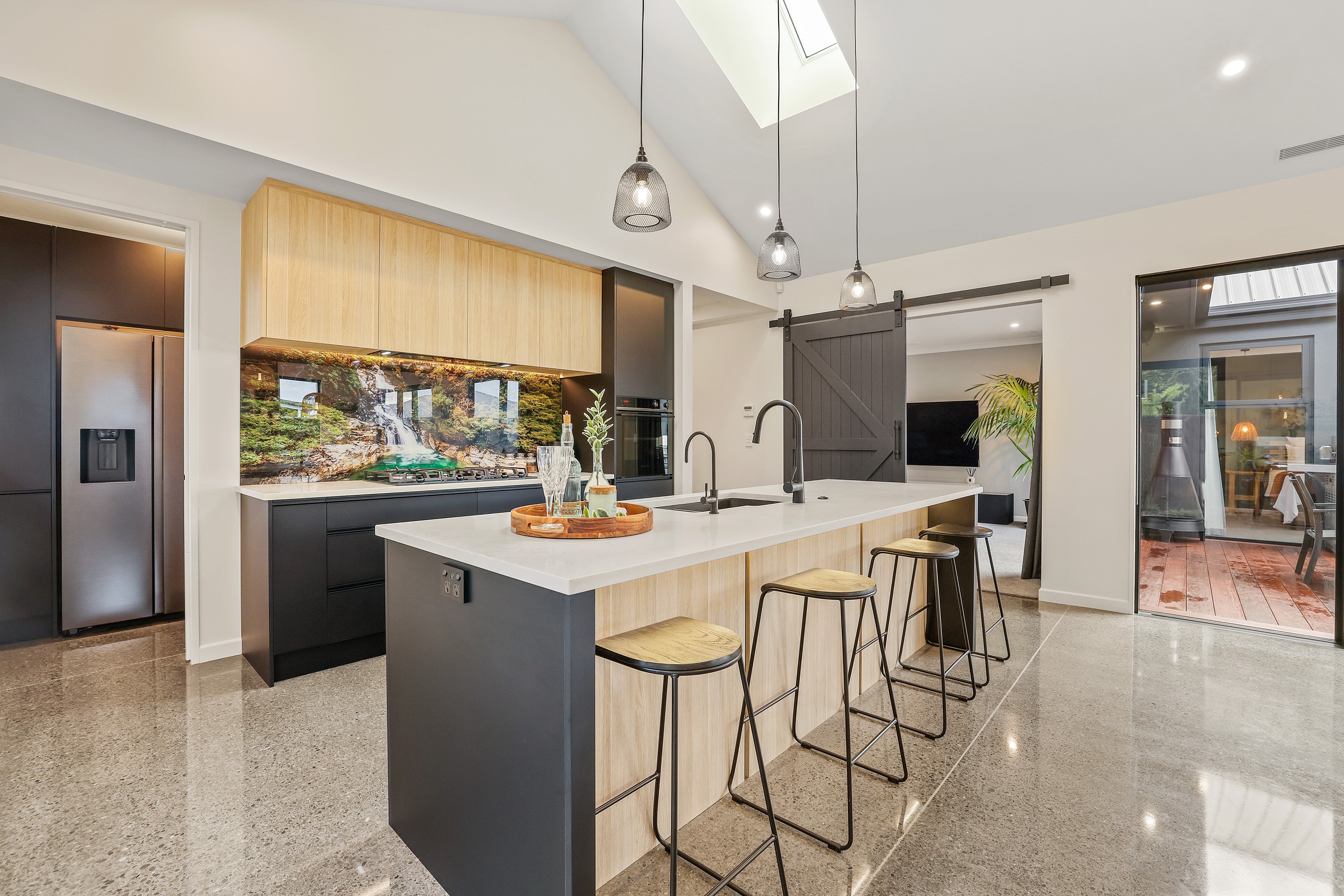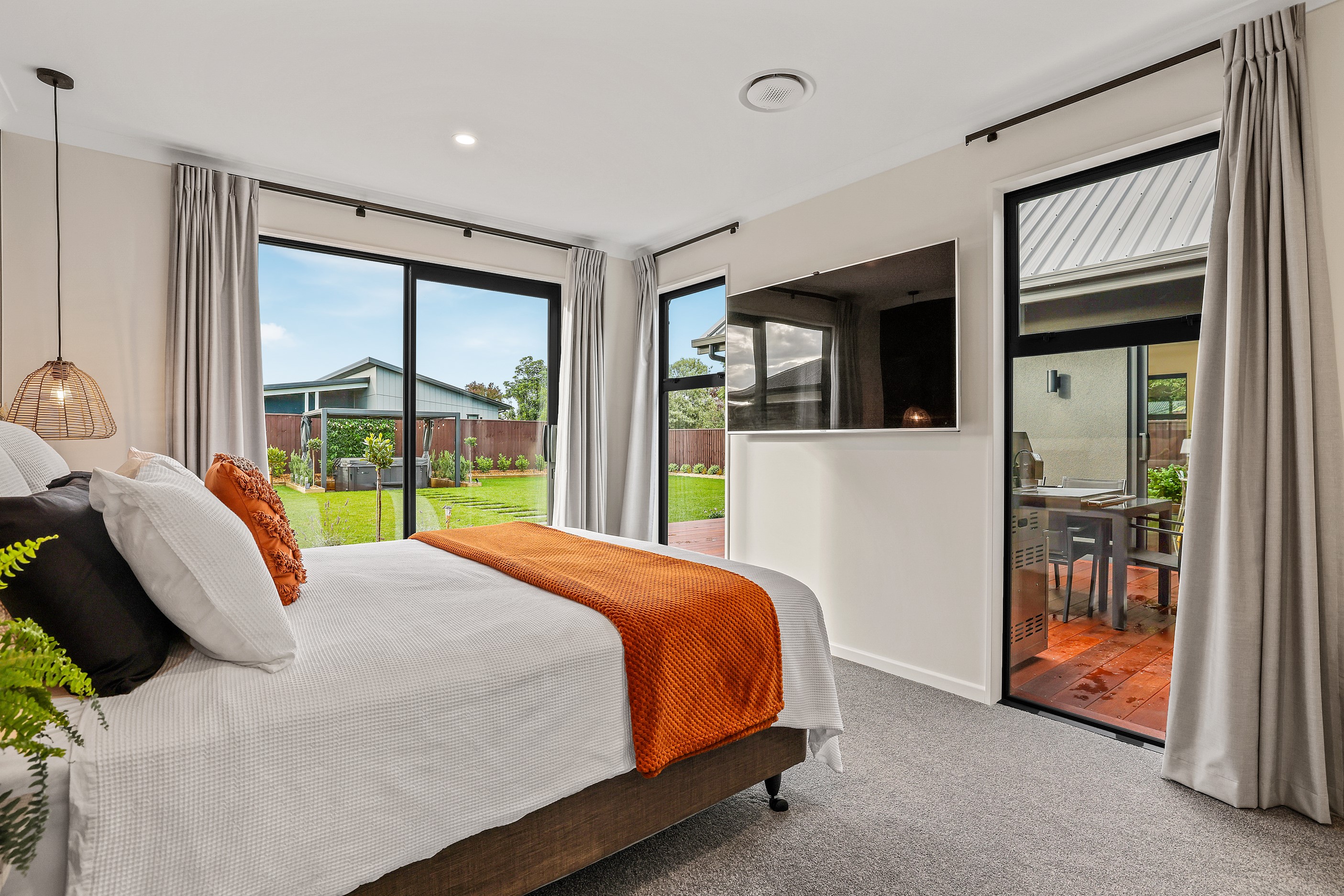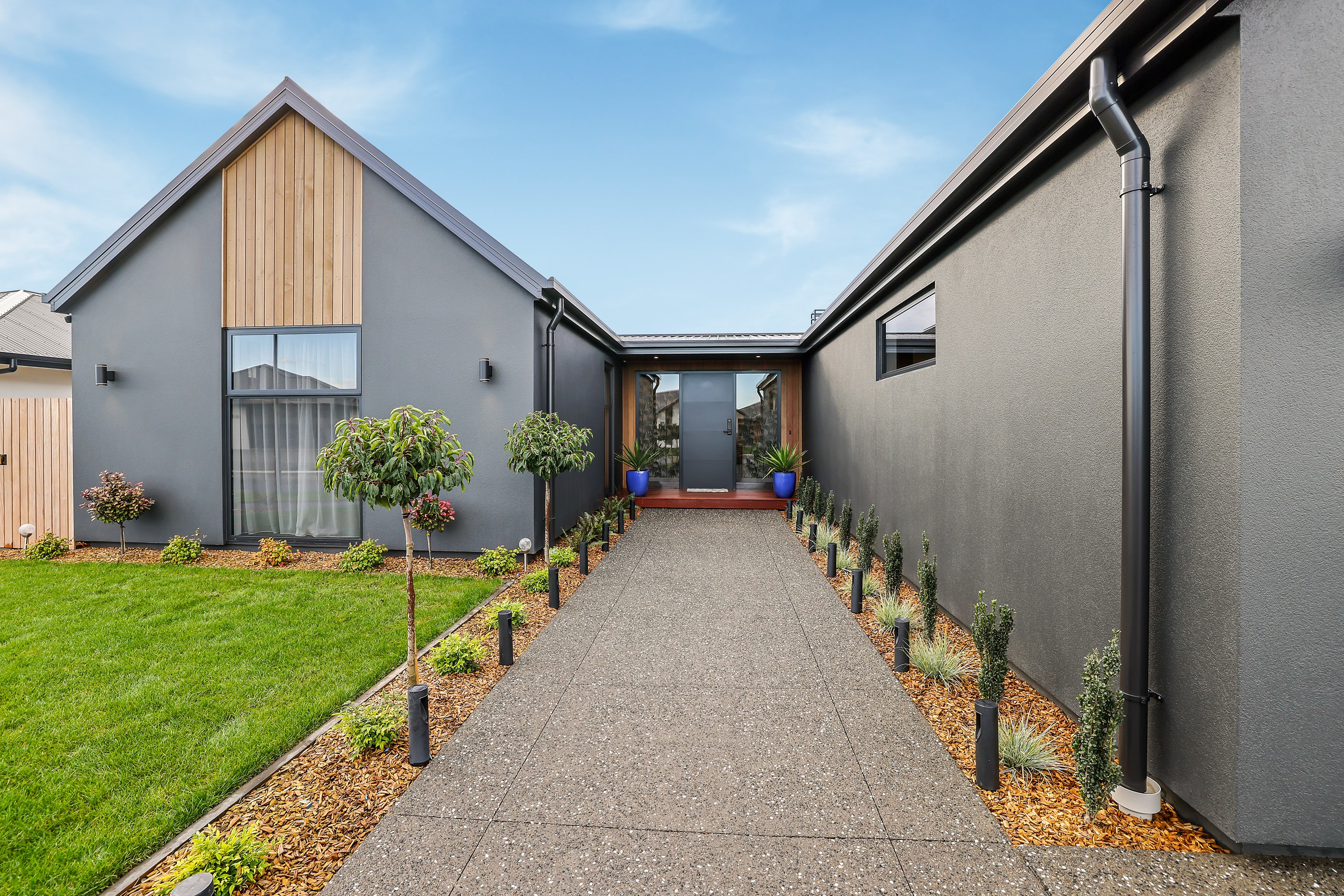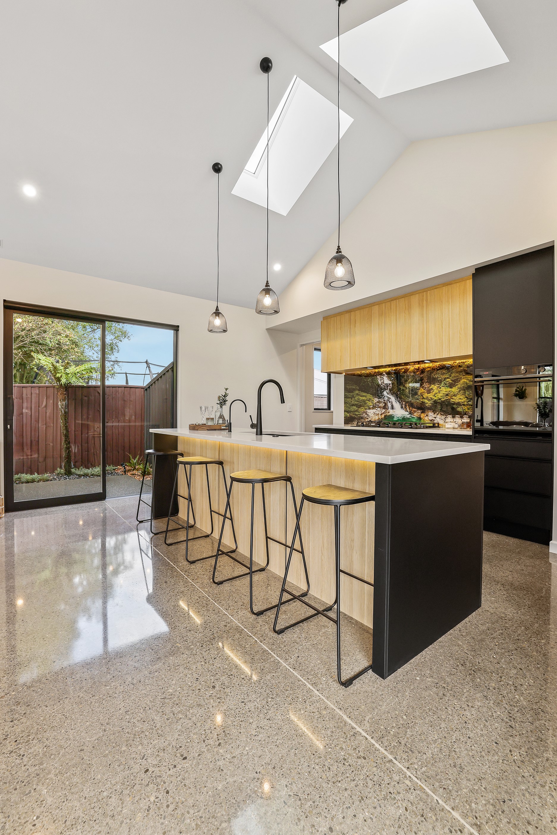 Located in the popular Falcons Landing subdivision, a residential development in sought-after Rolleston, this high-quality home presents easy living at its best. Family life is well catered to with four bedrooms, two bathrooms and two living rooms within the 247sqm H-shaped footprint. The fully equipped kitchen benefits from a spacious scullery, stone benchtops, an attractive splashback and premium appliances. You’ll have the choice of curling up with a book in the large open-plan living area or relaxing in the separate formal lounge. Polished concrete flooring and a full-height stone fireplace demonstrate the excellent craftsmanship found throughout this outstanding family home. A simple yet stylish palette of cedar, black, white and earthy tones feature throughout the property, including the relaxing bathrooms. Soak away the day in the freestanding bath in the main bathroom, or step into the double shower in the superbly appointed ensuite. A seamless transition between indoors and out has been created with the sun-soaked living area spilling out to a decked alfresco entertaining space.