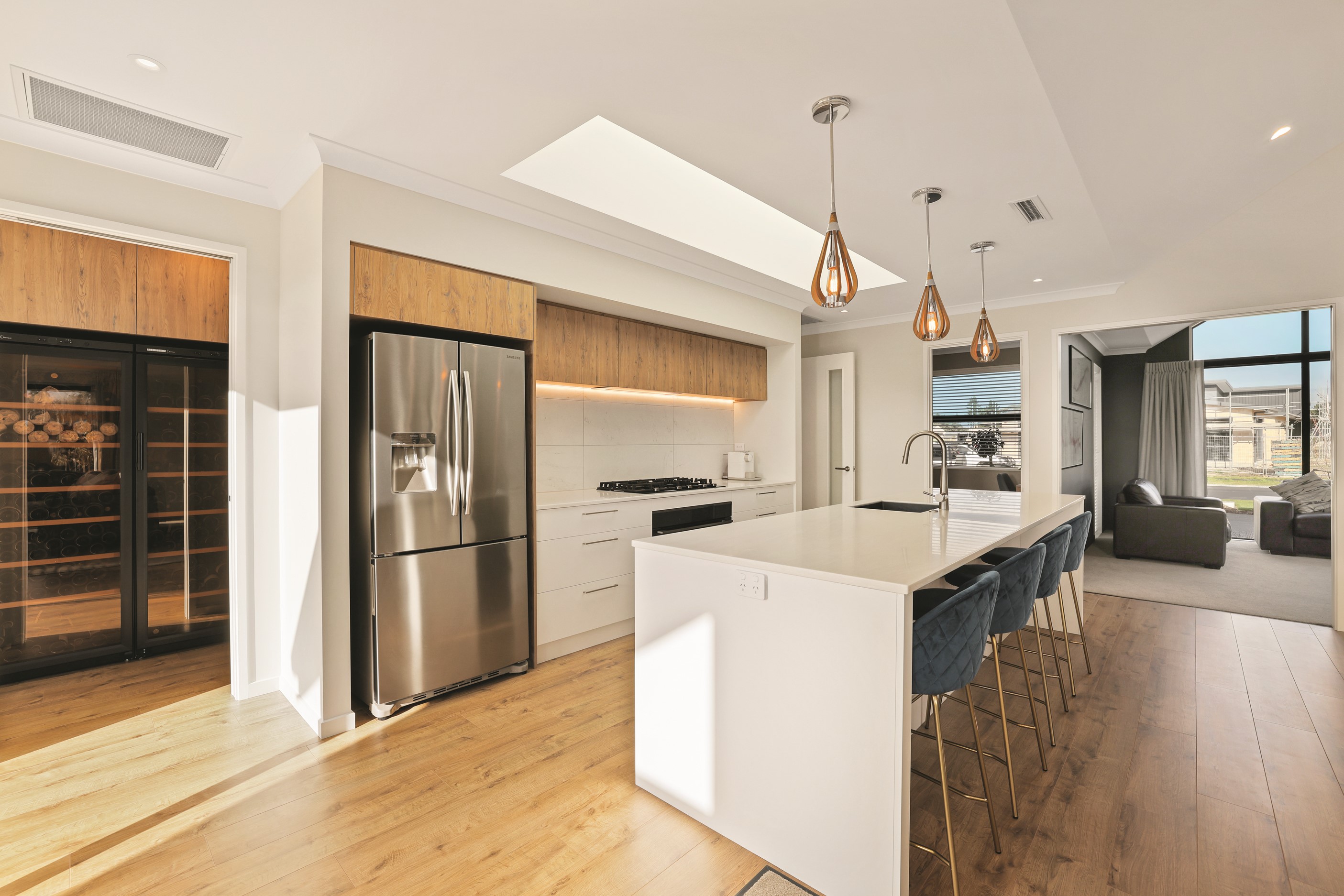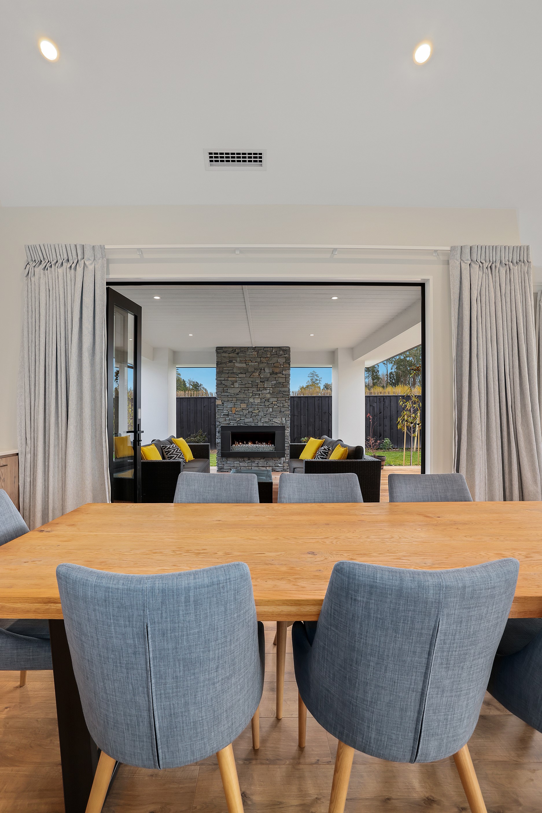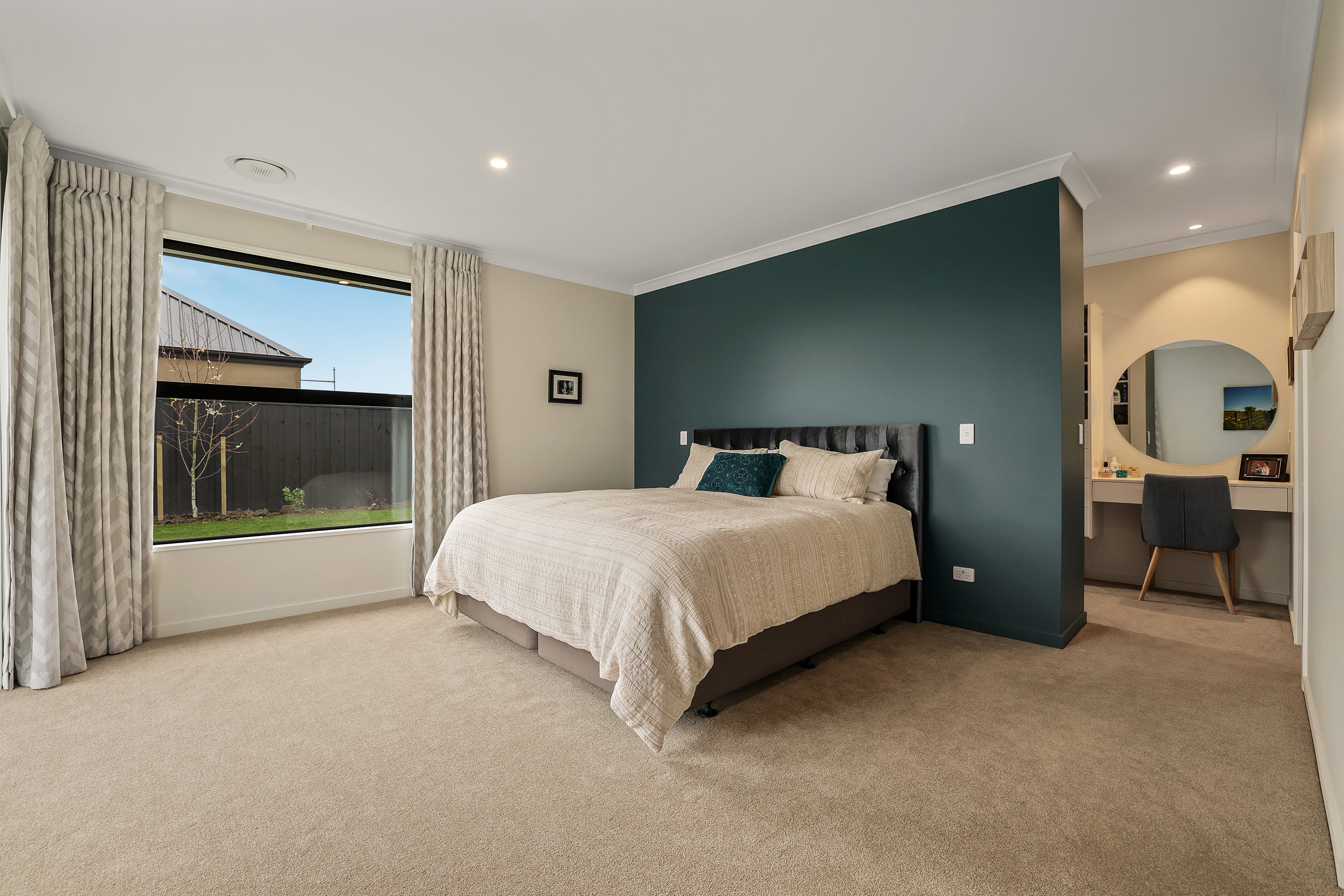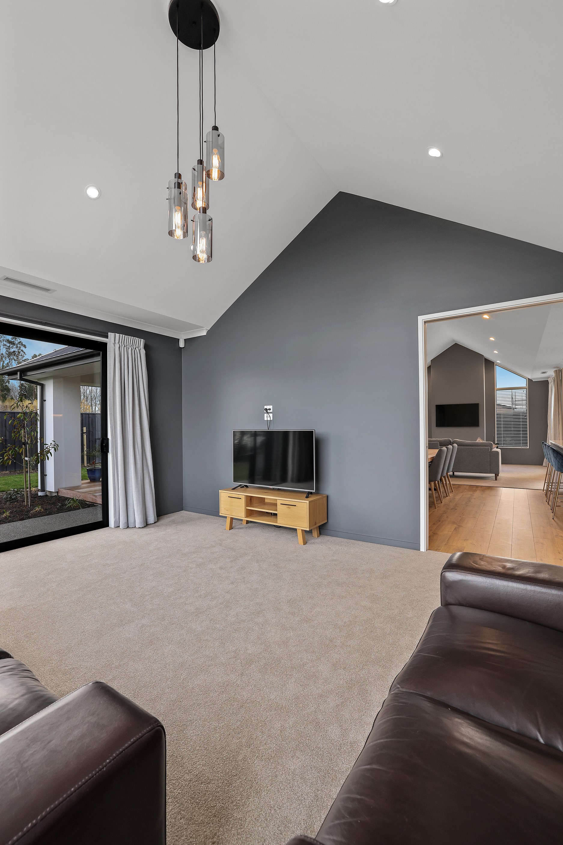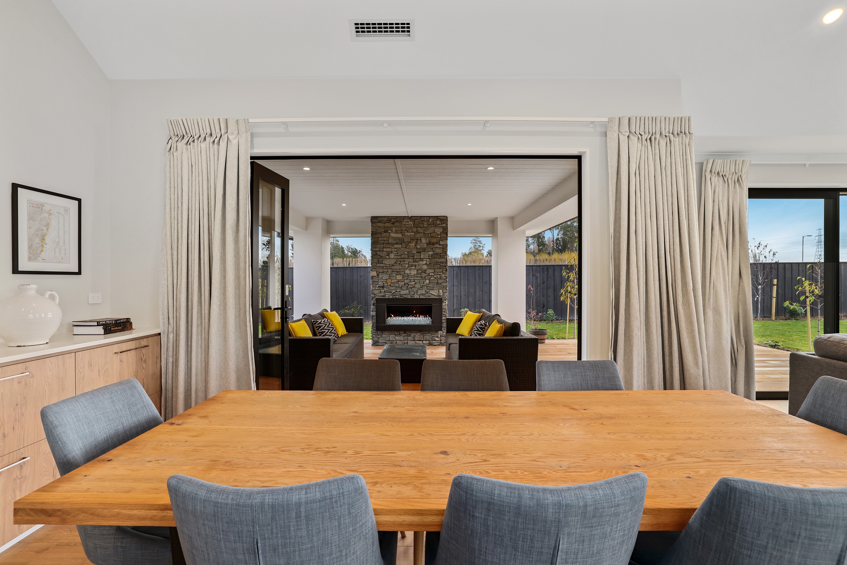 Elegant gable rooflines combine with crisp plaster cladding to create instant street appeal for this modern, stylish home. Feature schist and vertical cedar add to the exterior interest. The four-bedroom home offers 265sqm of floor area and has been designed to meet the homeowner’s brief. The living areas are light and bright with a raking ceiling, and the inbuilt gasfire creates a cosy haven in winter. An executive kitchen forms the heart of the open-plan living space and is complete with a generously sized walk-in pantry, expansive benches and plenty of natural light – thanks to large skylights and windows. A separate lounge adjoins the main living area and is complemented by raking ceilings and a full-height window overlooking the front of the property. Leading from the dining space is an inviting, covered alfresco area that features an outdoor gas fire with an attractive schist surround. The main suite is complete with a luxurious ensuite and walk-in wardrobe. A large family bathroom, separate toilet, laundry, and double garage complete the home.