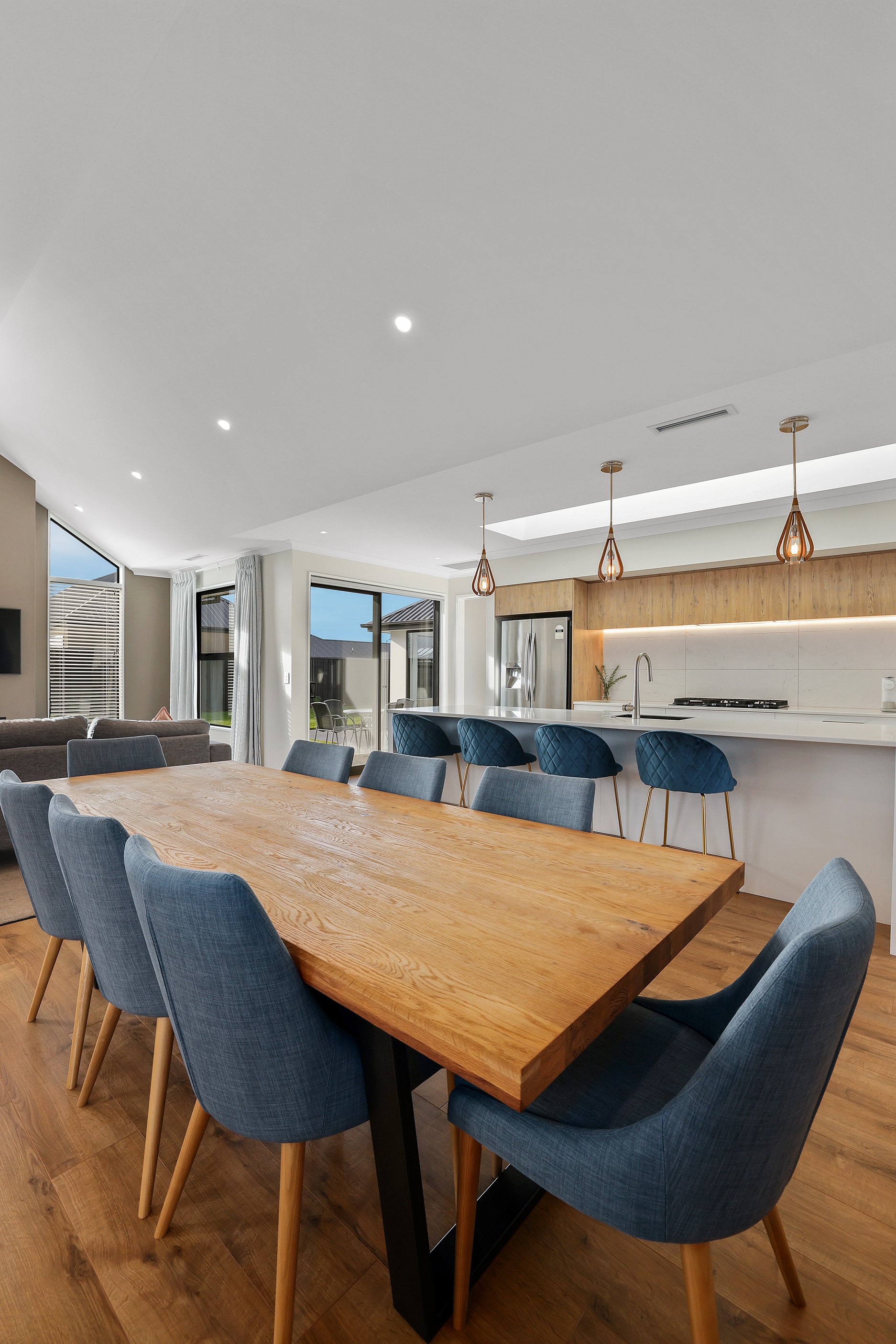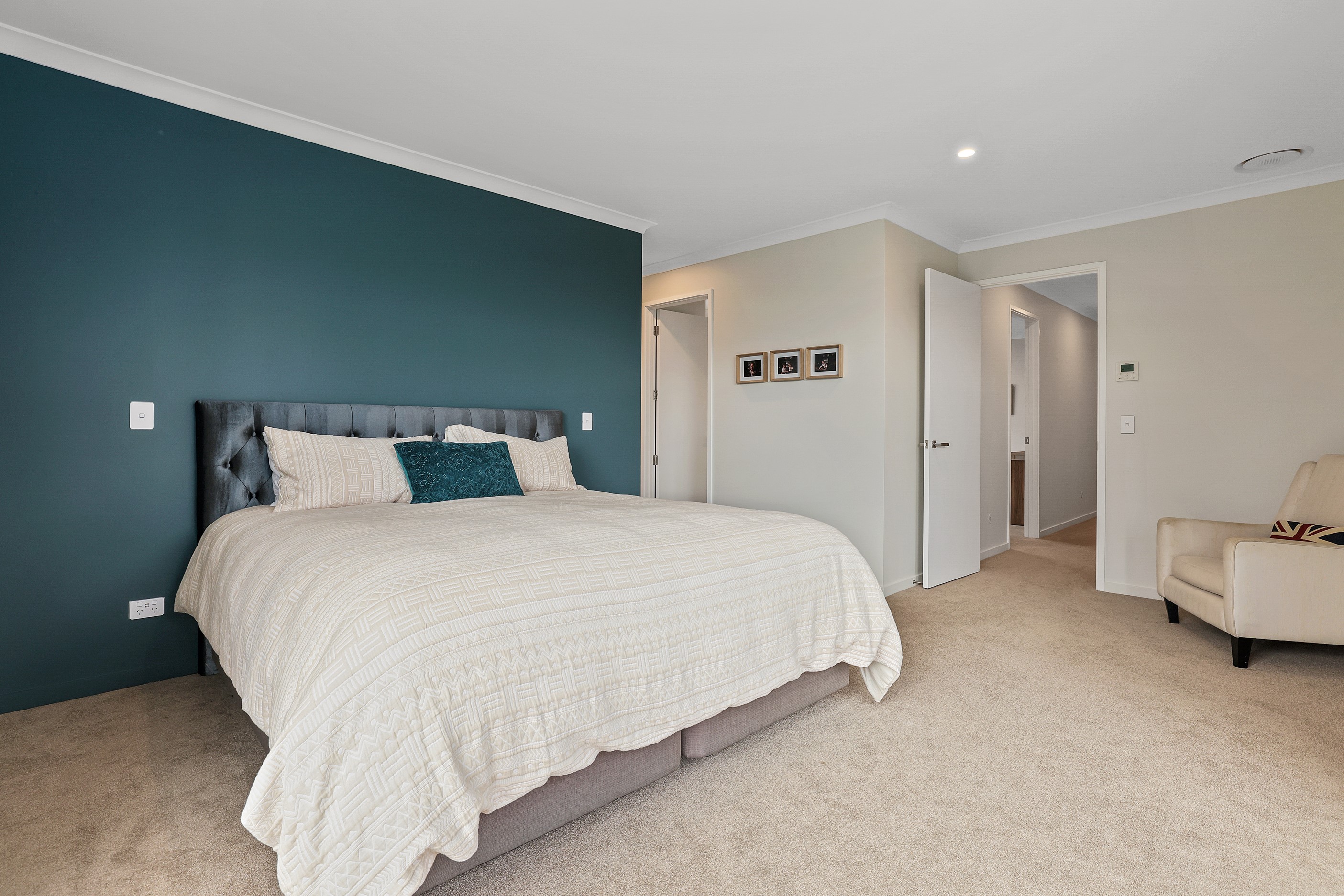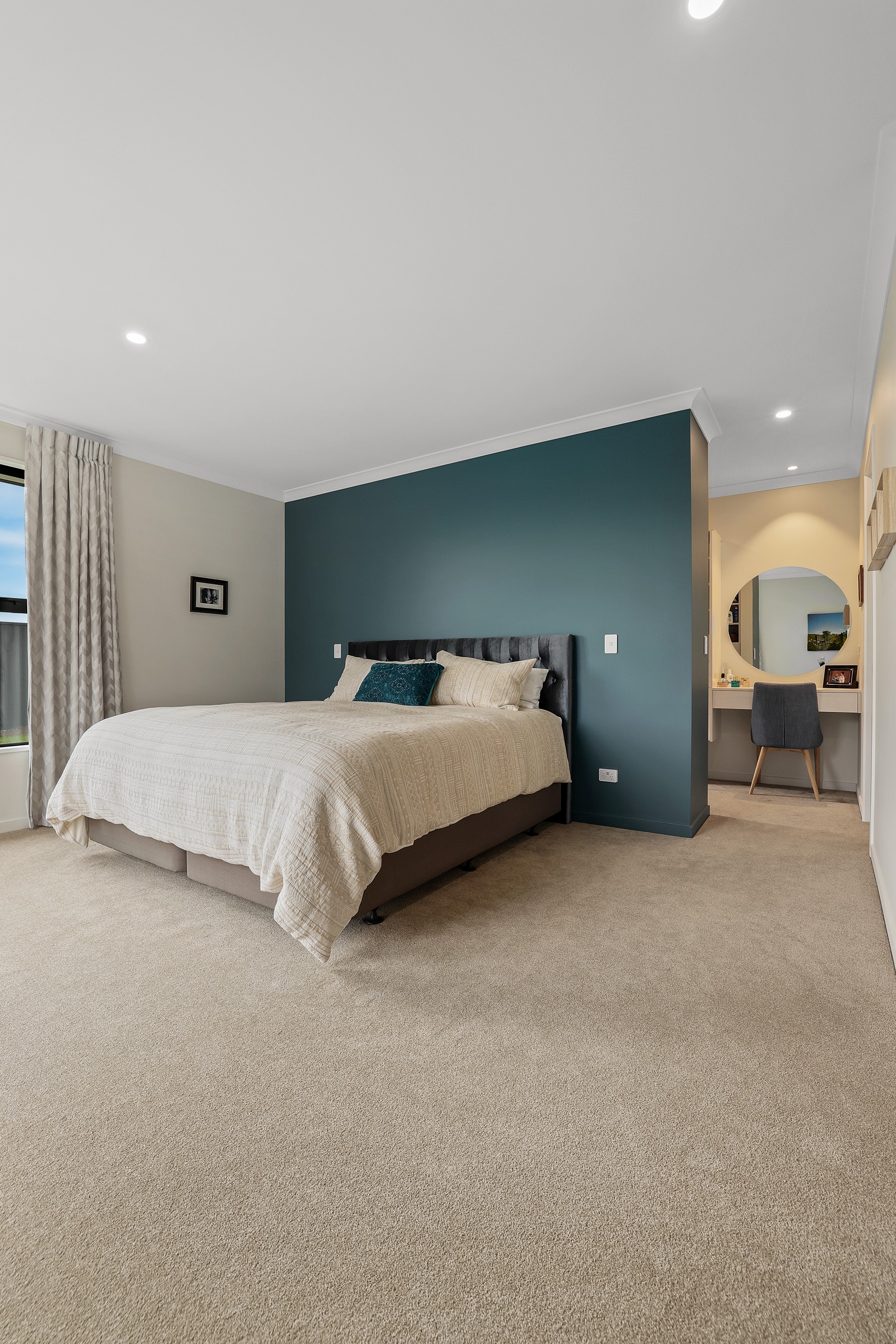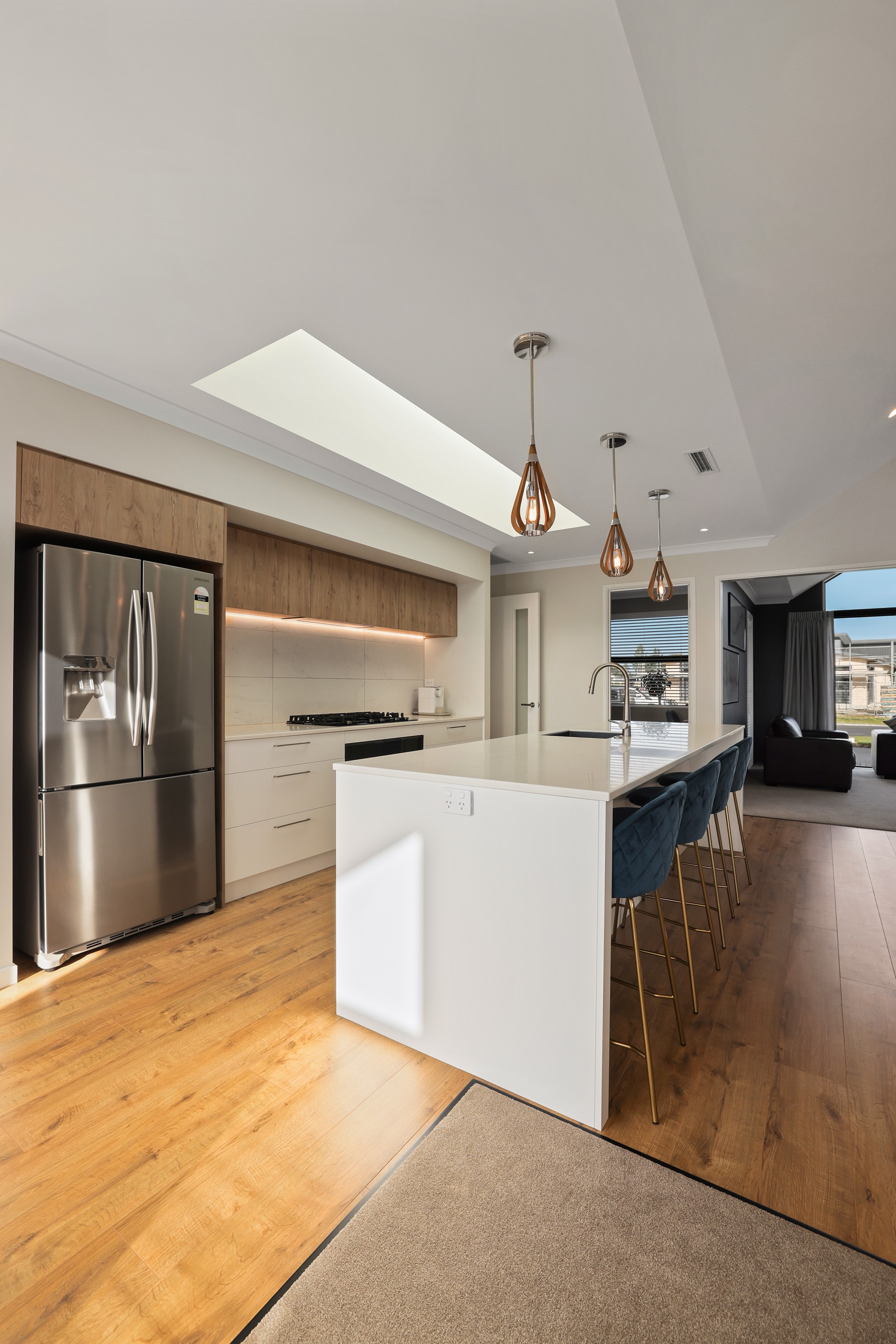 Elegant gable rooflines combine with crisp plaster cladding to create instant street appeal for this modern, stylish home. Feature schist and vertical cedar add to the exterior interest. The four-bedroom home offers 265sqm of floor area and has been designed to meet the homeowner’s brief. The living areas are light and bright with a raking ceiling, and the inbuilt gasfire creates a cosy haven in winter. An executive kitchen forms the heart of the open-plan living space and is complete with a generously sized walk-in pantry, expansive benches and plenty of natural light – thanks to large skylights and windows. A separate lounge adjoins the main living area and is complemented by raking ceilings and a full-height window overlooking the front of the property. Leading from the dining space is an inviting, covered alfresco area that features an outdoor gas fire with an attractive schist surround. The main suite is complete with a luxurious ensuite and walk-in wardrobe. A large family bathroom, separate toilet, laundry, and double garage complete the home.