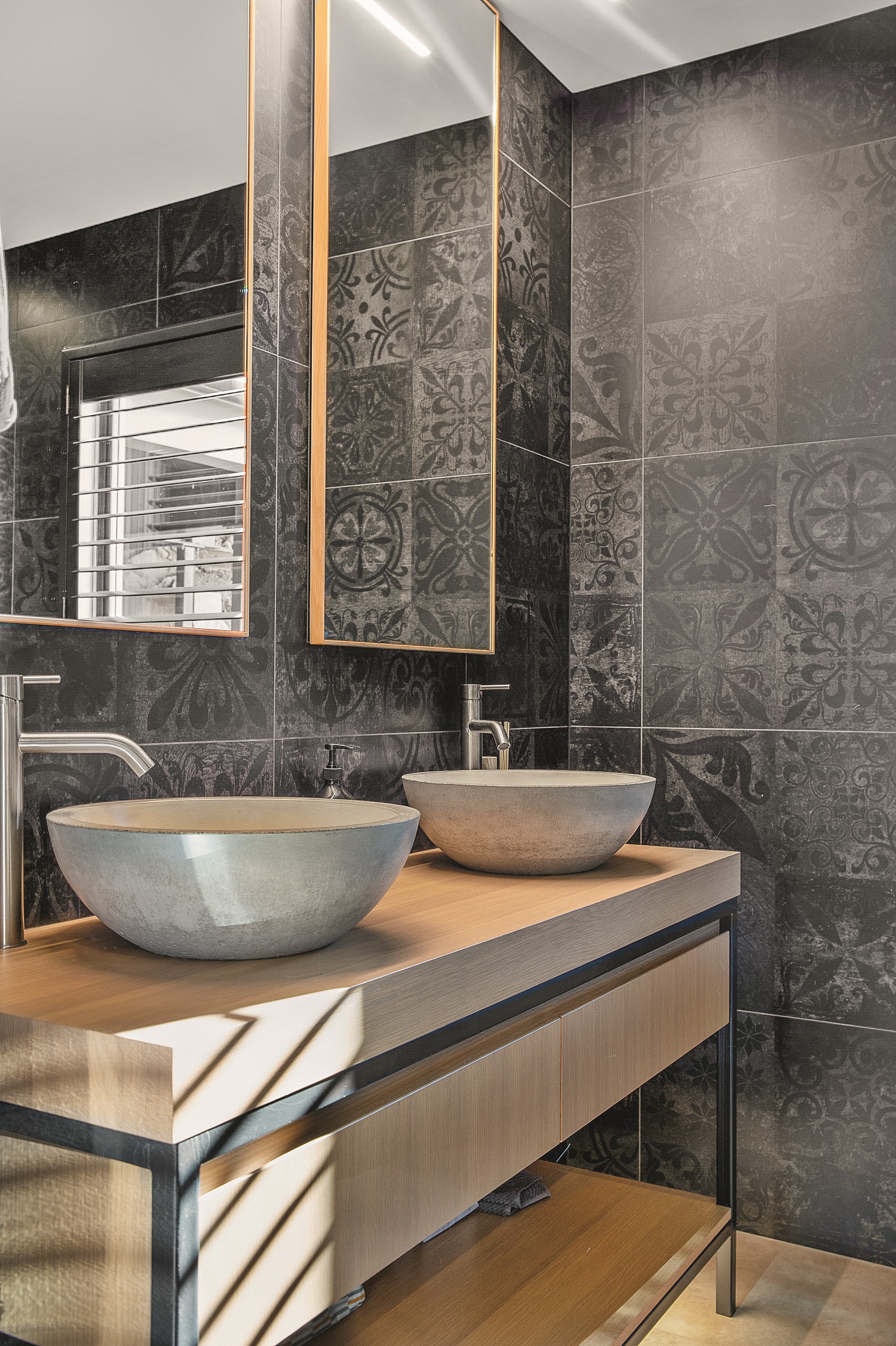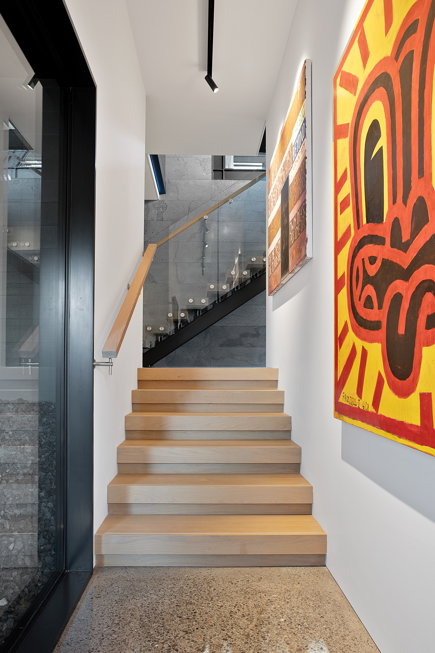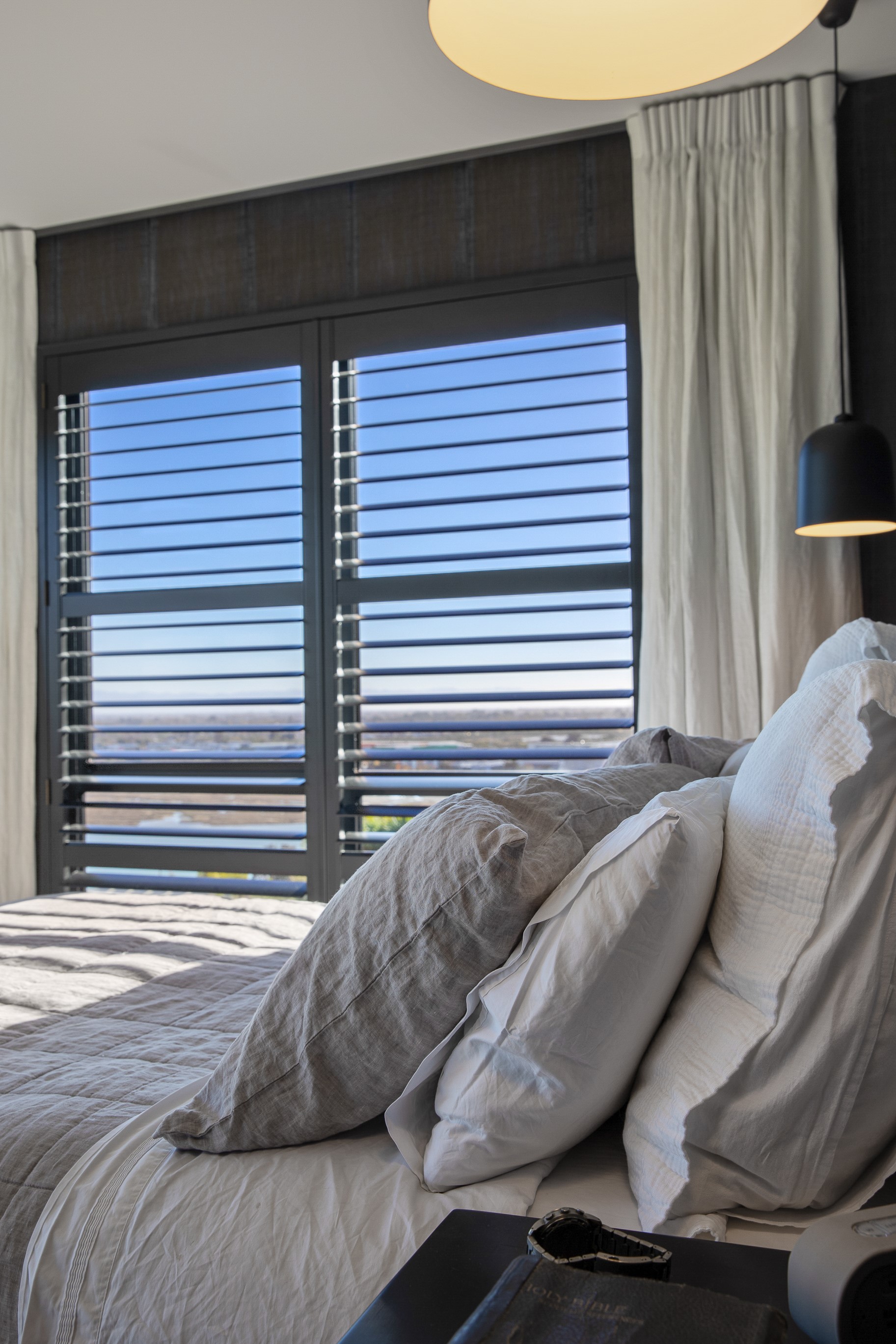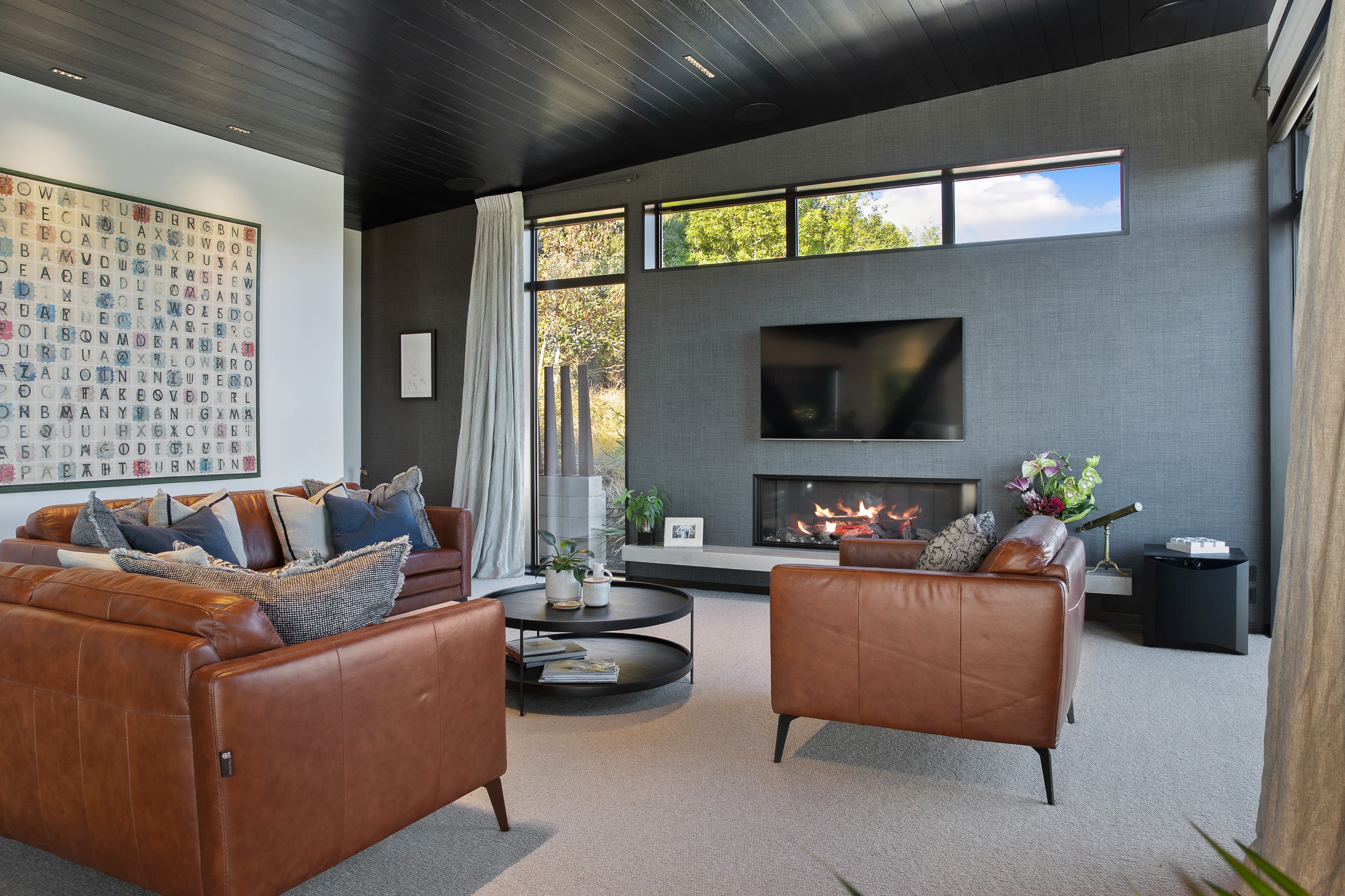 Substantial living on a small footprint is what this home carved into the hillside offers. In 280sqm, you have three levels with three bedrooms and three bathrooms. You’ll find two living areas, a mudroom and a double garage too. The house has been built with an eye to the future, with steel and zinc cladding that ensures the owners can enjoy low-maintenance living on this challenging, sloping section. This house is packed with features. Extensive glazing throughout frames views over Christchurch, the Avon Heathcote Estuary and Southern Alps in the distance. Doors to the balcony beckon the outdoors in and invite the owners outside. Exposed structural steel and timber-lined ceilings add drama to the living spaces. These materials are perfectly complemented by the sleek kitchen in gunmetal grey. Grey shades are repeated in the bathrooms and other parts of the home. A glazed panel on the first floor lets natural light flood into the entrance and throws a spotlight on the feature stairway with floating timber treads.
