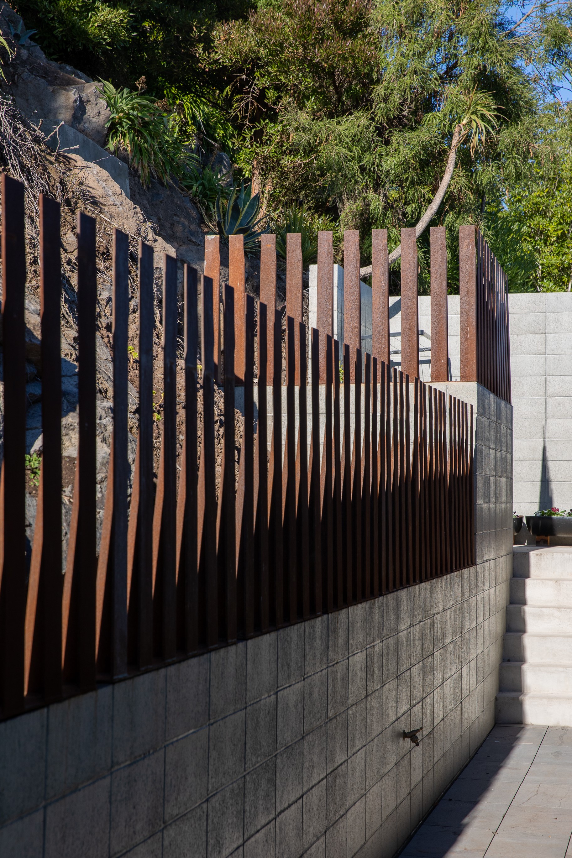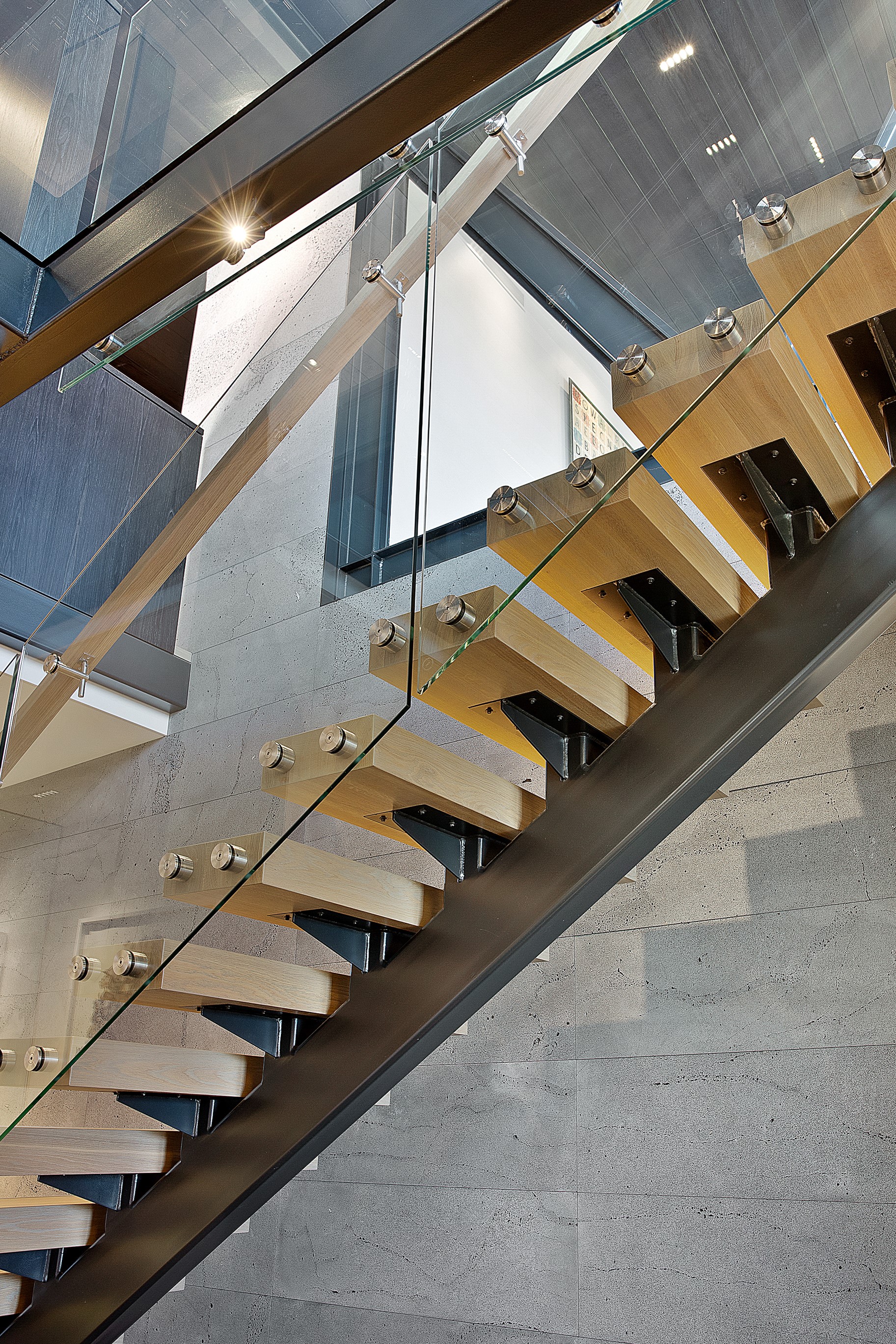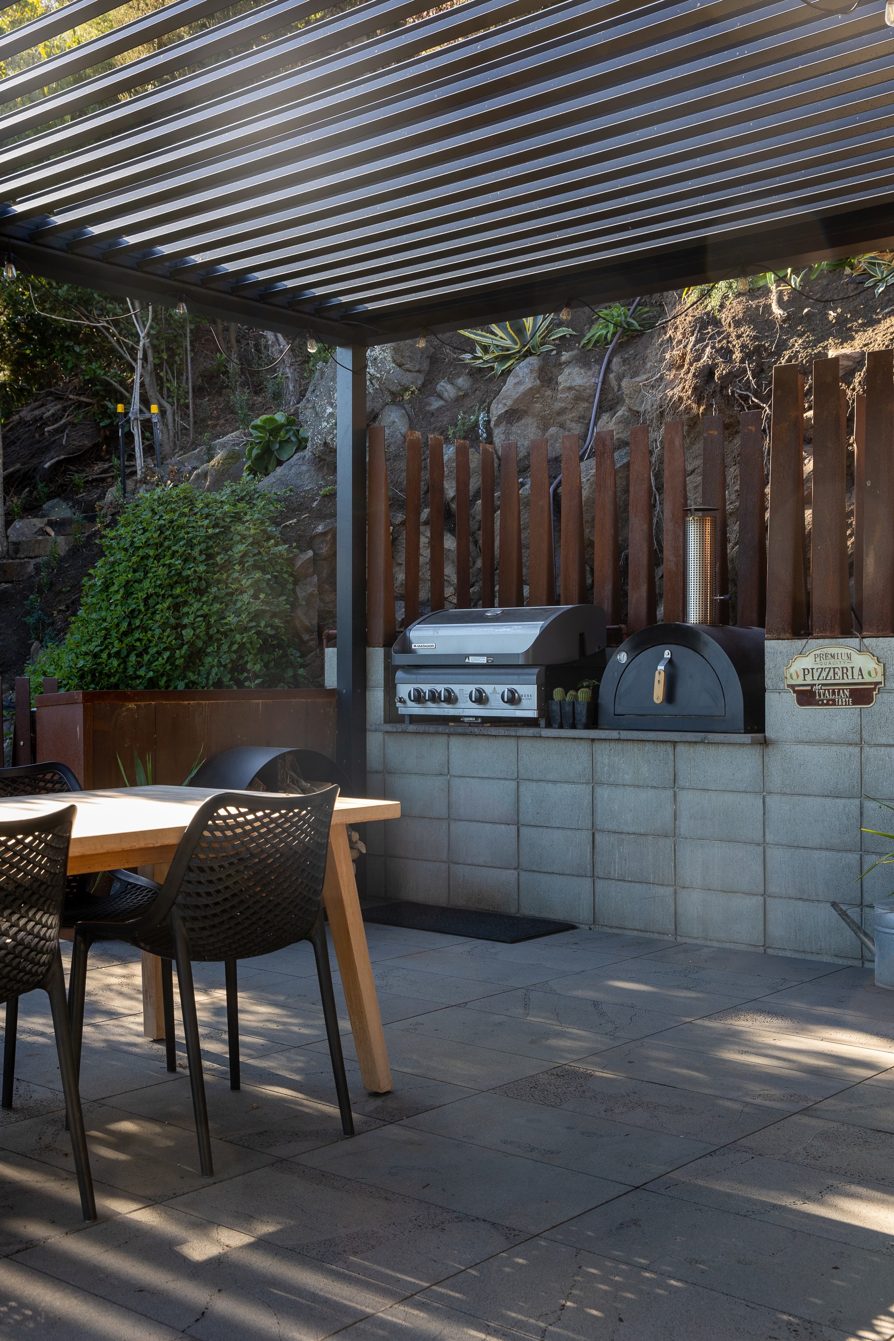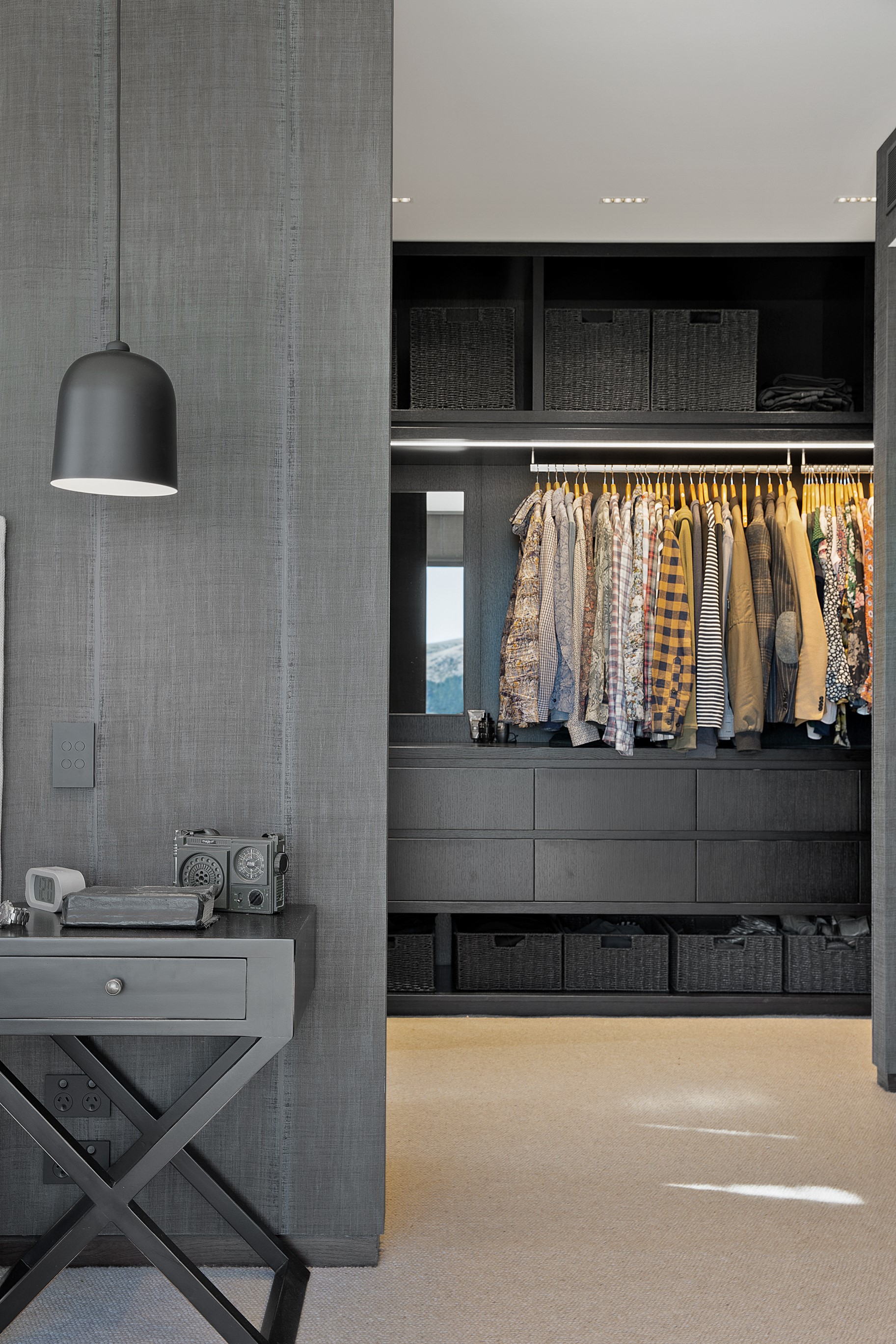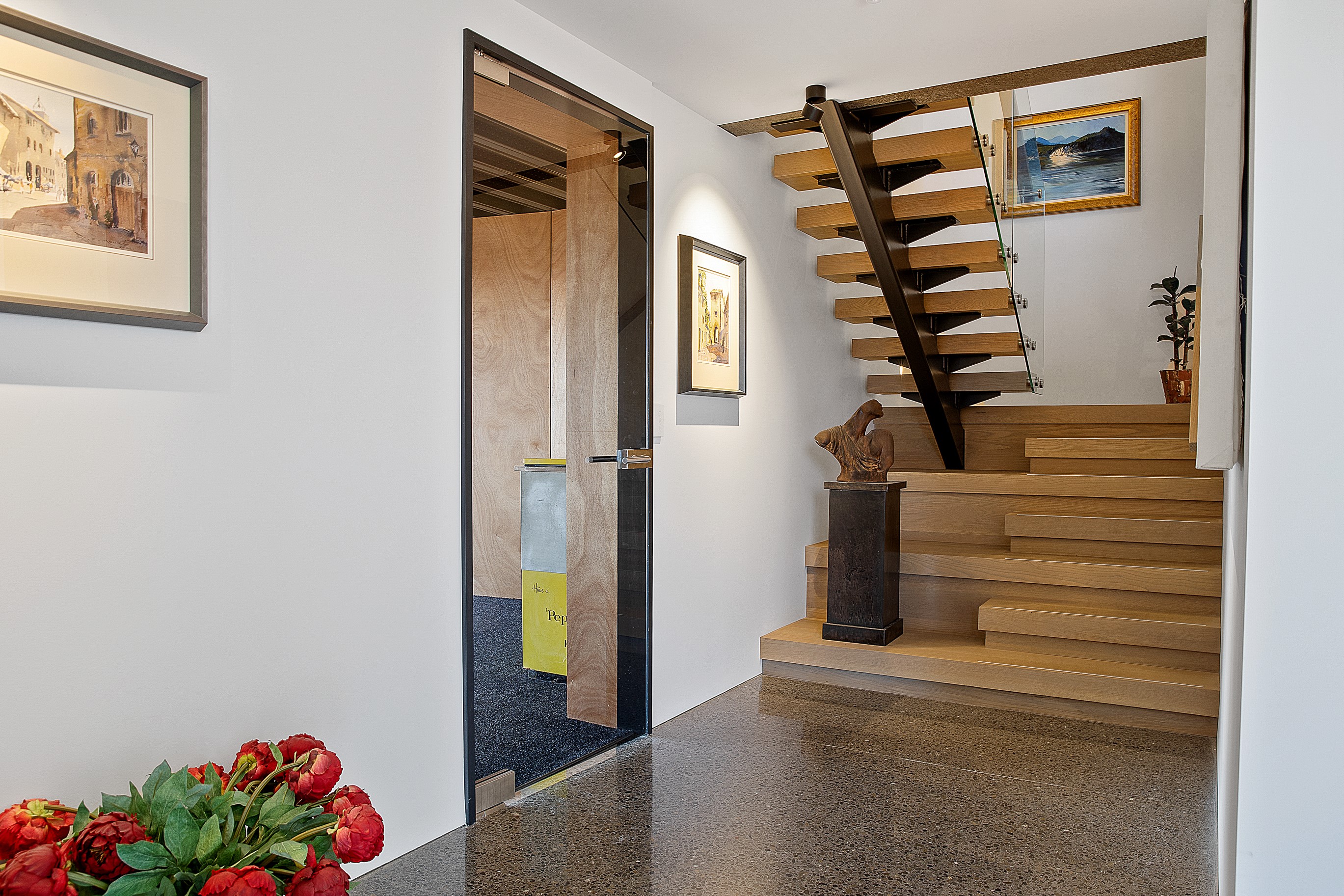 Substantial living on a small footprint is what this home carved into the hillside offers. In 280sqm, you have three levels with three bedrooms and three bathrooms. You’ll find two living areas, a mudroom and a double garage too. The house has been built with an eye to the future, with steel and zinc cladding that ensures the owners can enjoy low-maintenance living on this challenging, sloping section. This house is packed with features. Extensive glazing throughout frames views over Christchurch, the Avon Heathcote Estuary and Southern Alps in the distance. Doors to the balcony beckon the outdoors in and invite the owners outside. Exposed structural steel and timber-lined ceilings add drama to the living spaces. These materials are perfectly complemented by the sleek kitchen in gunmetal grey. Grey shades are repeated in the bathrooms and other parts of the home. A glazed panel on the first floor lets natural light flood into the entrance and throws a spotlight on the feature stairway with floating timber treads.