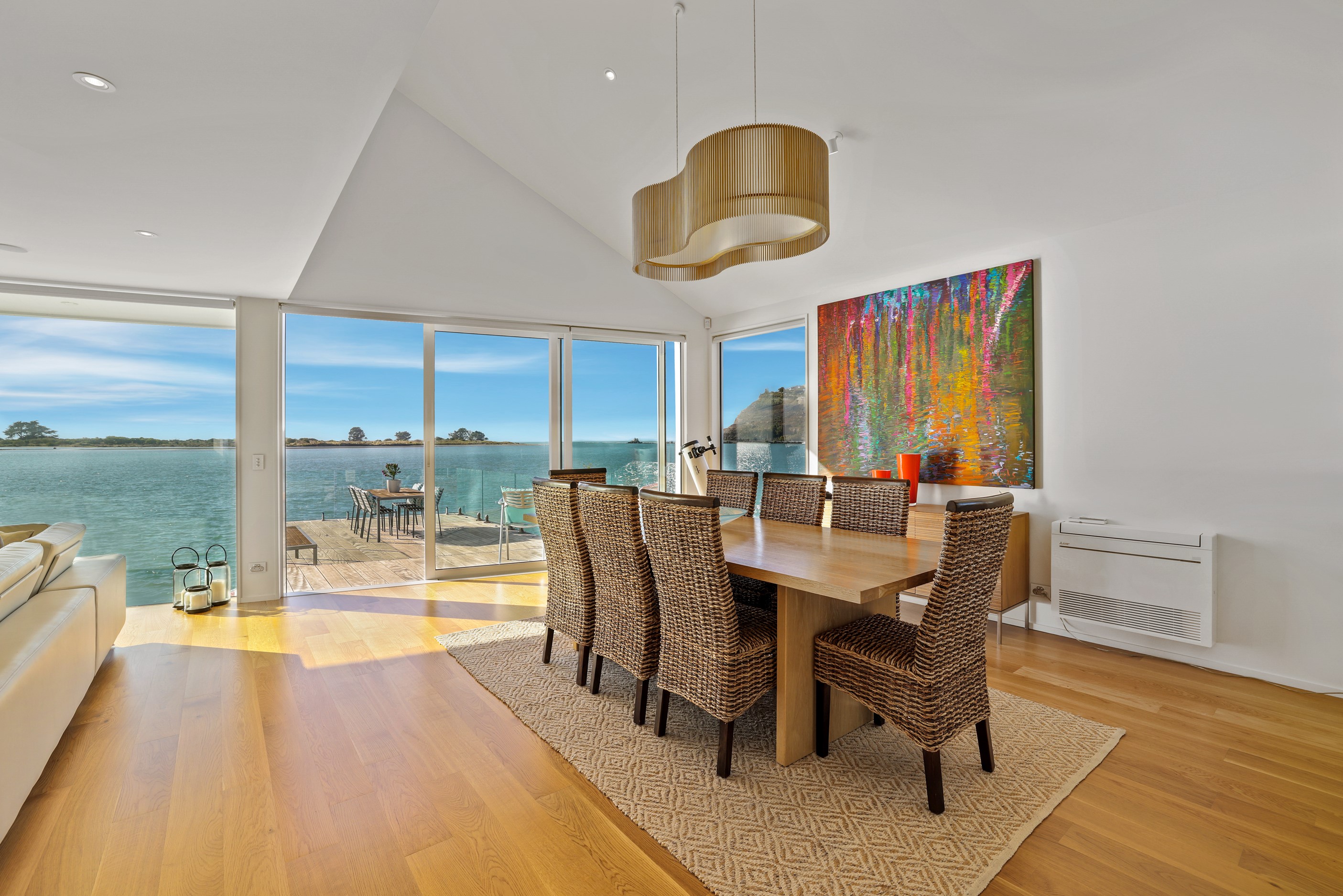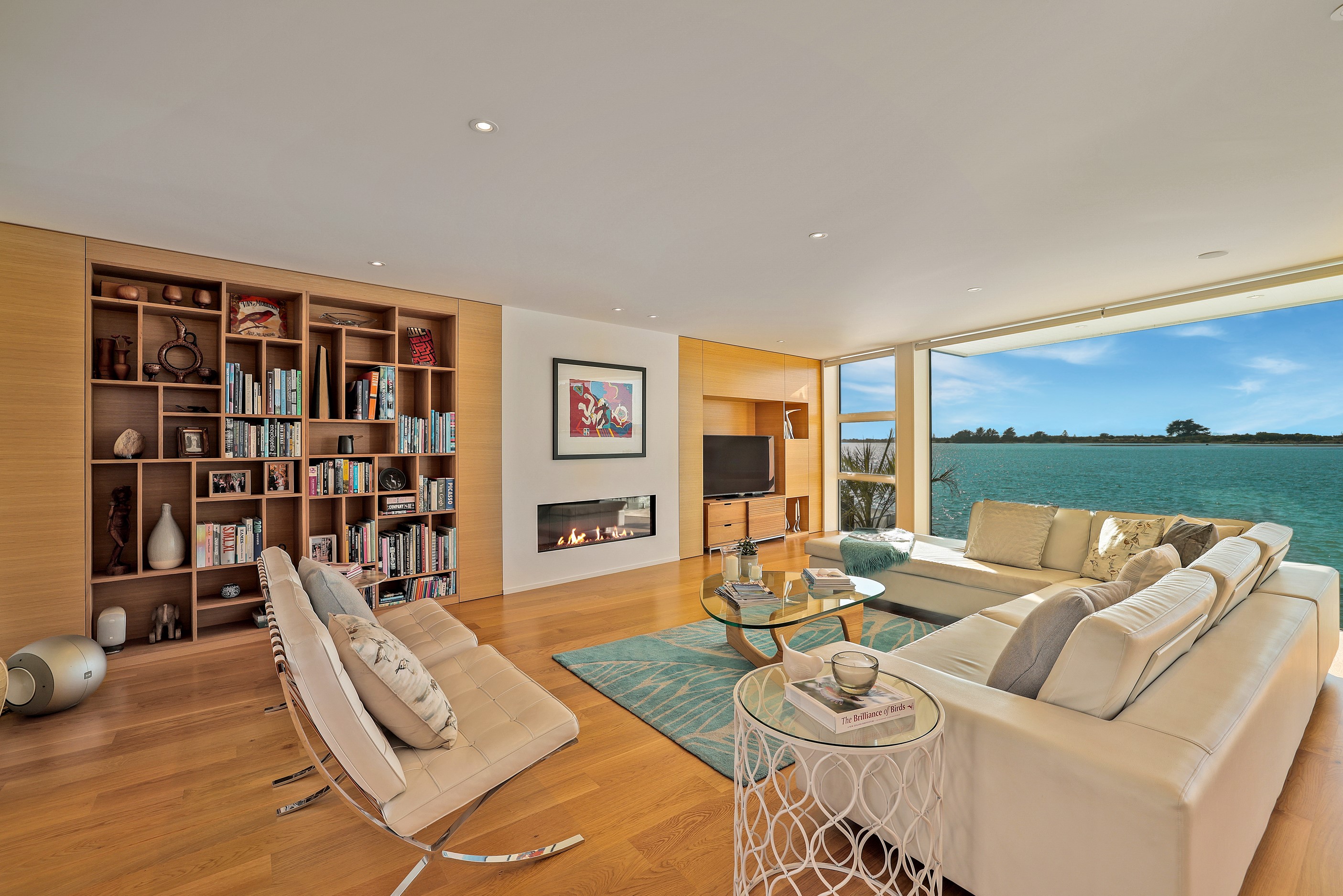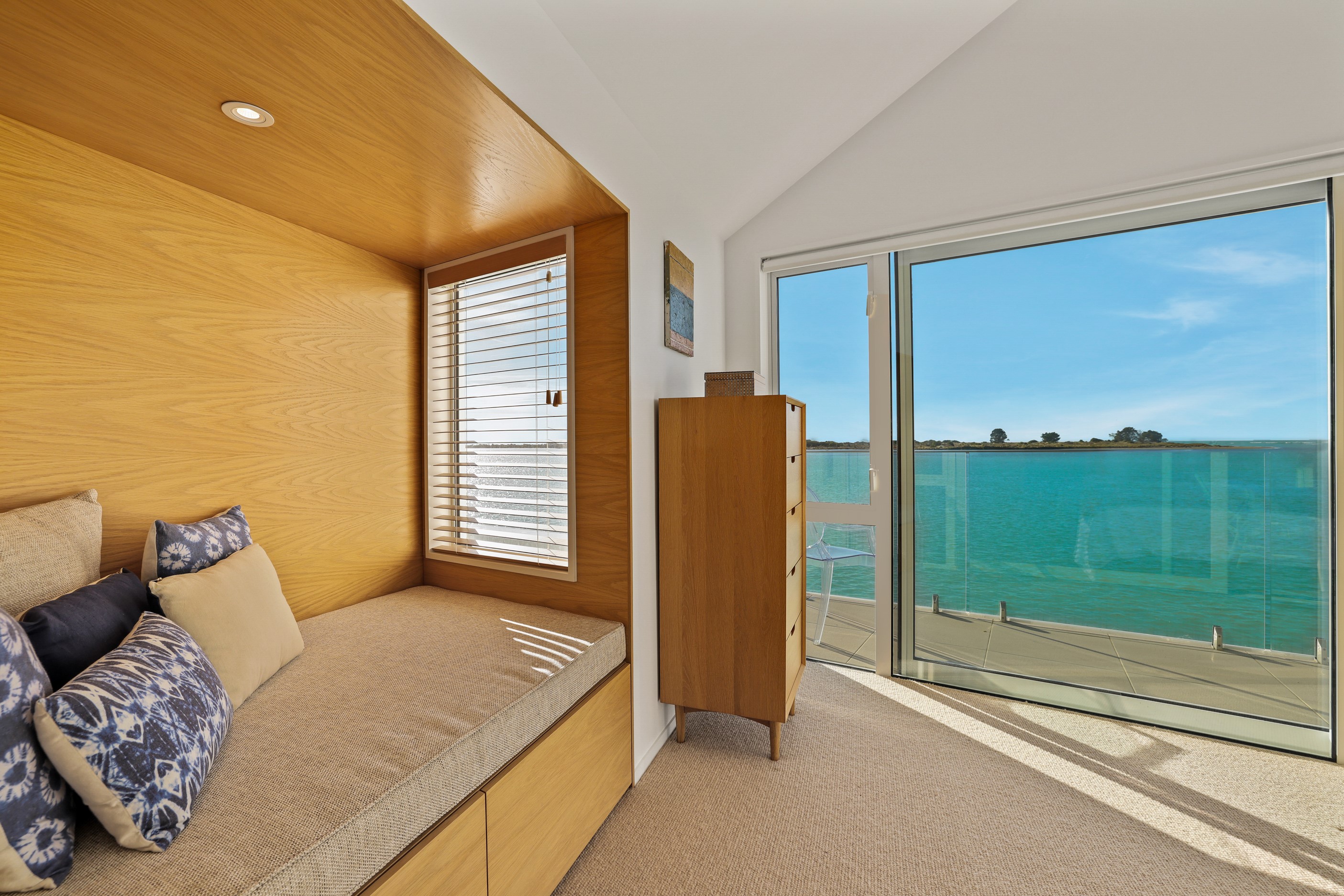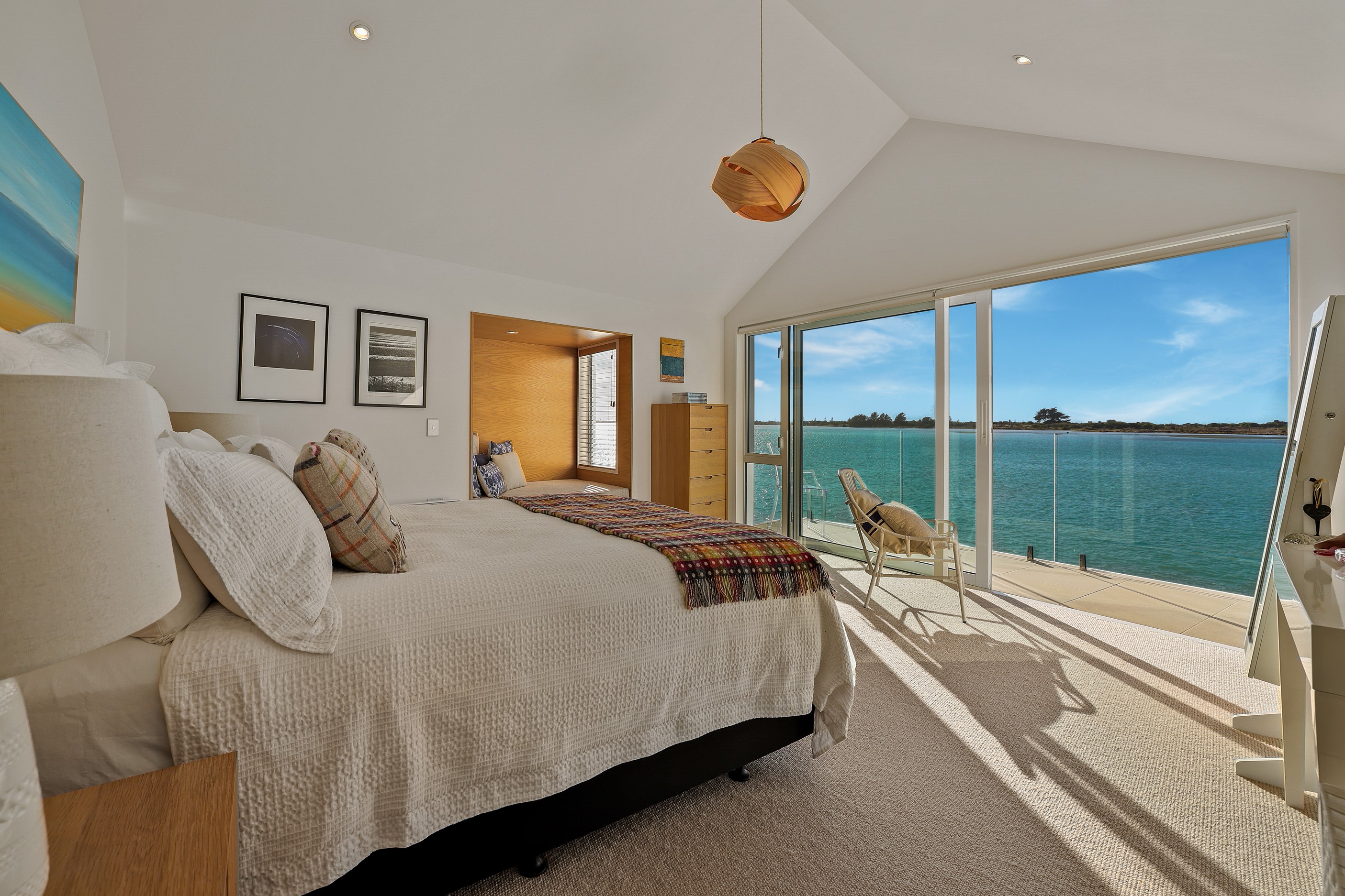 Idyllically located on the edge of the Avon Heathcote Estuary, this four-bedroom, 353sqm home extends over the water, taking full advantage of its enviable position to offer informal seaside living. To maximise the water views, the open-plan living and dining areas feature continuous glazing, affording a floor-to-ceiling outlook across the estuary to South Brighton Spit, Sumner Bar and the ocean beyond. The main window is the largest double-glazed unit produced for a Christchurch residence, allowing the homeowners to take in the picture-postcard scenery beyond. The partially covered, central courtyard provides a sunny, sheltered retreat protected from the prevailing easterly wind, yet still capturing the estuary vista. The main bedroom is situated on the upper level to capitalise on the view, and the home office looks across the courtyard, through the living-room glazing and out to the water. As this is an architect’s own home, the effort to achieve a meticulous finish was great and is evidenced in the crisp, contemporary detailing throughout.