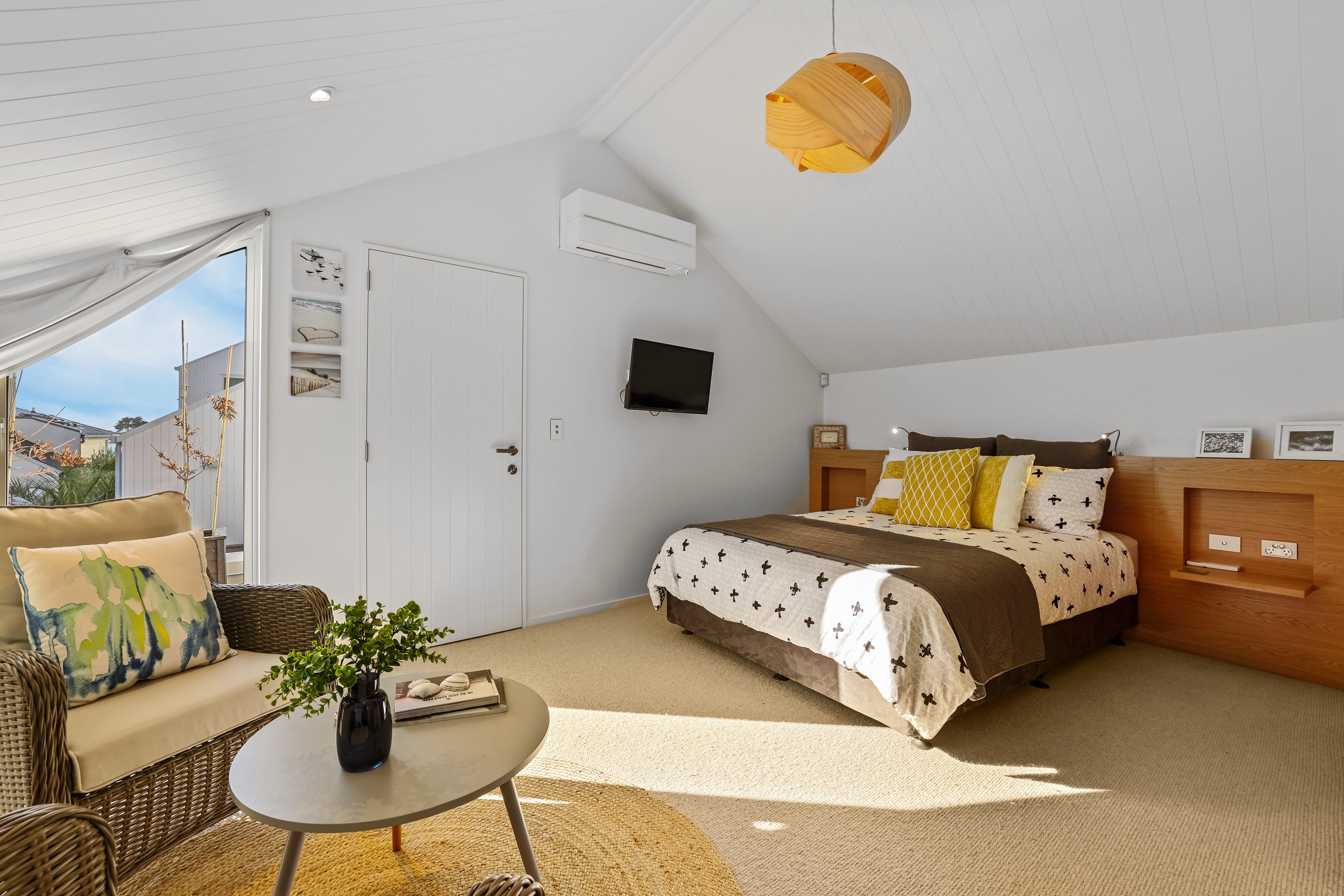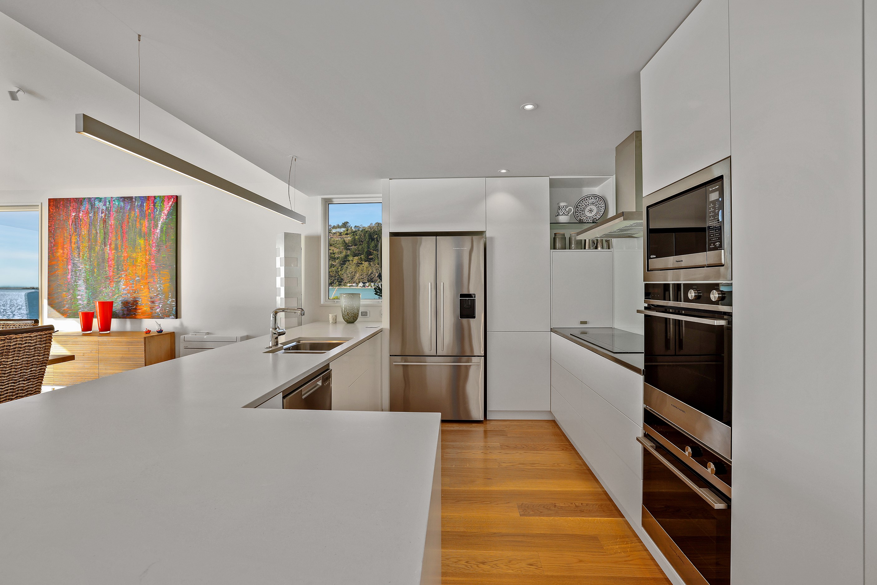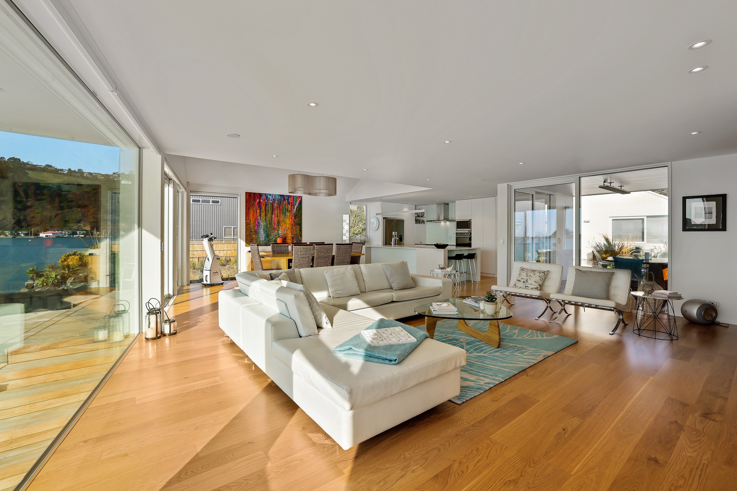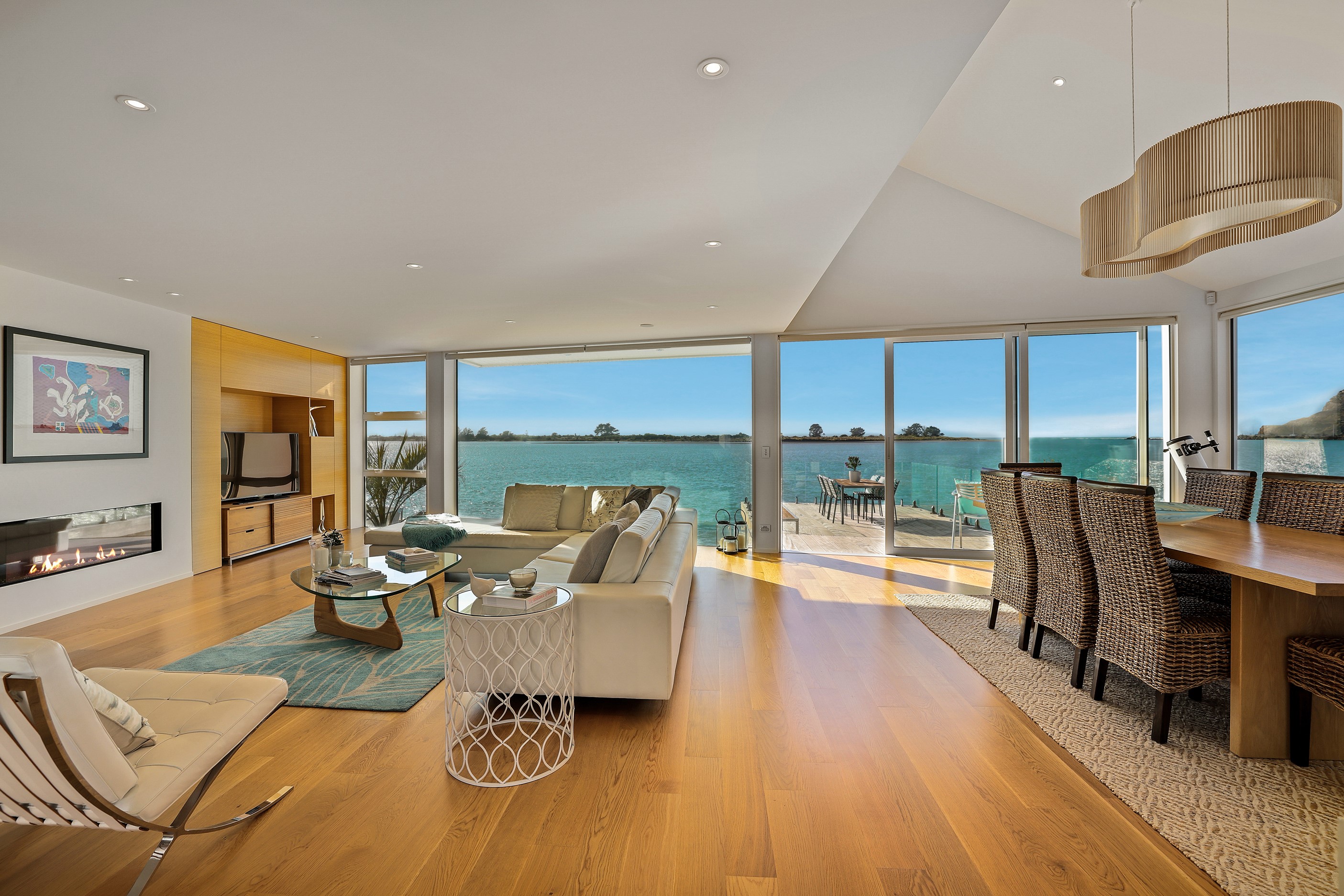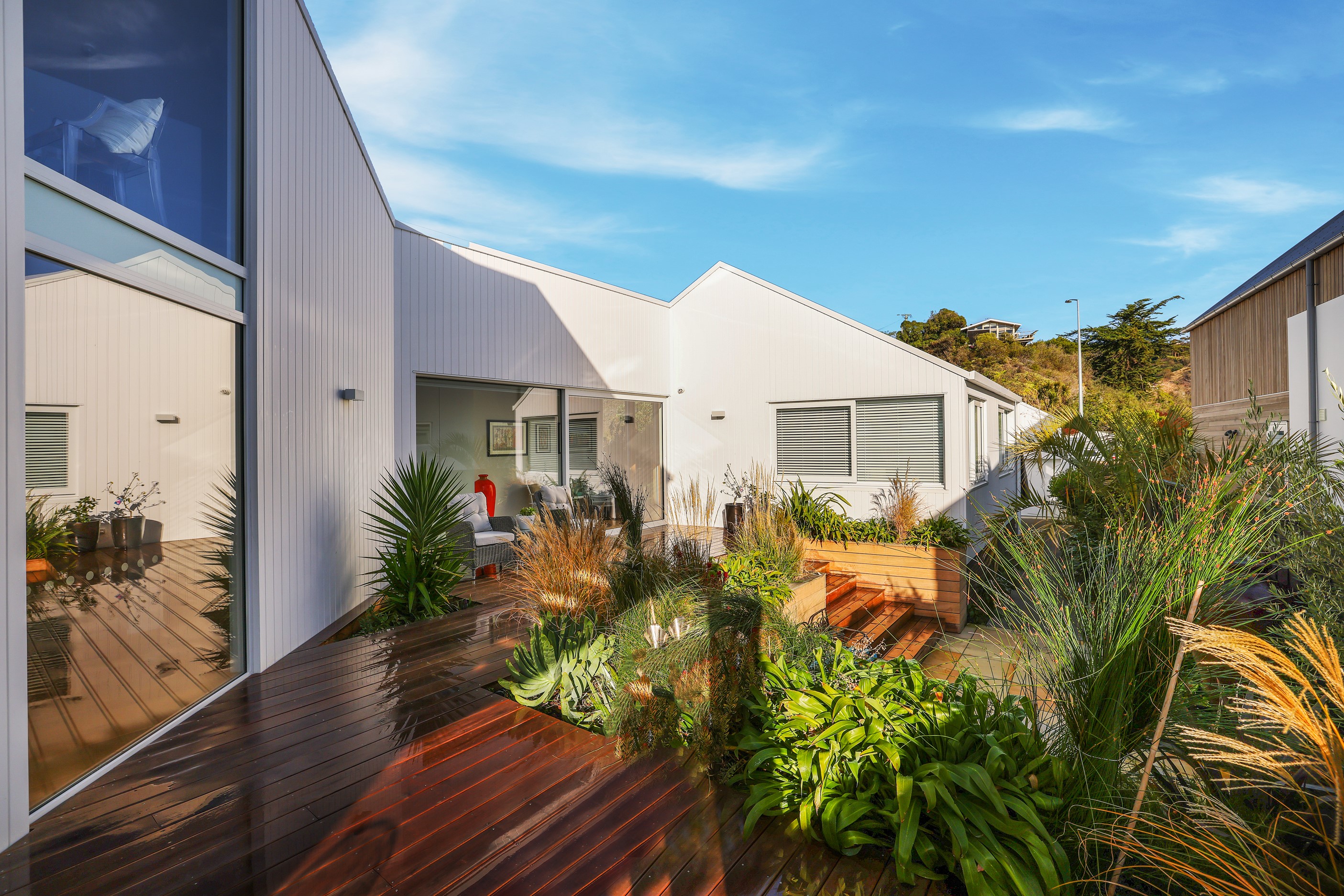 Idyllically located on the edge of the Avon Heathcote Estuary, this four-bedroom, 353sqm home extends over the water, taking full advantage of its enviable position to offer informal seaside living. To maximise the water views, the open-plan living and dining areas feature continuous glazing, affording a floor-to-ceiling outlook across the estuary to South Brighton Spit, Sumner Bar and the ocean beyond. The main window is the largest double-glazed unit produced for a Christchurch residence, allowing the homeowners to take in the picture-postcard scenery beyond. The partially covered, central courtyard provides a sunny, sheltered retreat protected from the prevailing easterly wind, yet still capturing the estuary vista. The main bedroom is situated on the upper level to capitalise on the view, and the home office looks across the courtyard, through the living-room glazing and out to the water. As this is an architect’s own home, the effort to achieve a meticulous finish was great and is evidenced in the crisp, contemporary detailing throughout.