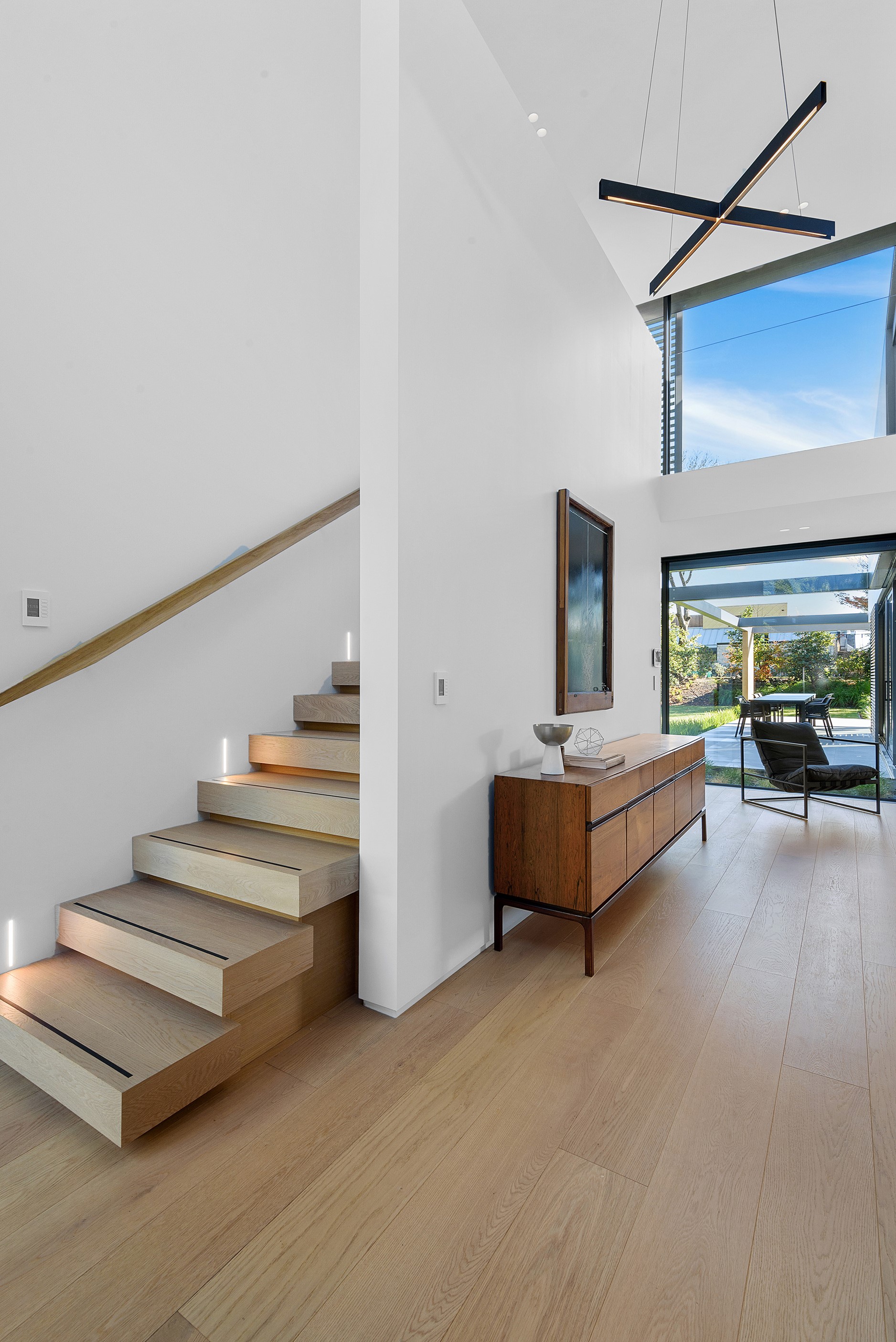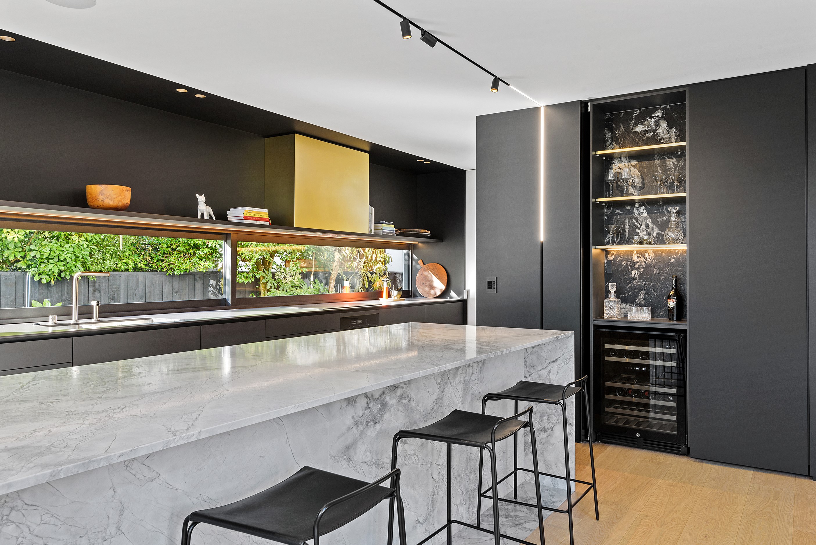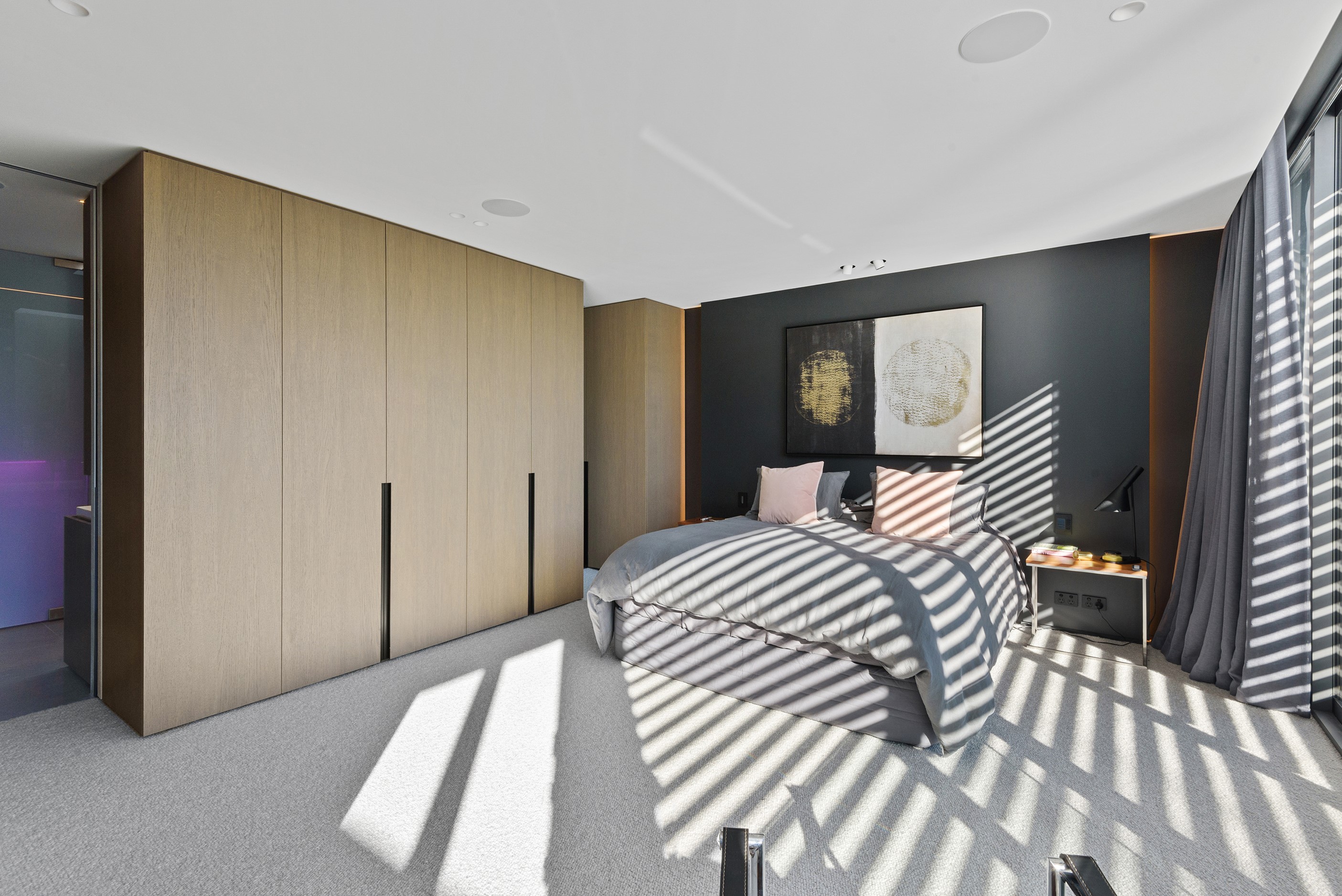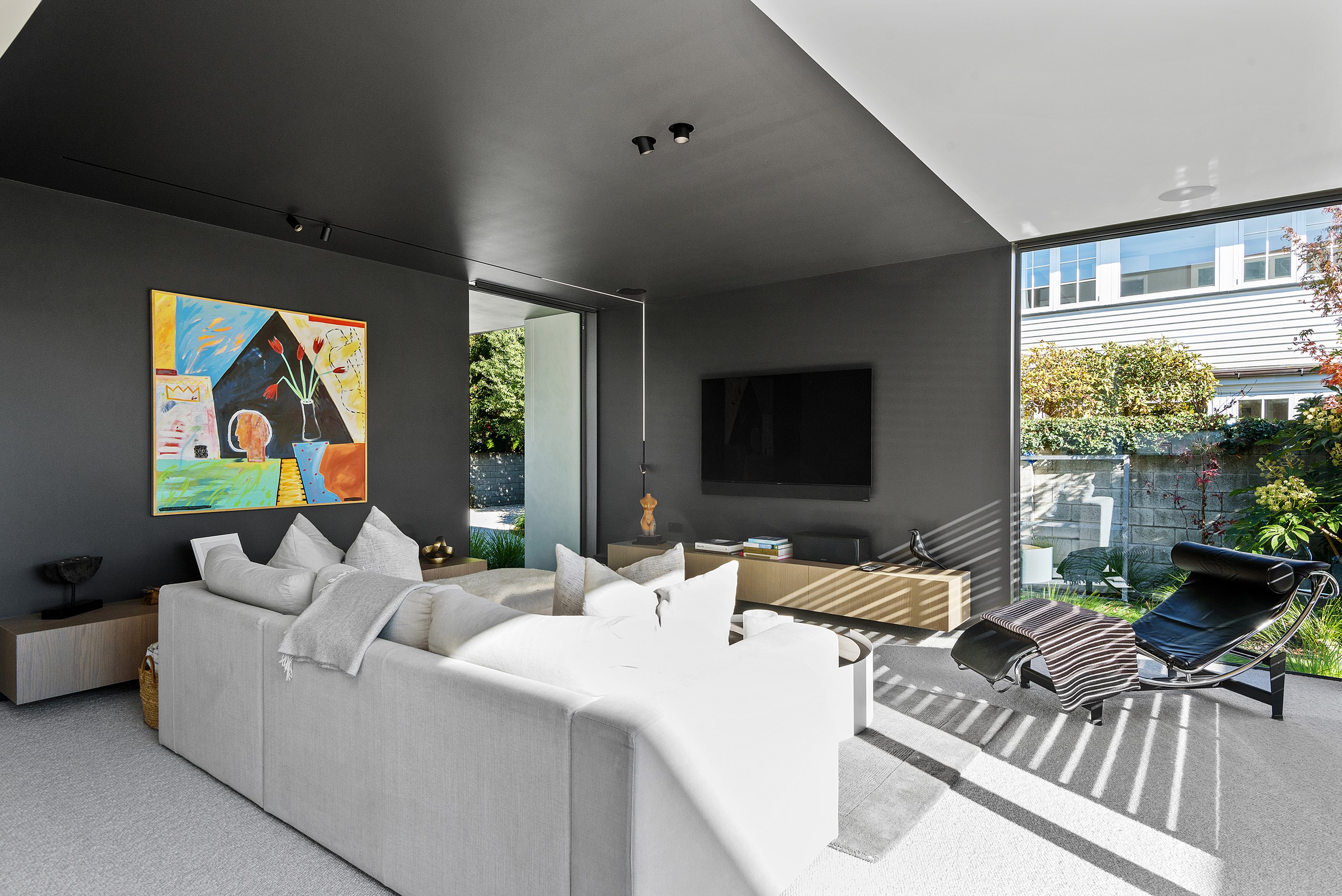 The architect-owner of this stunning modernist-style home was the ideal candidate to craft exactly what he wanted for himself and his family. The long north-south orientated site is surrounded by an established garden and has Hagley Park as its backdrop. Expansive lengths of thermally broken glazing connect the house with large external terraces, gardens and a pool. Coupled with double-height volumes, the extensive glazing ensures uninterrupted views to the immaculate landscaping, established trees and park beyond. The home has a social focus, with large retractable doors and a layout that places the kitchen at its core. A highly considered palette of luxurious finishes is revealed throughout, and includes engineered oak flooring, wool carpets, Italian polished plaster, natural stone, high-end joinery and integrated LED lighting. The house includes hydronic-water and space-heating systems, the latest solar technology, integrated heat pumps and automated lighting and audio systems – all seamlessly amalgamated into the design.