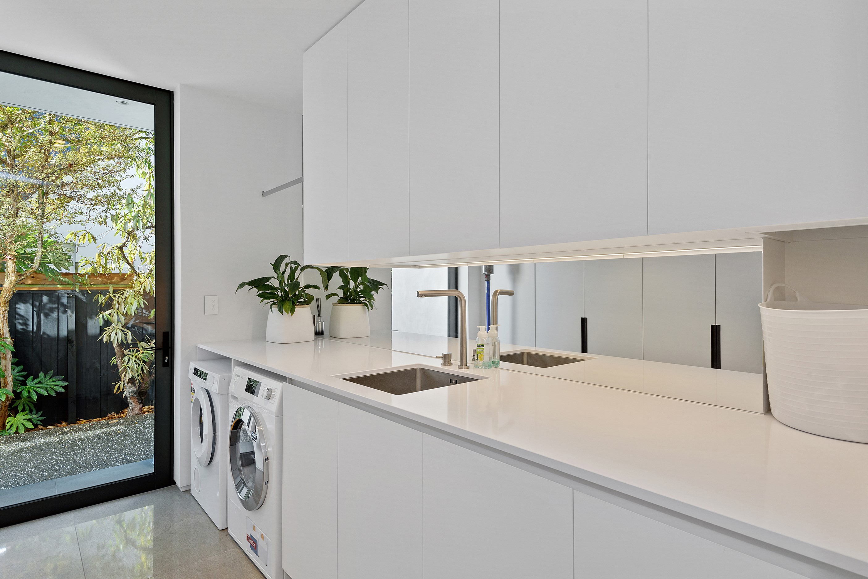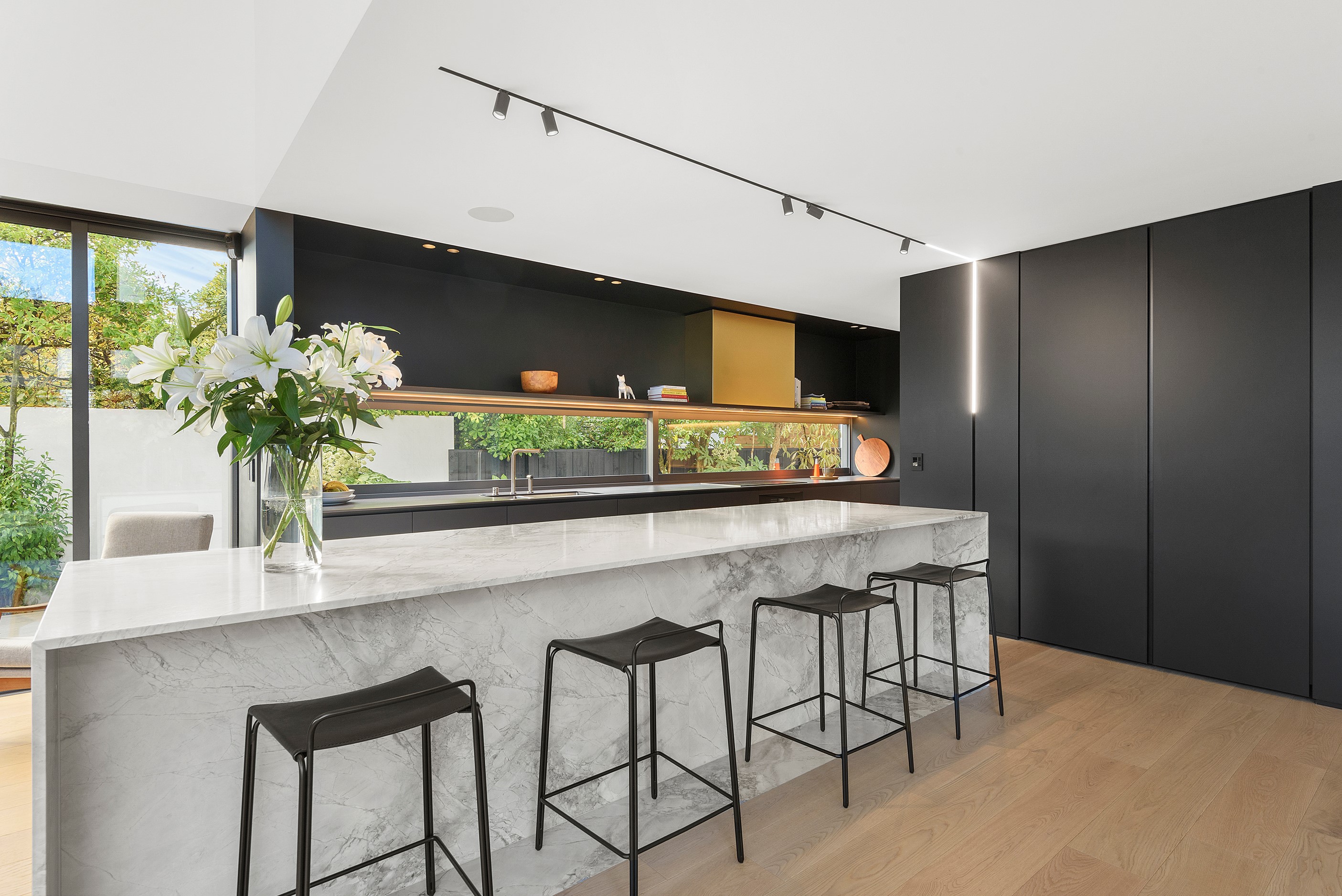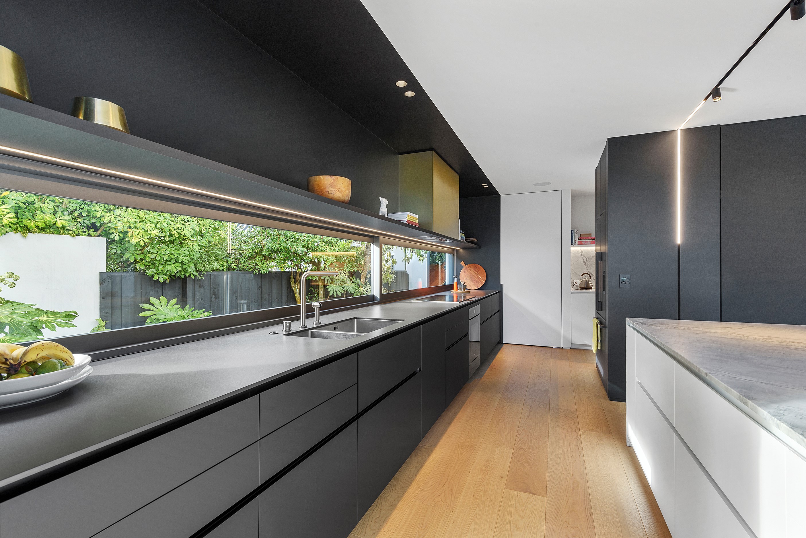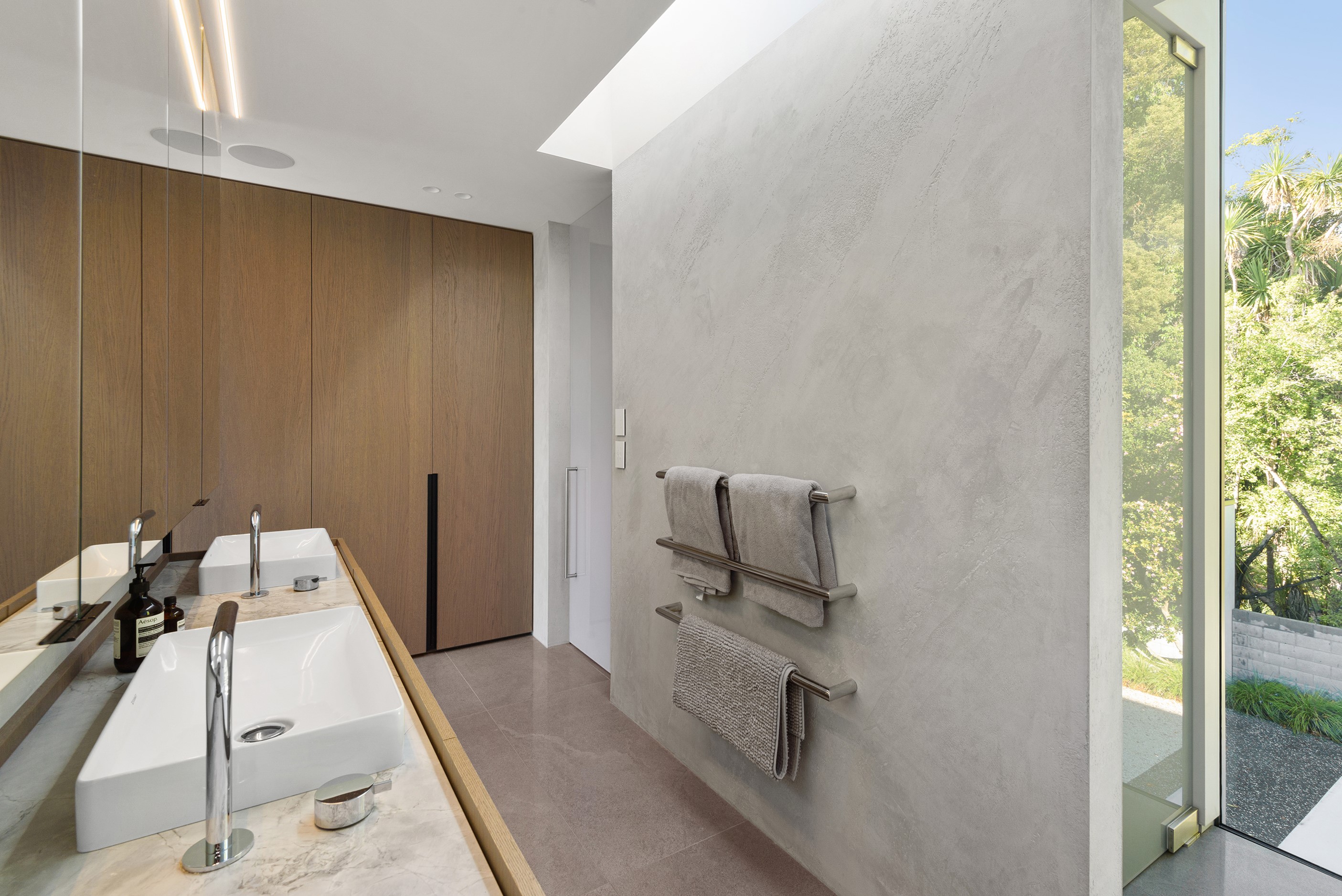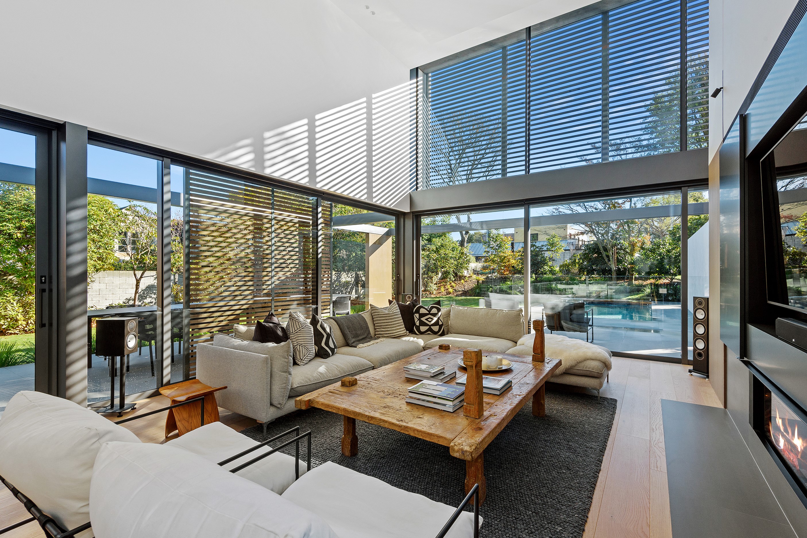 The architect-owner of this stunning modernist-style home was the ideal candidate to craft exactly what he wanted for himself and his family. The long north-south orientated site is surrounded by an established garden and has Hagley Park as its backdrop. Expansive lengths of thermally broken glazing connect the house with large external terraces, gardens and a pool. Coupled with double-height volumes, the extensive glazing ensures uninterrupted views to the immaculate landscaping, established trees and park beyond. The home has a social focus, with large retractable doors and a layout that places the kitchen at its core. A highly considered palette of luxurious finishes is revealed throughout, and includes engineered oak flooring, wool carpets, Italian polished plaster, natural stone, high-end joinery and integrated LED lighting. The house includes hydronic-water and space-heating systems, the latest solar technology, integrated heat pumps and automated lighting and audio systems – all seamlessly amalgamated into the design.