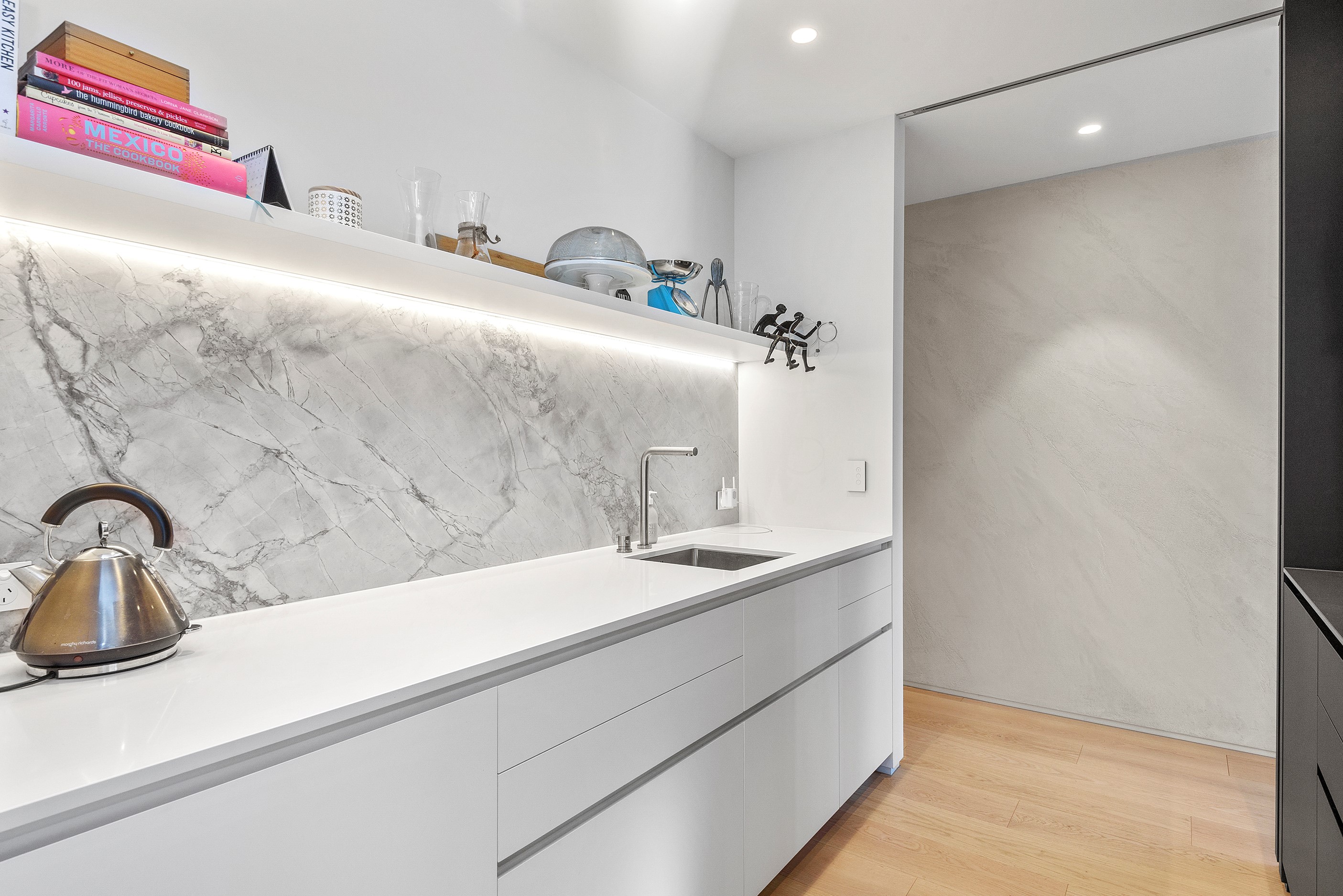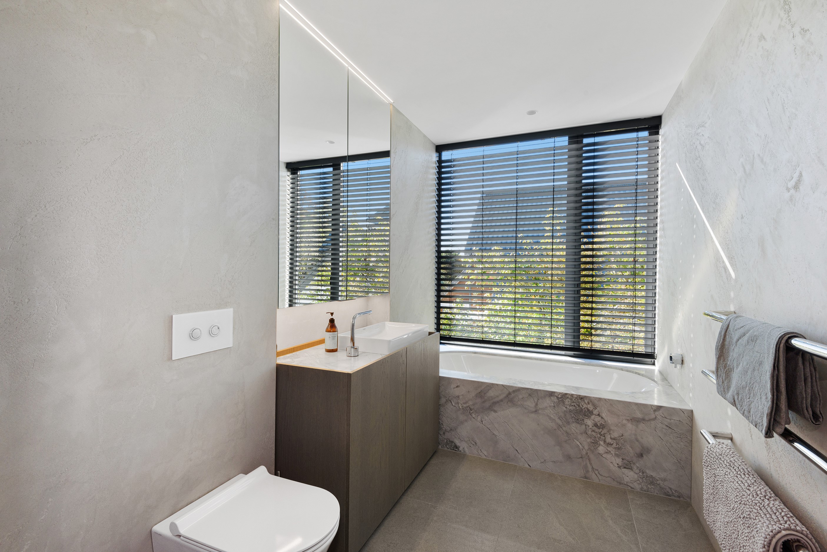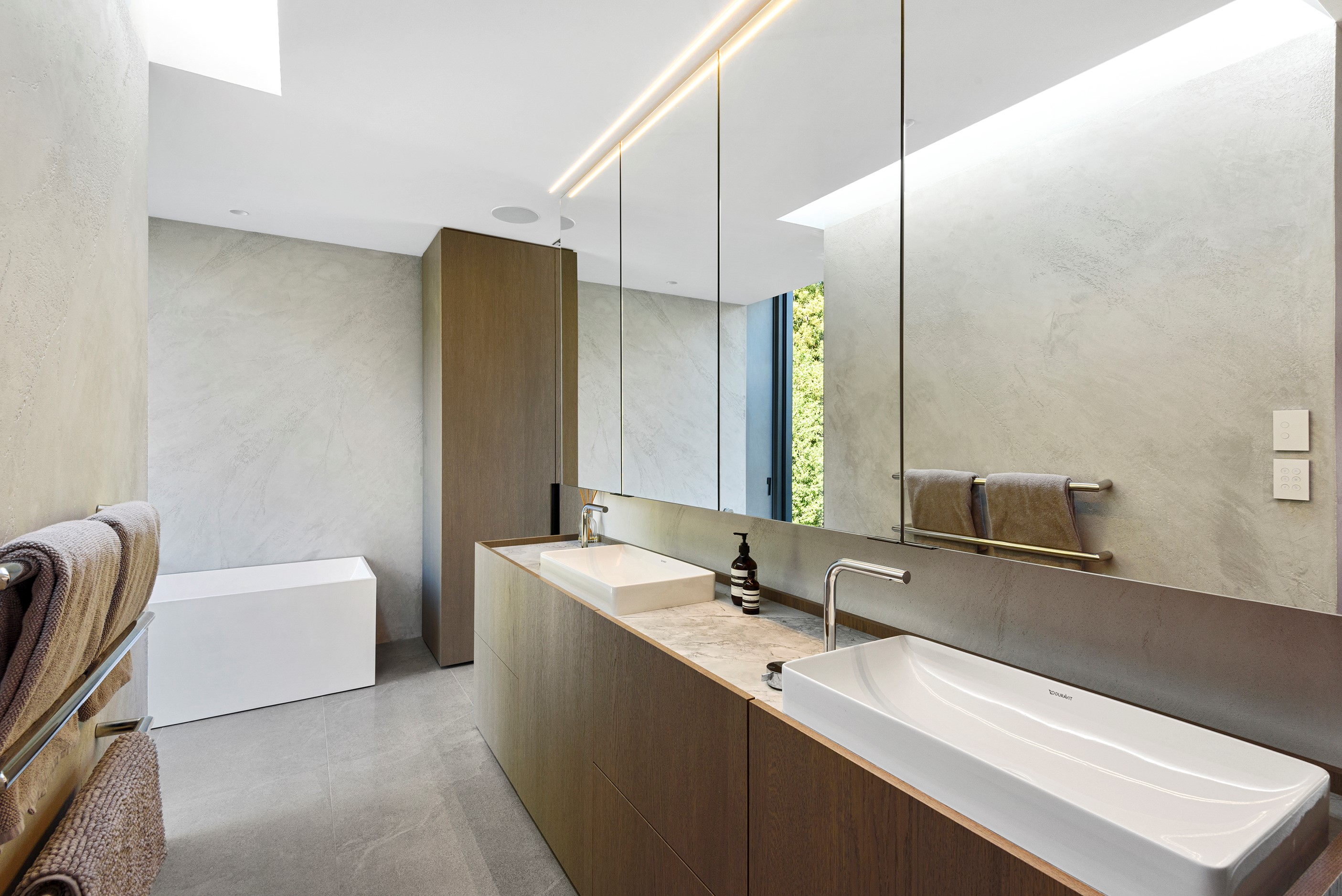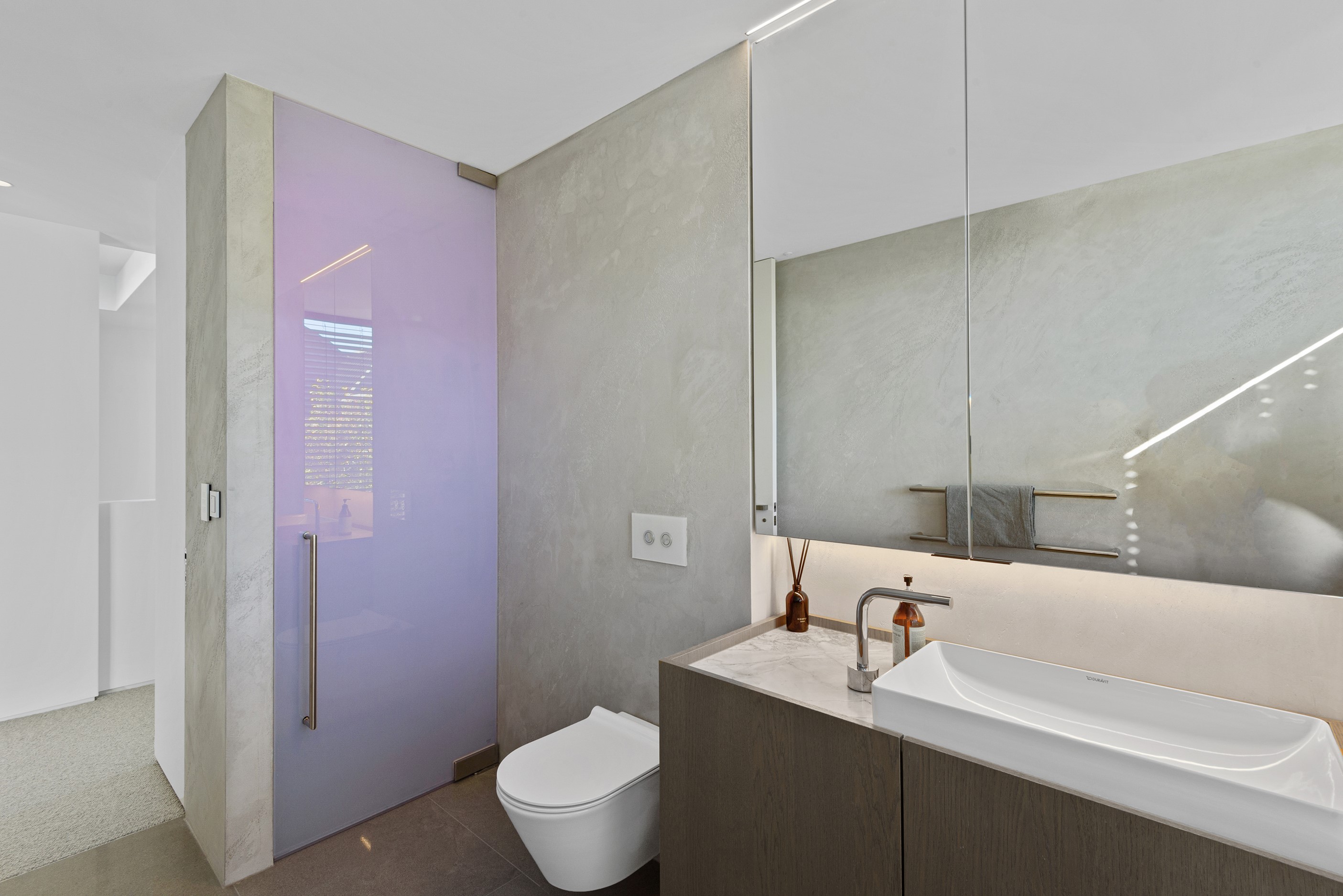 The architect-owner of this stunning modernist-style home was the ideal candidate to craft exactly what he wanted for himself and his family. The long north-south orientated site is surrounded by an established garden and has Hagley Park as its backdrop. Expansive lengths of thermally broken glazing connect the house with large external terraces, gardens and a pool. Coupled with double-height volumes, the extensive glazing ensures uninterrupted views to the immaculate landscaping, established trees and park beyond. The home has a social focus, with large retractable doors and a layout that places the kitchen at its core. A highly considered palette of luxurious finishes is revealed throughout, and includes engineered oak flooring, wool carpets, Italian polished plaster, natural stone, high-end joinery and integrated LED lighting. The house includes hydronic-water and space-heating systems, the latest solar technology, integrated heat pumps and automated lighting and audio systems – all seamlessly amalgamated into the design.