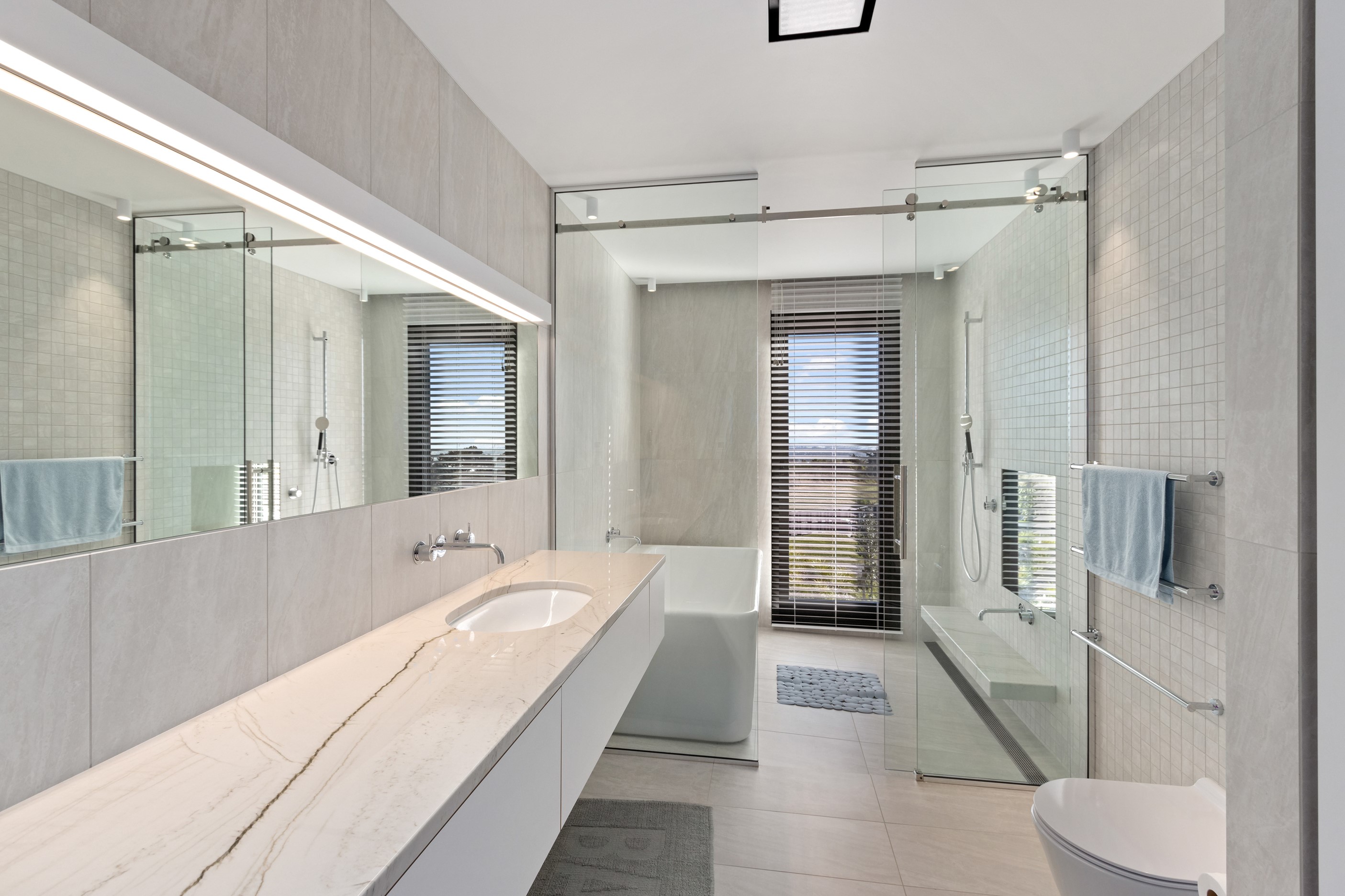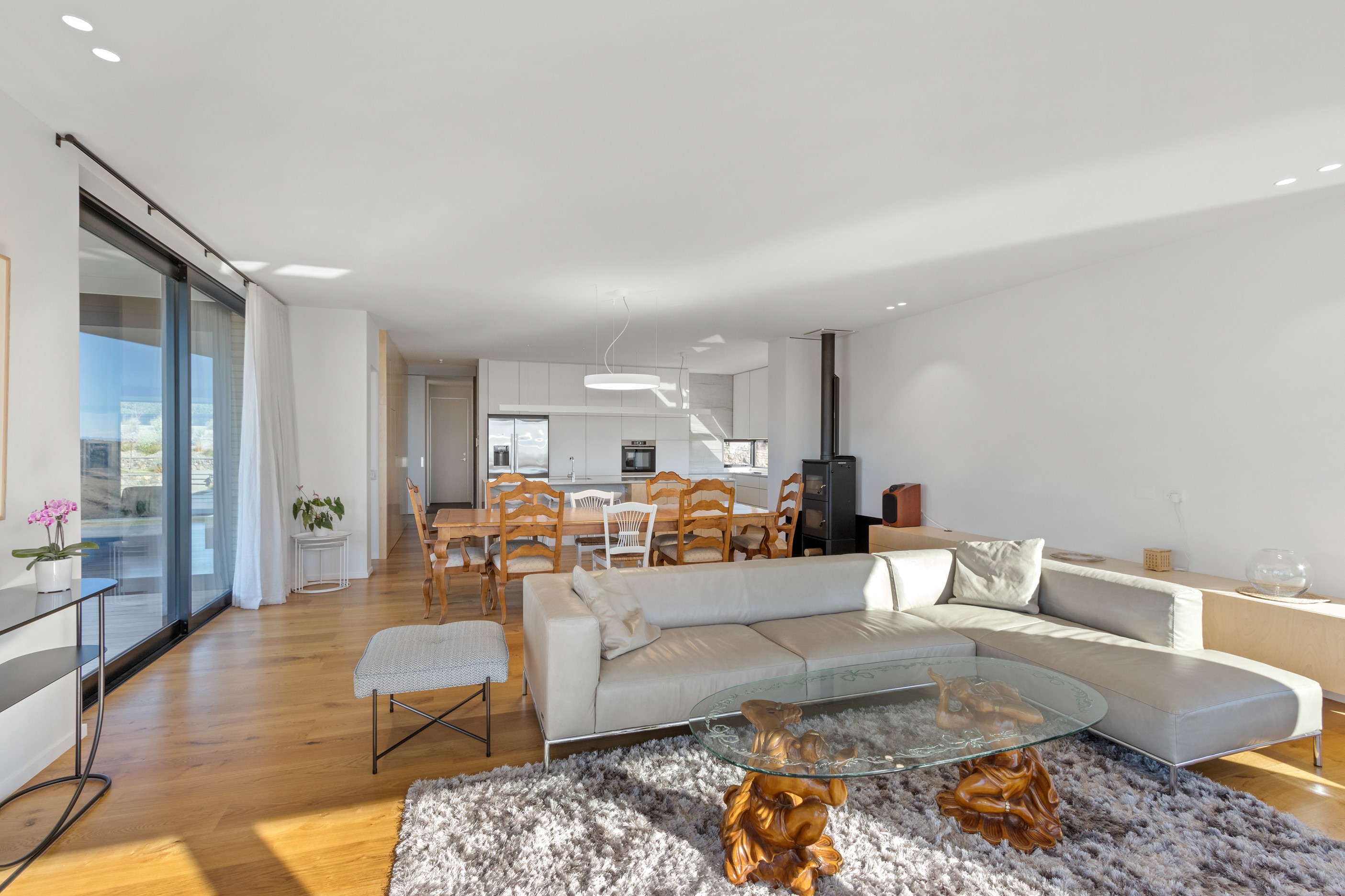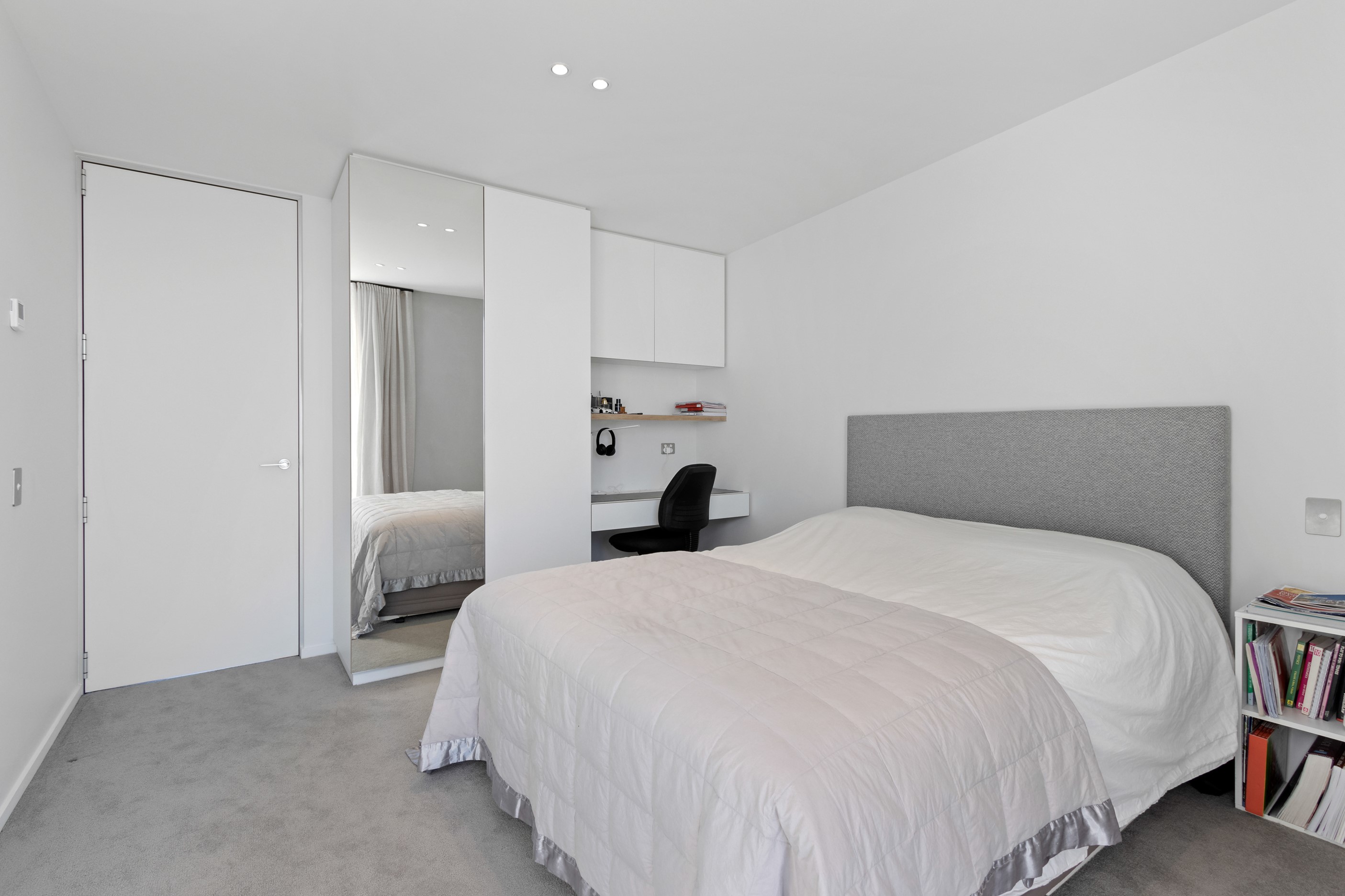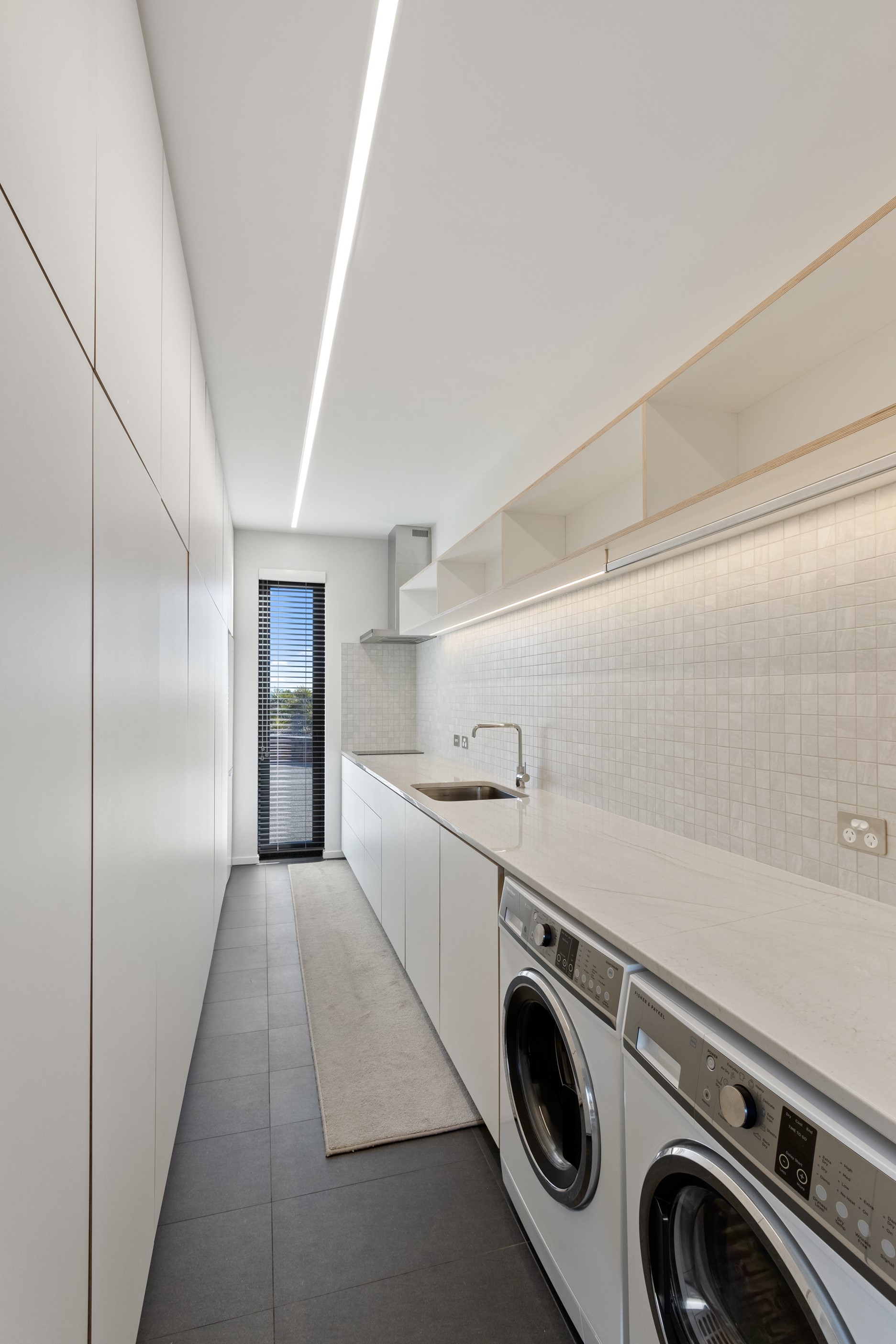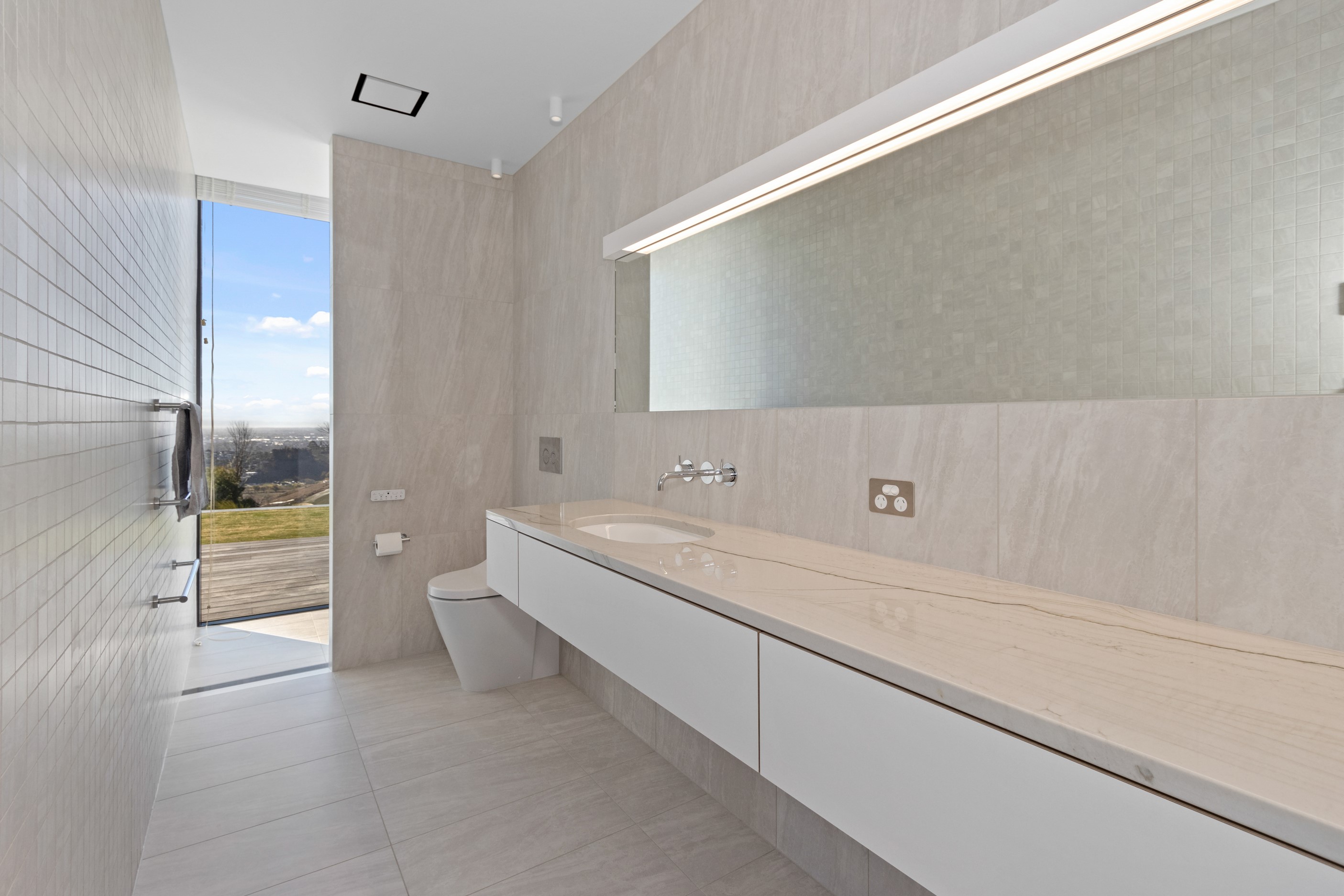 Perched high in the Port Hills, this magnificent house commands a panoramic outlook, spanning from the Southern Alps to the Kaikōura Range. Built to replace the owner’s previous home – lost in the Port Hills fires – the 405sqm layout comprises four bedrooms, three bathrooms and generous open-plan living on the first level. Upstairs is a retreat with the main bedroom and ensuite, plus a relaxing second living area. A contemporary palette of white and soft neutrals marries perfectly with birch plywood joinery and Mont Blanc granite benchtops in the kitchen and bathrooms. The striking entrance contains a quartzite slate wall and full-height cedar pivot doors. Warm oak flooring extends throughout, while full-height glazing flows seamlessly to the exterior. The dark-hued ground floor, contrasted with elements of cedar, anchors the house while the bronzed anodised top box floats above like a lantern. There are multiple sheltered outdoor spaces and extensive landscaping featuring rock walls, paving and gravel paths softened with lawn, shrubs and trees.