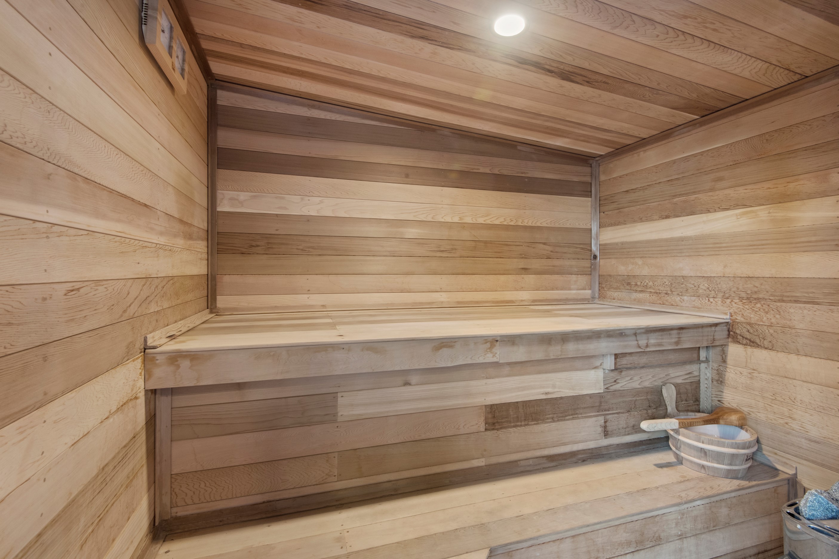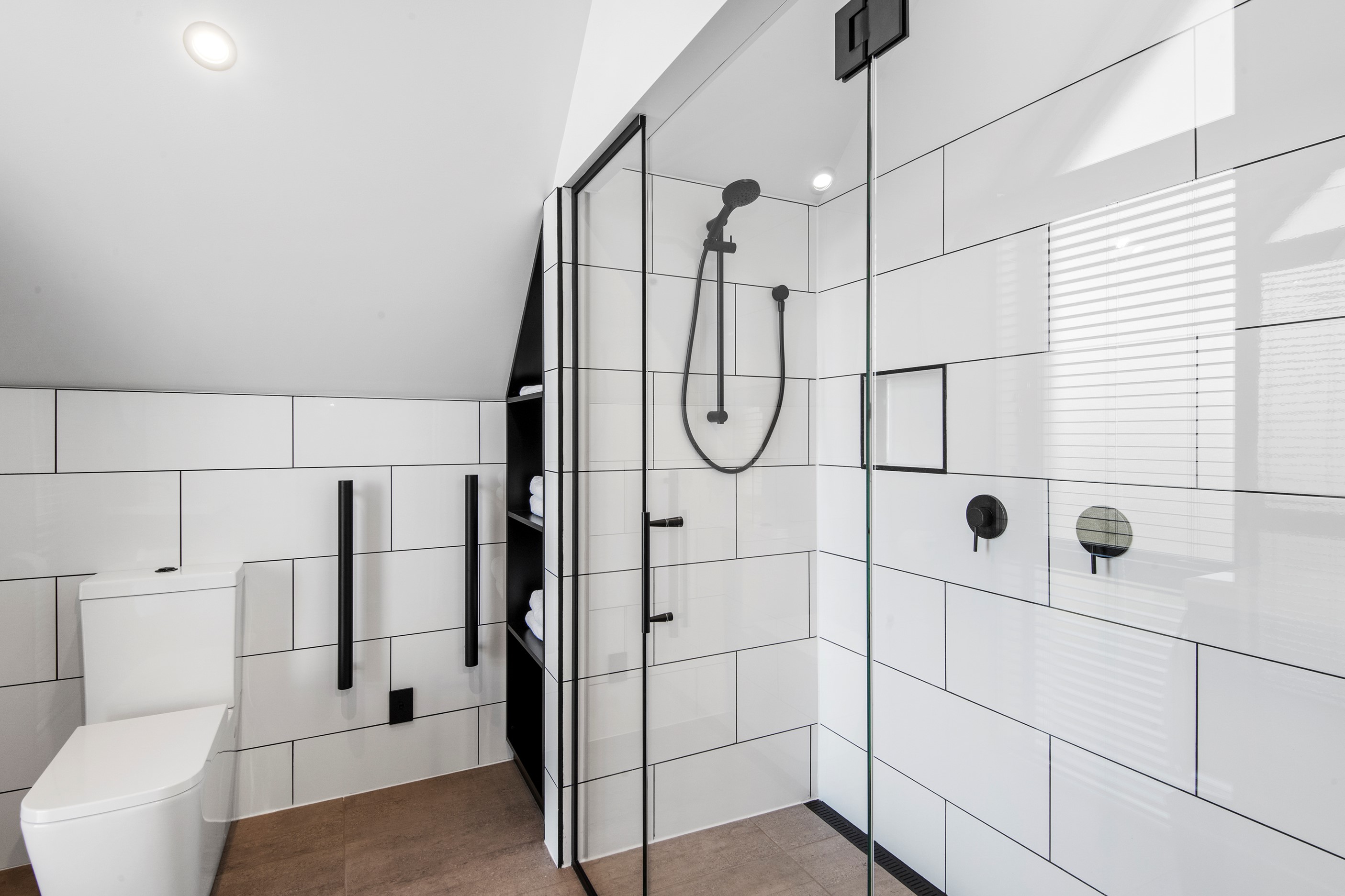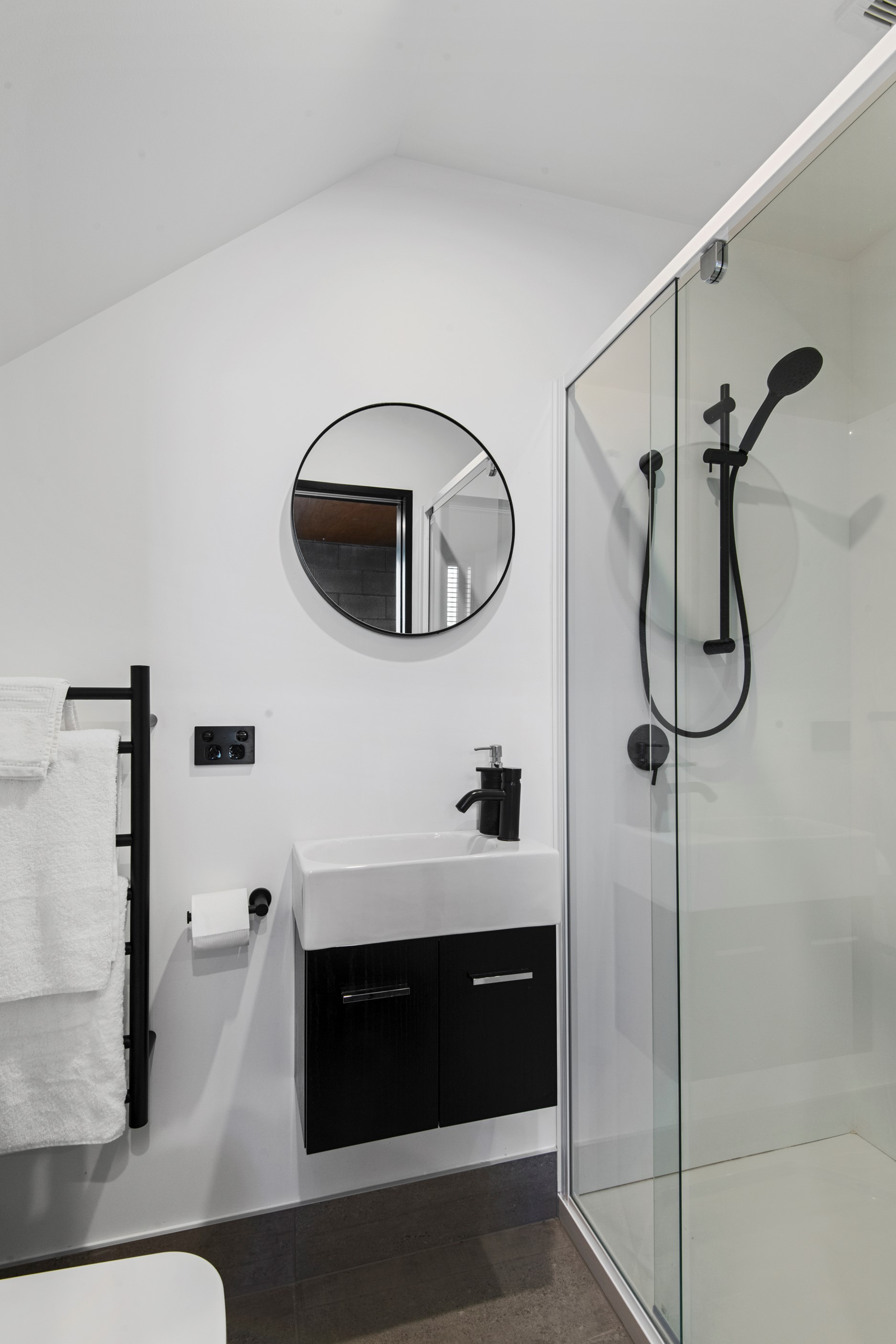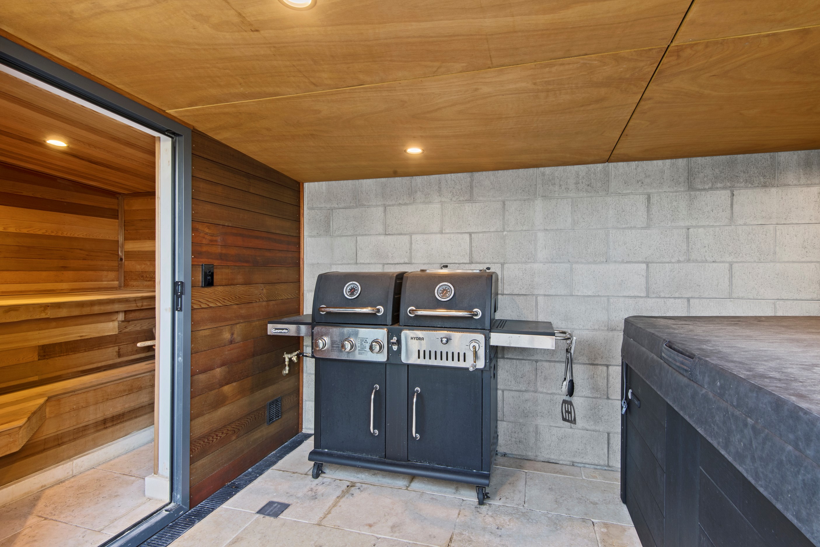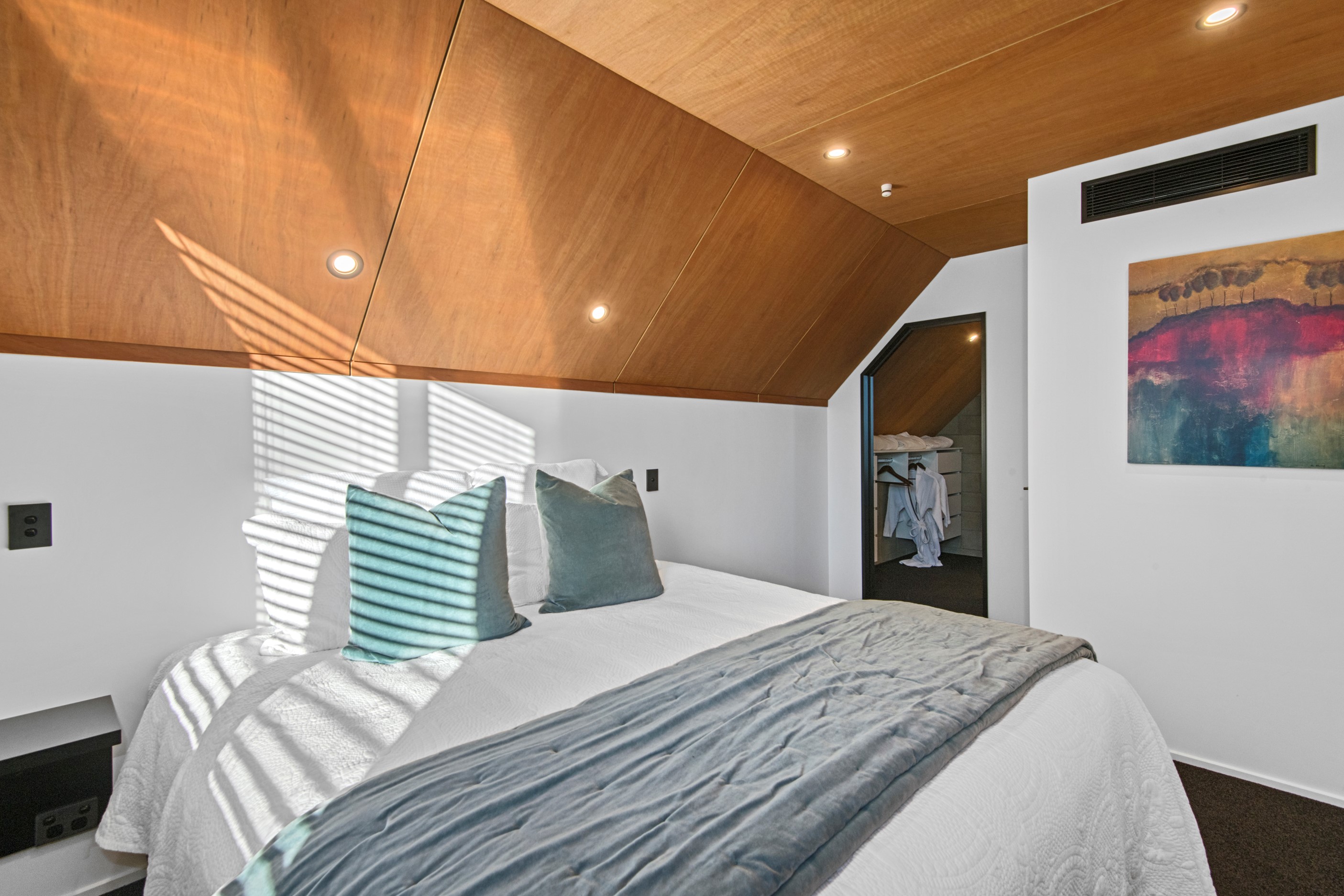 Built on a narrow site, the architectural design of this three-bedroom home is clever and the results are classy. The home is split across two fully self-contained pods connected with a secluded courtyard. Bold and beautiful concrete blockwork features throughout, setting the tone for industrial-style decor, including ply ceilings, exposed steel beams, and a fabulous floating staircase. The contemporary kitchen includes a butler’s pantry, which leaves the main preparation space sleek and unobtrusive. The open-plan living and dining space below the main-suite mezzanine extends into the spectacular outdoor living zone, which encompasses the pool and dining space. And for those chilly winter months, the spa pool and sauna are just the ticket for a soothing warm up. The uber-functional ‘south pod’ is also set over two levels, with two large bedrooms and ensuites, plus a self-contained living area. Thanks to the cleverly partitioned design, this home is ideal for extended families or Airbnb guests.