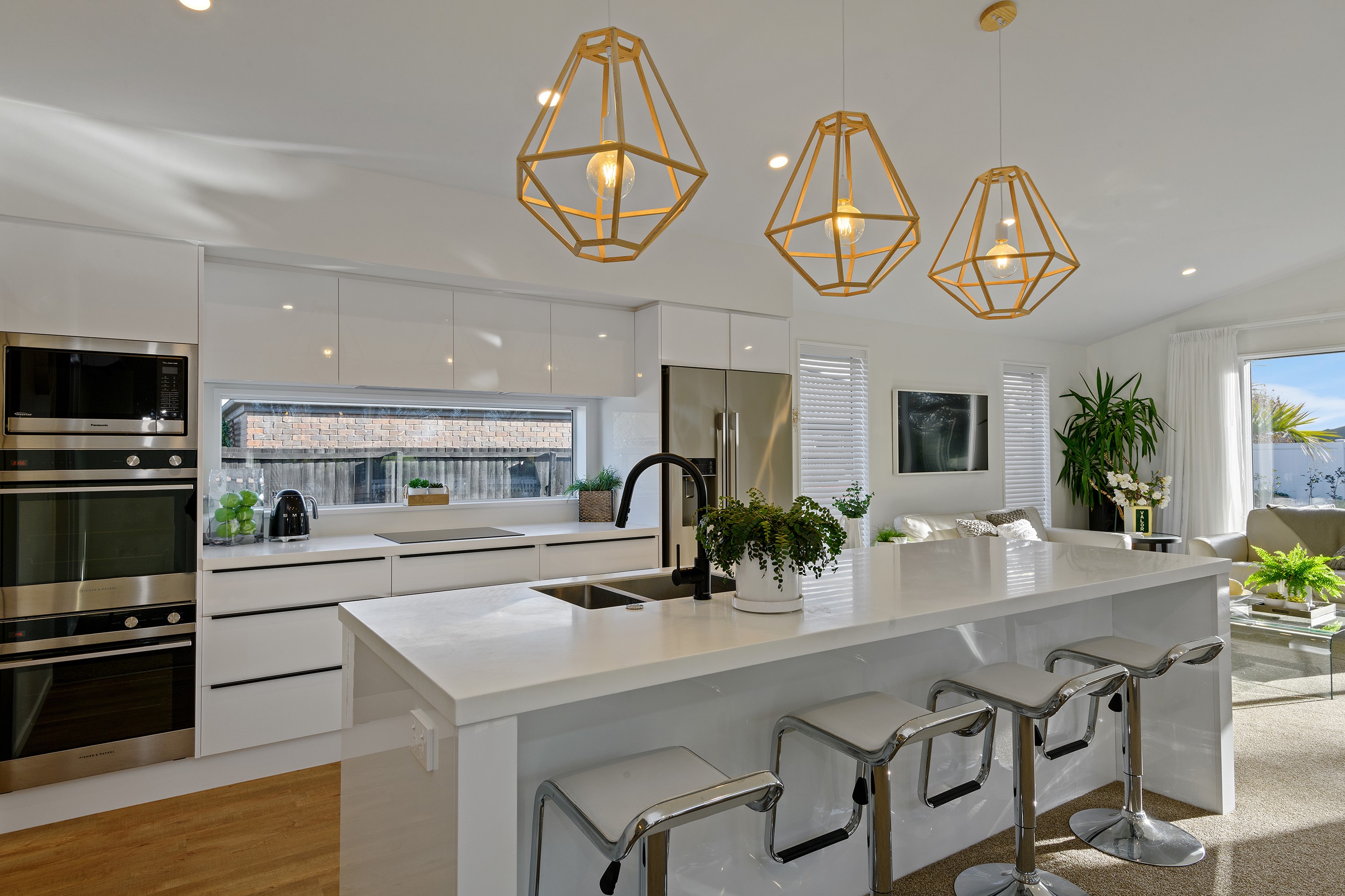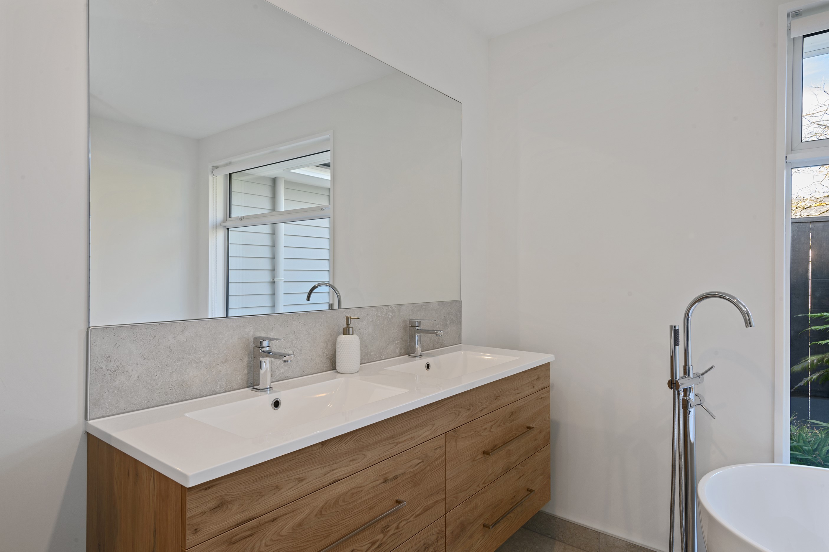 Set on a large section overlooking picturesque Westlake Reserve, this character-filled three-bedroom home wows visitors at every turn. With maximum space and wonderful outdoor living in mind, every room offers something just a little bit special. The elegant, sleek white kitchen includes a butler’s pantry, double ovens, and loads of storage. The welcoming living space opens to the outdoors on two sides, one a private entertaining space, the other to capture a serene lake view. The main suite provides a luxurious retreat, with wide sliders opening to a lush private outdoor area that includes a sauna and spa pool. The large walk-in wardrobe with adjoining ensuite completes this well-appointed sanctuary. A generous double garage provides space for tinkering on the weekends and the separate laundry has been well designed for tackling the family washload. With contemporary tones of light grey weatherboard and white joinery, all surrounded by impeccable landscaping, this 209sqm home has excellent street appeal.