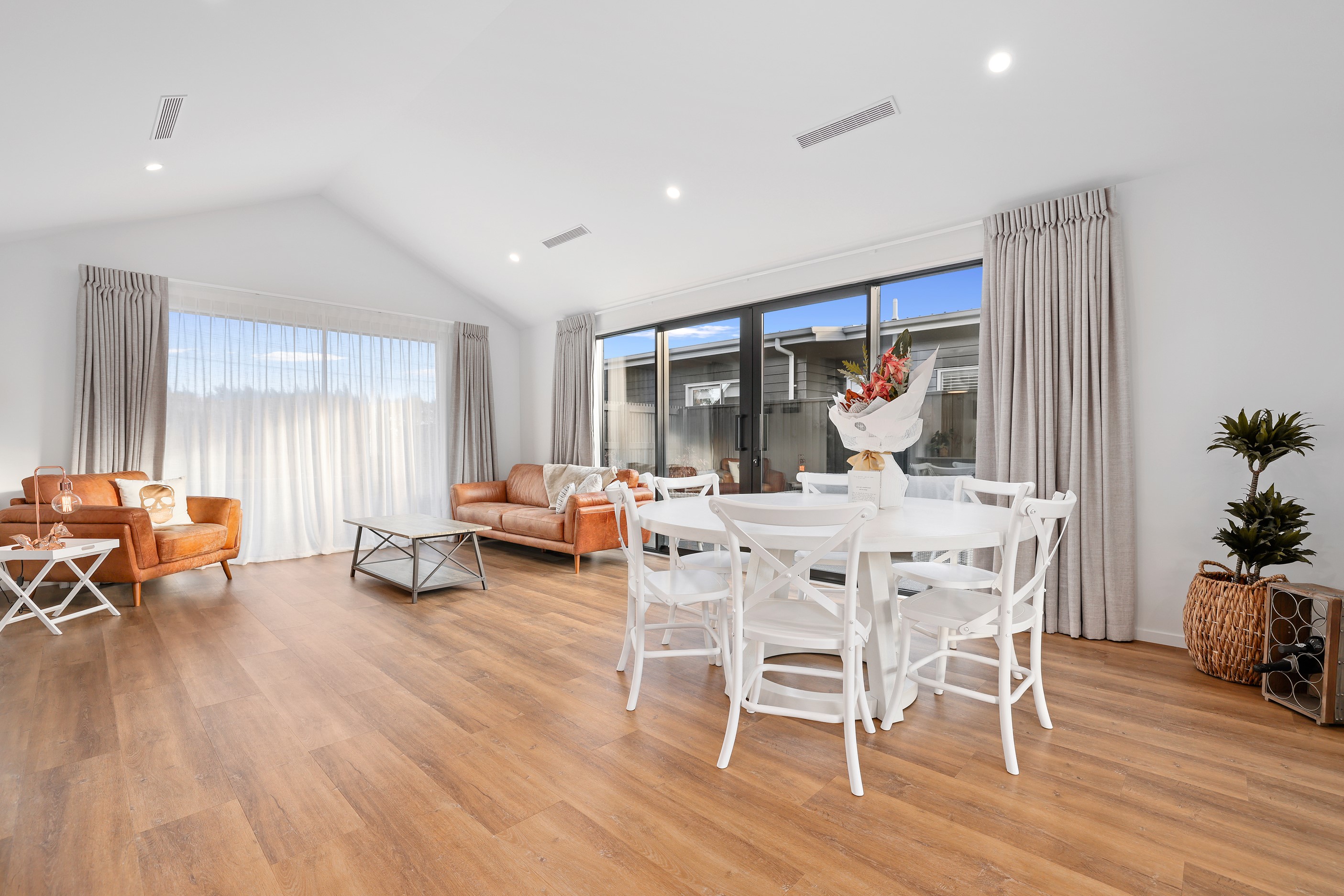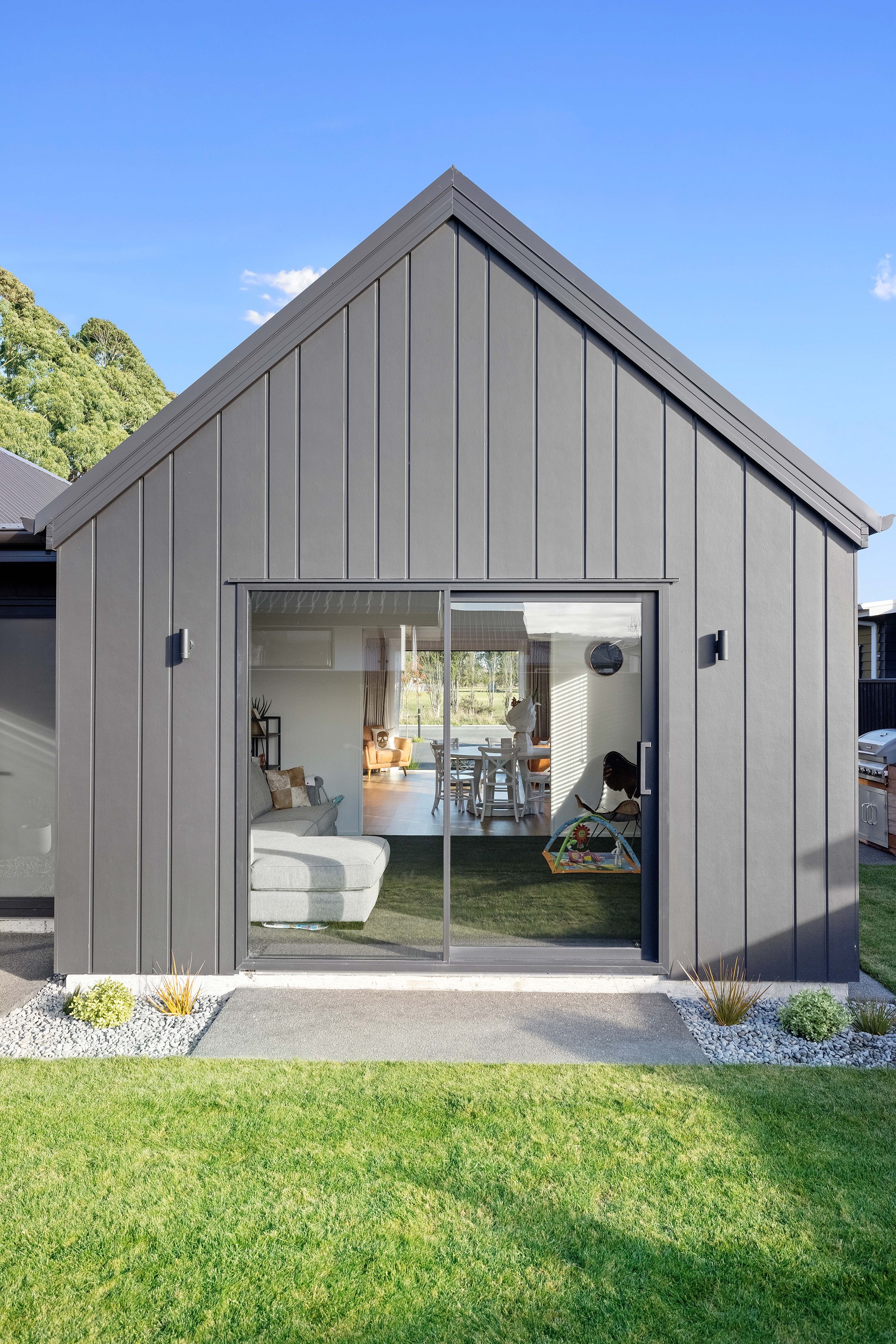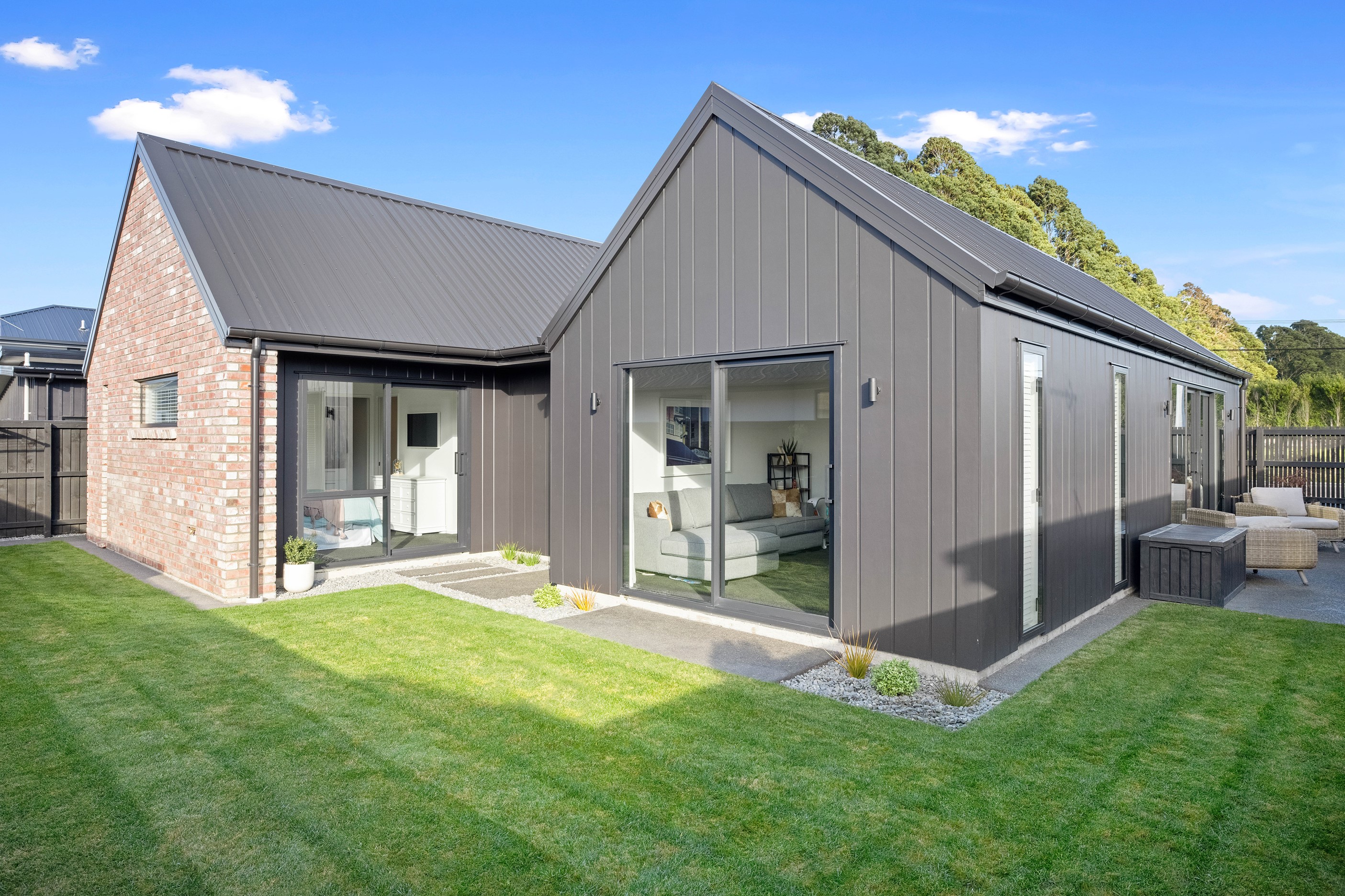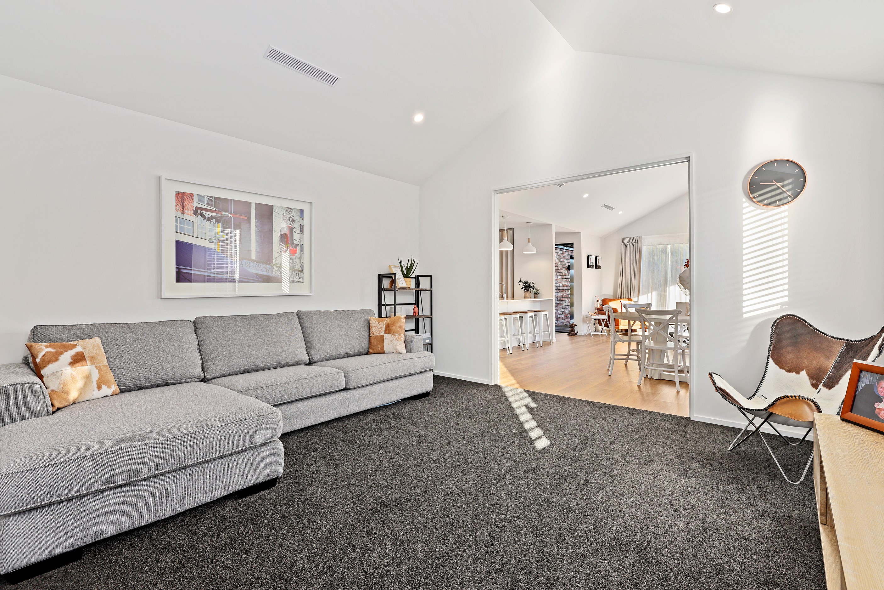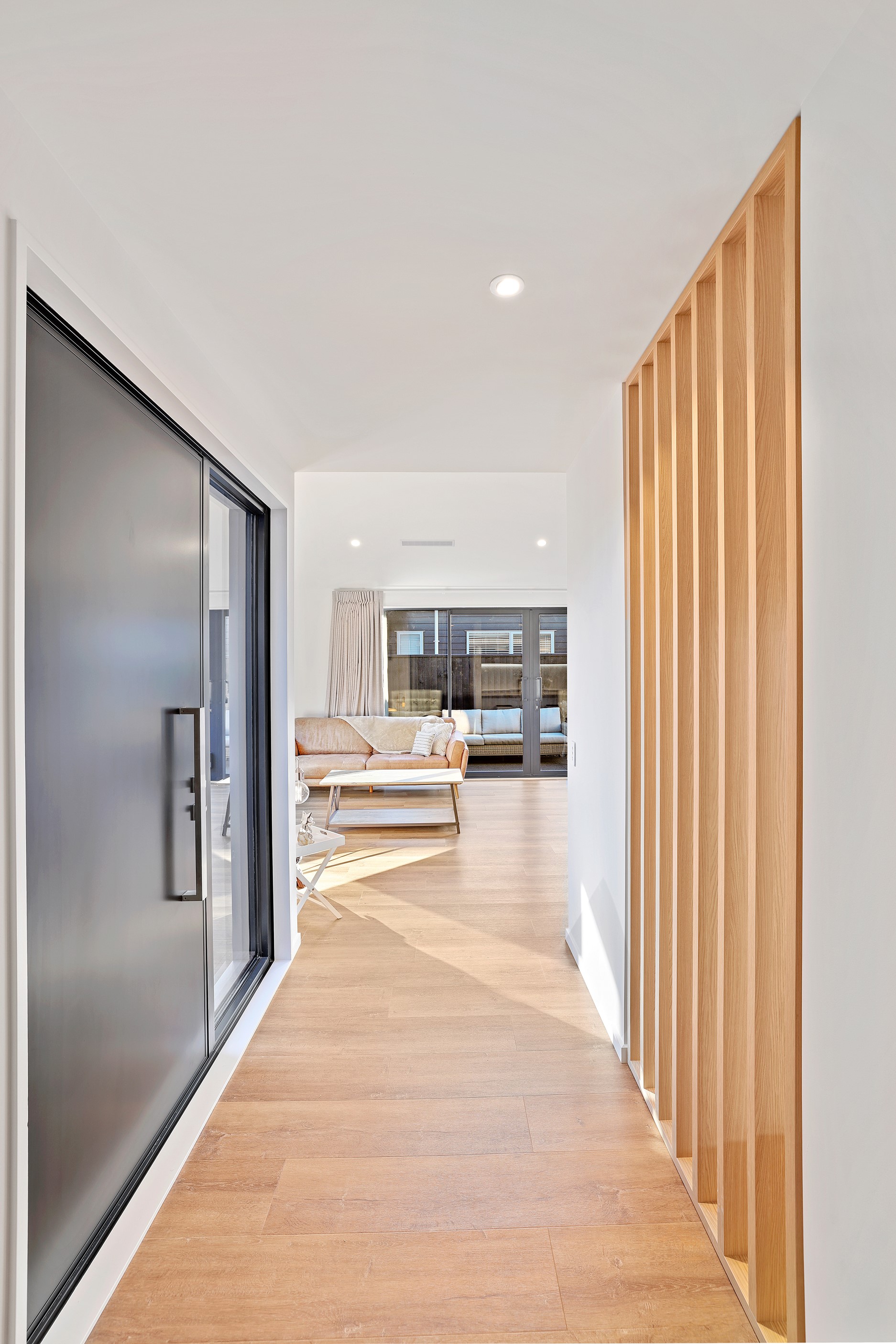The design sensibility of this home is clearly read. Standing strong in recycled brick and with random-width cladding, the building form is elegant and uncomplicated. This contemporary three-bedroom home is true to its design aesthetic outside and in. A crisp interior palette of white and light timber tones creates a calming environment. Lofty ceilings enhance the sense of space. In the main bedroom, carefully considered window placement and a sliding door to the outdoors allow plenty of natural light to stream in. The ensuite features twin sinks and a large, tiled shower. The kitchen is chic and contemporary with clean lines, handle-free cabinetry, and a long island with seating for four or more. Ideal for family life, the living and dining space opens up to a low-maintenance outdoor area for kids to play and adults to relax. A second lounge adjoining the kitchen and dining zone provides a sunny spot to unwind. From here, double sliders open to the outdoors. With the landscaping in place, the brick and black facade will grow more handsome by the day, creating an enduring elegance to admire for years to come.