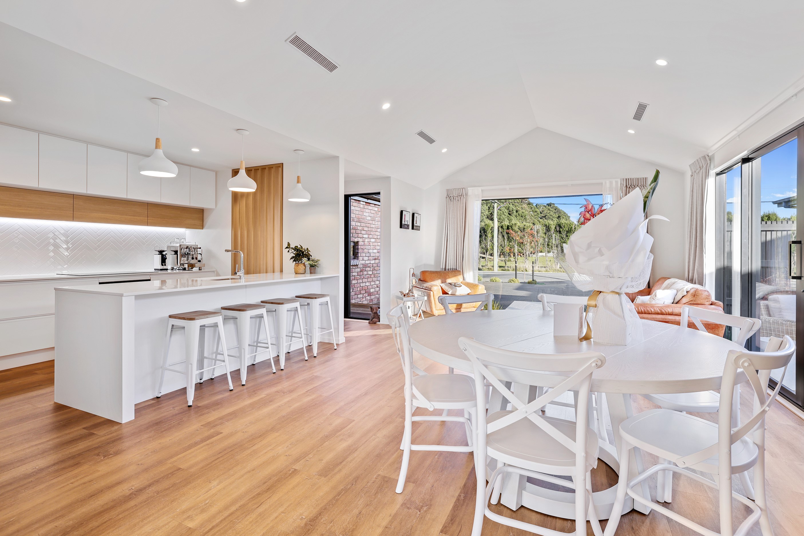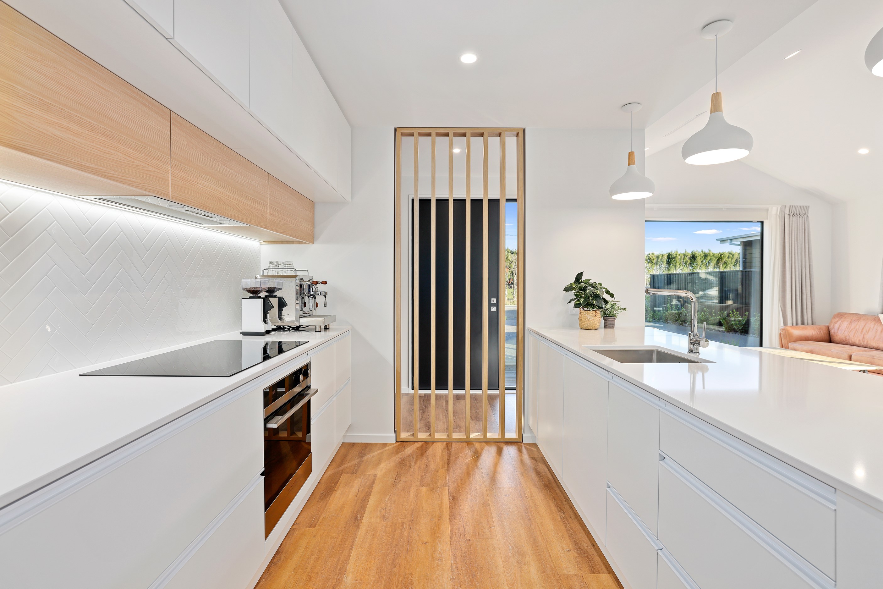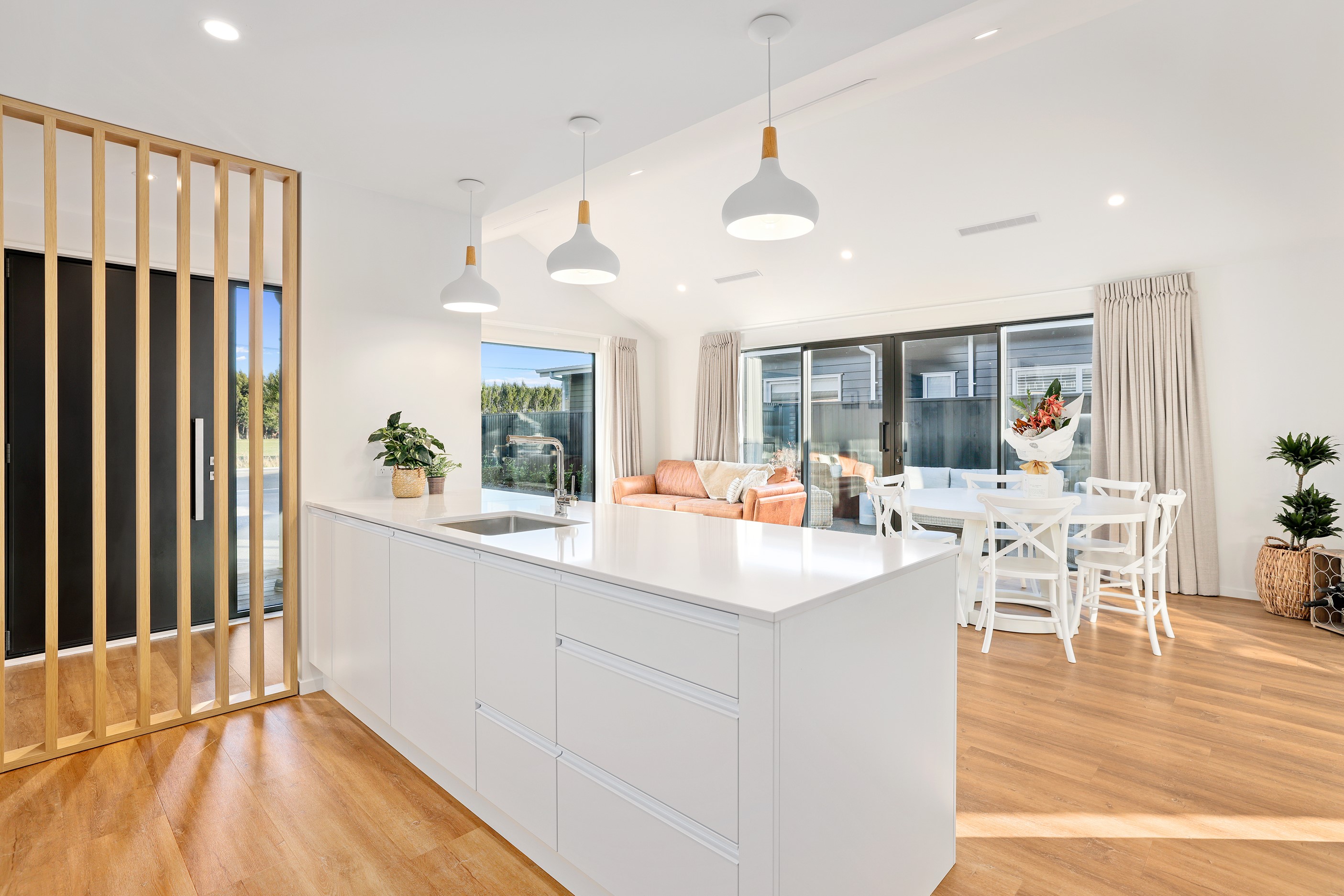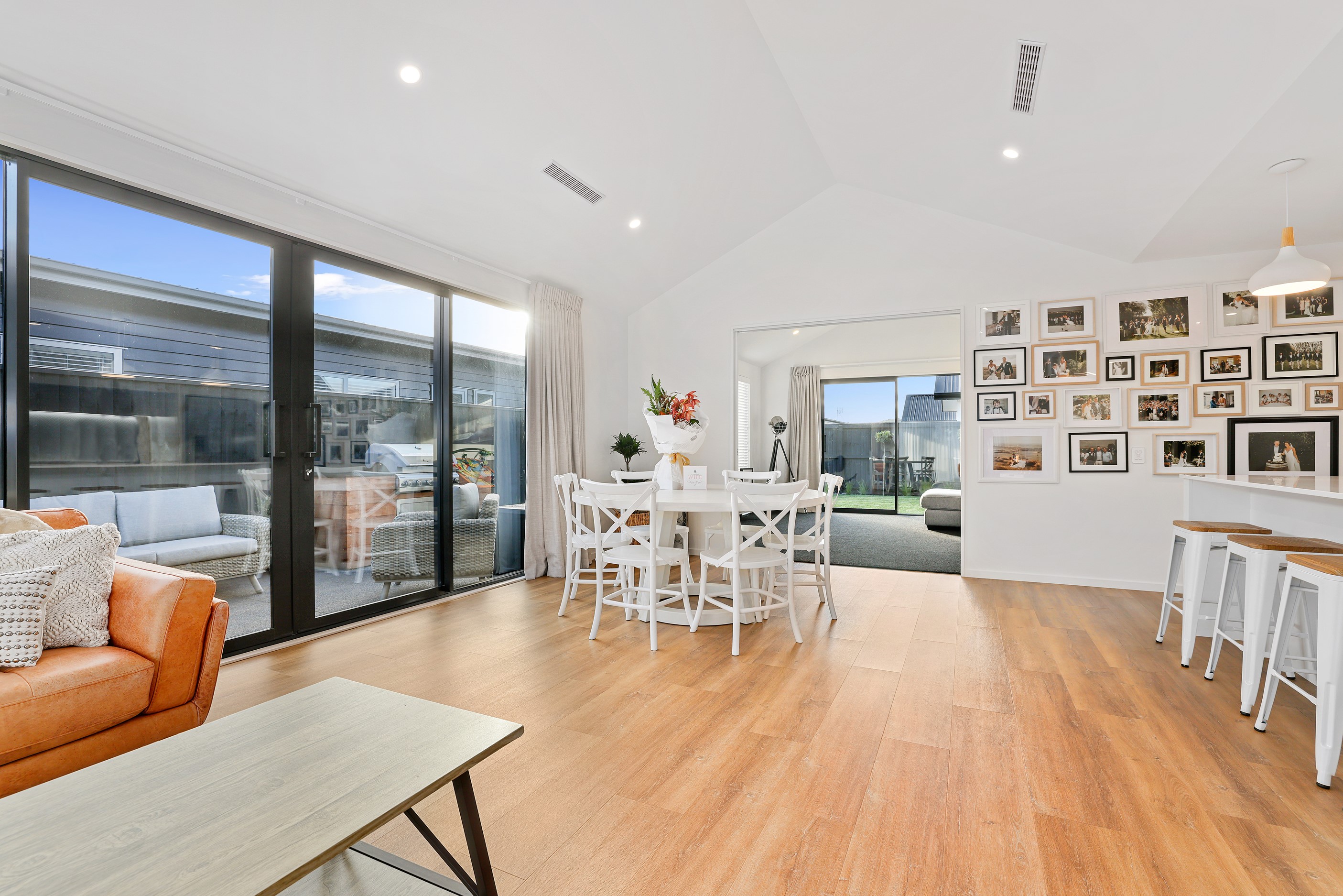 The design sensibility of this home is clearly read. Standing strong in recycled brick and with random-width cladding, the building form is elegant and uncomplicated. This contemporary three-bedroom home is true to its design aesthetic outside and in. A crisp interior palette of white and light timber tones creates a calming environment. Lofty ceilings enhance the sense of space. In the main bedroom, carefully considered window placement and a sliding door to the outdoors allow plenty of natural light to stream in. The ensuite features twin sinks and a large, tiled shower. The kitchen is chic and contemporary with clean lines, handle-free cabinetry, and a long island with seating for four or more. Ideal for family life, the living and dining space opens up to a low-maintenance outdoor area for kids to play and adults to relax. A second lounge adjoining the kitchen and dining zone provides a sunny spot to unwind. From here, double sliders open to the outdoors. With the landscaping in place, the brick and black facade will grow more handsome by the day, creating an enduring elegance to admire for years to come.