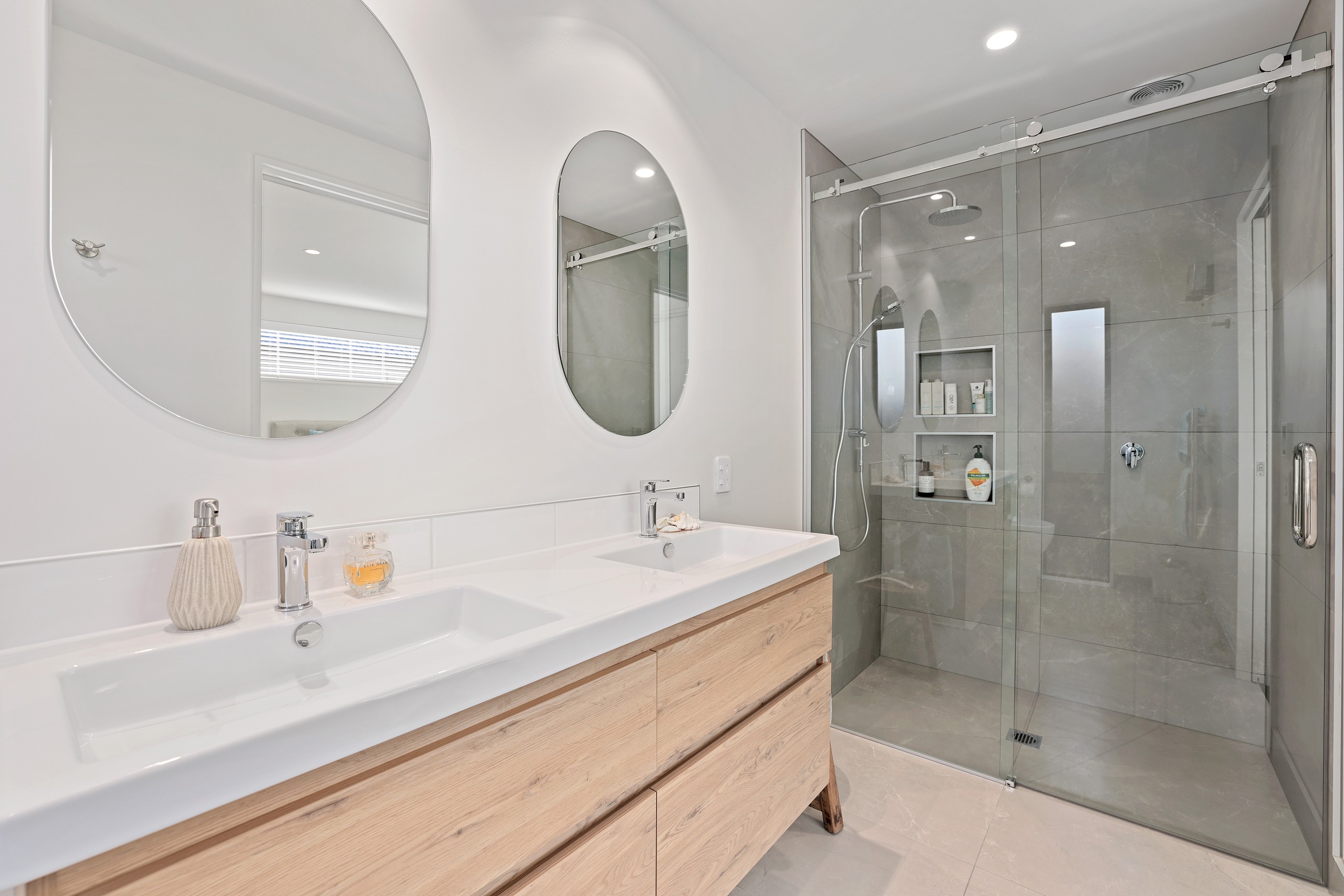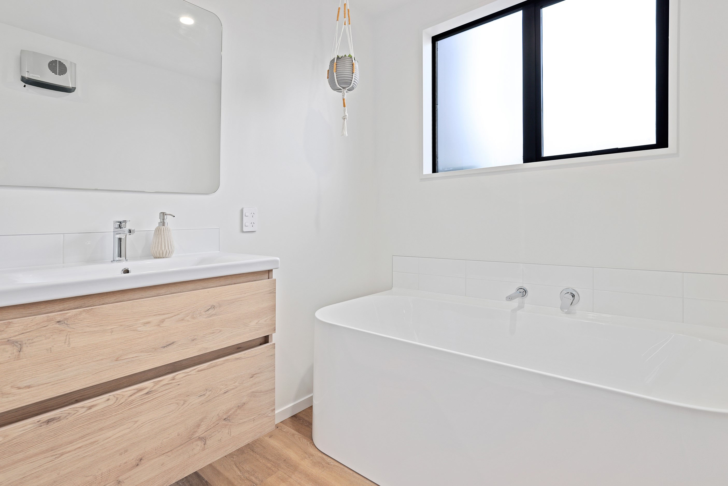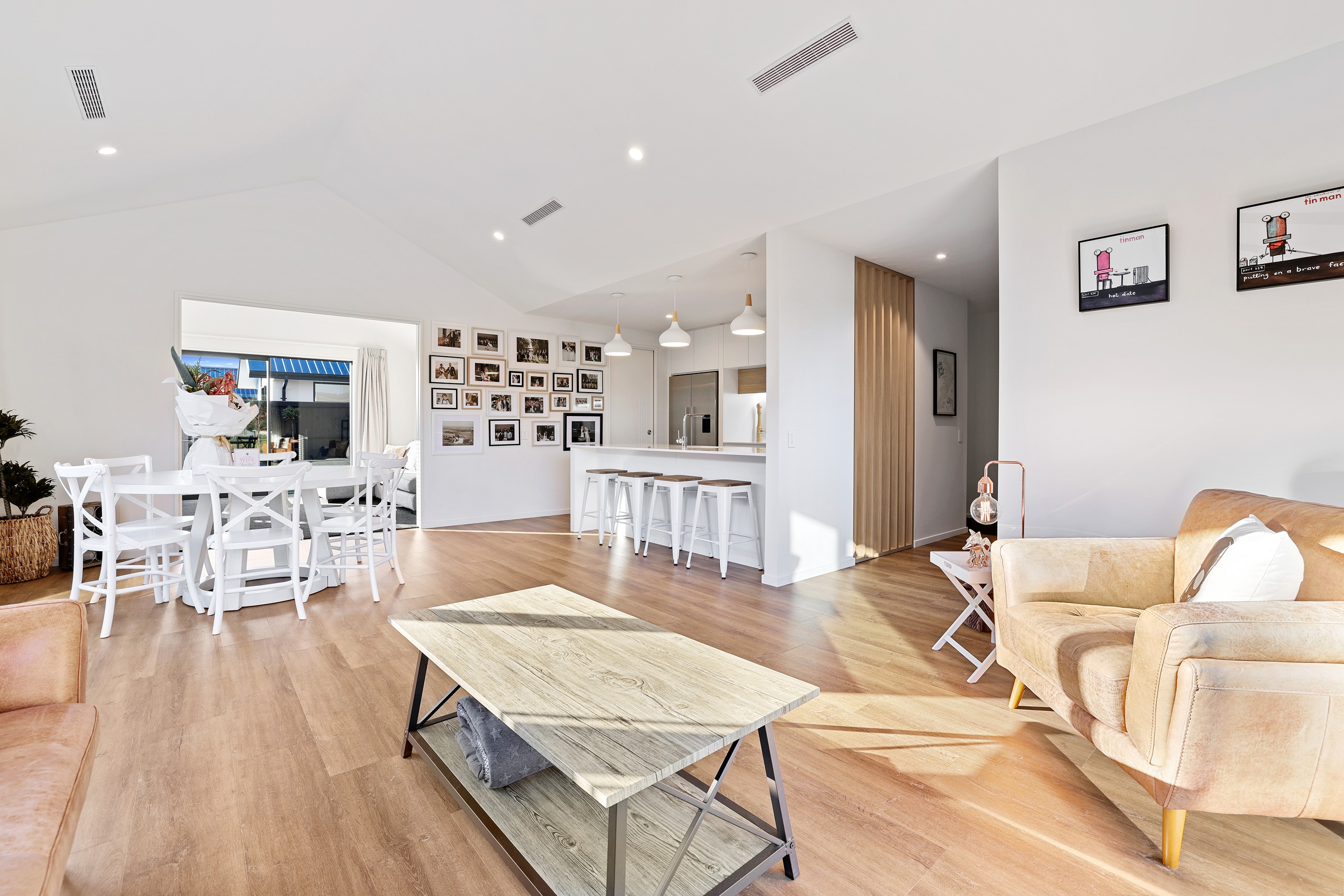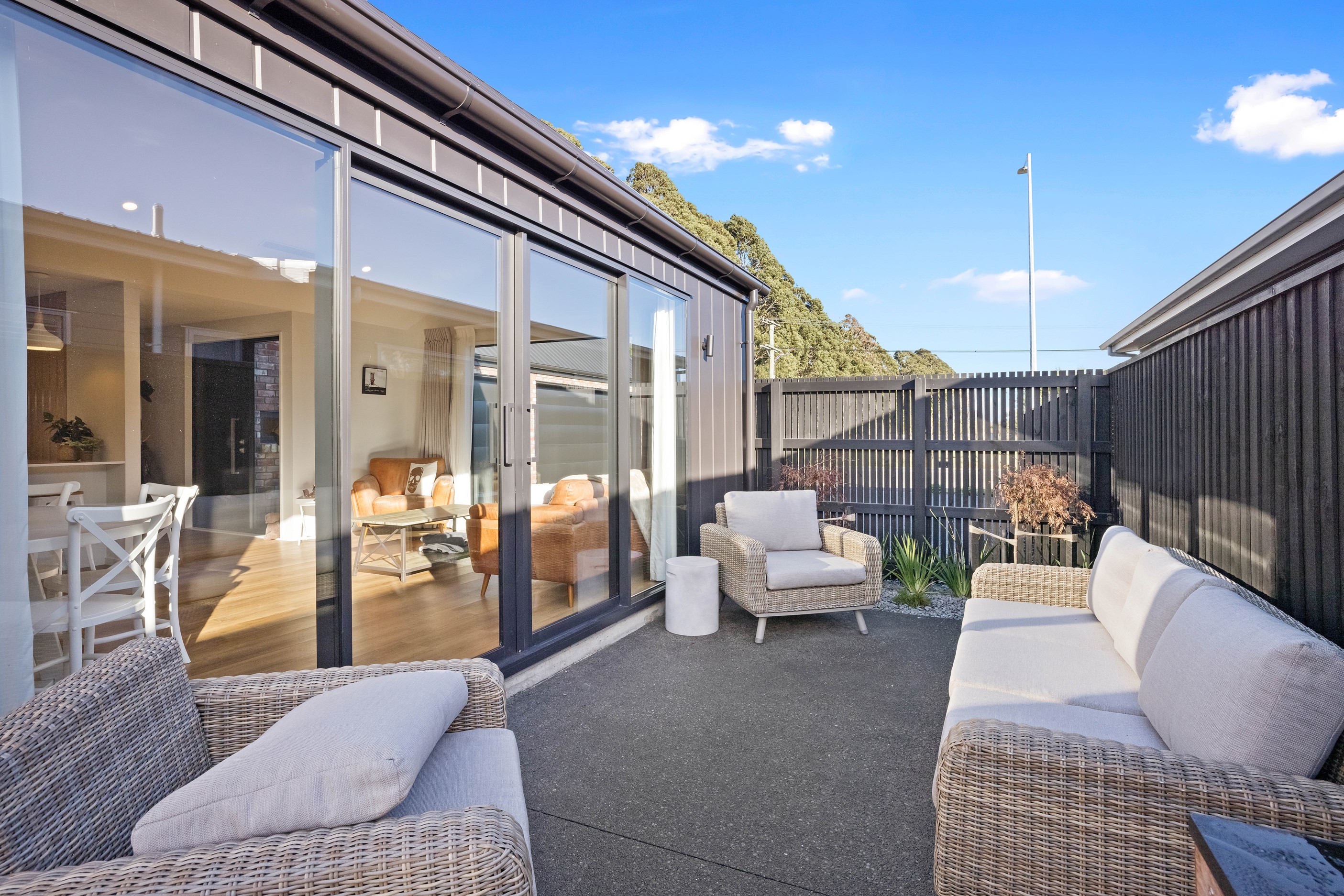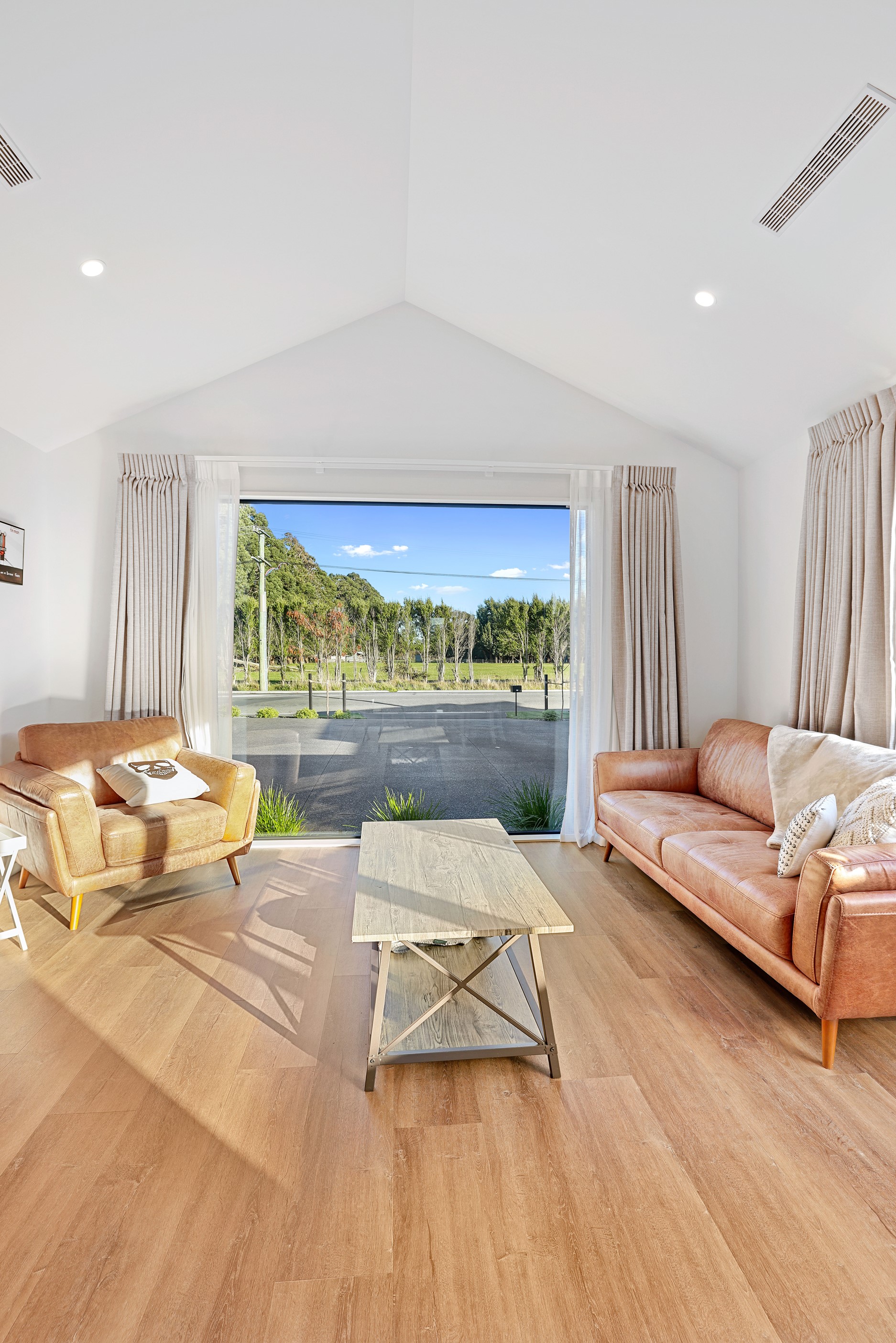 The design sensibility of this home is clearly read. Standing strong in recycled brick and with random-width cladding, the building form is elegant and uncomplicated. This contemporary three-bedroom home is true to its design aesthetic outside and in. A crisp interior palette of white and light timber tones creates a calming environment. Lofty ceilings enhance the sense of space. In the main bedroom, carefully considered window placement and a sliding door to the outdoors allow plenty of natural light to stream in. The ensuite features twin sinks and a large, tiled shower. The kitchen is chic and contemporary with clean lines, handle-free cabinetry, and a long island with seating for four or more. Ideal for family life, the living and dining space opens up to a low-maintenance outdoor area for kids to play and adults to relax. A second lounge adjoining the kitchen and dining zone provides a sunny spot to unwind. From here, double sliders open to the outdoors. With the landscaping in place, the brick and black facade will grow more handsome by the day, creating an enduring elegance to admire for years to come.