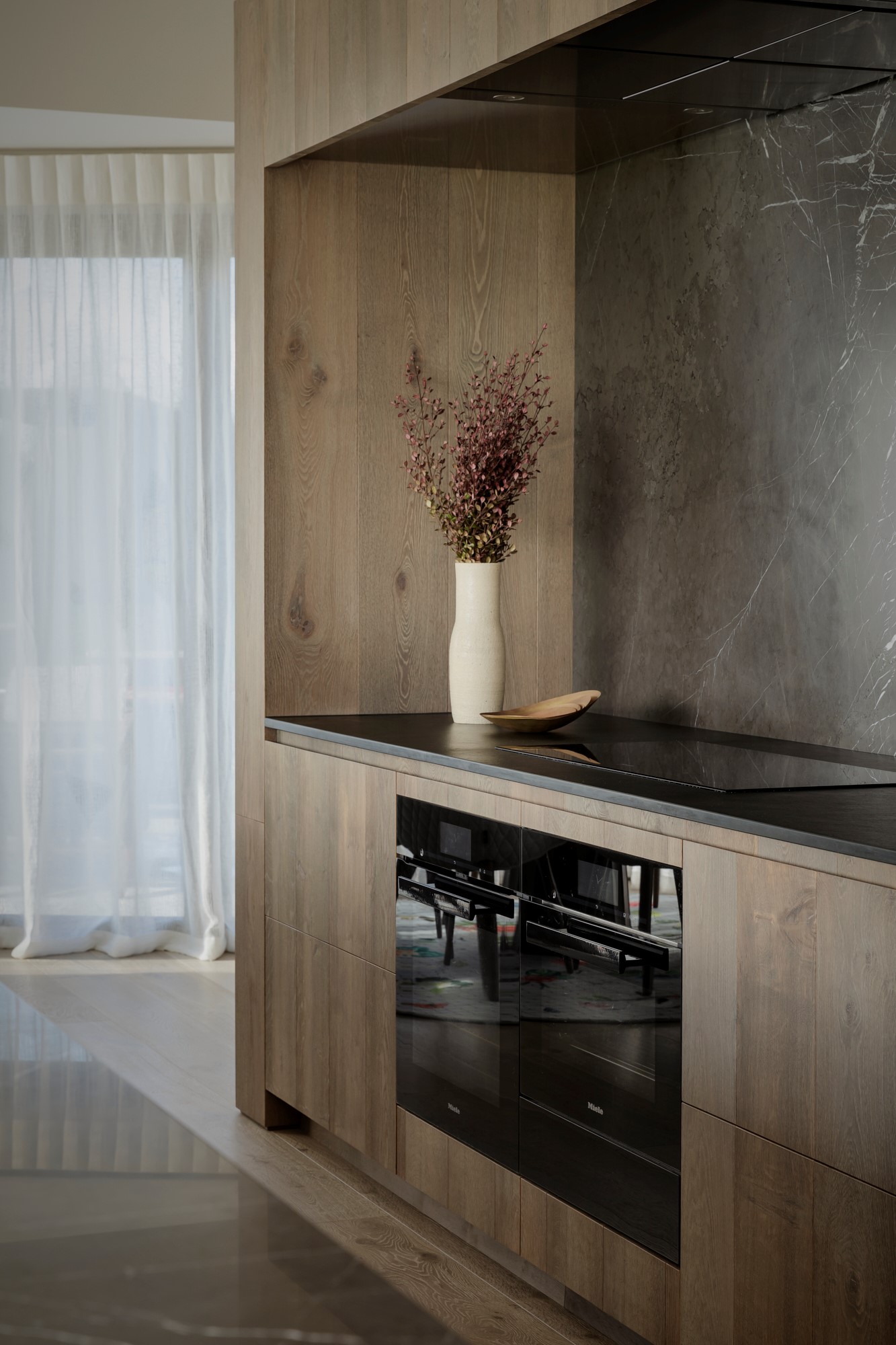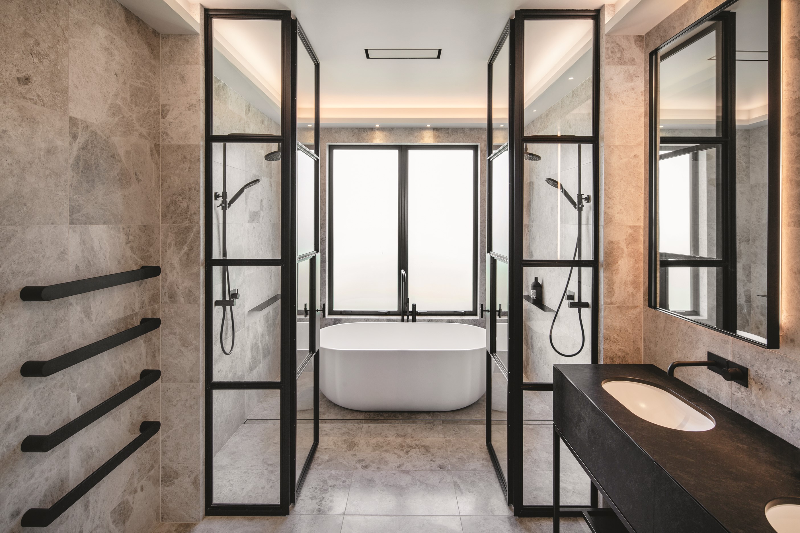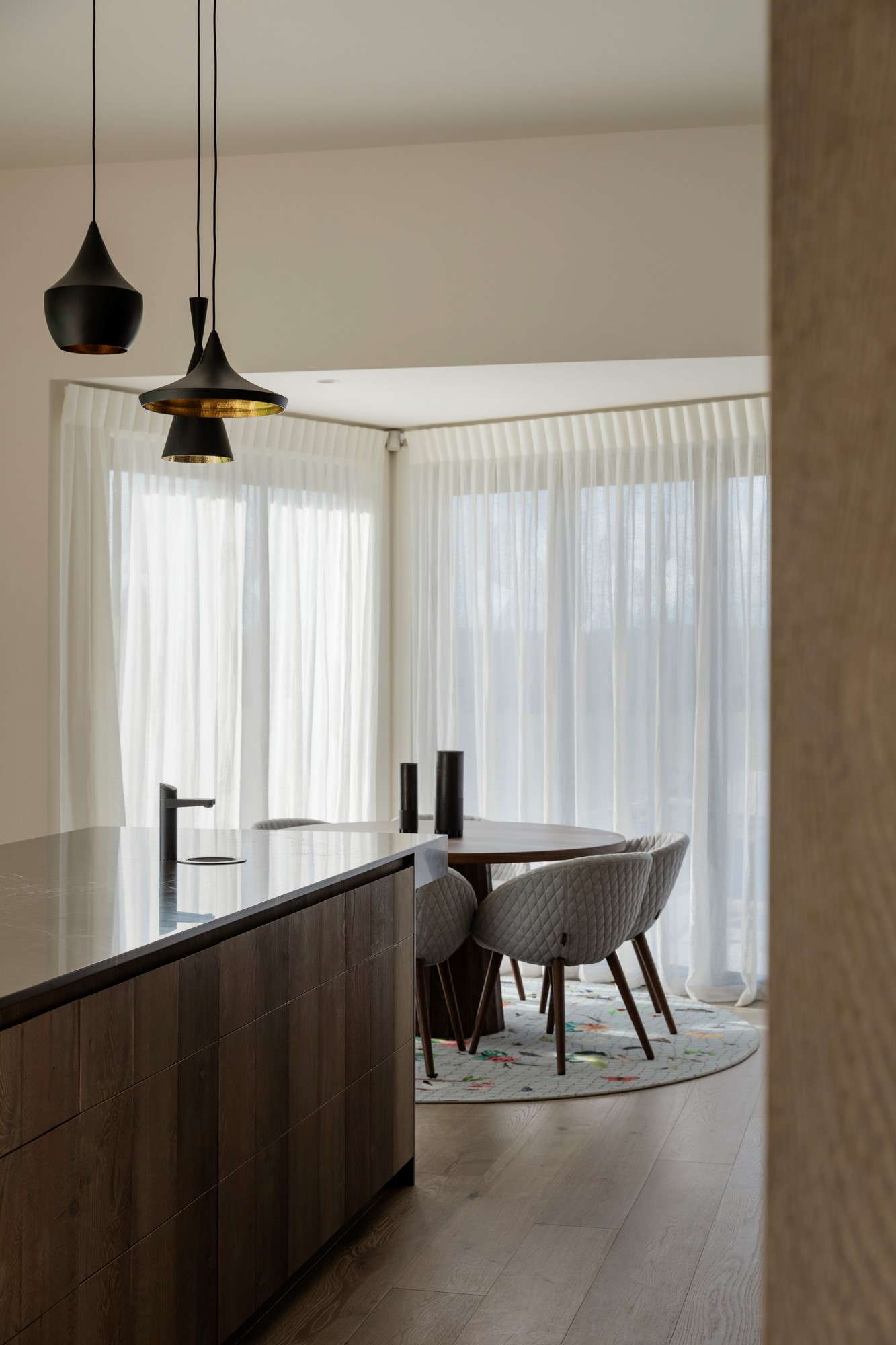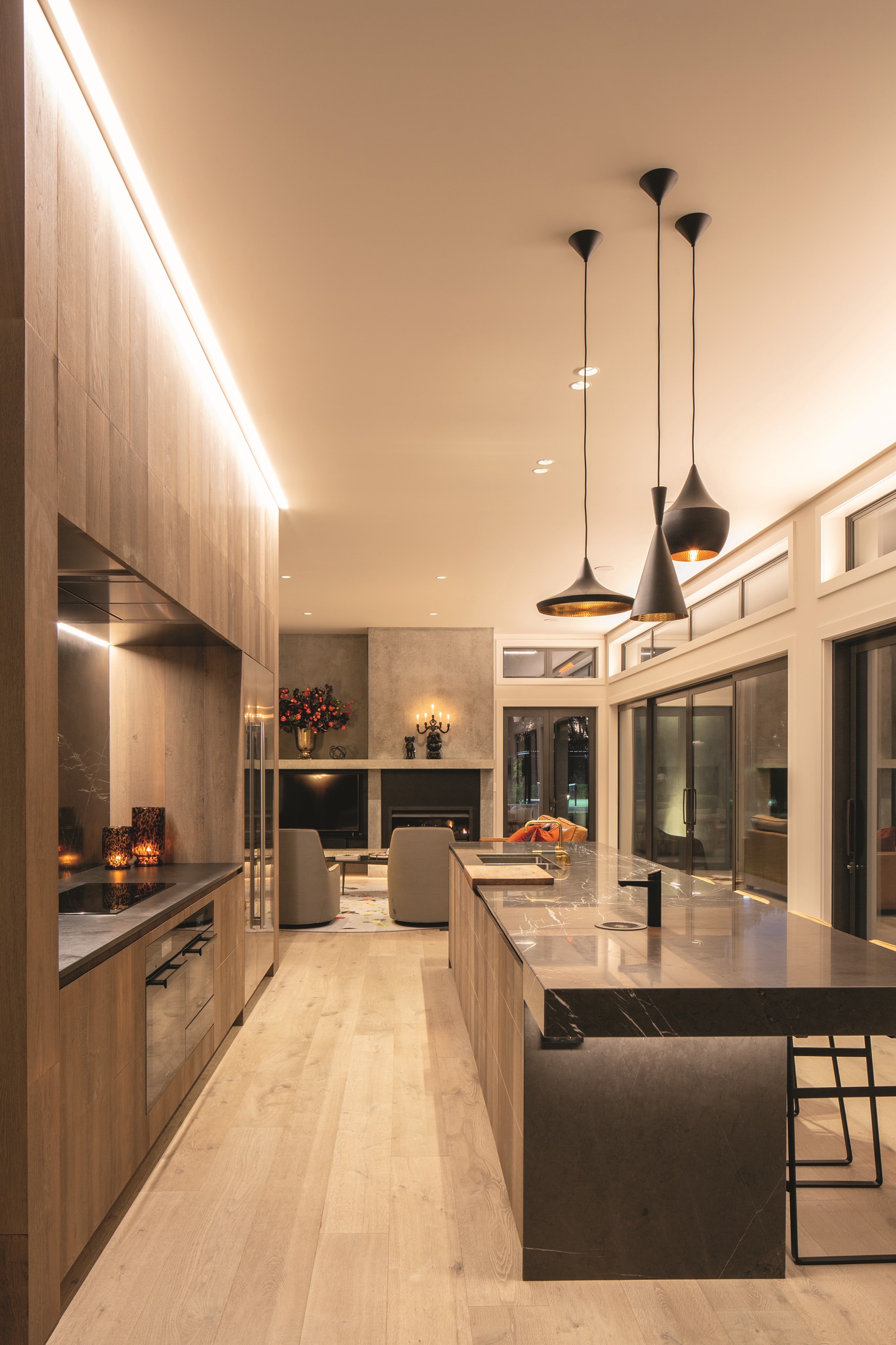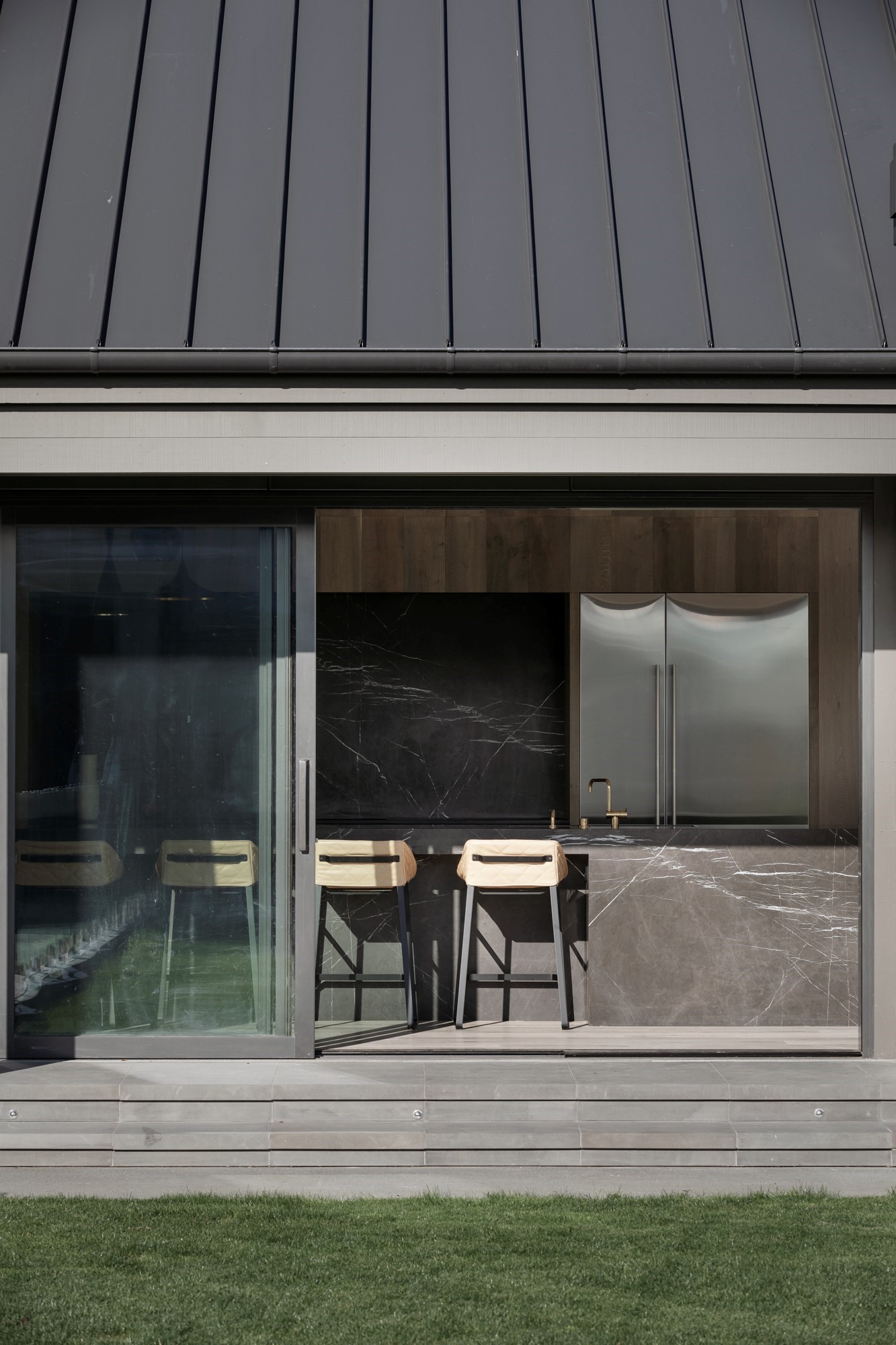 The builders thoroughly enjoyed working on this luxurious architecturally designed home, which is set among orchards on the edge of Havelock North. Within its floorplan are four large bedrooms, each with ensuite and walk-in wardrobe; two spacious living areas; and a formal dining area. The cedar-clad residence was designed to function either as a 550sqm family home, or a 250sqm home for two, with a guest wing. Precast concrete chimneys and portals over doorways are elegant, while the high-seamed roof profile adds a touch of class. High gables with no soffits as well as boxed corners and facings around the windows, required significant exterior trim, which has been achieved to the highest level. Three log burners keep the whole home cosy in winter, while solar panels on the roof help generate energy. The interior features natural materials, which are carried through to the outdoor entertaining area. Designer lighting, high-end fittings and well-placed windows top off this beautiful, bespoke home.