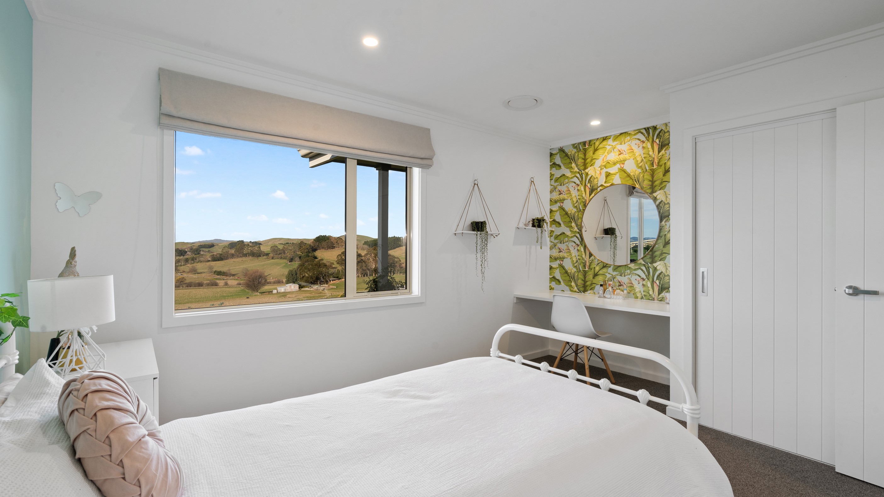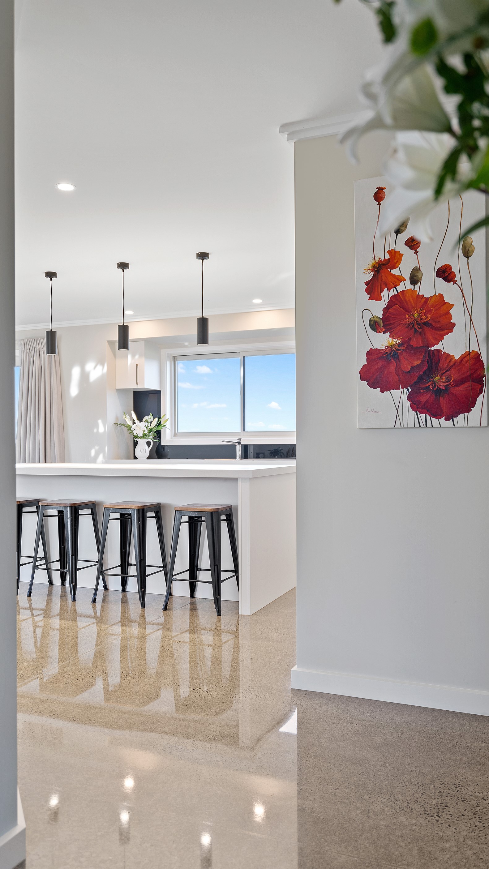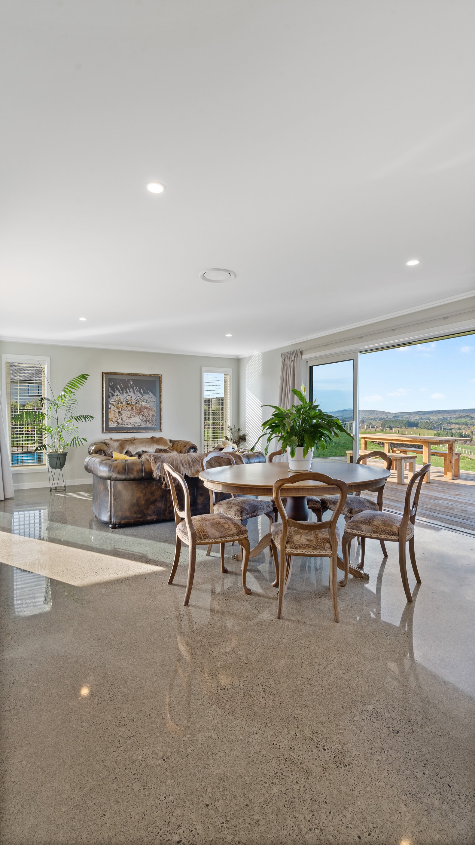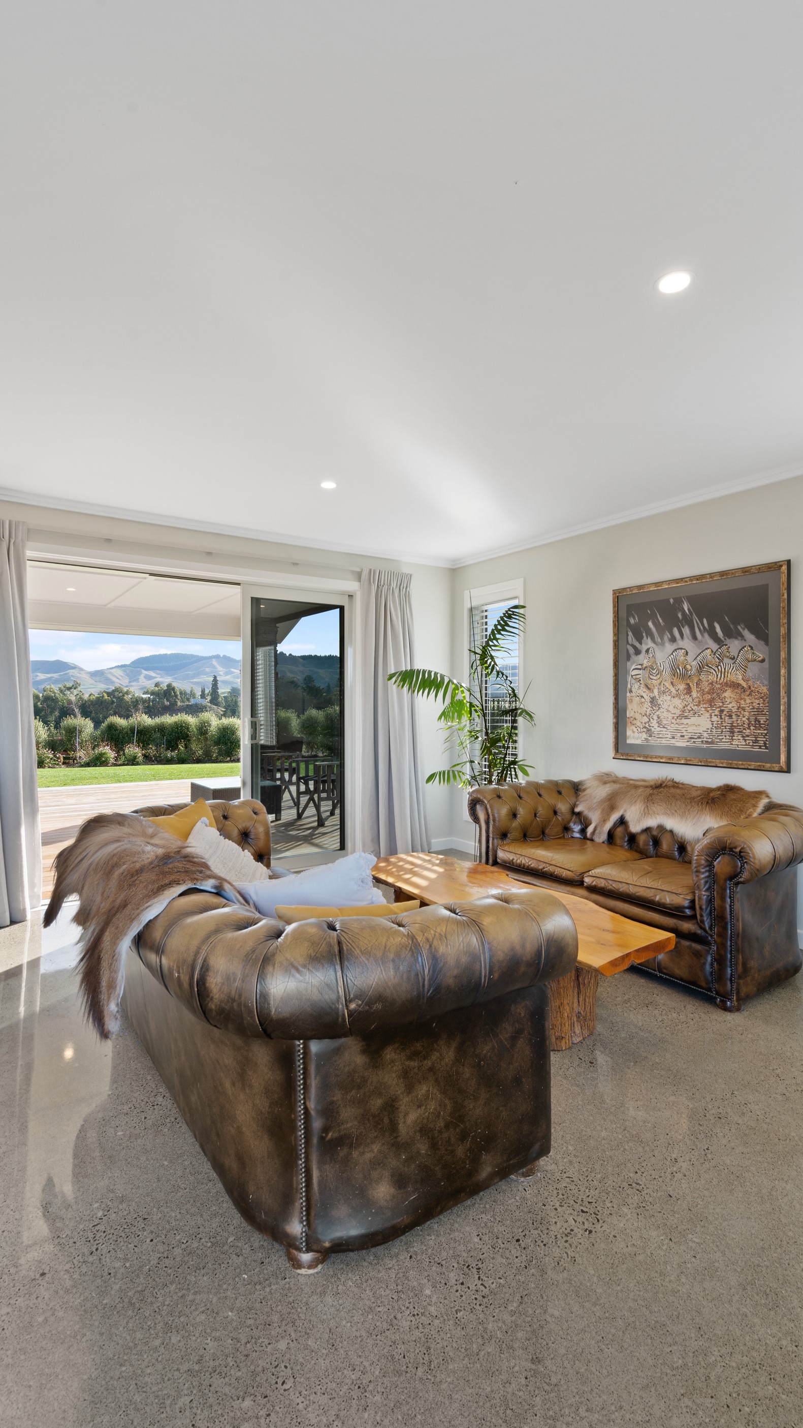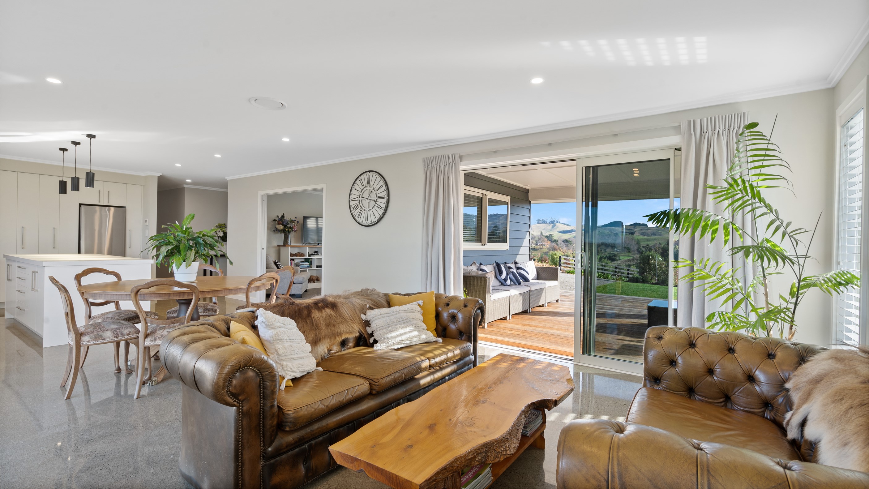 Perched on an elevated site overlooking the scenic hills and valleys of Central Hawke’s Bay, this four-bedroom home is all about location, views and relaxed family living. Constructed from quality, low-maintenance materials with schist pillars and exposed aggregate concrete footpaths, the 210sqm home fits like a glove within the landscape. The positioning was carefully considered to make the most of its idyllic location, with service areas to the south and living to the north. Practical, easy-care polished concrete flooring in the open-plan dining space and kitchen traps warmth from sunlight flooding in through the glazing. With the addition of ducted heating and cooling systems, the home stays comfortably temperate all year round. A separate media room can be closed off with cavity sliders to create a quiet, private space for getting stuck into a good movie or book. The carpeted and fully insulated garage has been set up with a pool table and table tennis for family games nights. In summer, the hot Hawke’s Bay days provide a welcome excuse to spend the afternoon in the swimming pool.