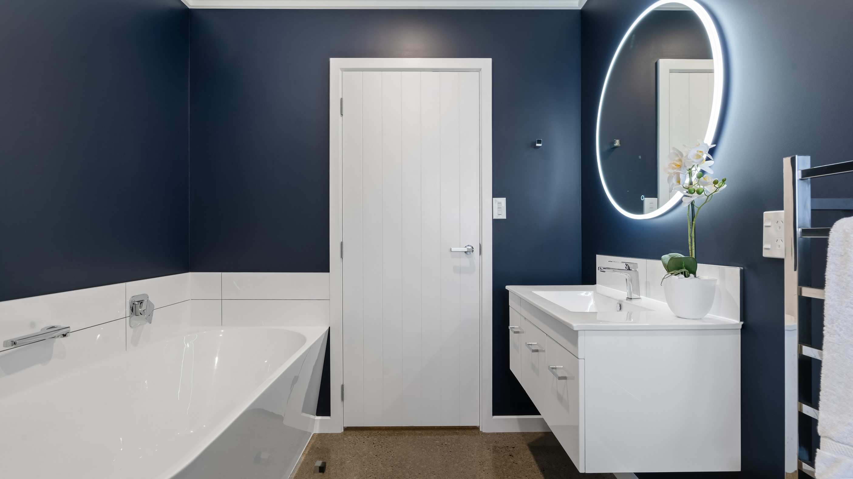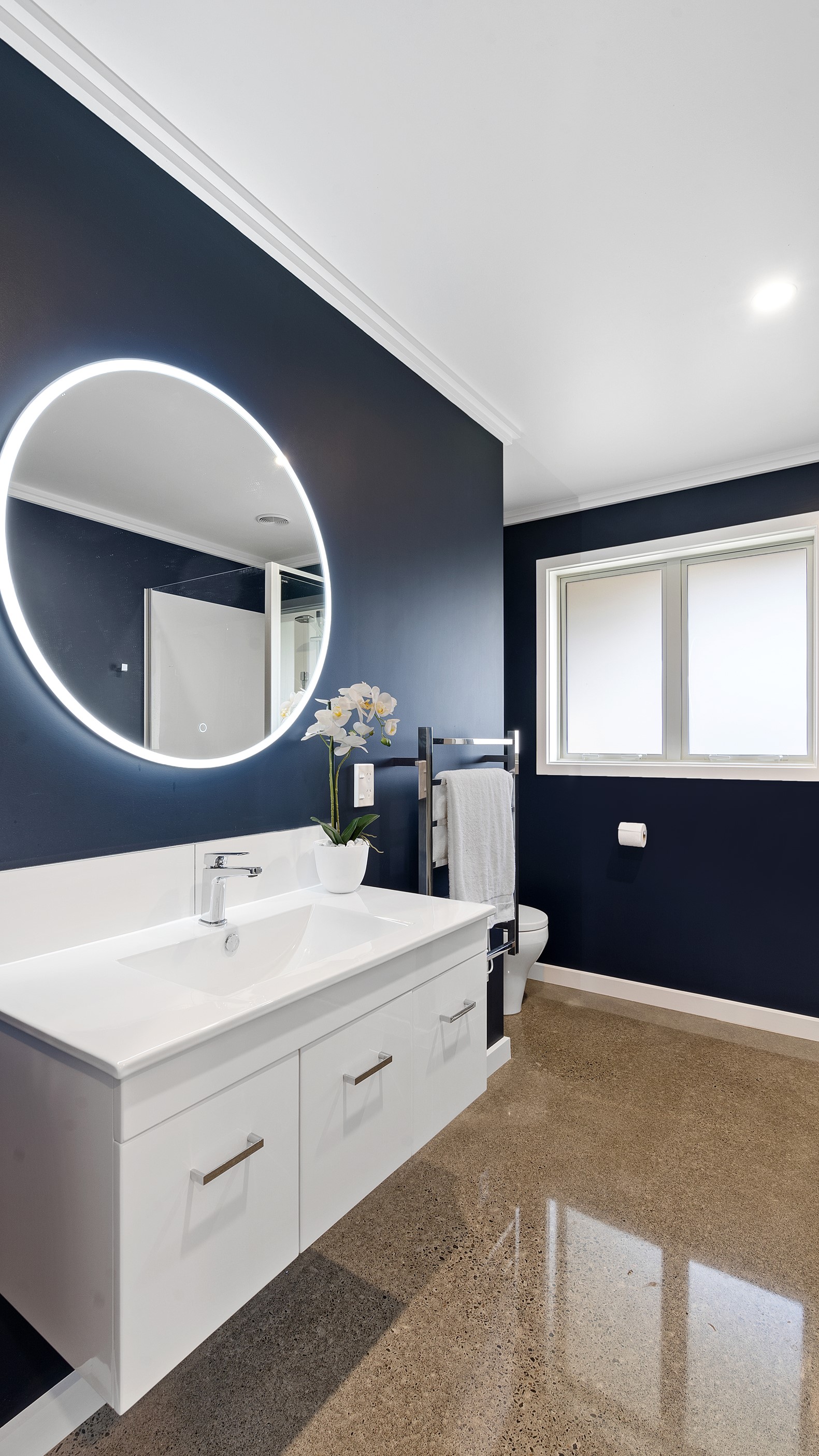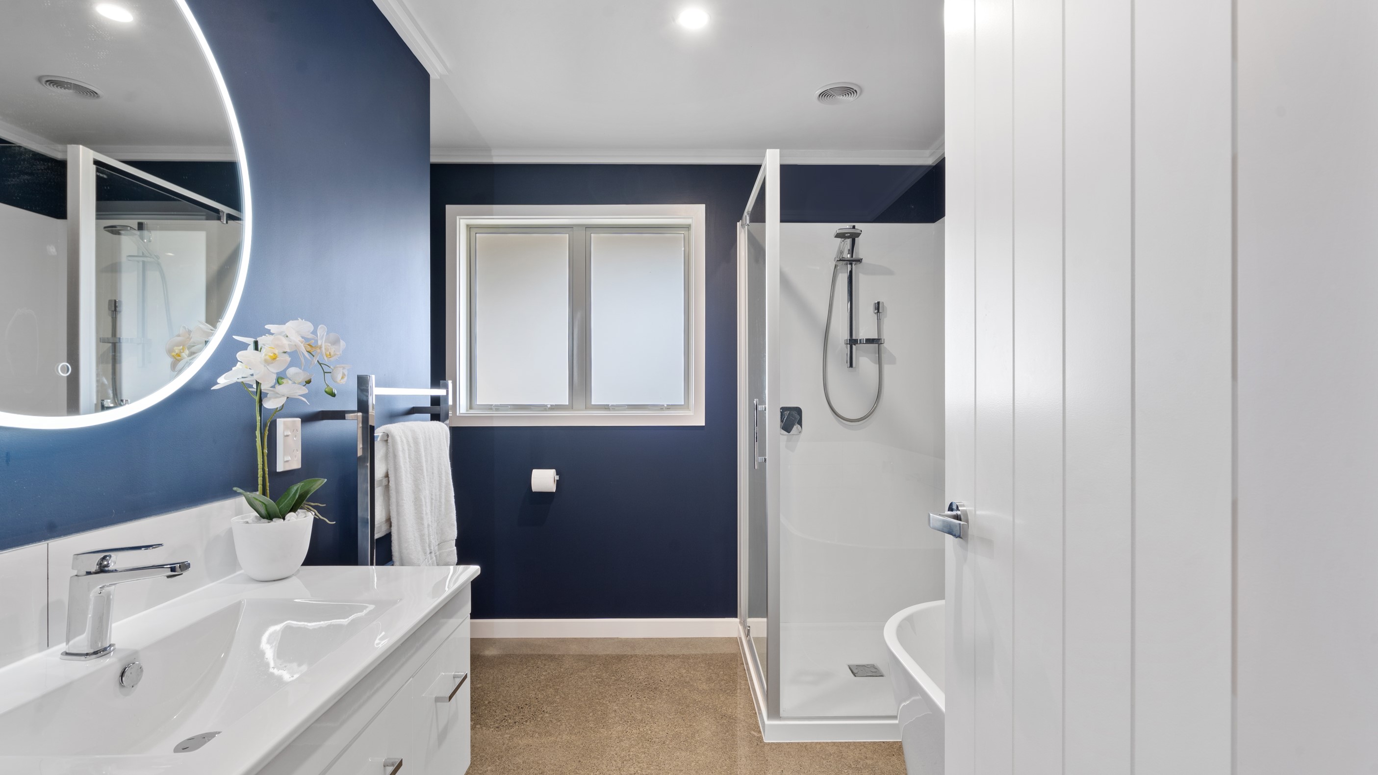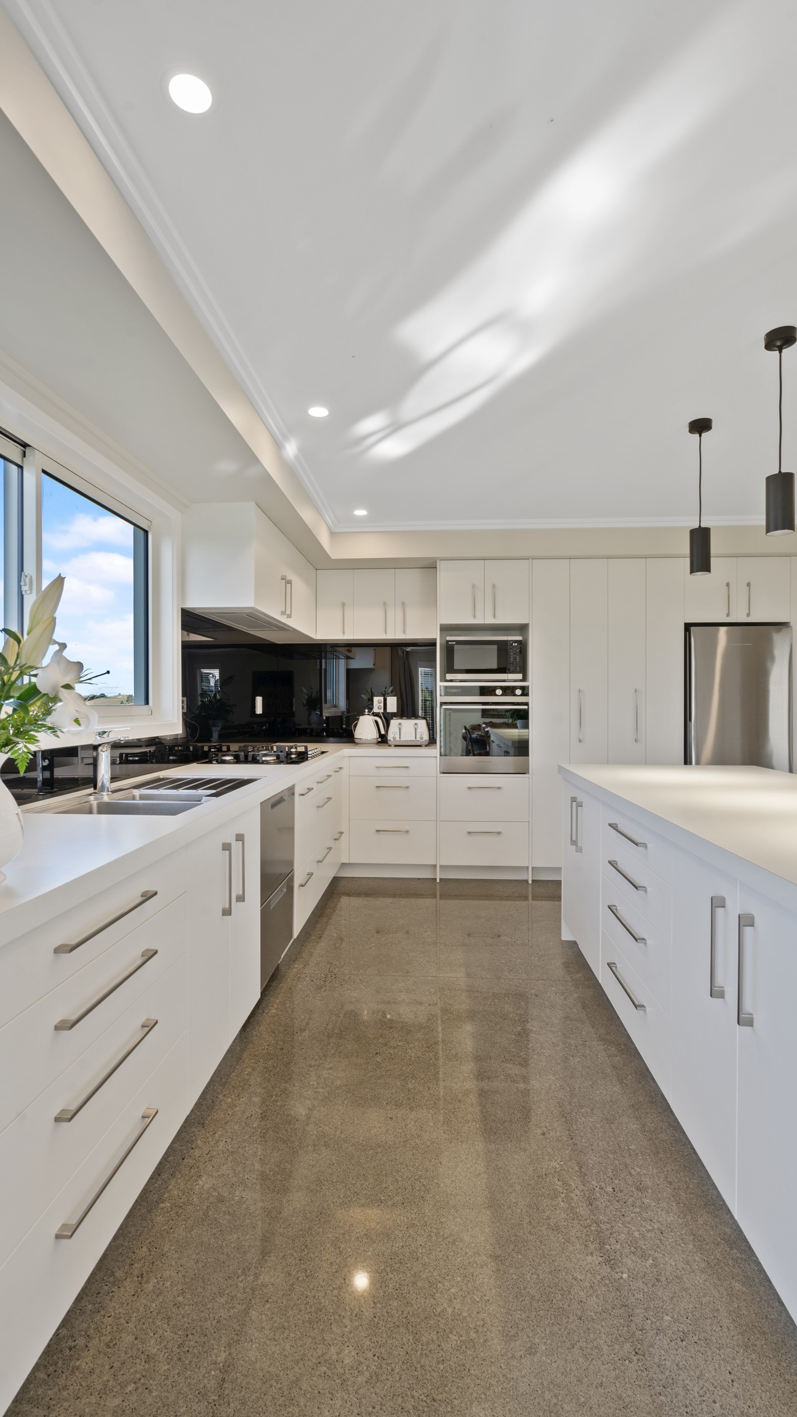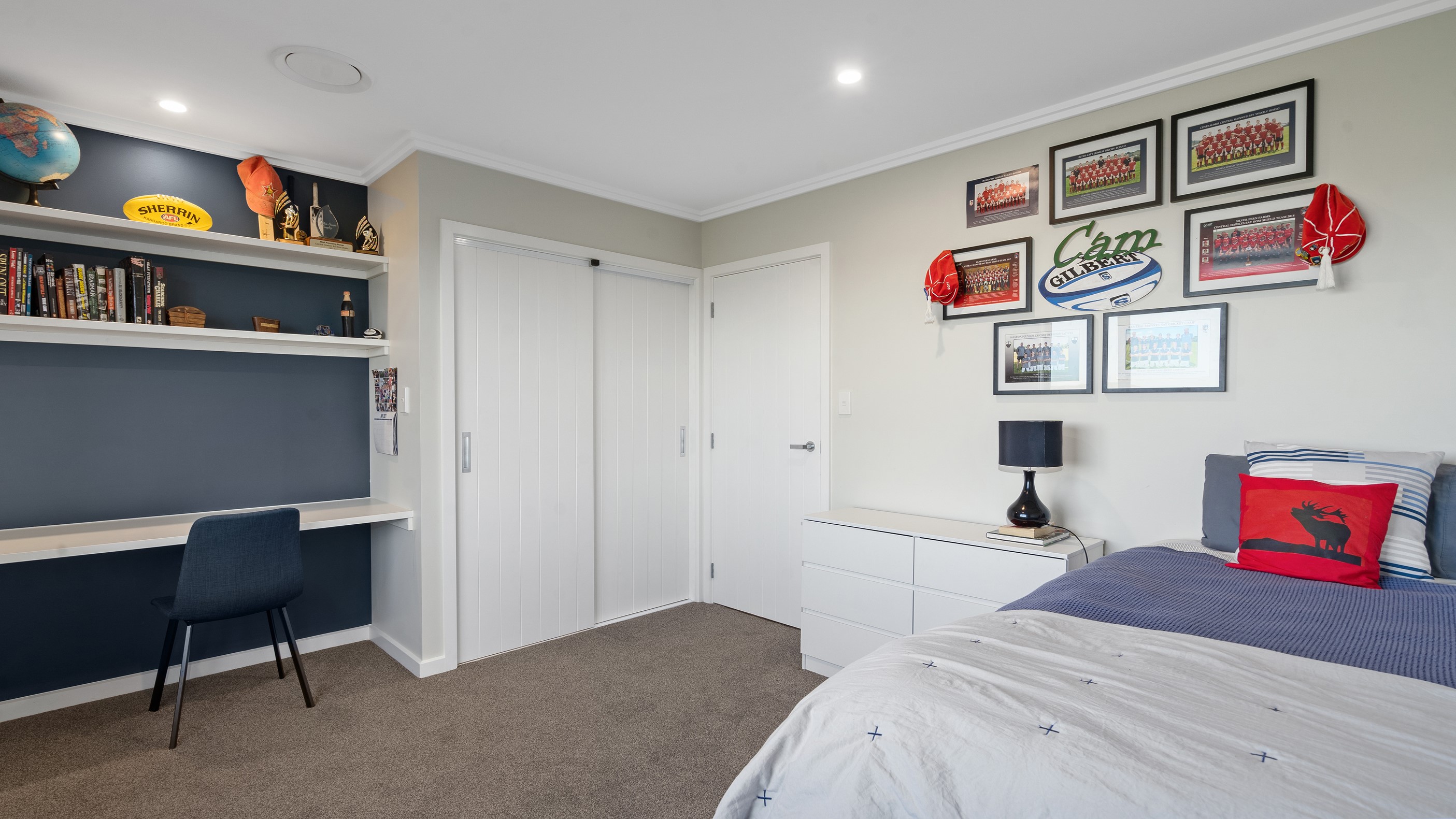 Perched on an elevated site overlooking the scenic hills and valleys of Central Hawke’s Bay, this four-bedroom home is all about location, views and relaxed family living. Constructed from quality, low-maintenance materials with schist pillars and exposed aggregate concrete footpaths, the 210sqm home fits like a glove within the landscape. The positioning was carefully considered to make the most of its idyllic location, with service areas to the south and living to the north. Practical, easy-care polished concrete flooring in the open-plan dining space and kitchen traps warmth from sunlight flooding in through the glazing. With the addition of ducted heating and cooling systems, the home stays comfortably temperate all year round. A separate media room can be closed off with cavity sliders to create a quiet, private space for getting stuck into a good movie or book. The carpeted and fully insulated garage has been set up with a pool table and table tennis for family games nights. In summer, the hot Hawke’s Bay days provide a welcome excuse to spend the afternoon in the swimming pool.