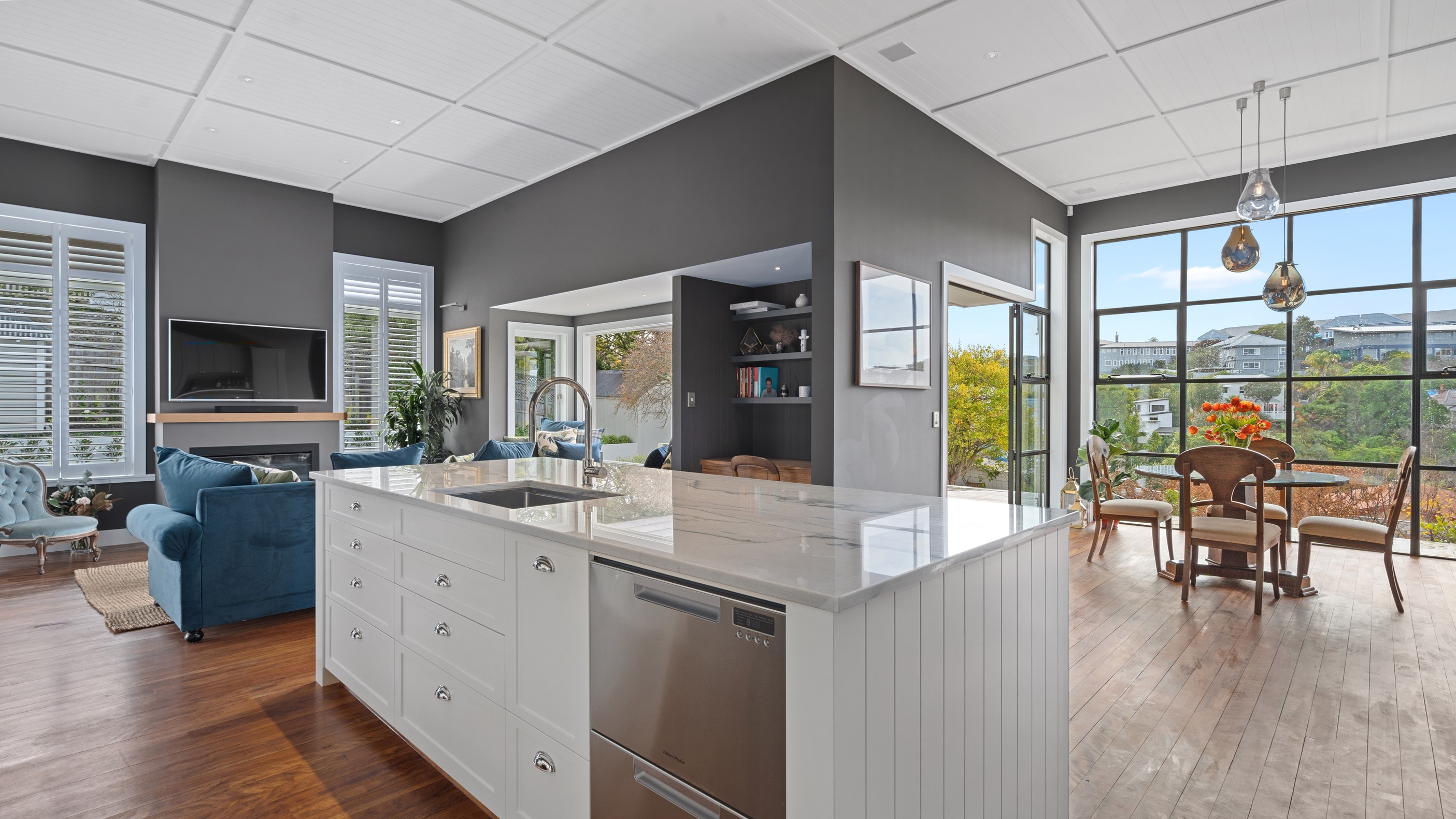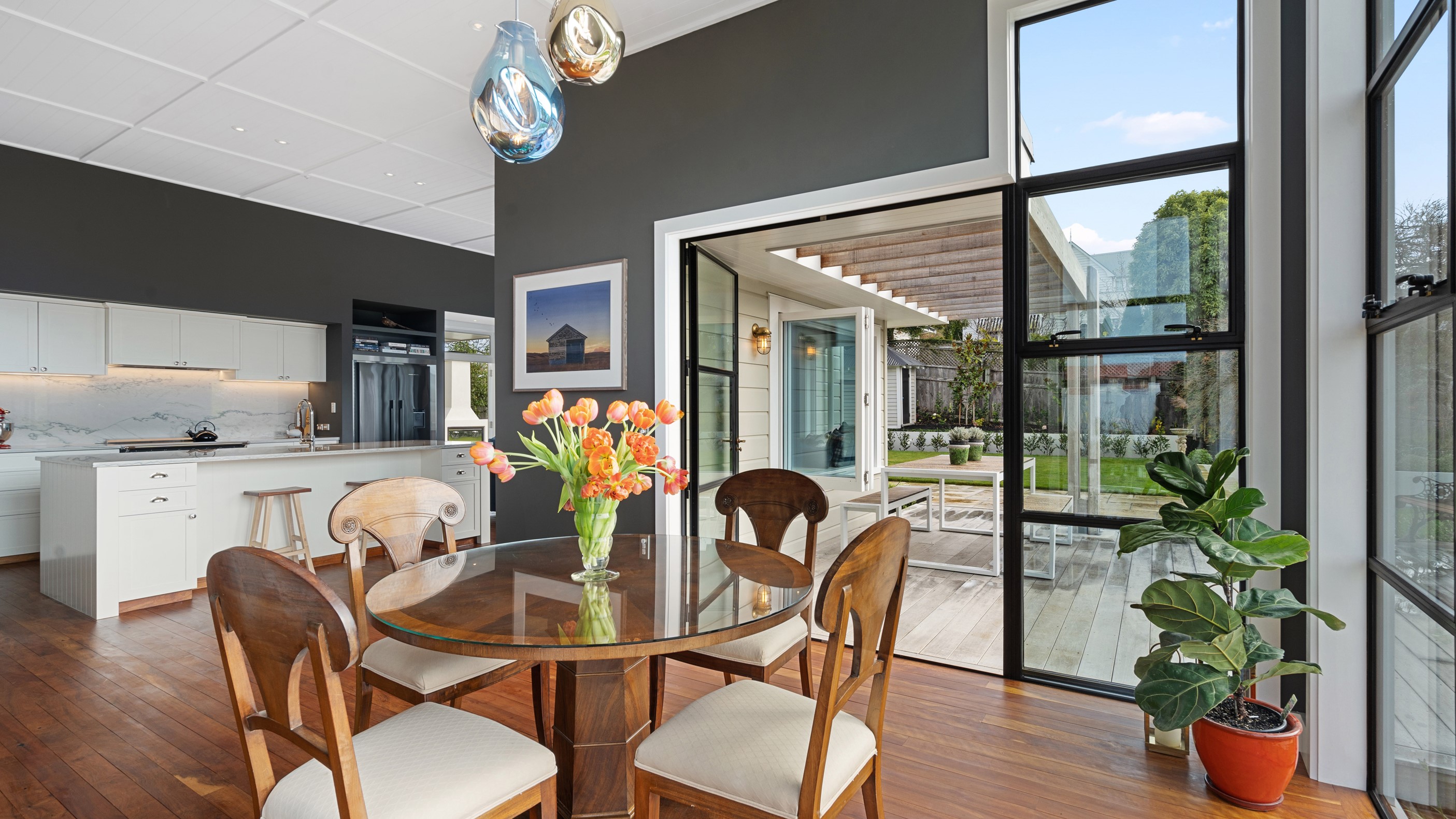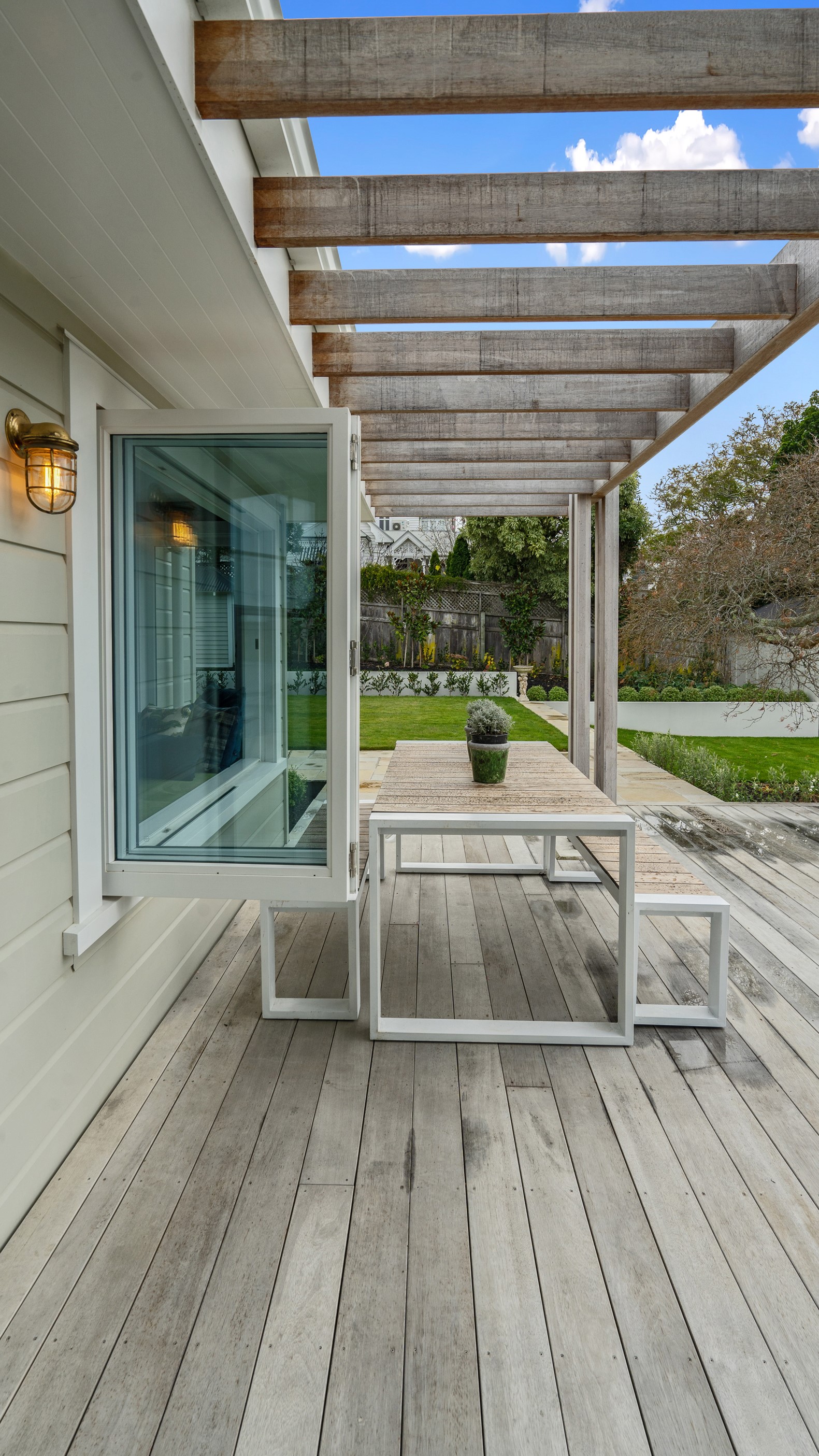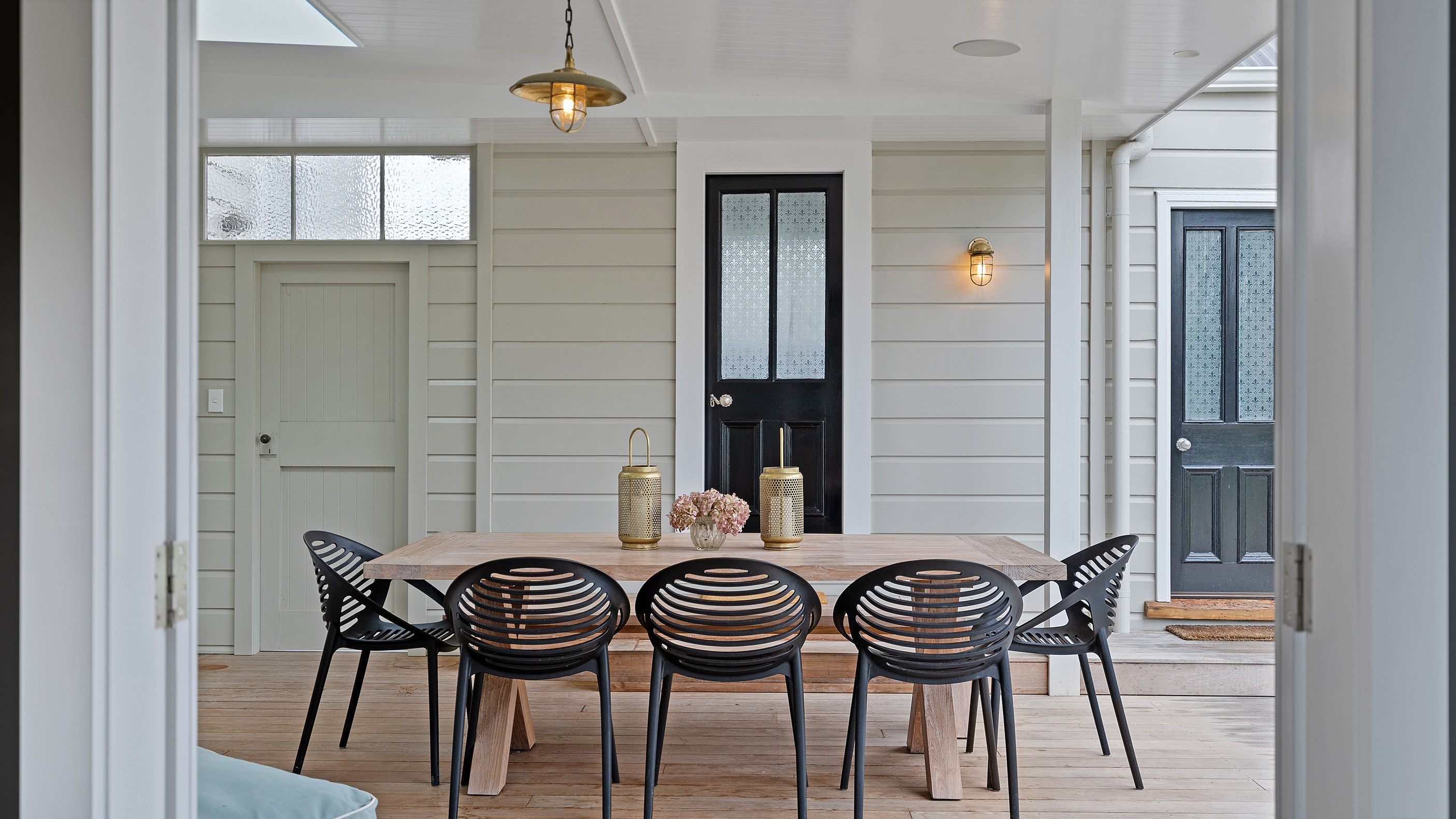 This much-loved century-old home has been infused with new life thanks to a carefully planned renovation that seamlessly connects with, and enhances, its original character. The primary purpose of the reno was to provide the family of four with a better flow within the home and to the outdoors. The project entailed a new kitchen, family and dining rooms, laundry, toilet and covered decks. In keeping with its 1900s charm, timber has been used throughout the renovation, including the floors, window and door joinery, ceilings, weatherboards and decking. The large windows that wrap the dining room are encased in steel units, slimmer profiles than the timber equivalent, to maximise the views. In the heart of the home, the kitchen is finished with Shaker-style cabinetry, a gas stove and stone benchtops that collectively complement the era of the house. With 60sqm of much-need extra space, an easy flow from the living area out to decking, and immaculately landscaped surrounds, this cherished home works perfectly for its modern family.