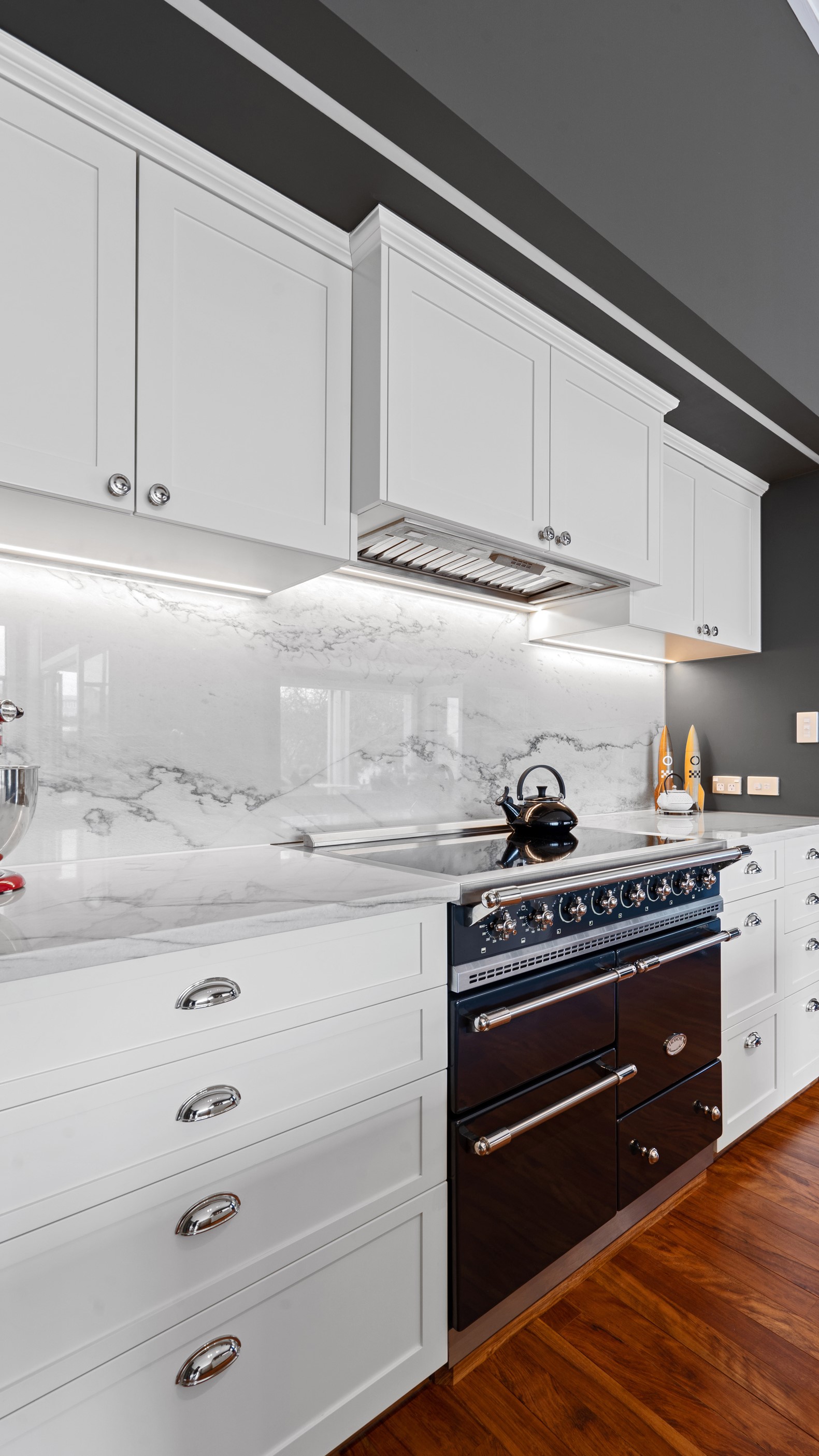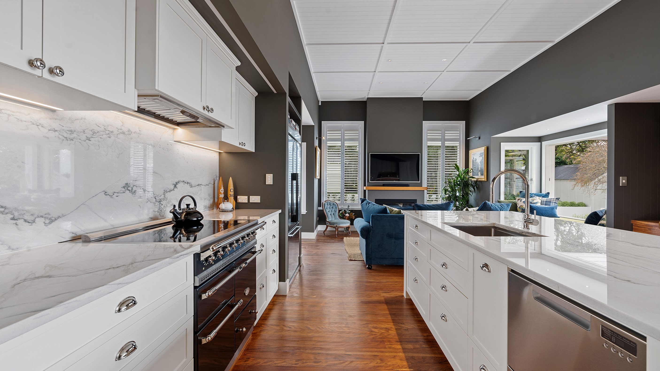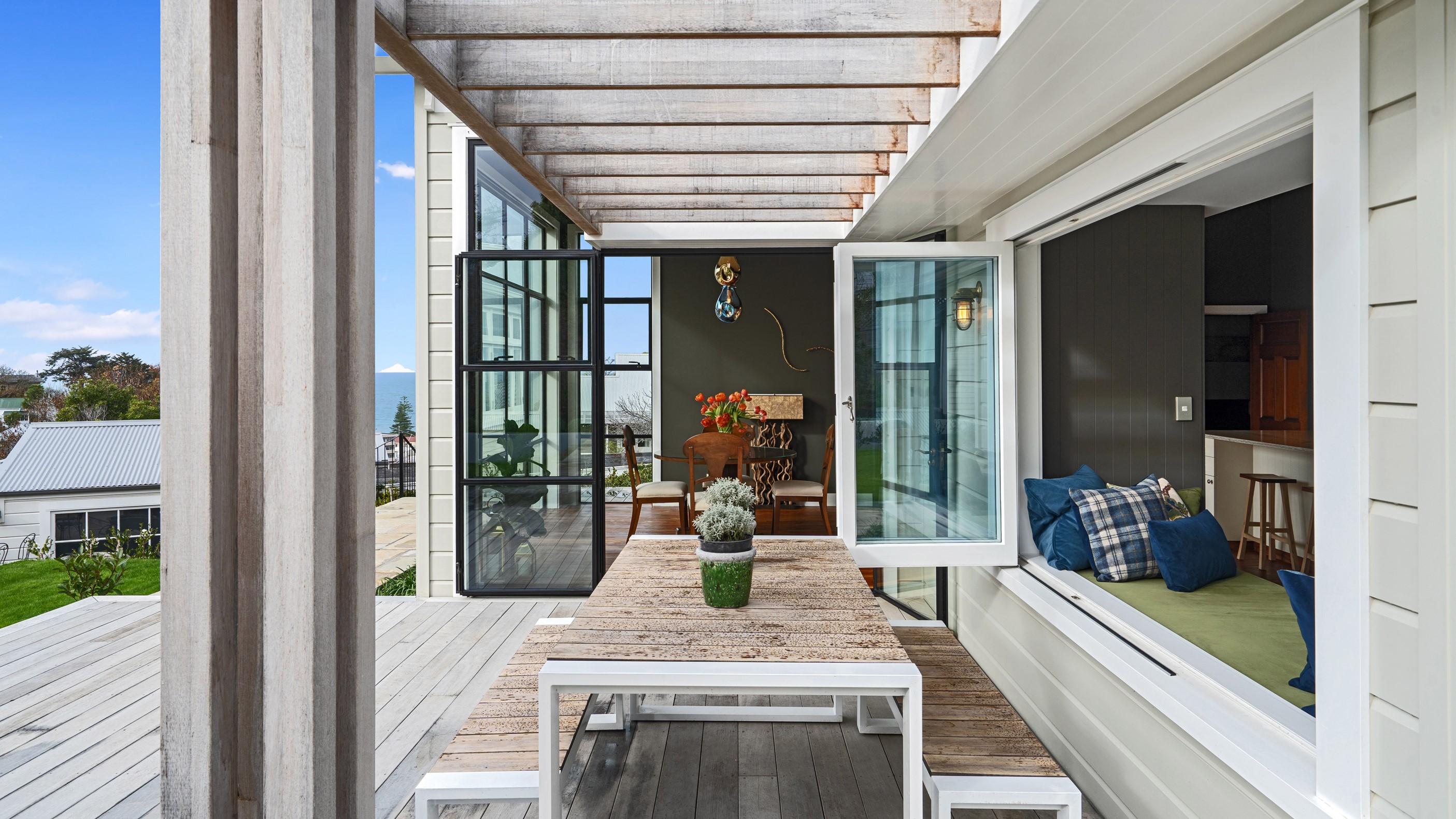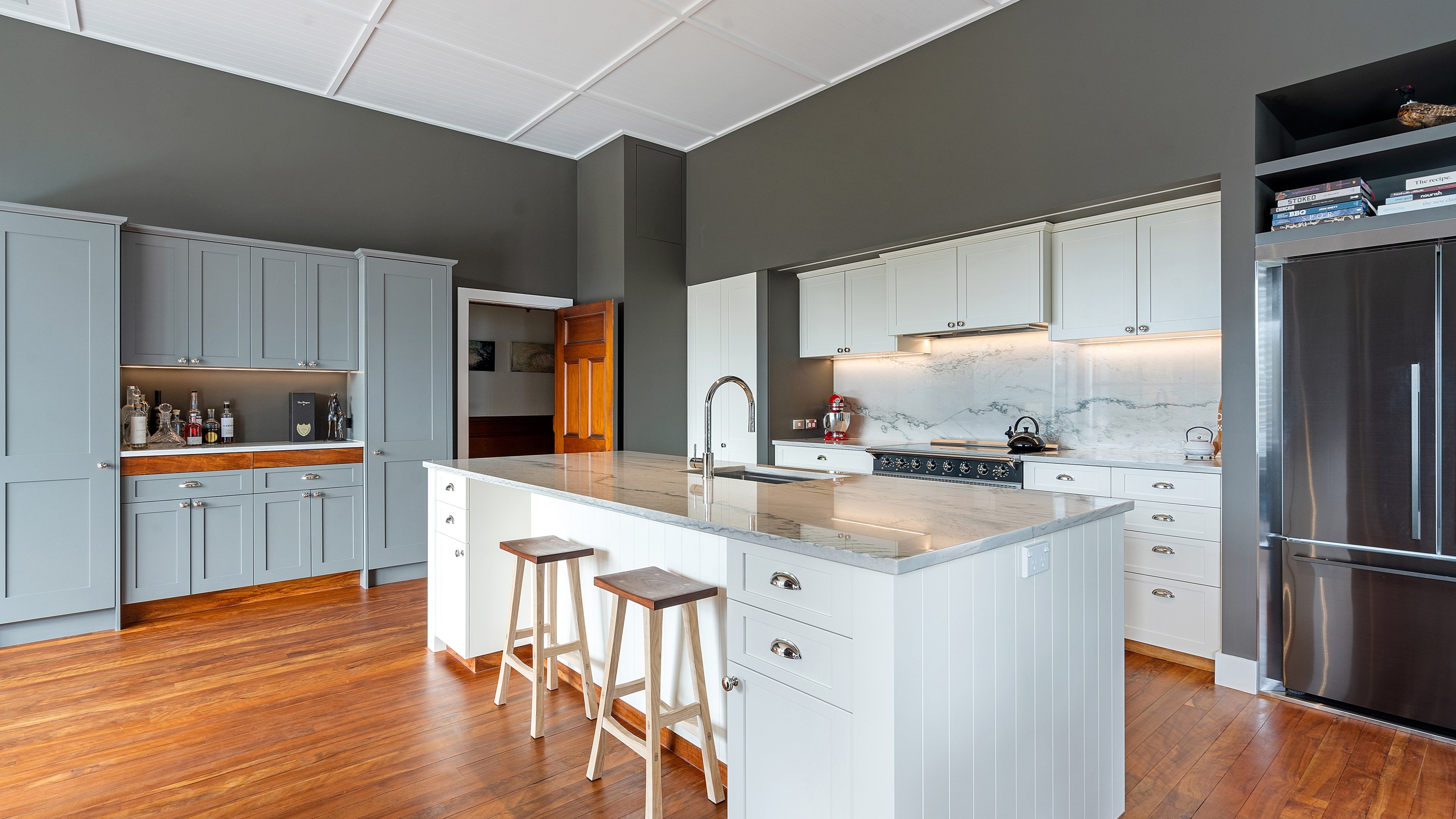This much-loved century-old home has been infused with new life thanks to a carefully planned renovation that seamlessly connects with, and enhances, its original character. The primary purpose of the reno was to provide the family of four with a better flow within the home and to the outdoors. The project entailed a new kitchen, family and dining rooms, laundry, toilet and covered decks. In keeping with its 1900s charm, timber has been used throughout the renovation, including the floors, window and door joinery, ceilings, weatherboards and decking. The large windows that wrap the dining room are encased in steel units, slimmer profiles than the timber equivalent, to maximise the views. In the heart of the home, the kitchen is finished with Shaker-style cabinetry, a gas stove and stone benchtops that collectively complement the era of the house. With 60sqm of much-need extra space, an easy flow from the living area out to decking, and immaculately landscaped surrounds, this cherished home works perfectly for its modern family.