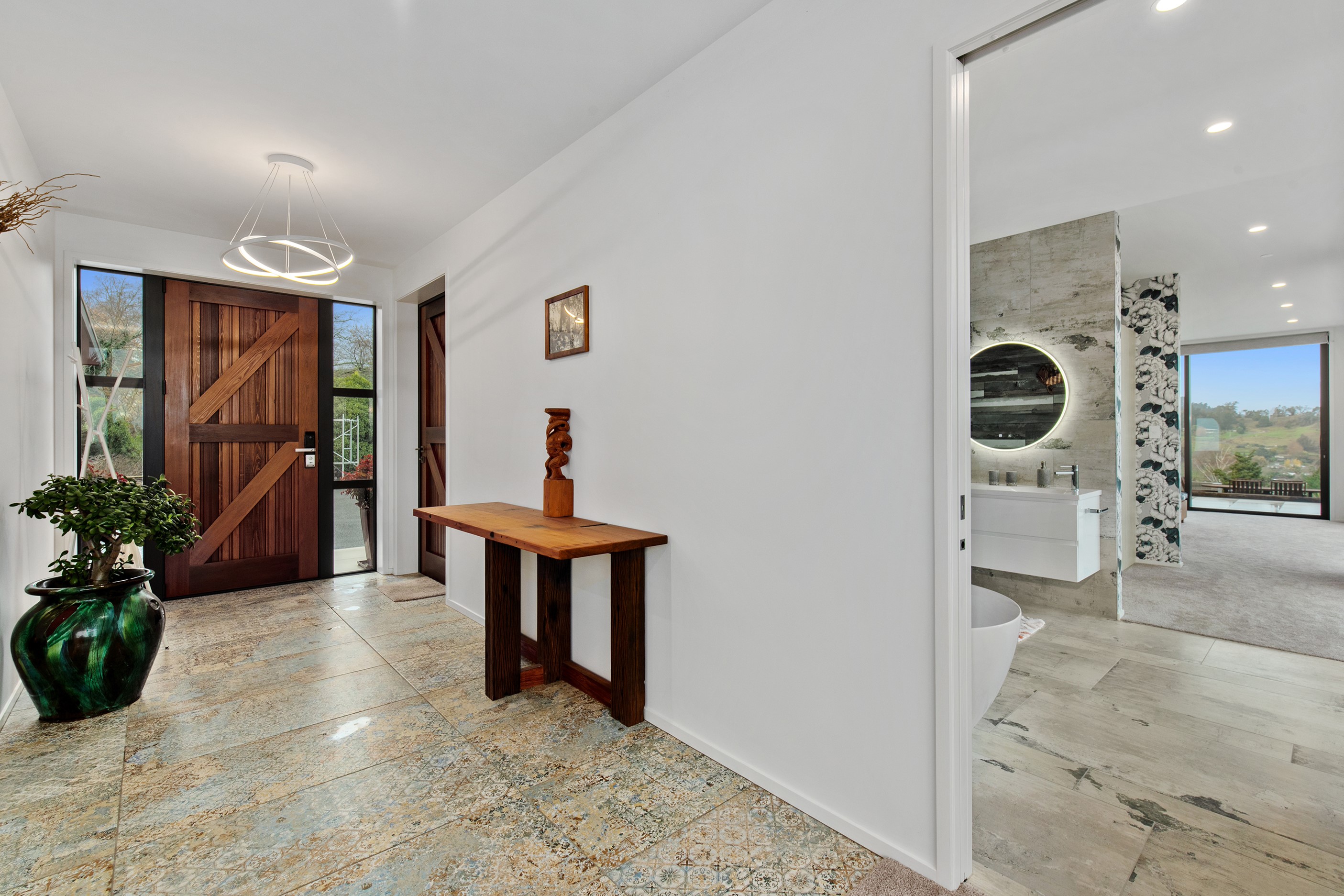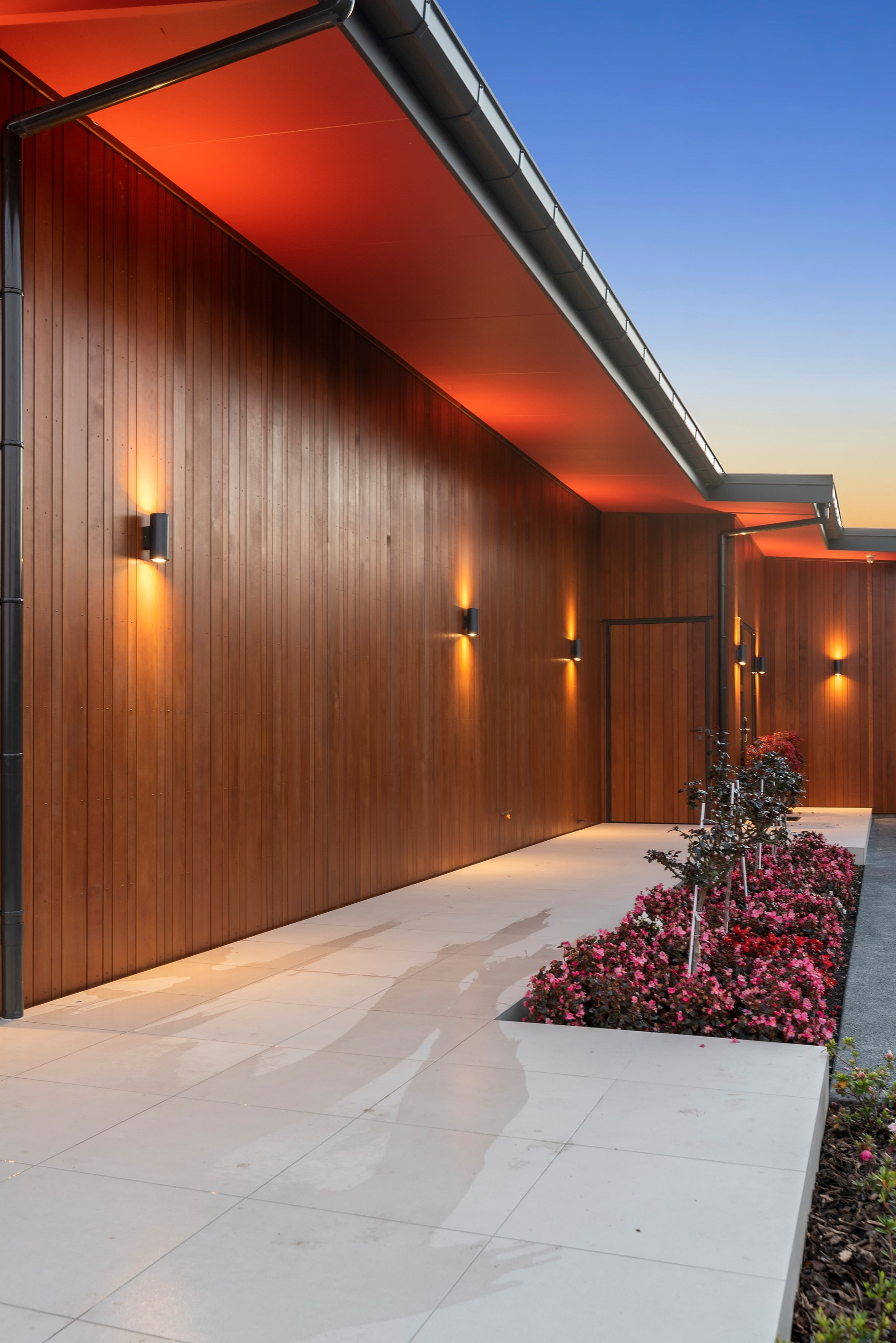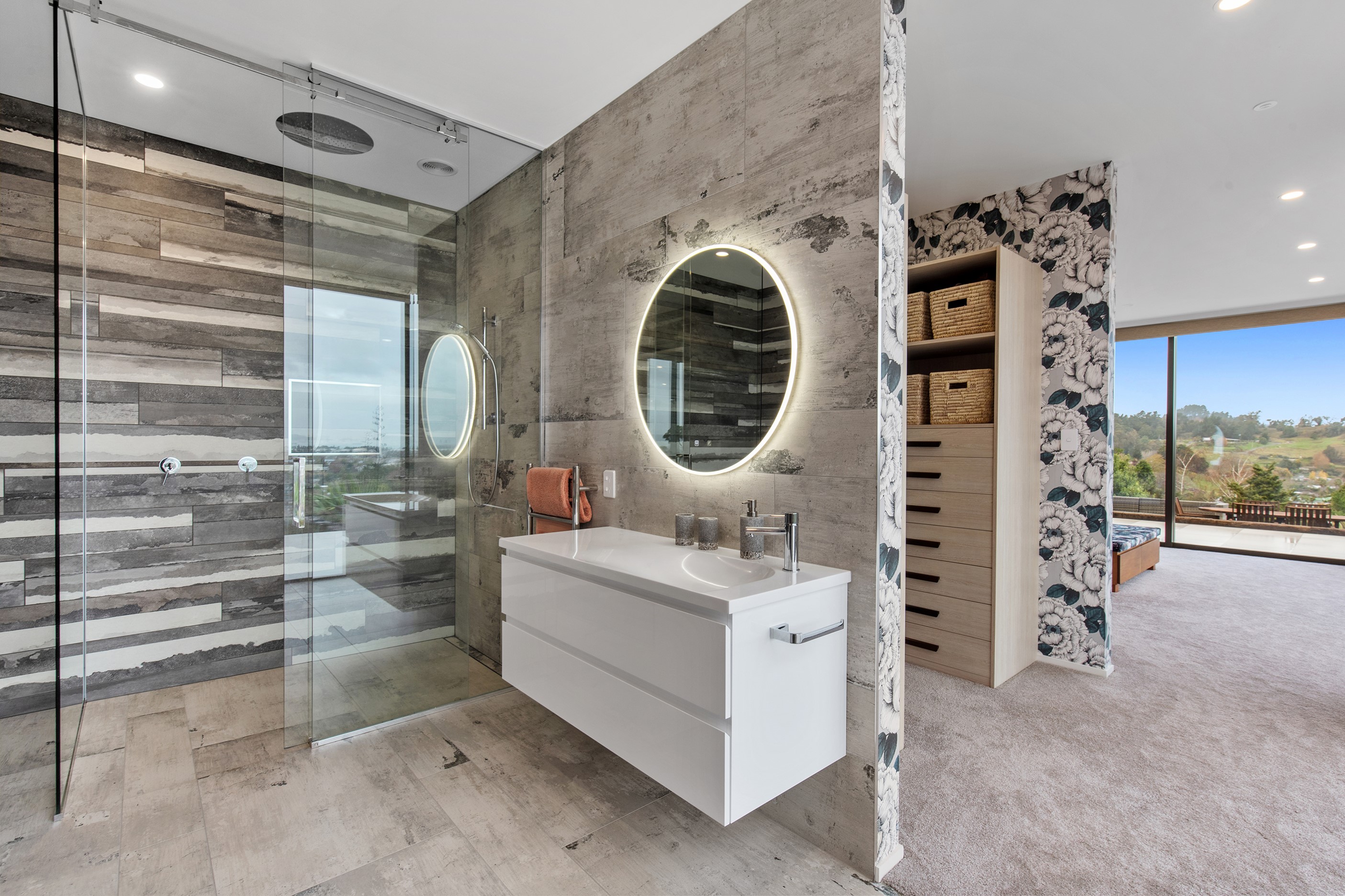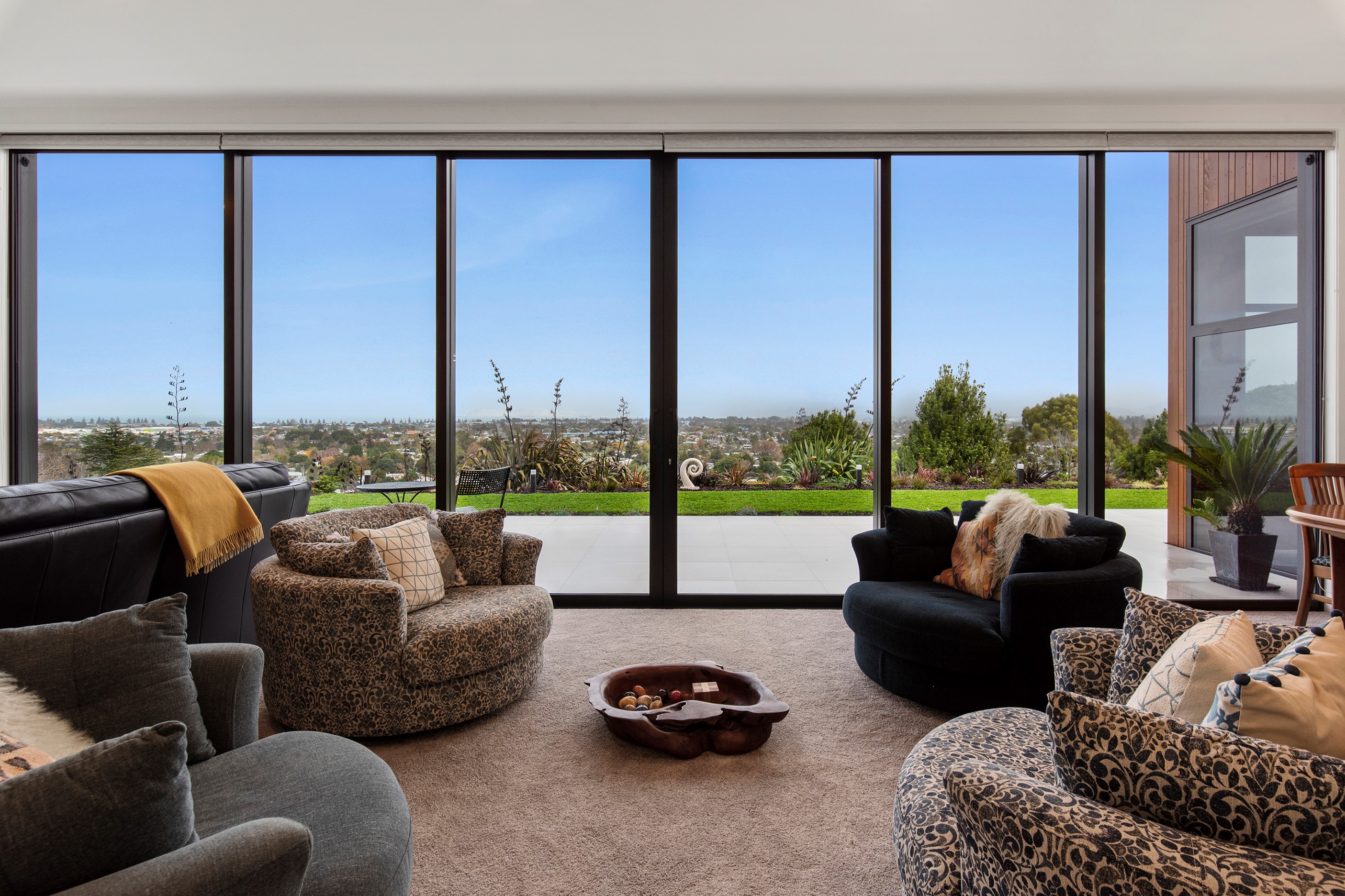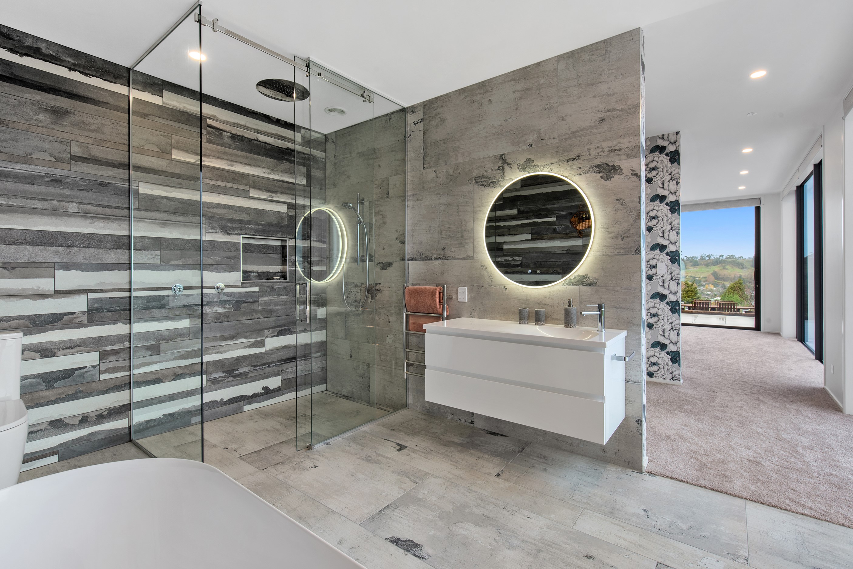 Enjoying hilltop positioning, this striking three-bedroom home has been built to capture picturesque views overlooking Tūranganui-a-Kiwa, Poverty Bay. Generously proportioned and precisely engineered glazing makes the most of the tranquil vista, while ample eaves provide shelter. Designed solely for two, the majority of the home’s 272sqm floorplan has been dedicated to the kitchen, living area and main bedroom wing. Two spare bedrooms and a large office allow ample space for the owners to work from home. Surrounded on two sides with panoramic views, the main bedroom wing is a haven. Floor-to-ceiling full-width glazing opens onto the attractively paved outdoor living area, which wraps its way around the home. The main suite is perfectly partitioned with a dressing room in the centre and the generous ensuite – complete with a freestanding bath – taking up full width at the back. Bold designer tiles, pops of colour in the kitchen and feature wallpaper add interesting touches and express the owners’ creative personalities.