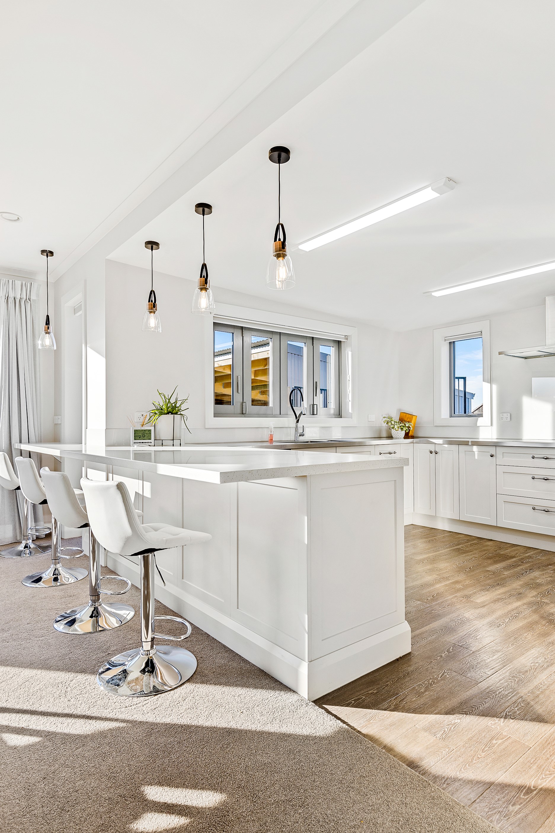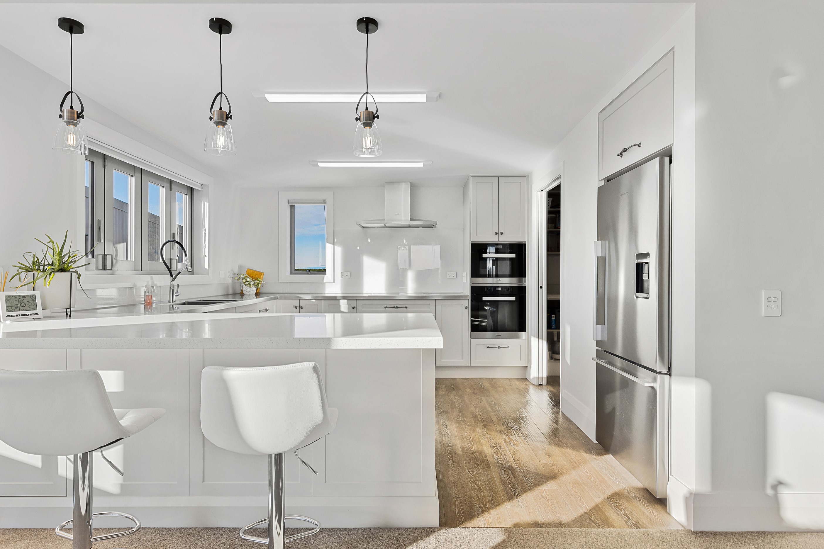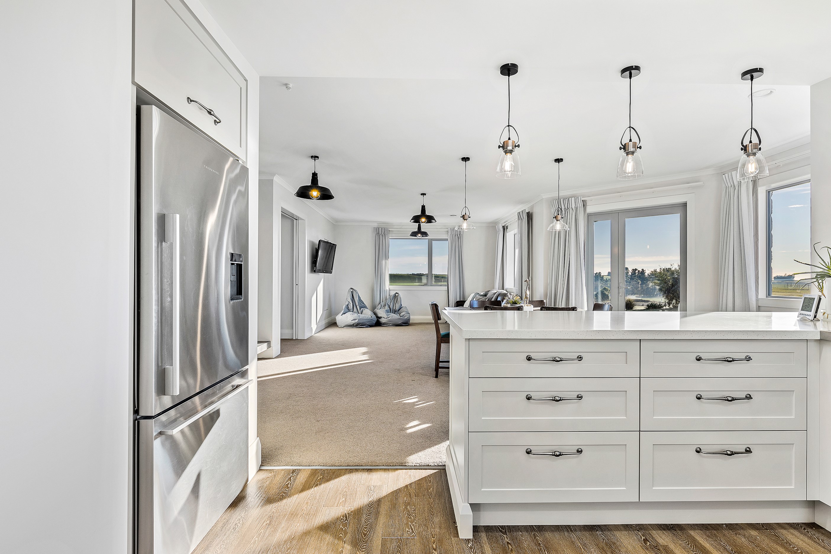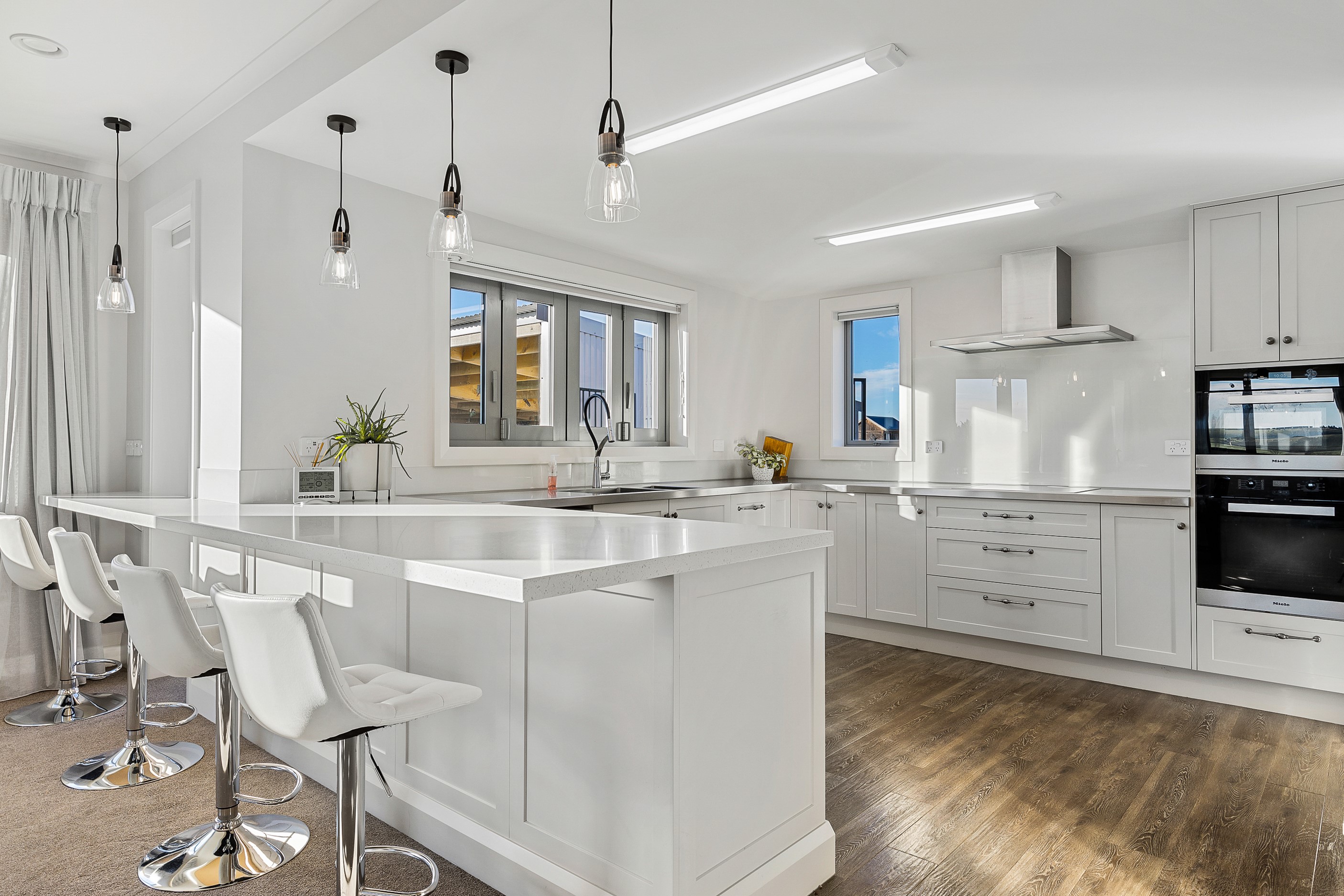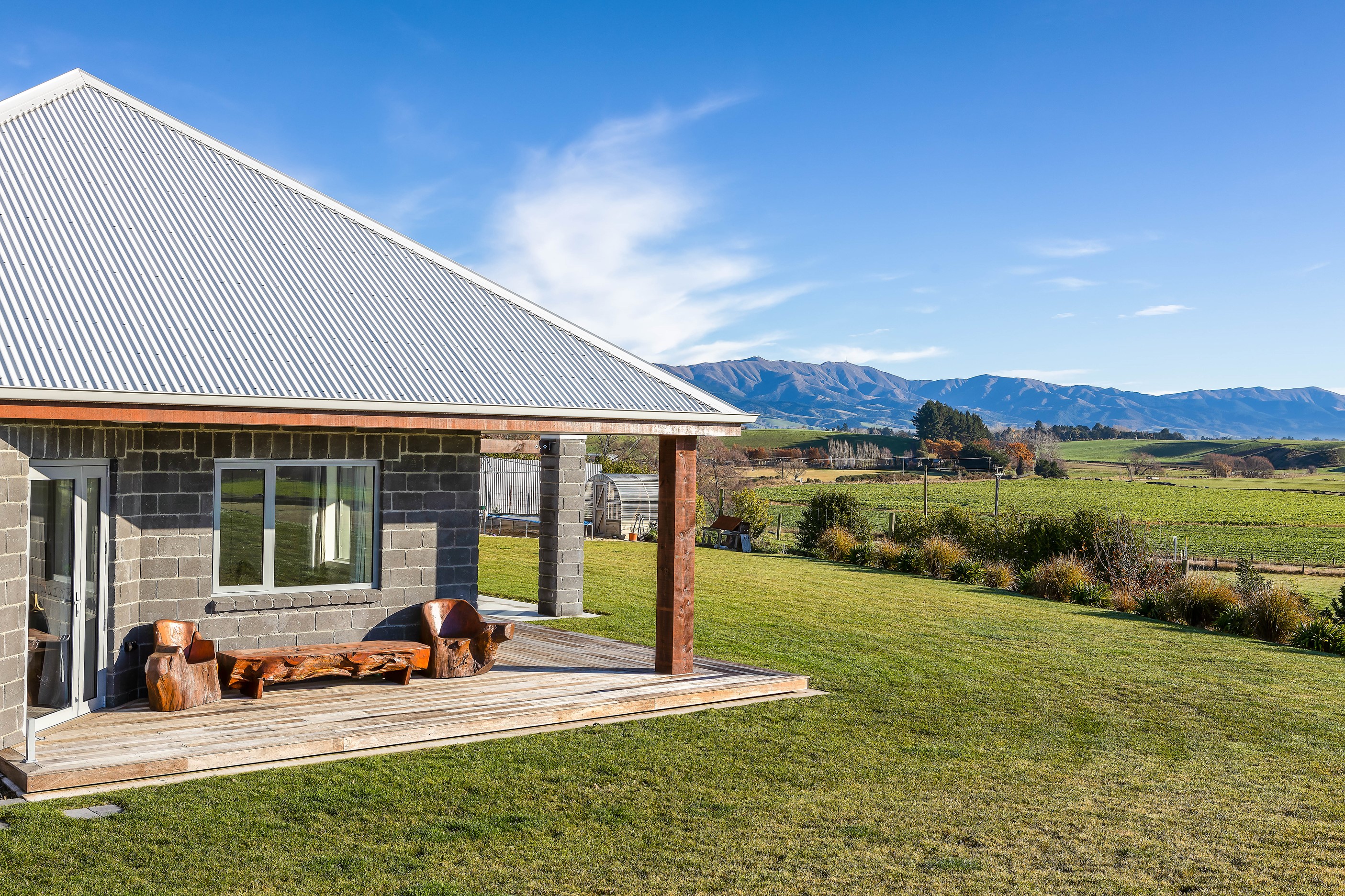 A key goal for this four-bedroom family home was to design one of the most thermally efficient builds for its size in the district. With that in mind, considerable effort has been invested into ensuring the 336sqm residence is as airtight as possible. The home can stay within a range of 18-25C degrees all year round, while only burning five cubic metres of wood. The builder-owner purchased the site 10 years earlier, allowing time to research construction ideas that would express a better living environment for his family of five. Storm-water storage, robust materials, a light-coloured roof, insulated garage doors and internal walls, and consideration of size and placement of windows have all enhanced thermal efficiency. Future-proofing elements were another focus, with provisions in the design for elderly and disabled living, plus flexible living options as family come and go, or even Airbnb possibilities. The result is a comfortable, warm and family friendly country-style home that will provide many decades of happy memories for its occupants.