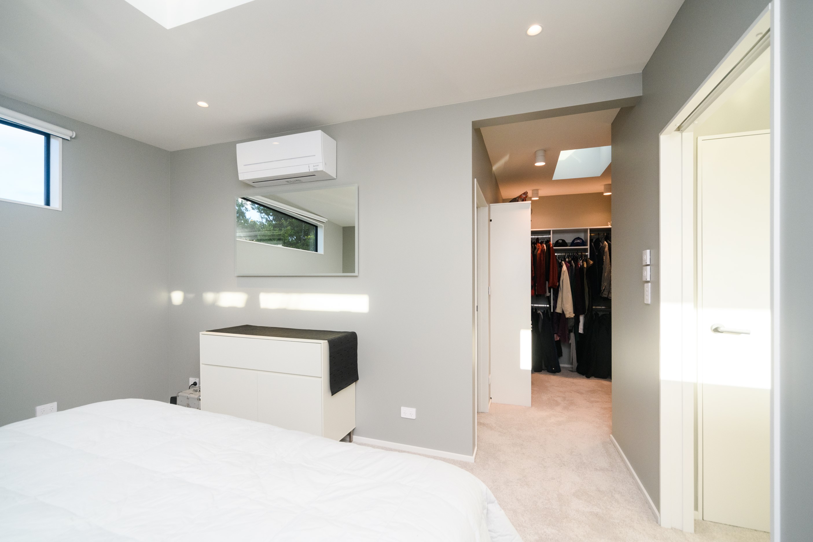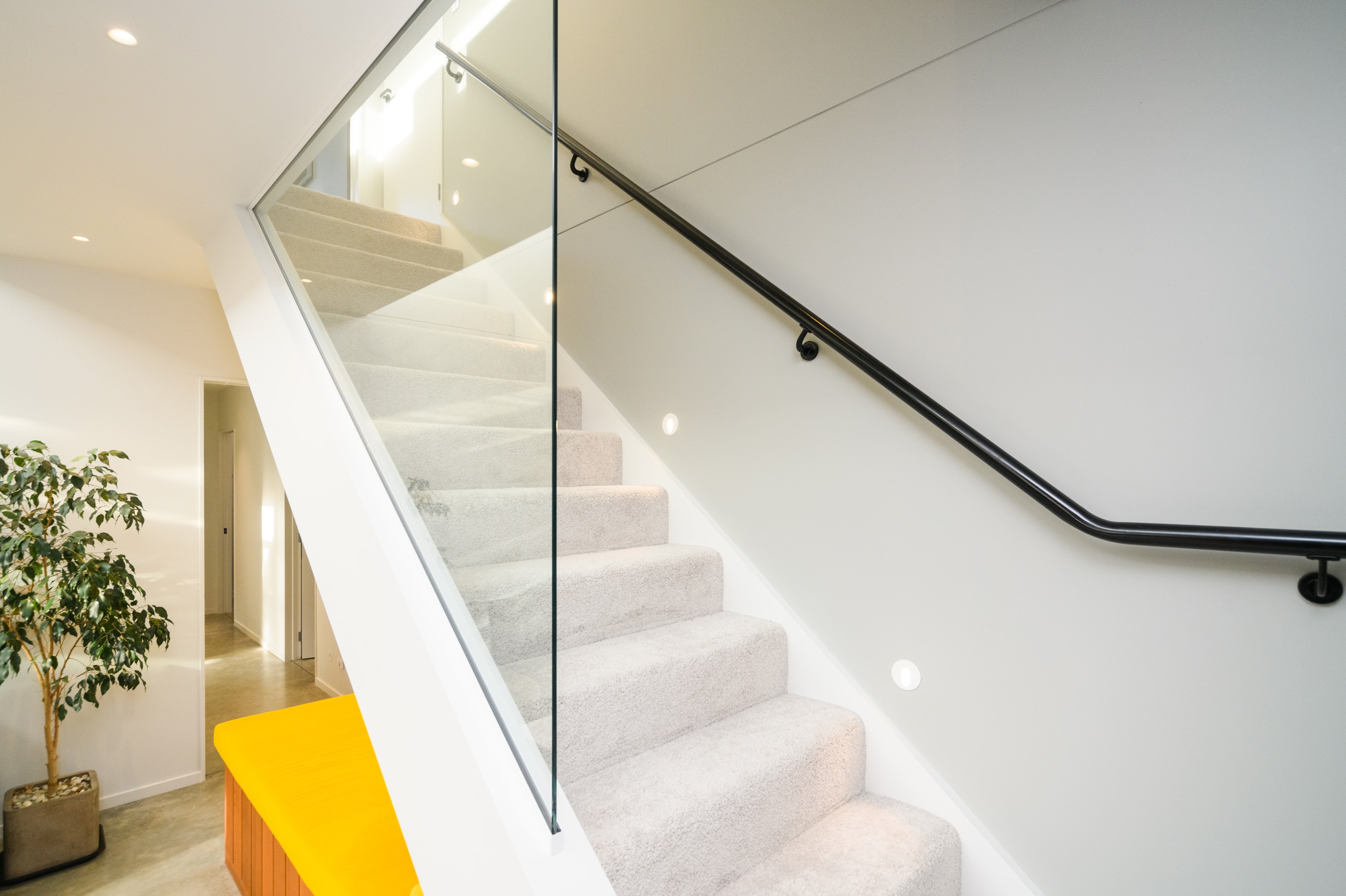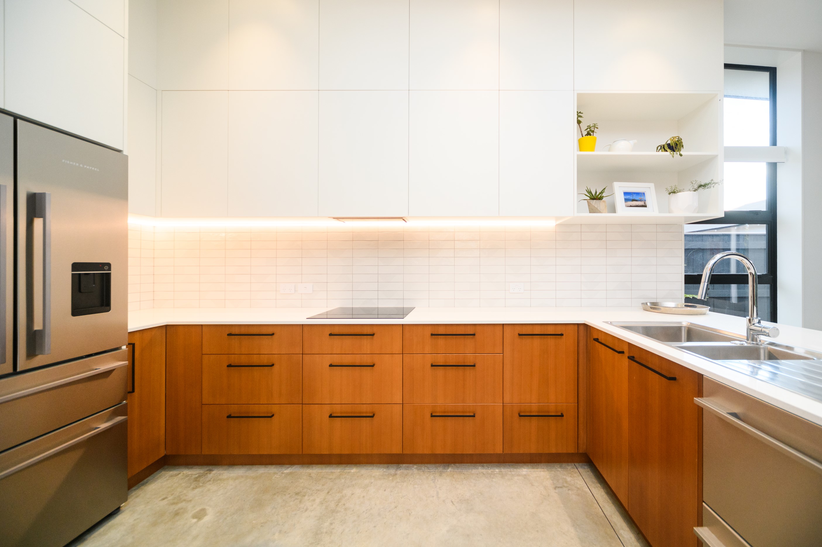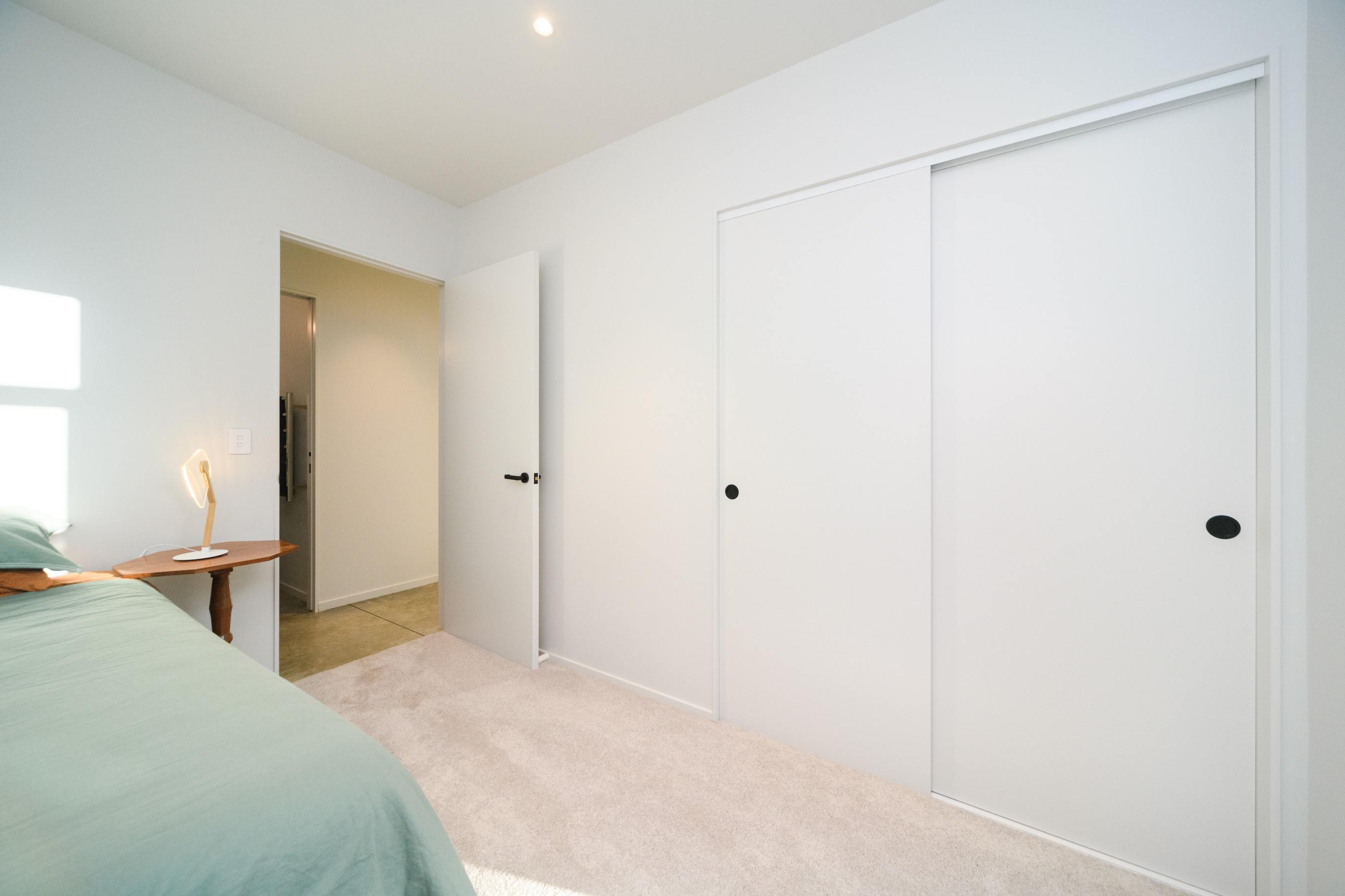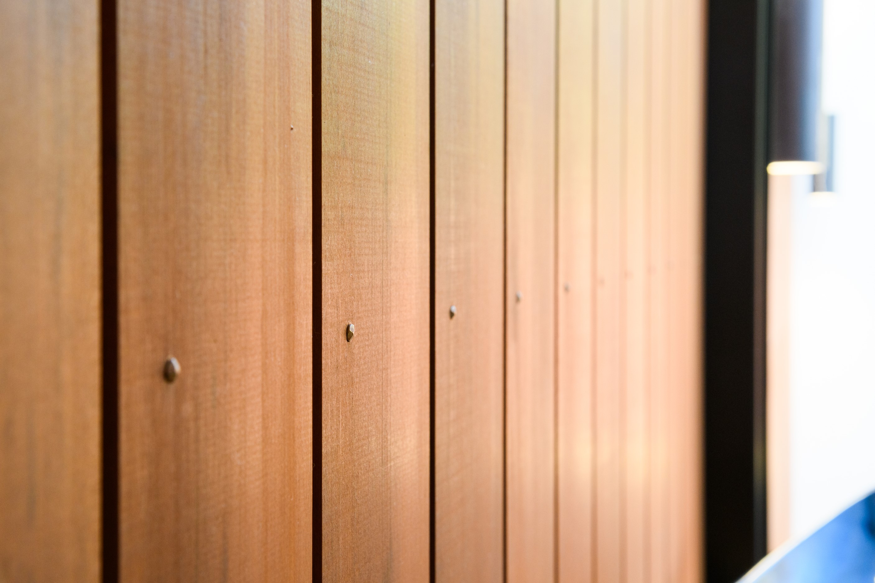 This two-level townhouse blends exacting dimensions with clever design elements to maximise a tight site. A variety of cladding materials, including brick, cedar shiplap and coloursteel provide a smart-looking home. The 180sqm floorplan comprises four bedrooms, two living areas and two bathrooms. Careful consideration has been given to relaxed, year-round outdoor living with a north-facing decked area. Inside, superb use of height in the two-storey home creates an impressive sense of space. Exposed concrete flooring partners with caramel tones of cedar and crisp white to create a neutral canvas for bursts of colour in the owners’ furnishings and artworks. A floor-to-ceiling cedar partition between the kitchen and living area serves to house a fireplace and television, as well as provide attractive recessed shelving to showcase collectibles. Elegant stairs lead to the second level, where the main suite is all about luxury. The impressive ensuite combines functionality and beauty with a luxurious shower. A separate bath has a feature wall of jade-green tiles that bring nature’s colour indoors.
