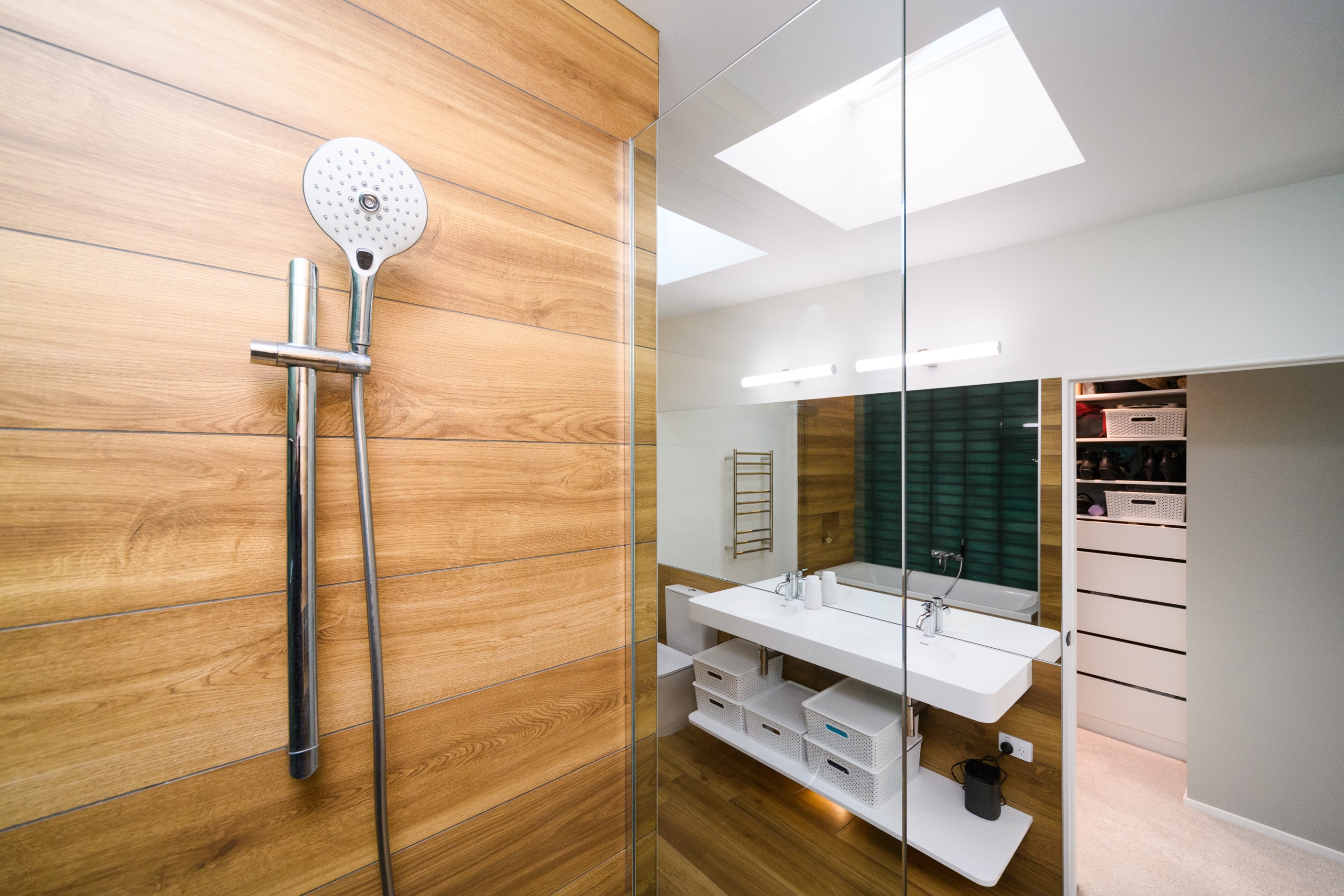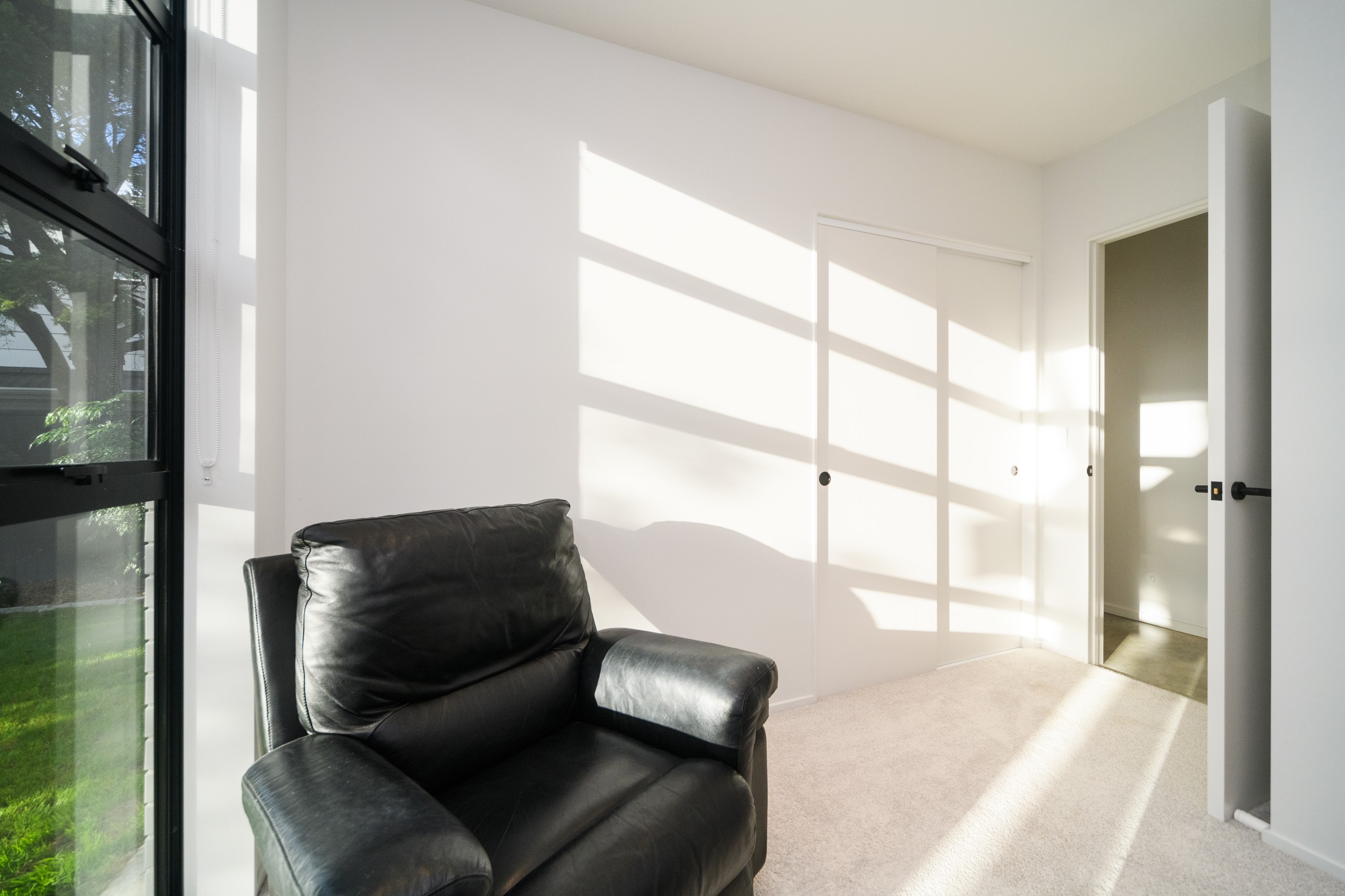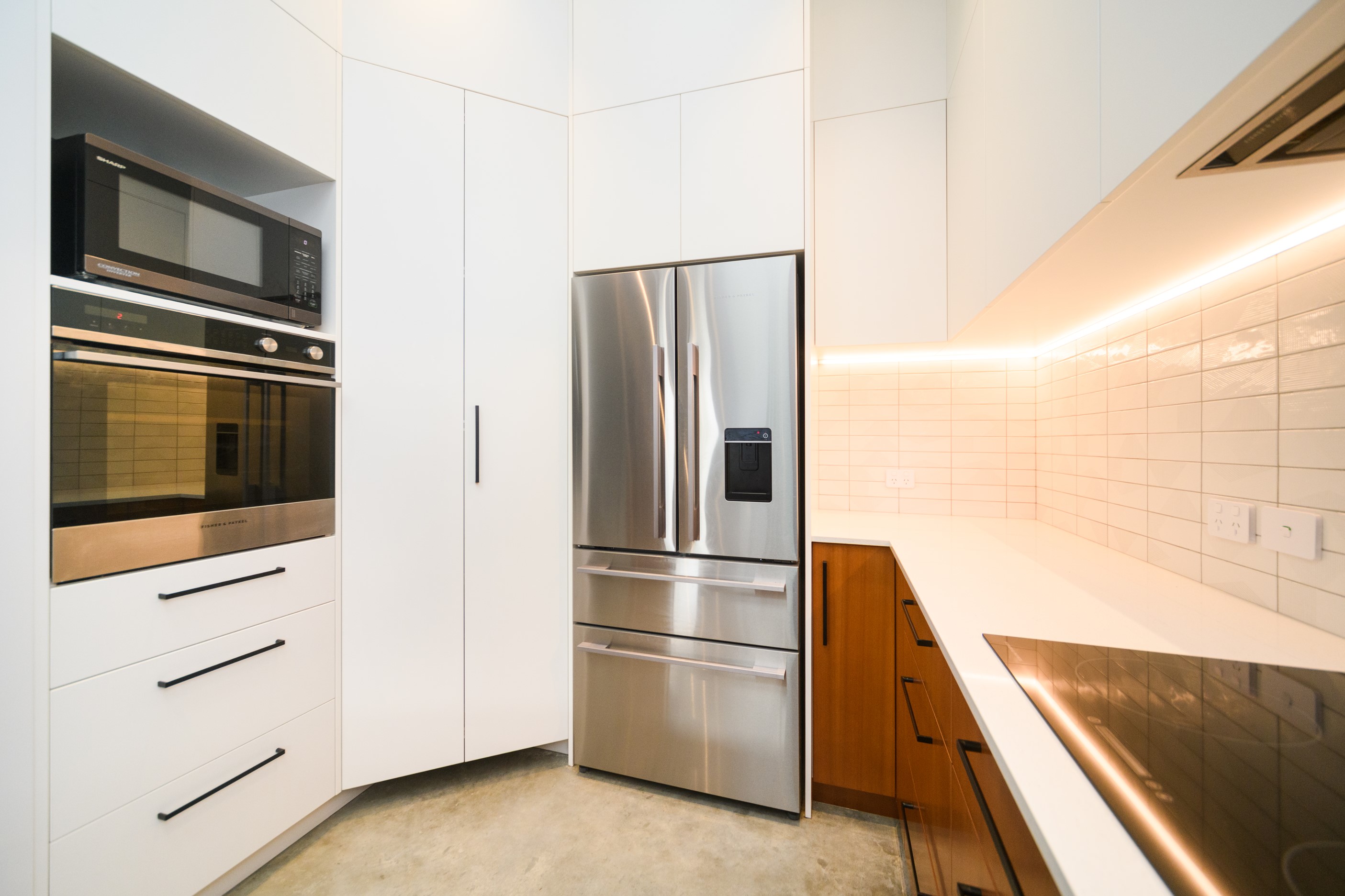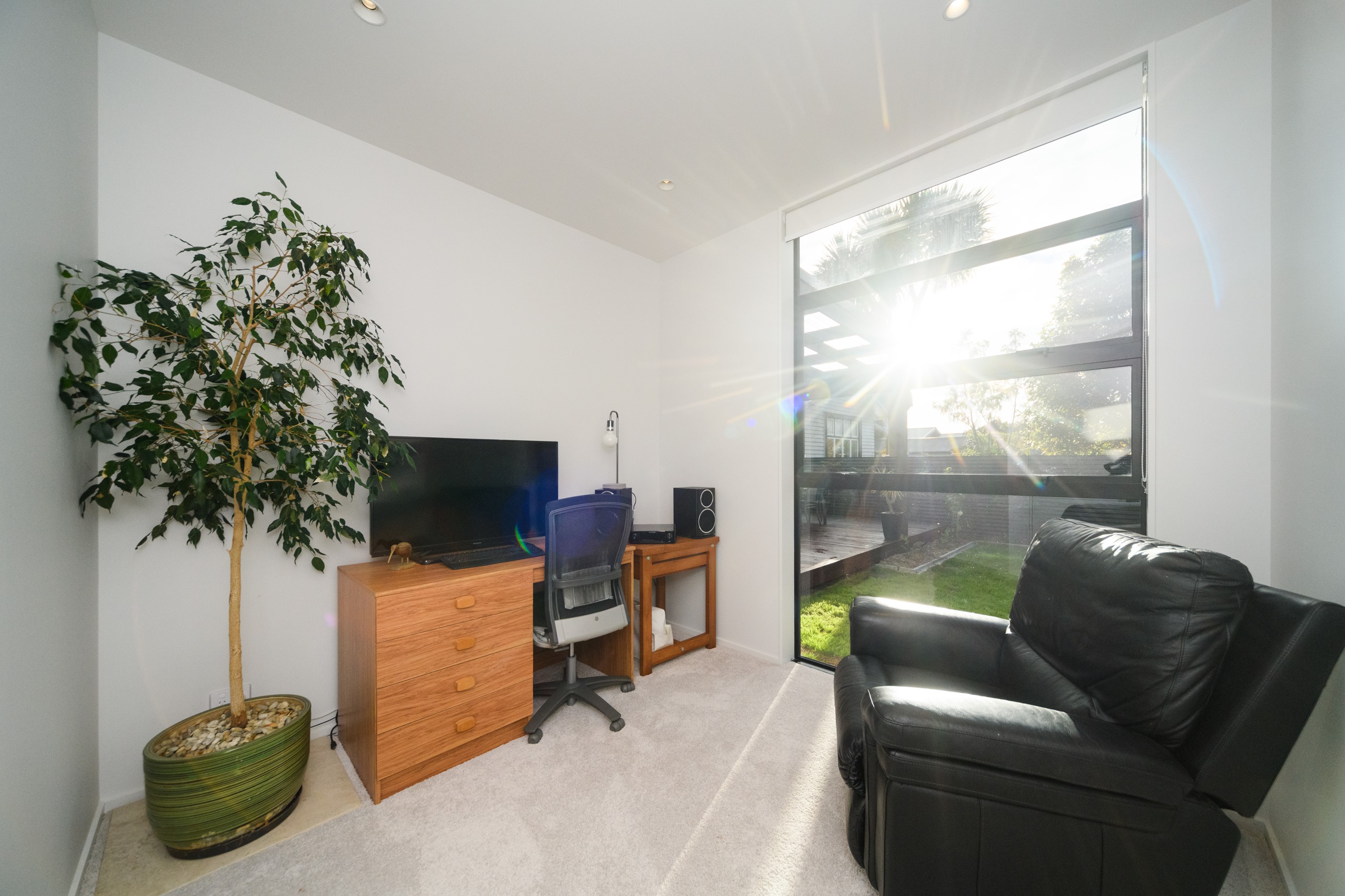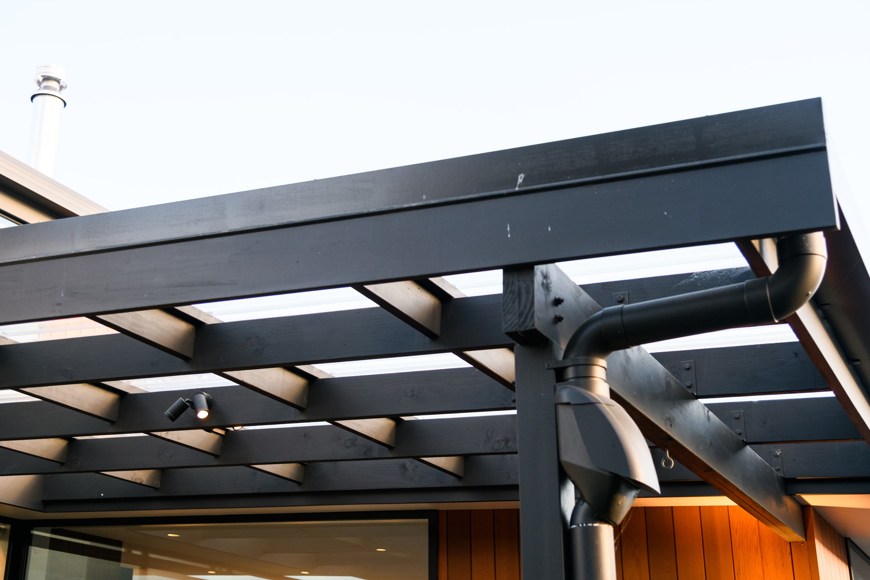 This two-level townhouse blends exacting dimensions with clever design elements to maximise a tight site. A variety of cladding materials, including brick, cedar shiplap and coloursteel provide a smart-looking home. The 180sqm floorplan comprises four bedrooms, two living areas and two bathrooms. Careful consideration has been given to relaxed, year-round outdoor living with a north-facing decked area. Inside, superb use of height in the two-storey home creates an impressive sense of space. Exposed concrete flooring partners with caramel tones of cedar and crisp white to create a neutral canvas for bursts of colour in the owners’ furnishings and artworks. A floor-to-ceiling cedar partition between the kitchen and living area serves to house a fireplace and television, as well as provide attractive recessed shelving to showcase collectibles. Elegant stairs lead to the second level, where the main suite is all about luxury. The impressive ensuite combines functionality and beauty with a luxurious shower. A separate bath has a feature wall of jade-green tiles that bring nature’s colour indoors.