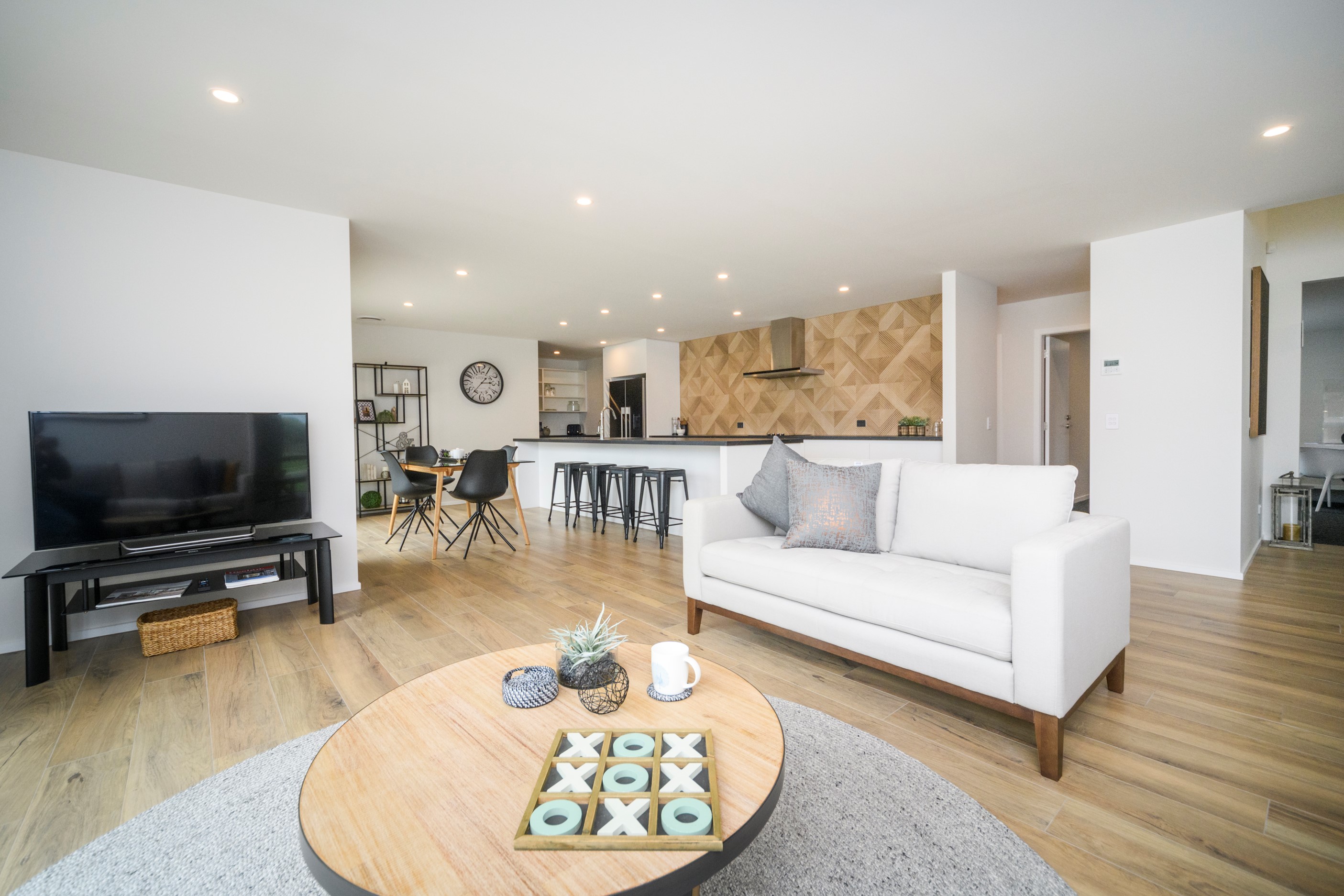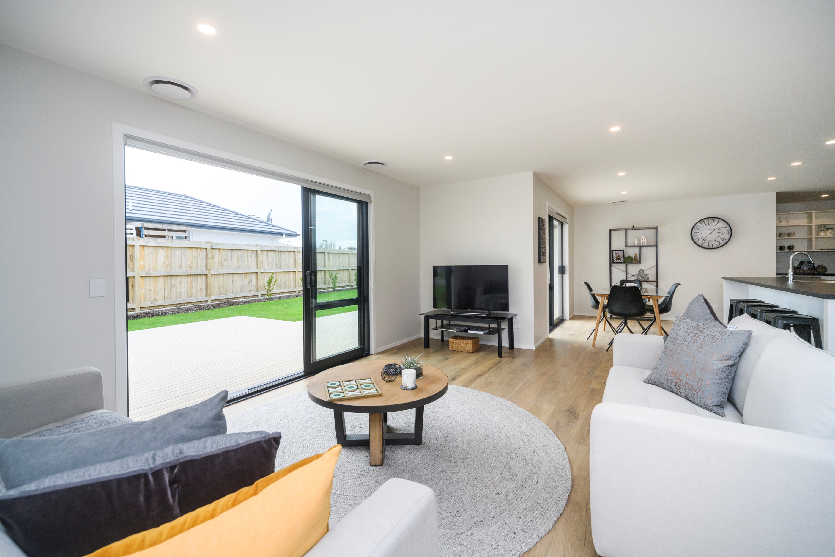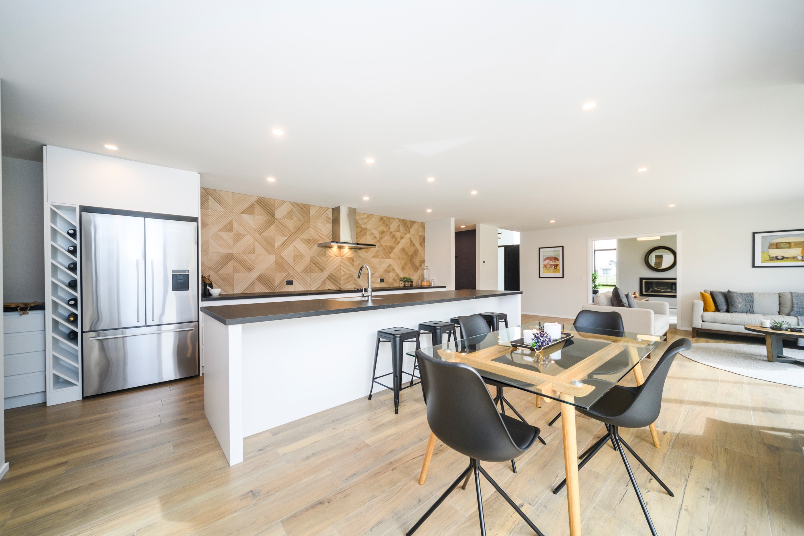 With its clean and contemporary white plaster exterior and bold stone chimney, this four-bedroom family home has strong street appeal. As you step inside, the main entrance opens into a light and bright living area with a raised ceiling, beautiful lighting and open-plan features. The family room offers an inviting, relaxed vibe with easy access to the kitchen/dining area and out to the alfresco living zone. The dining and lounge areas are adaptable for every season – open and welcoming in summer or enclosed and cosy in winter. The main bedroom is a welcoming retreat with a walk-in wardrobe and makeup station leading into the ensuite. In addition, doors open out to a patio for enjoying the Manawatū’s beautiful sunny days. A functional family bathroom and large laundry offer practicality with plenty of space. And with a ladder to access the attic, storage is no problem. To complete this beautiful home, the garage floor is lined with carpet, which transforms the space into a comfortable, multi-purpose area.