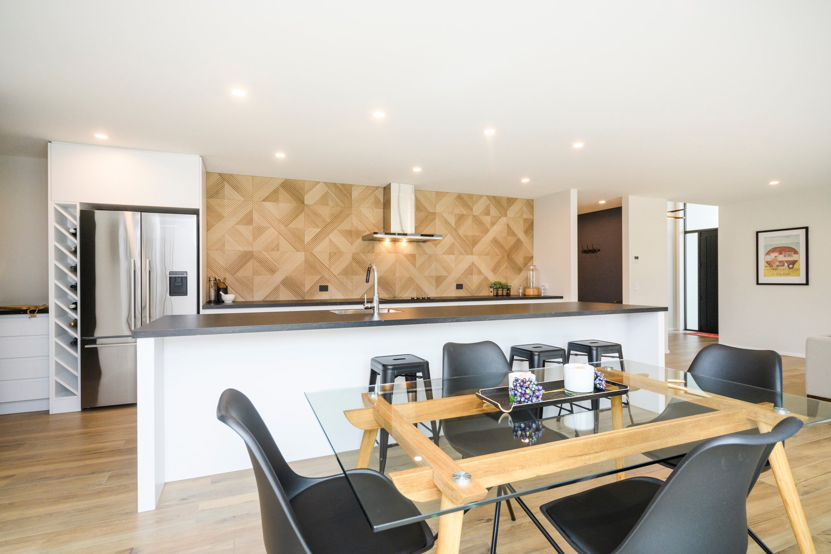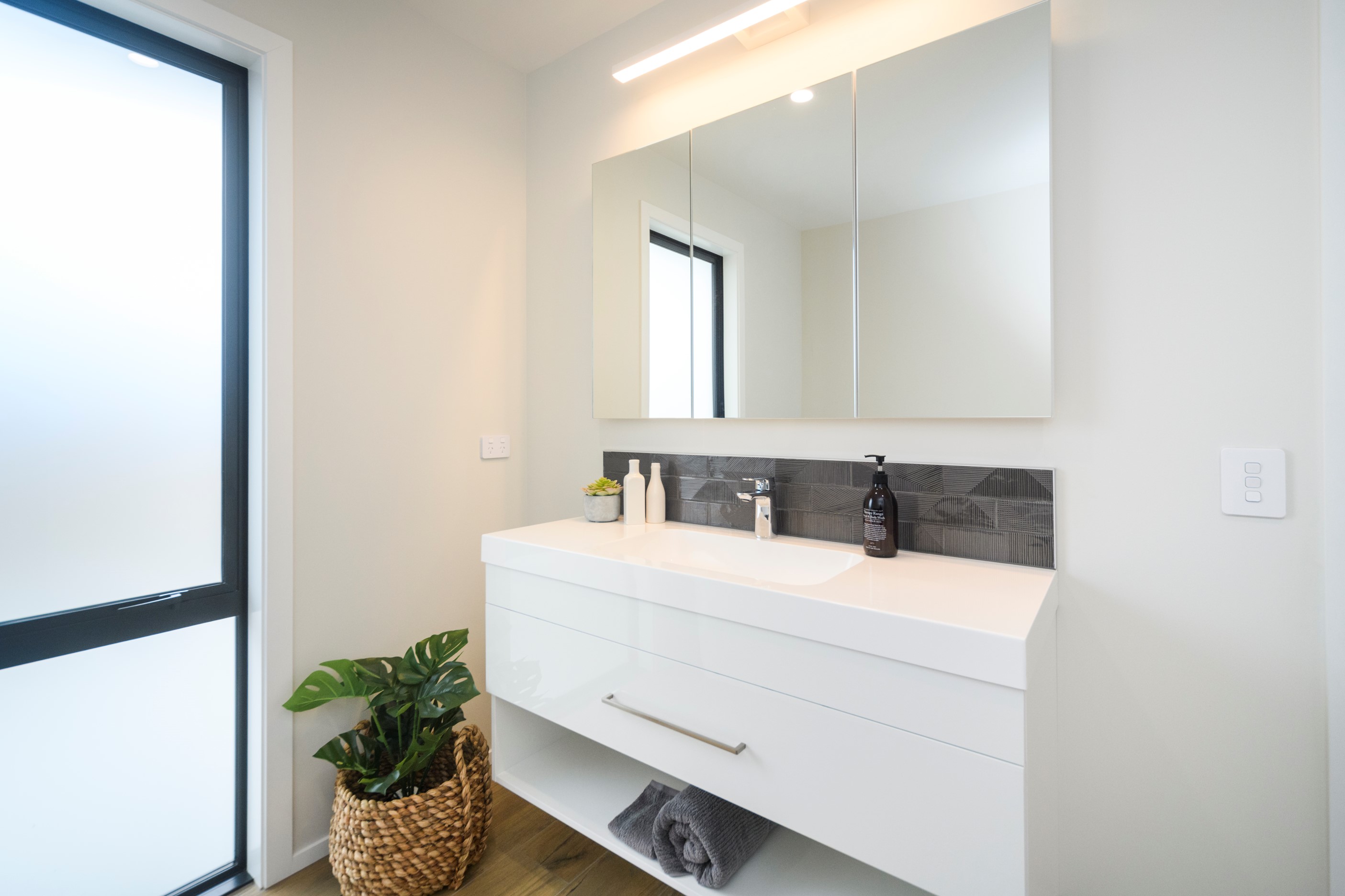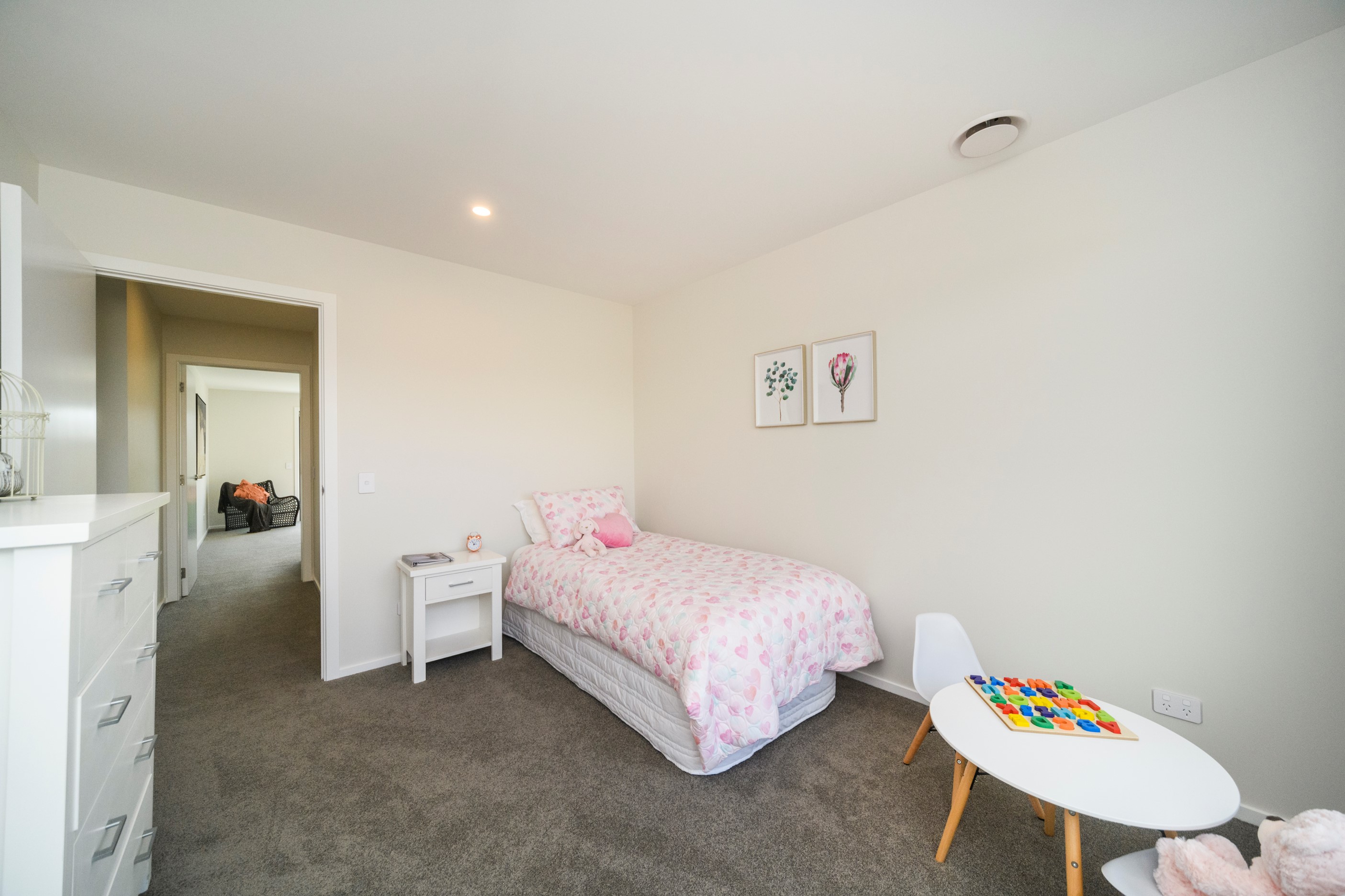 With its clean and contemporary white plaster exterior and bold stone chimney, this four-bedroom family home has strong street appeal. As you step inside, the main entrance opens into a light and bright living area with a raised ceiling, beautiful lighting and open-plan features. The family room offers an inviting, relaxed vibe with easy access to the kitchen/dining area and out to the alfresco living zone. The dining and lounge areas are adaptable for every season – open and welcoming in summer or enclosed and cosy in winter. The main bedroom is a welcoming retreat with a walk-in wardrobe and makeup station leading into the ensuite. In addition, doors open out to a patio for enjoying the Manawatū’s beautiful sunny days. A functional family bathroom and large laundry offer practicality with plenty of space. And with a ladder to access the attic, storage is no problem. To complete this beautiful home, the garage floor is lined with carpet, which transforms the space into a comfortable, multi-purpose area.