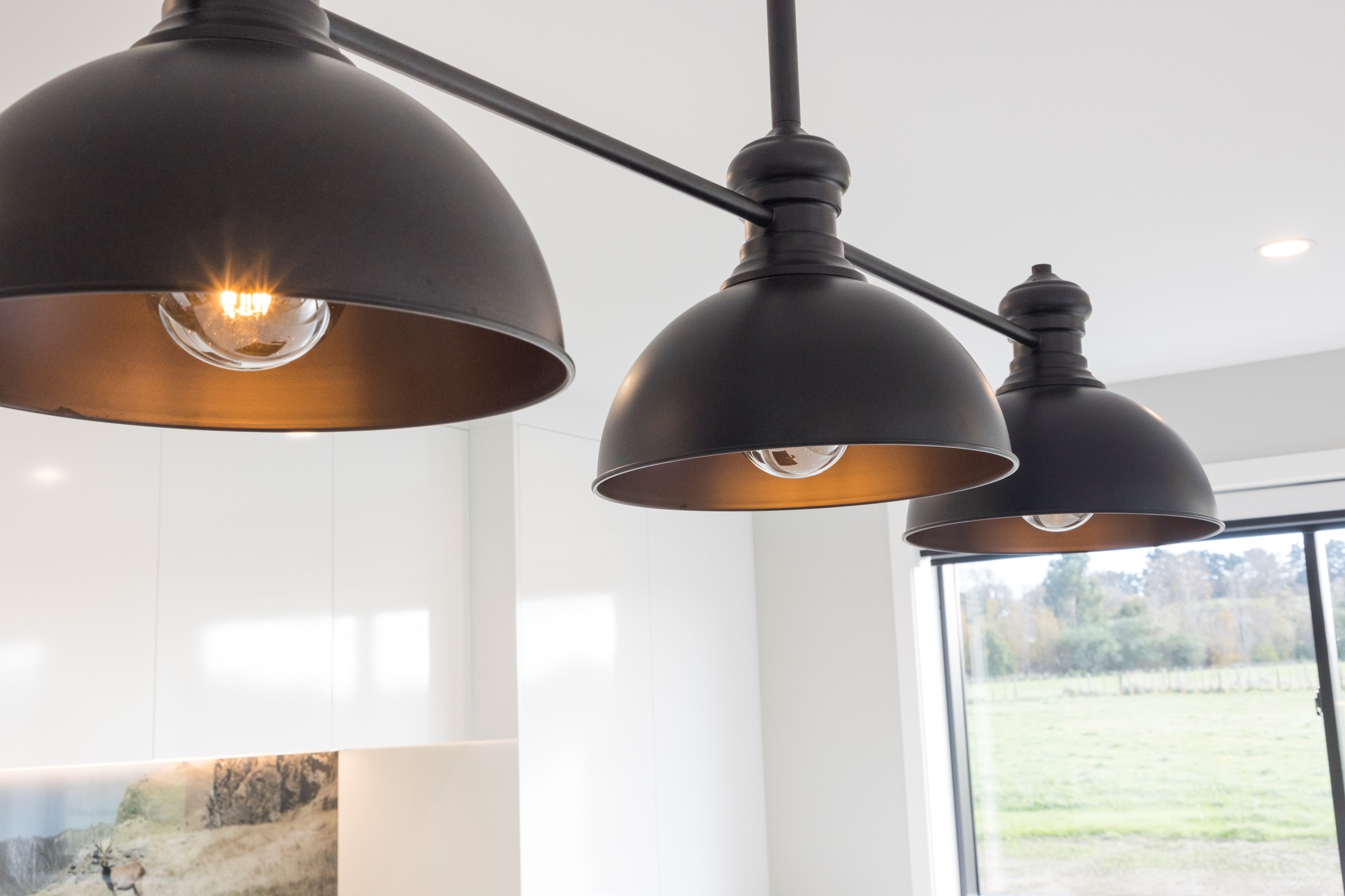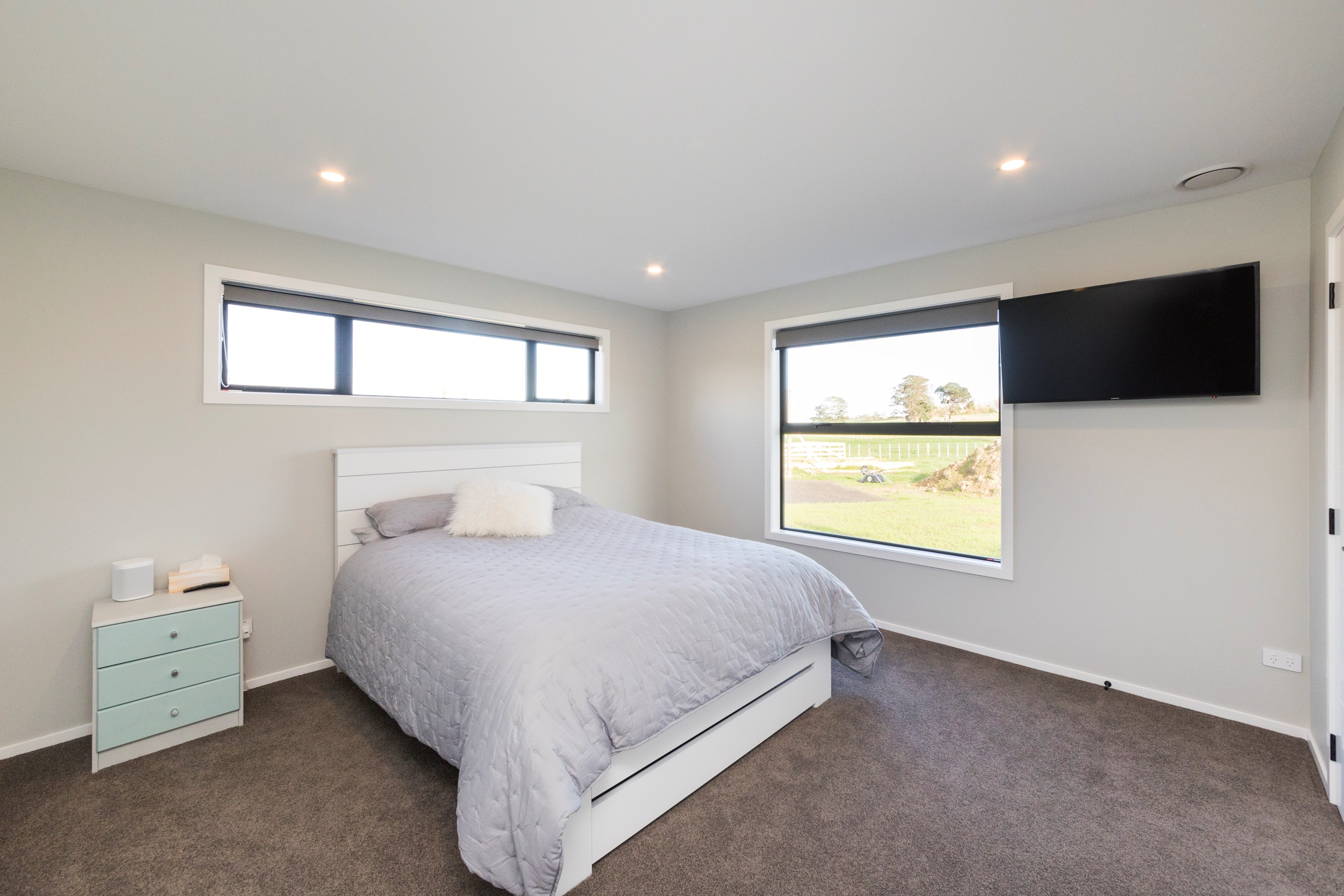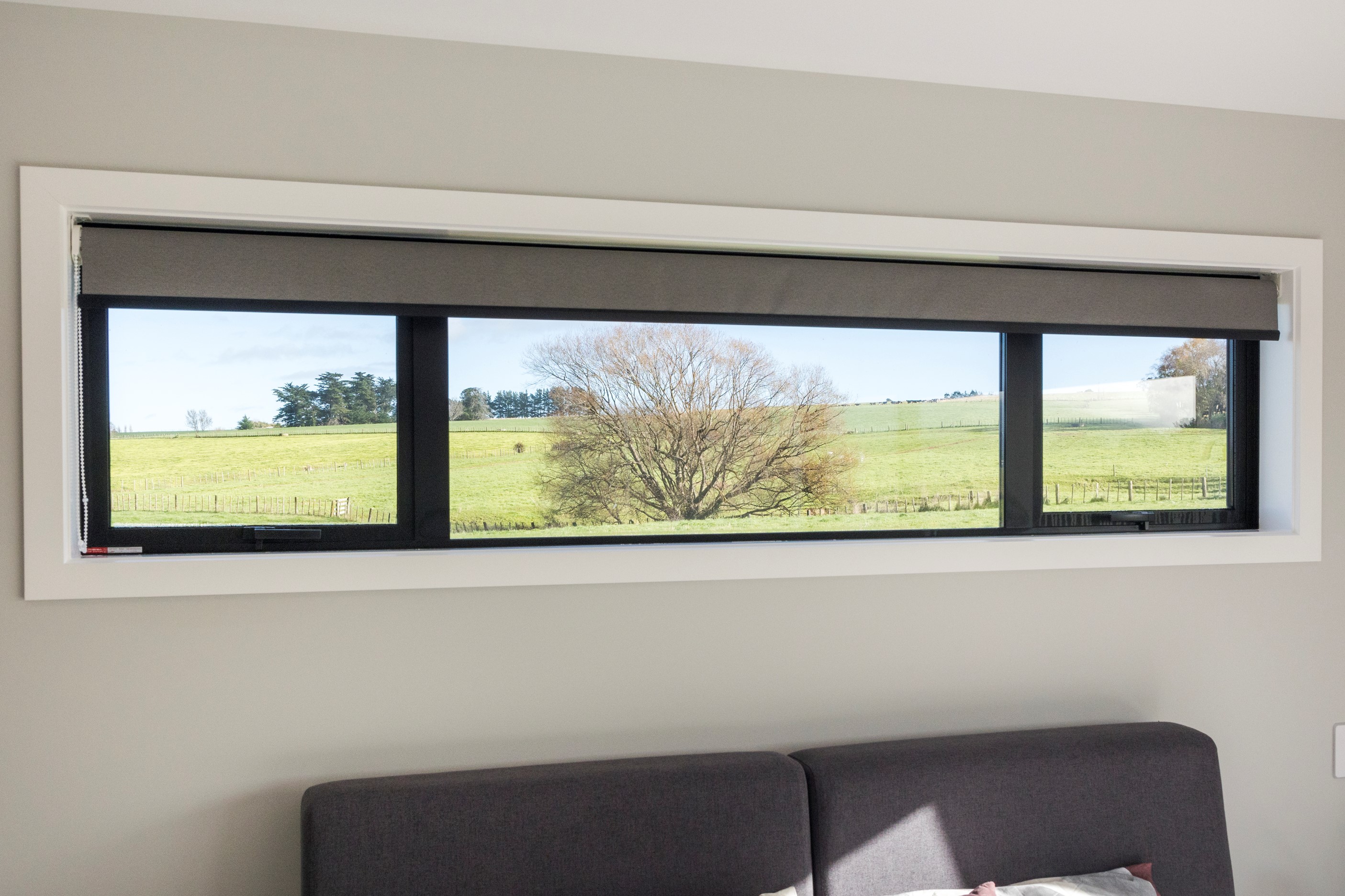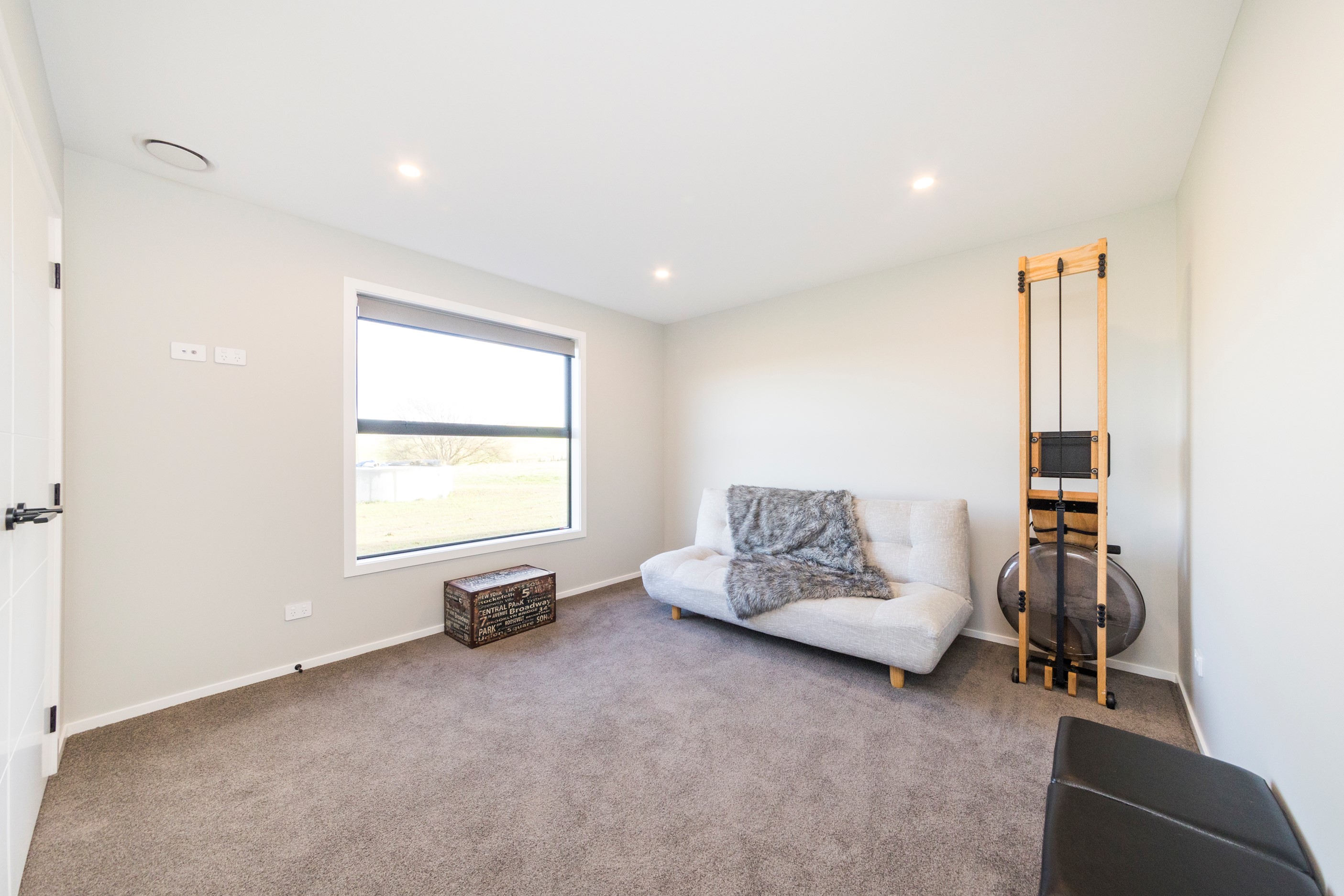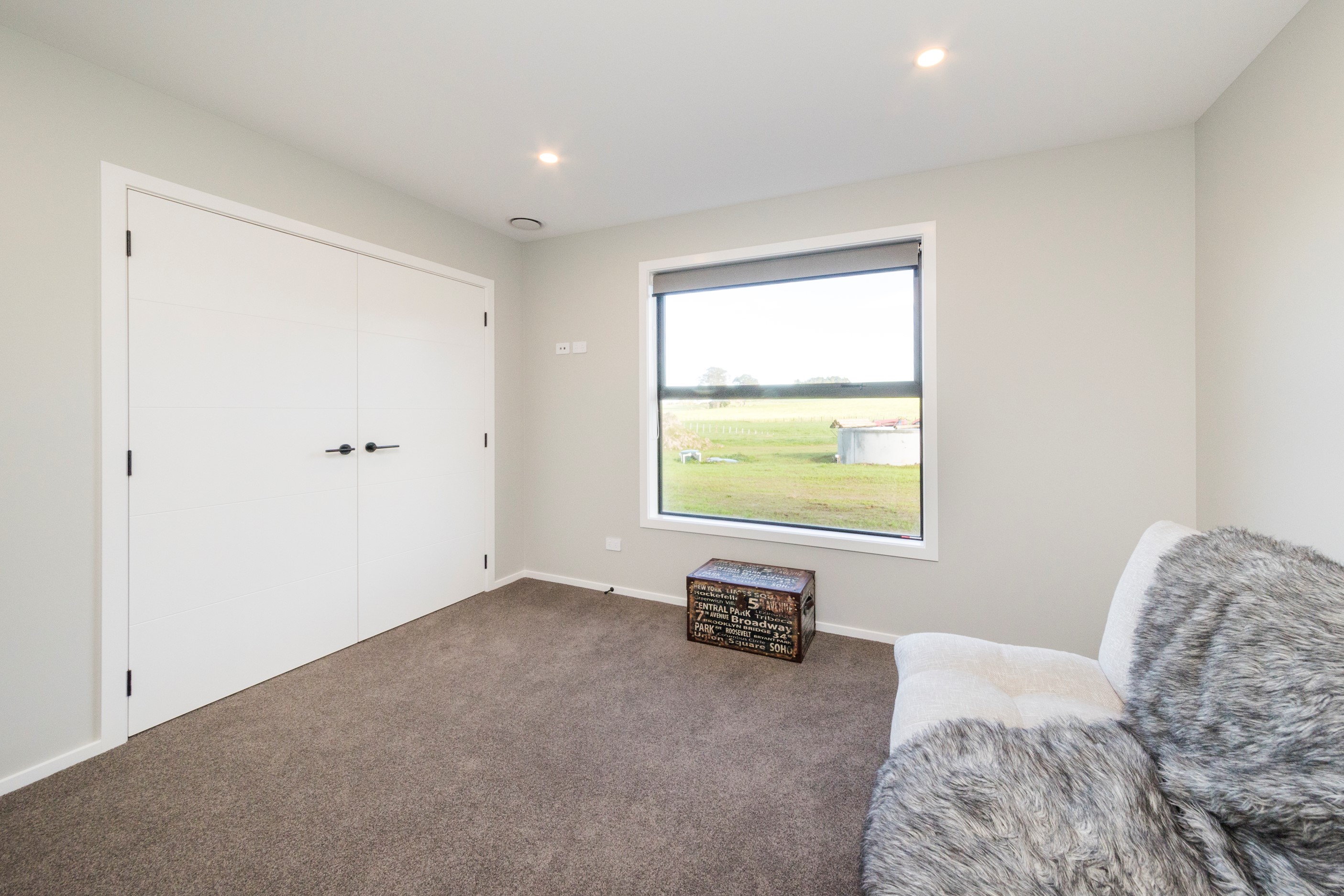 With its three elegant gables and beautiful black exterior, this 271sqm family residence combines the warmth and character of a farm-style home with contemporary design flair. The central gable makes a statement with reclaimed timber as a truss at the entrance. Schist veneer pillars draw further attention to the grand front door. Encompassing four bedrooms and two bathrooms, the home has been designed with comfort, practicality and quality at every turn. As you step inside, the beautifully executed polished concrete floor is just one example of the precision craftsmanship to be found. Large windows and sliders throughout the home fill the interior with natural sunlight and views. The north-facing living area captures picturesque views of the Ruahine Range, while the bedrooms enjoy a vista of the Tararua Range and surrounding farmland. In the main living wing, high scissor truss ceilings add to the sense of space in this already generous open-plan area. To ensure warmth all year round, the home has an underfloor hydronic heating system, and a gas fire in the lounge enhances the cosy ambience.