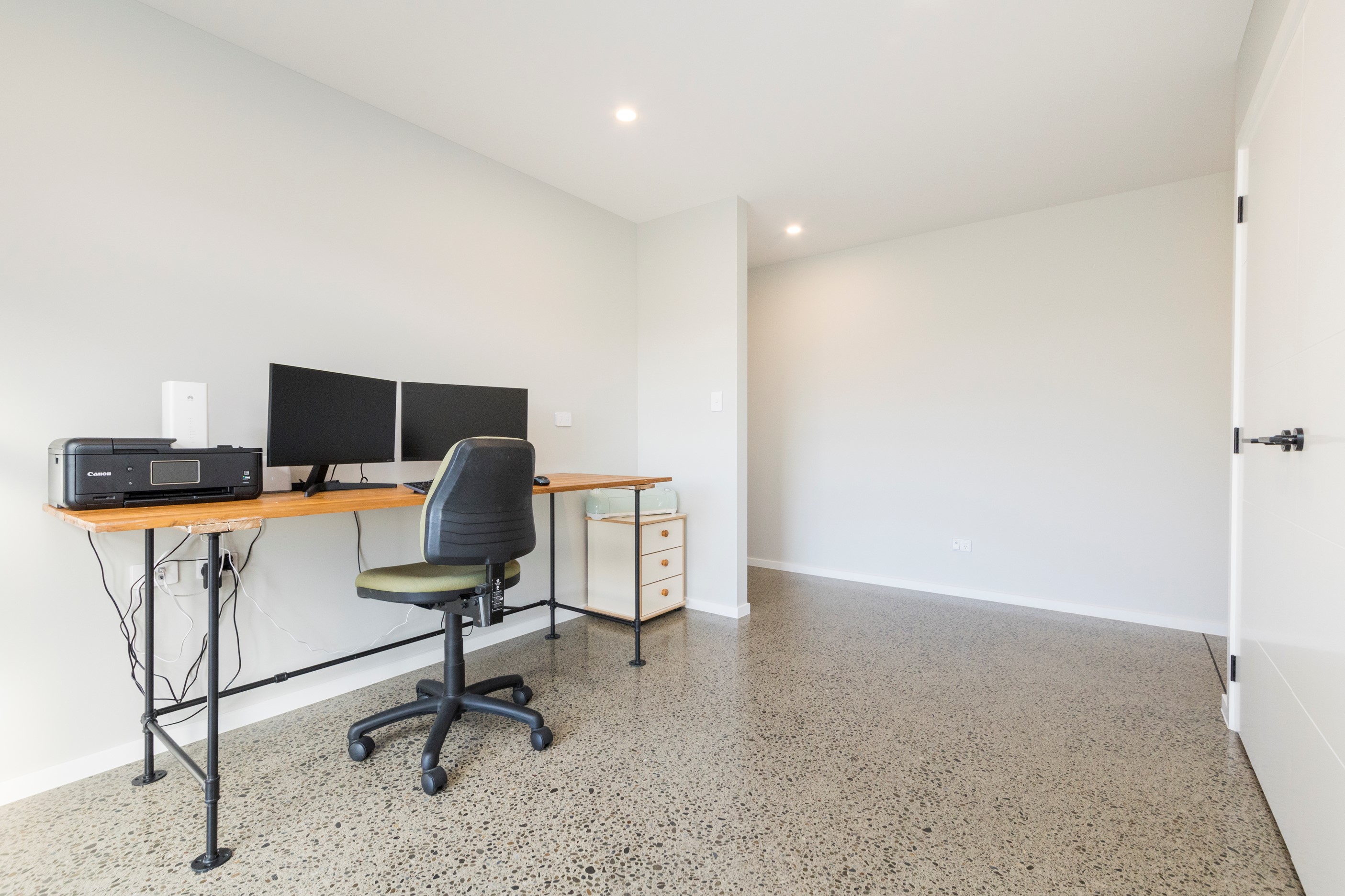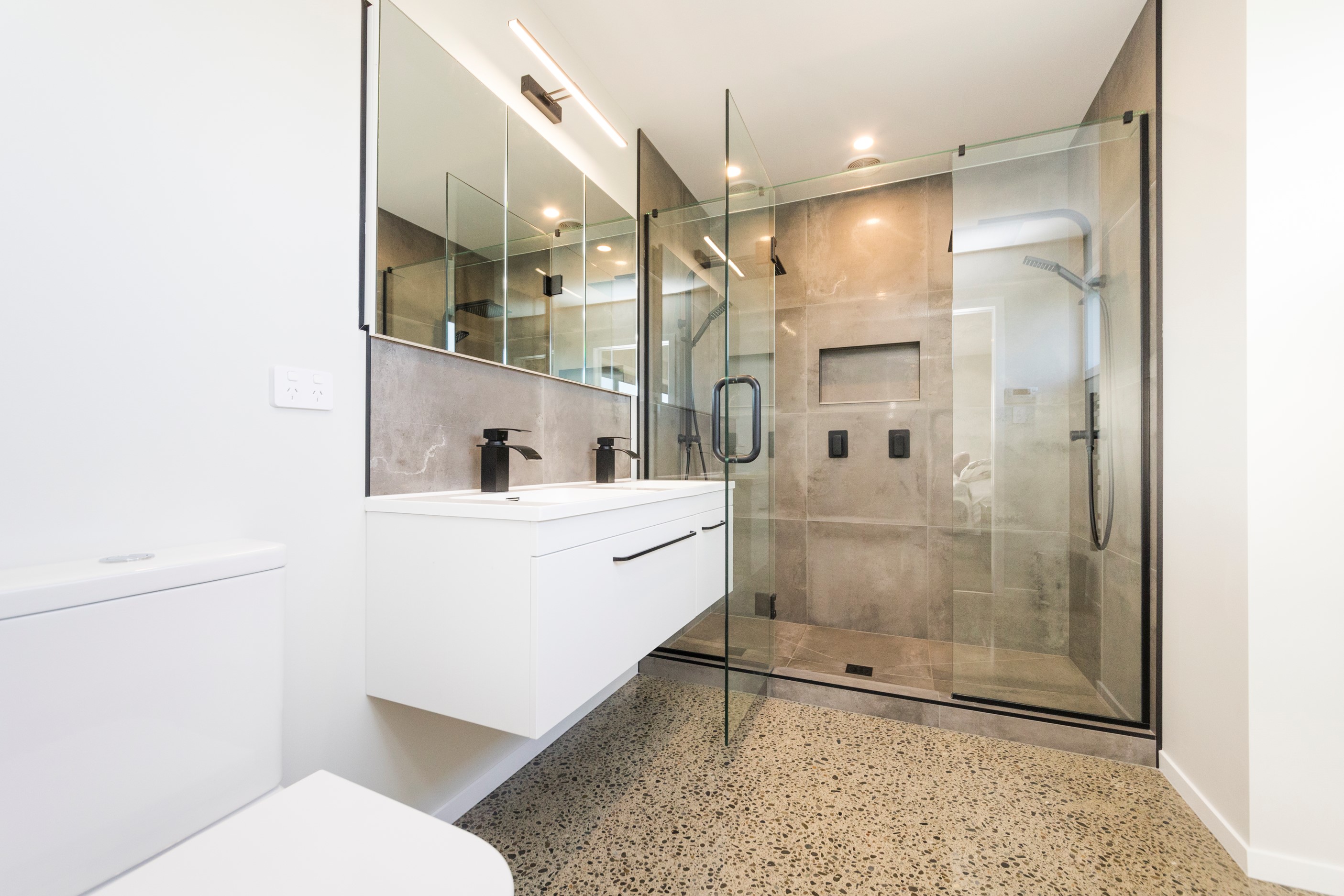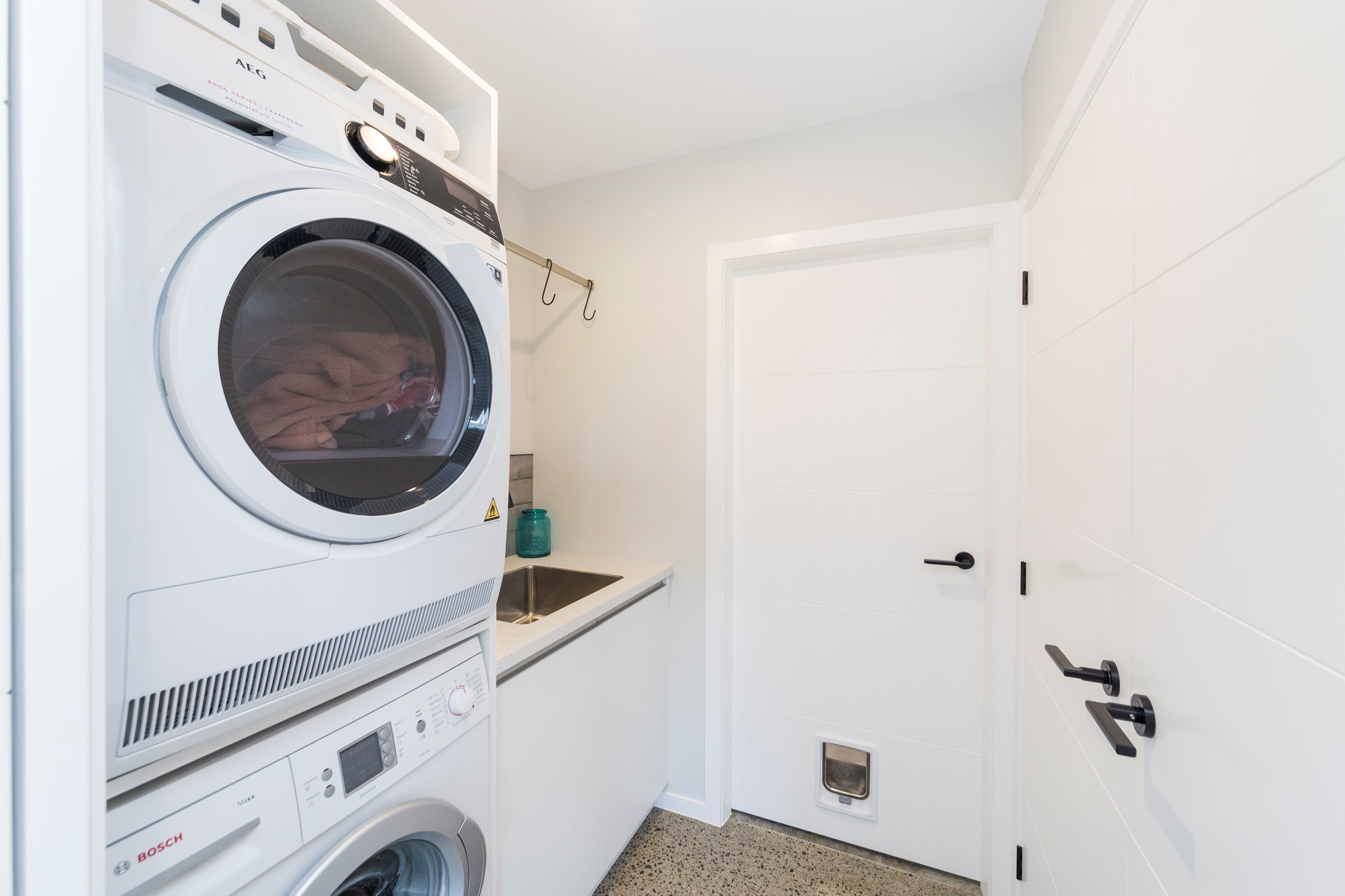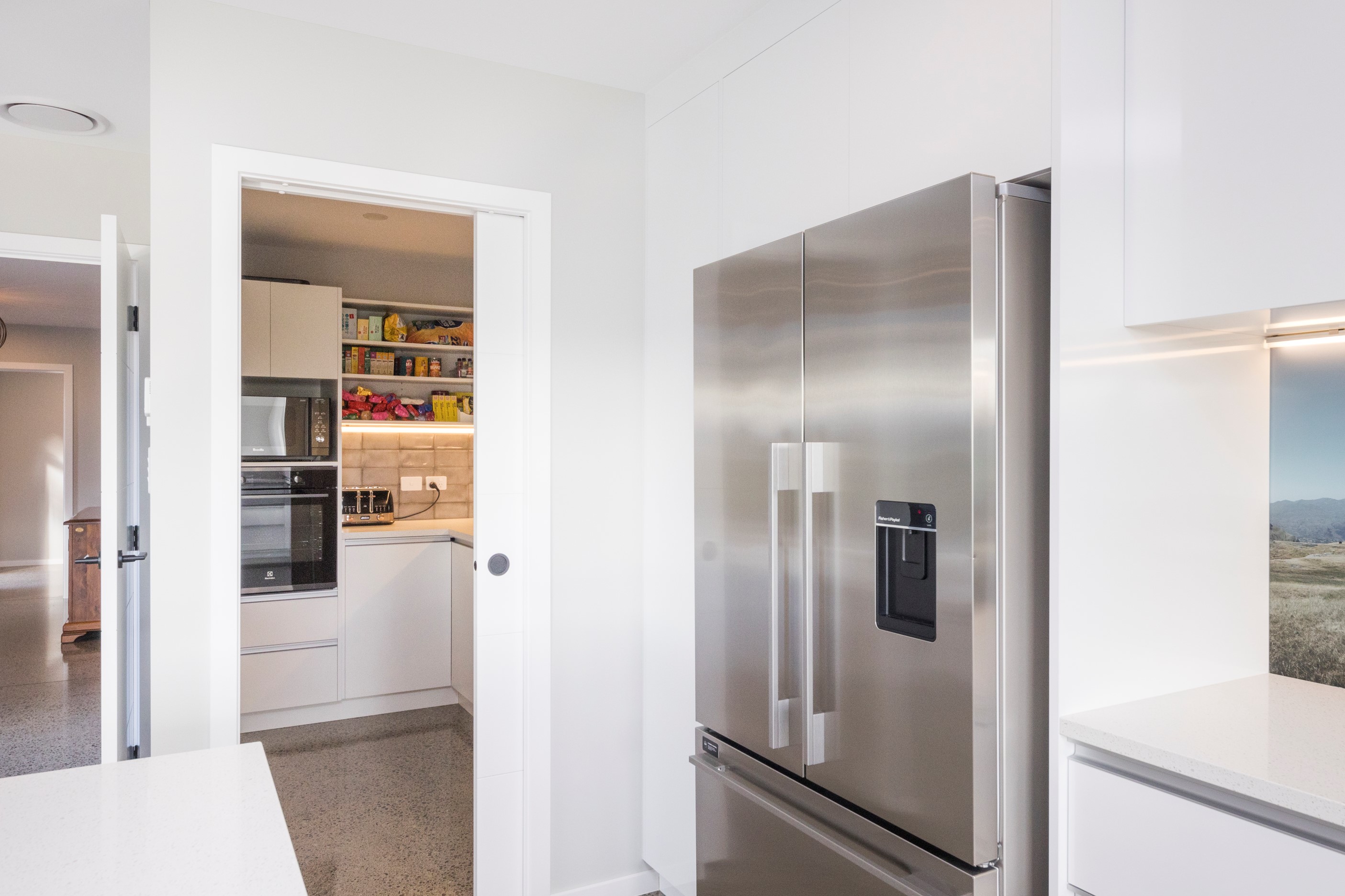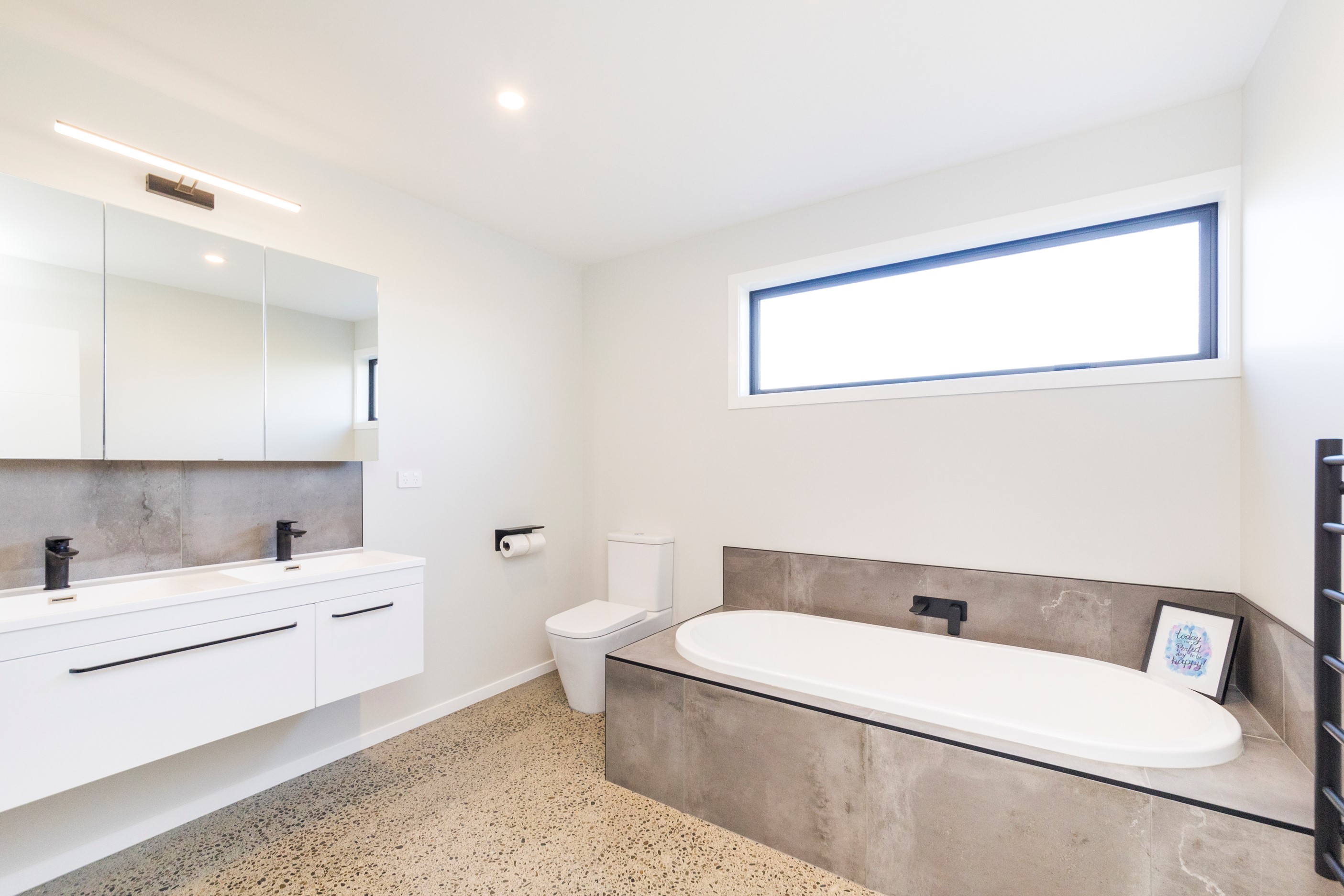With its three elegant gables and beautiful black exterior, this 271sqm family residence combines the warmth and character of a farm-style home with contemporary design flair. The central gable makes a statement with reclaimed timber as a truss at the entrance. Schist veneer pillars draw further attention to the grand front door. Encompassing four bedrooms and two bathrooms, the home has been designed with comfort, practicality and quality at every turn. As you step inside, the beautifully executed polished concrete floor is just one example of the precision craftsmanship to be found. Large windows and sliders throughout the home fill the interior with natural sunlight and views. The north-facing living area captures picturesque views of the Ruahine Range, while the bedrooms enjoy a vista of the Tararua Range and surrounding farmland. In the main living wing, high scissor truss ceilings add to the sense of space in this already generous open-plan area. To ensure warmth all year round, the home has an underfloor hydronic heating system, and a gas fire in the lounge enhances the cosy ambience.