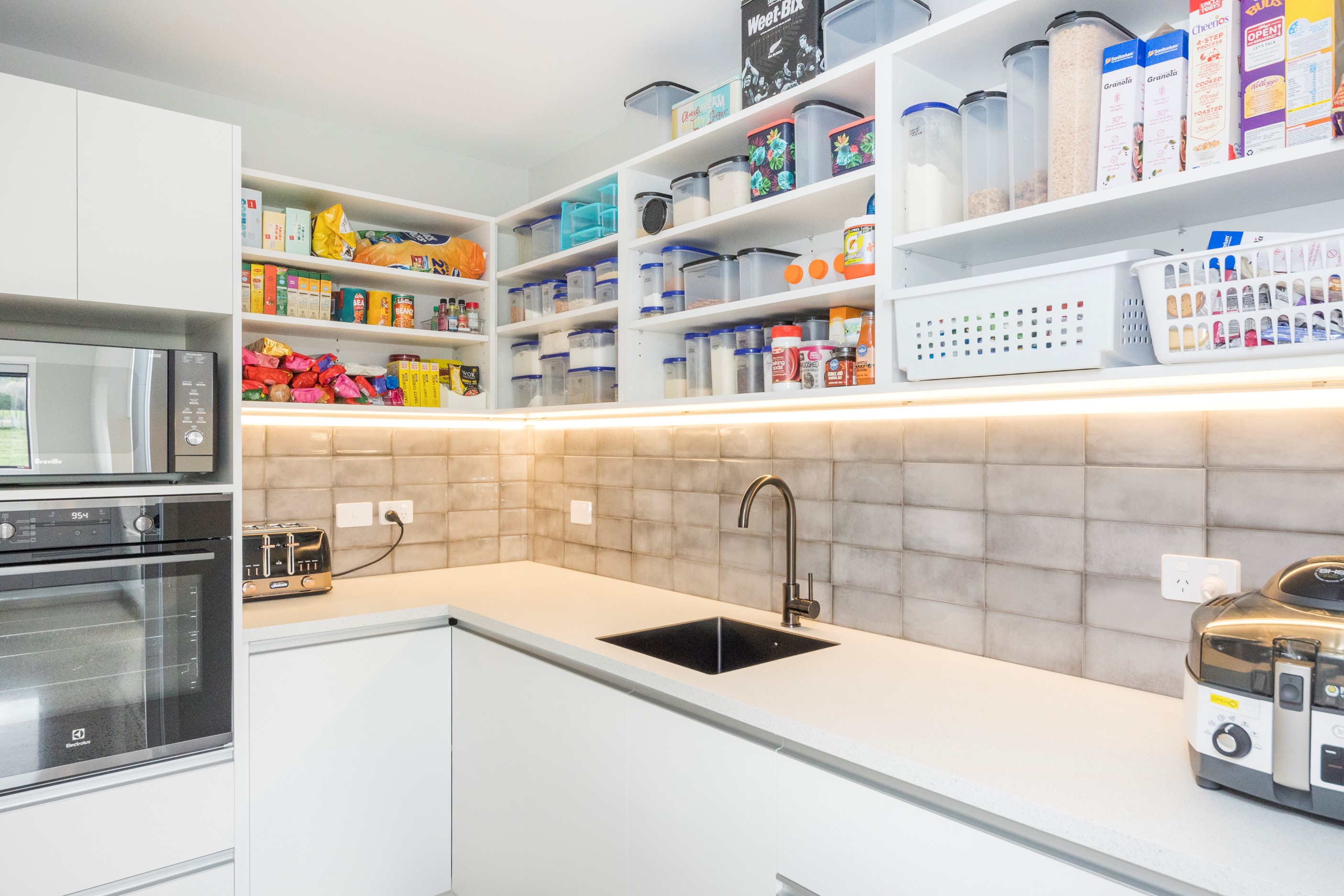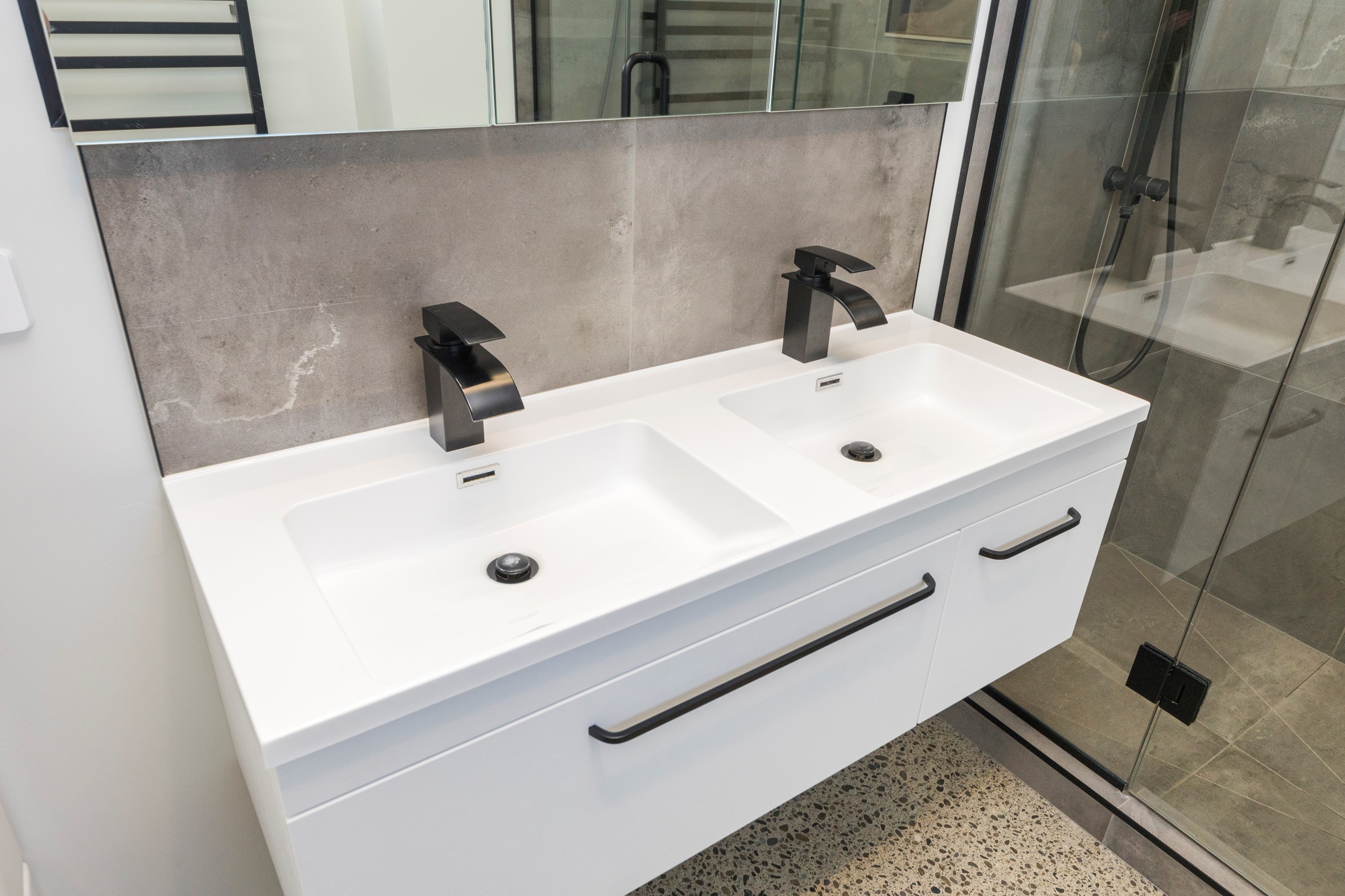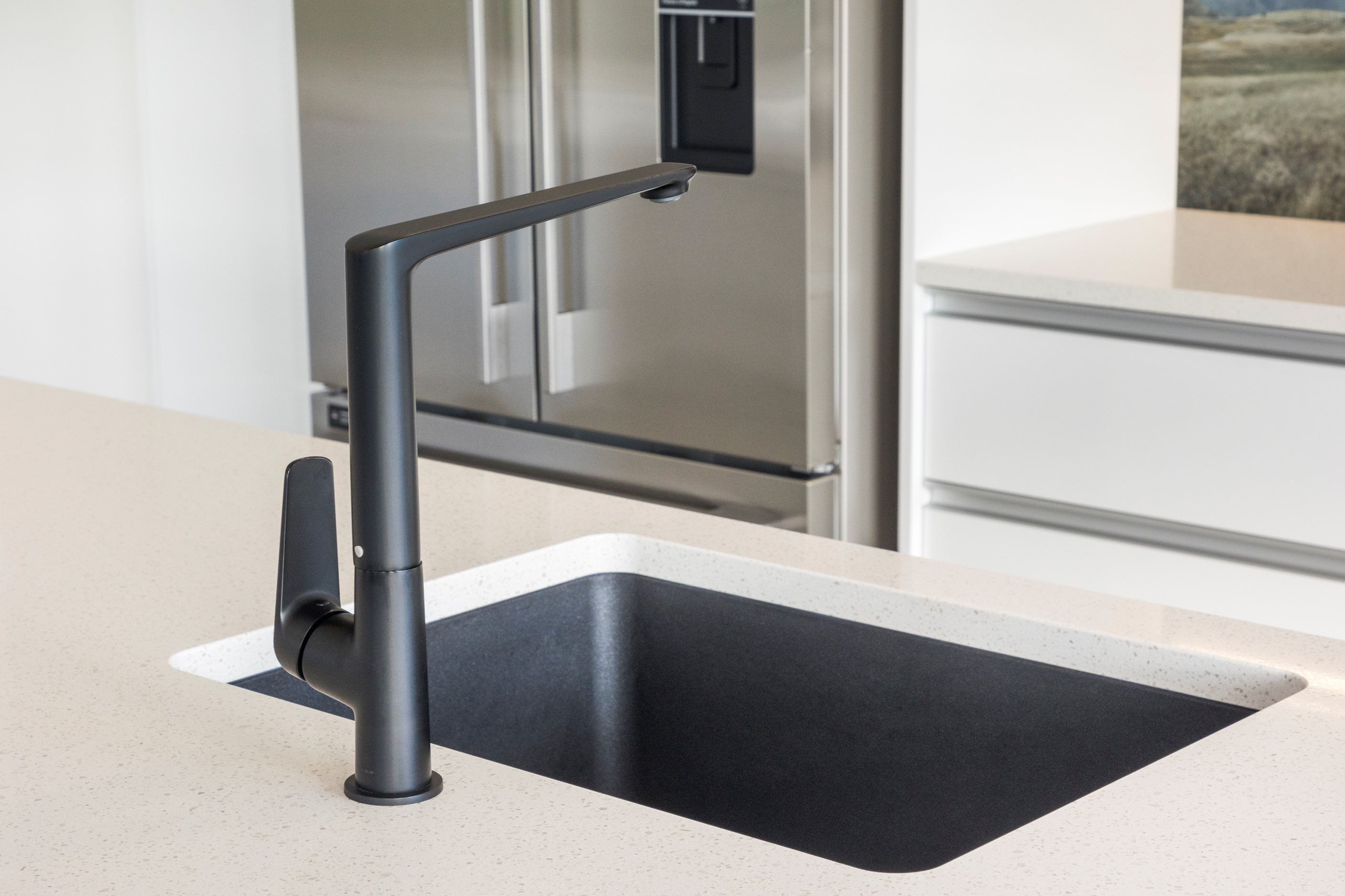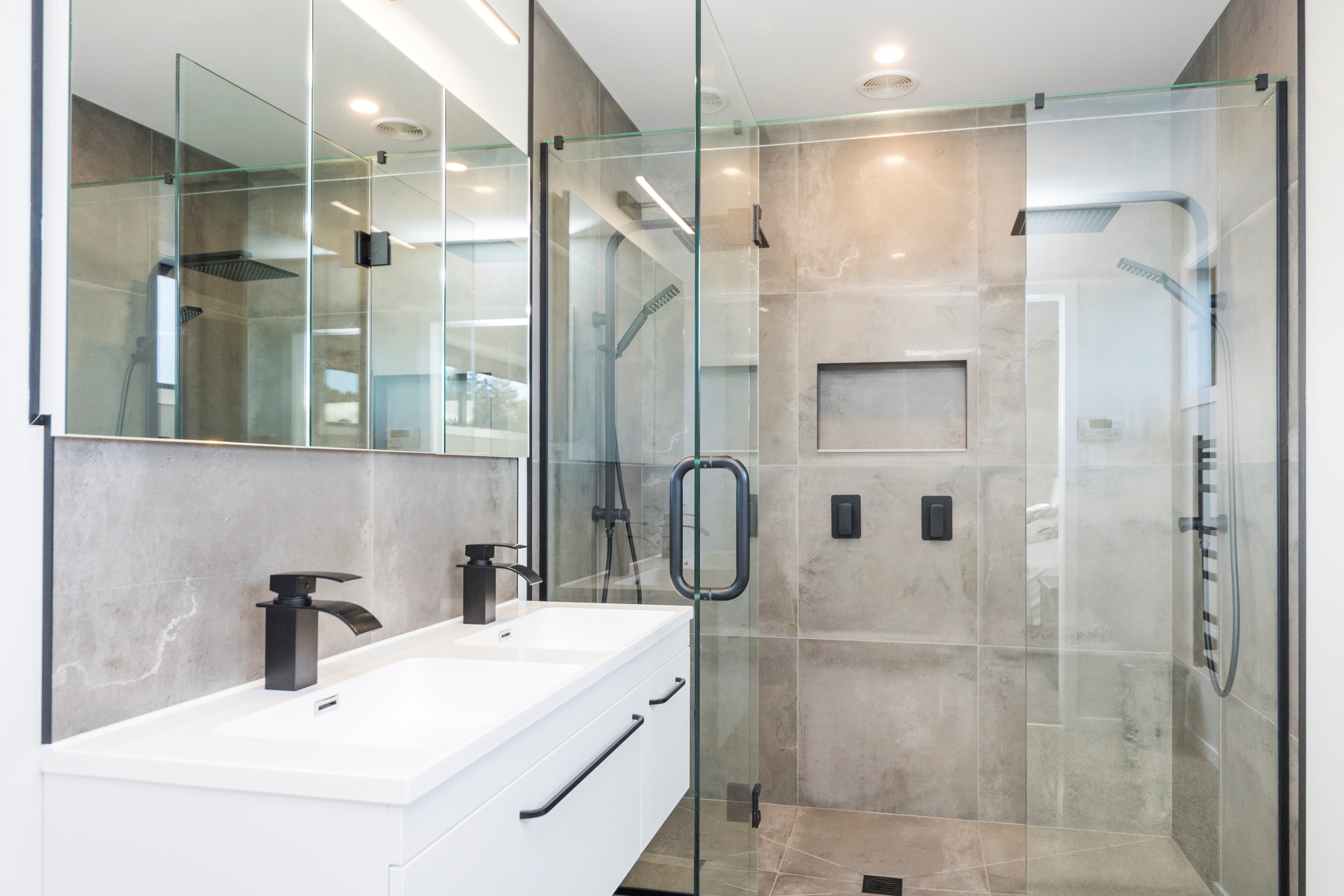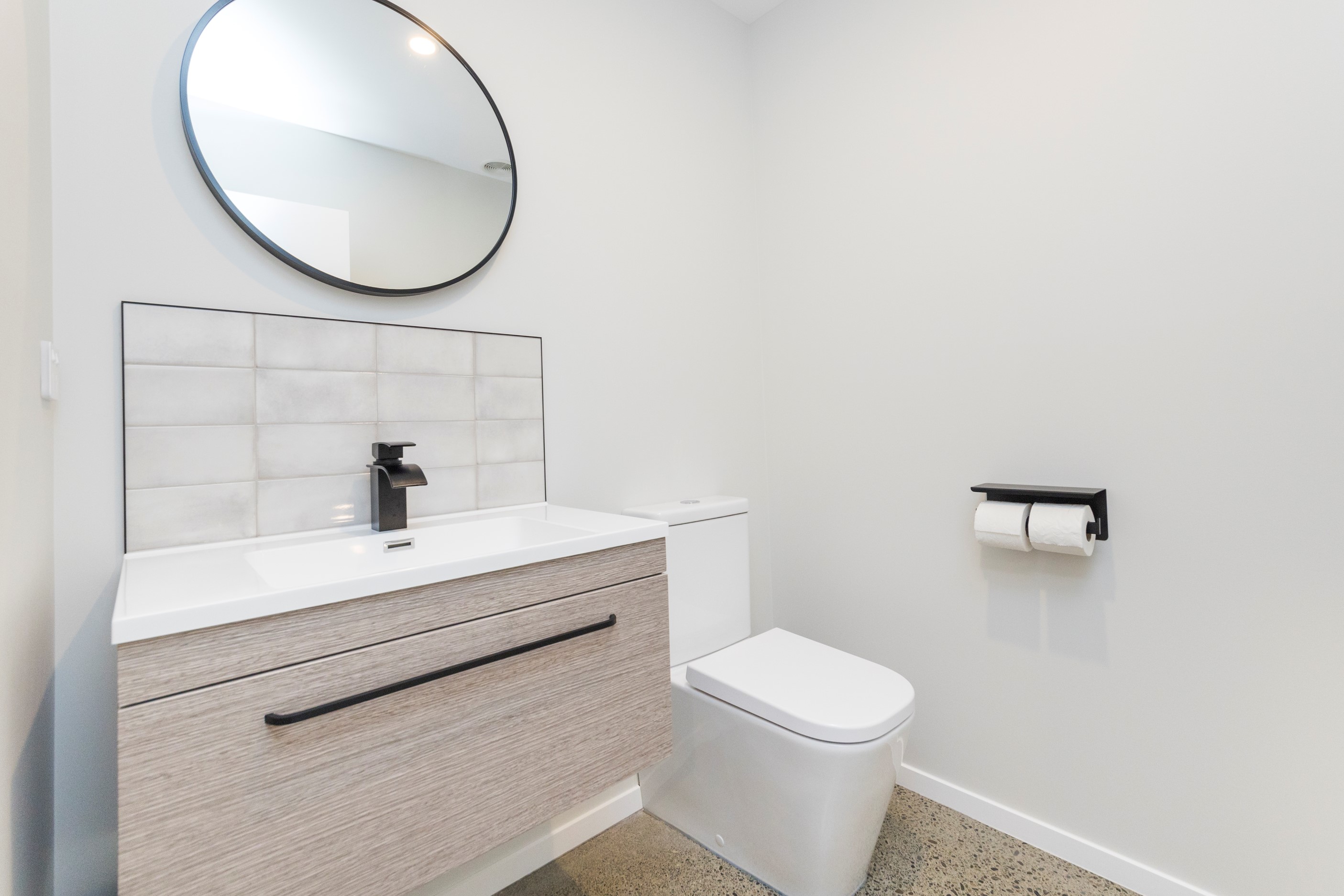 With its three elegant gables and beautiful black exterior, this 271sqm family residence combines the warmth and character of a farm-style home with contemporary design flair. The central gable makes a statement with reclaimed timber as a truss at the entrance. Schist veneer pillars draw further attention to the grand front door. Encompassing four bedrooms and two bathrooms, the home has been designed with comfort, practicality and quality at every turn. As you step inside, the beautifully executed polished concrete floor is just one example of the precision craftsmanship to be found. Large windows and sliders throughout the home fill the interior with natural sunlight and views. The north-facing living area captures picturesque views of the Ruahine Range, while the bedrooms enjoy a vista of the Tararua Range and surrounding farmland. In the main living wing, high scissor truss ceilings add to the sense of space in this already generous open-plan area. To ensure warmth all year round, the home has an underfloor hydronic heating system, and a gas fire in the lounge enhances the cosy ambience.