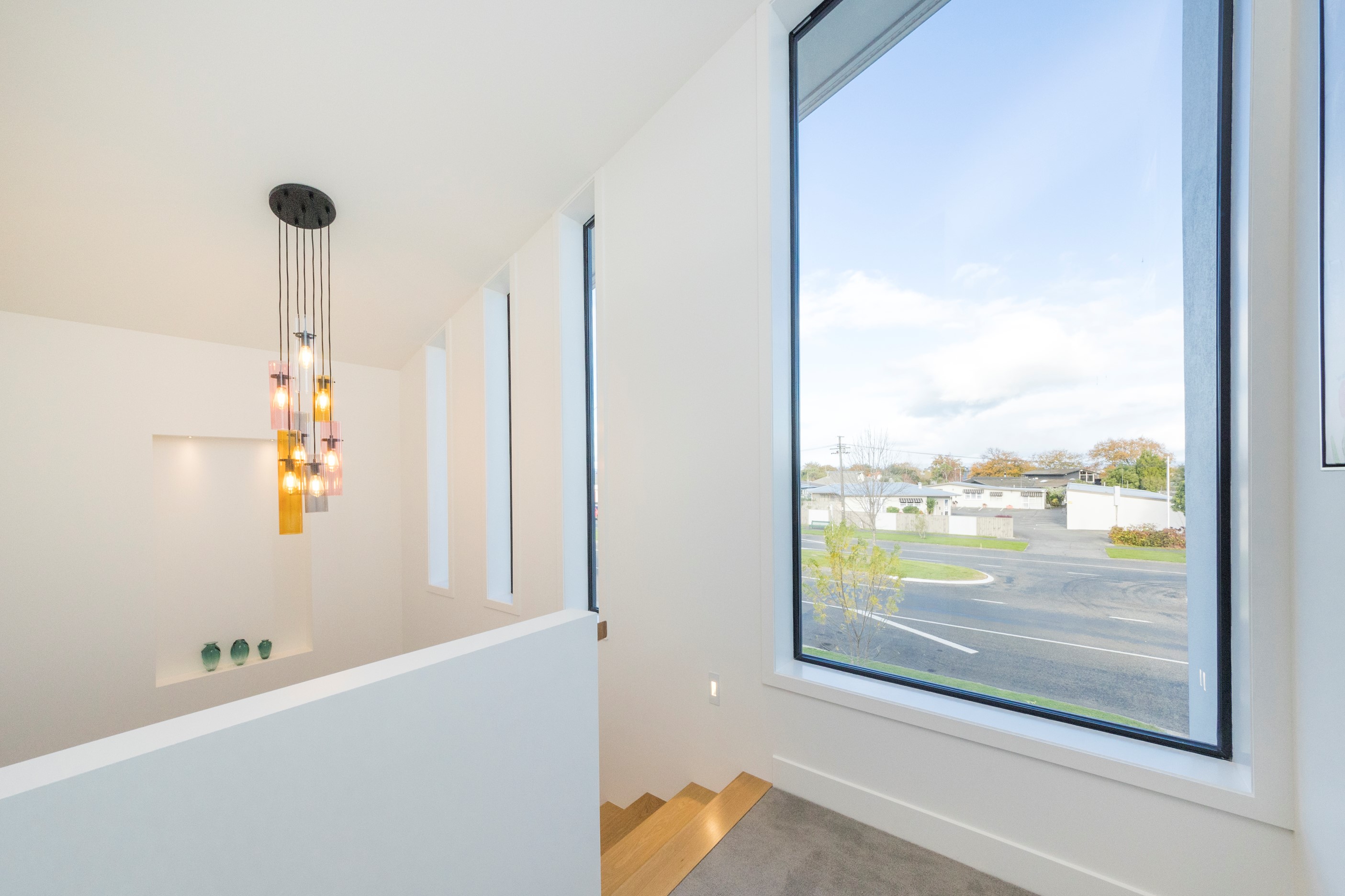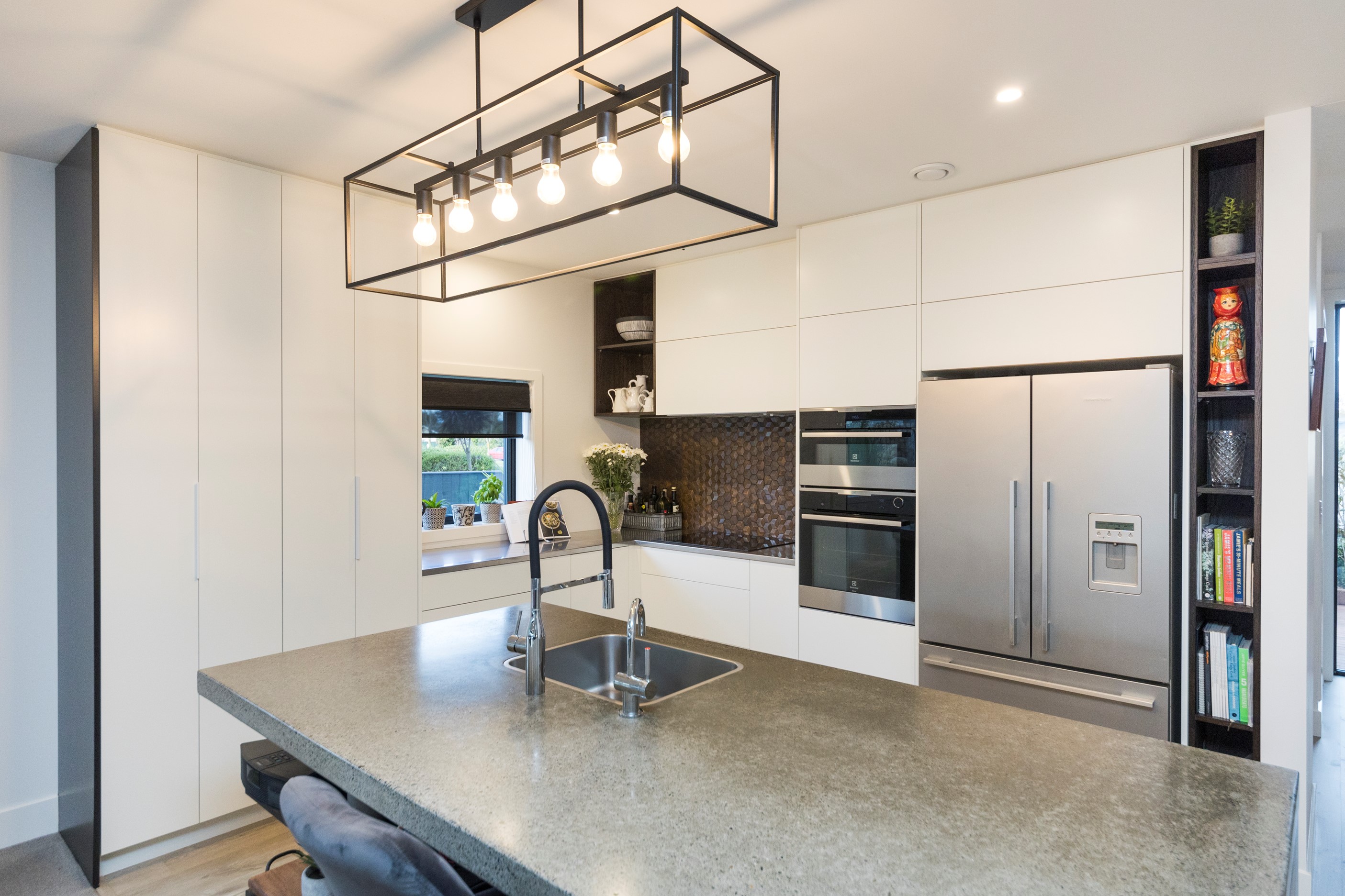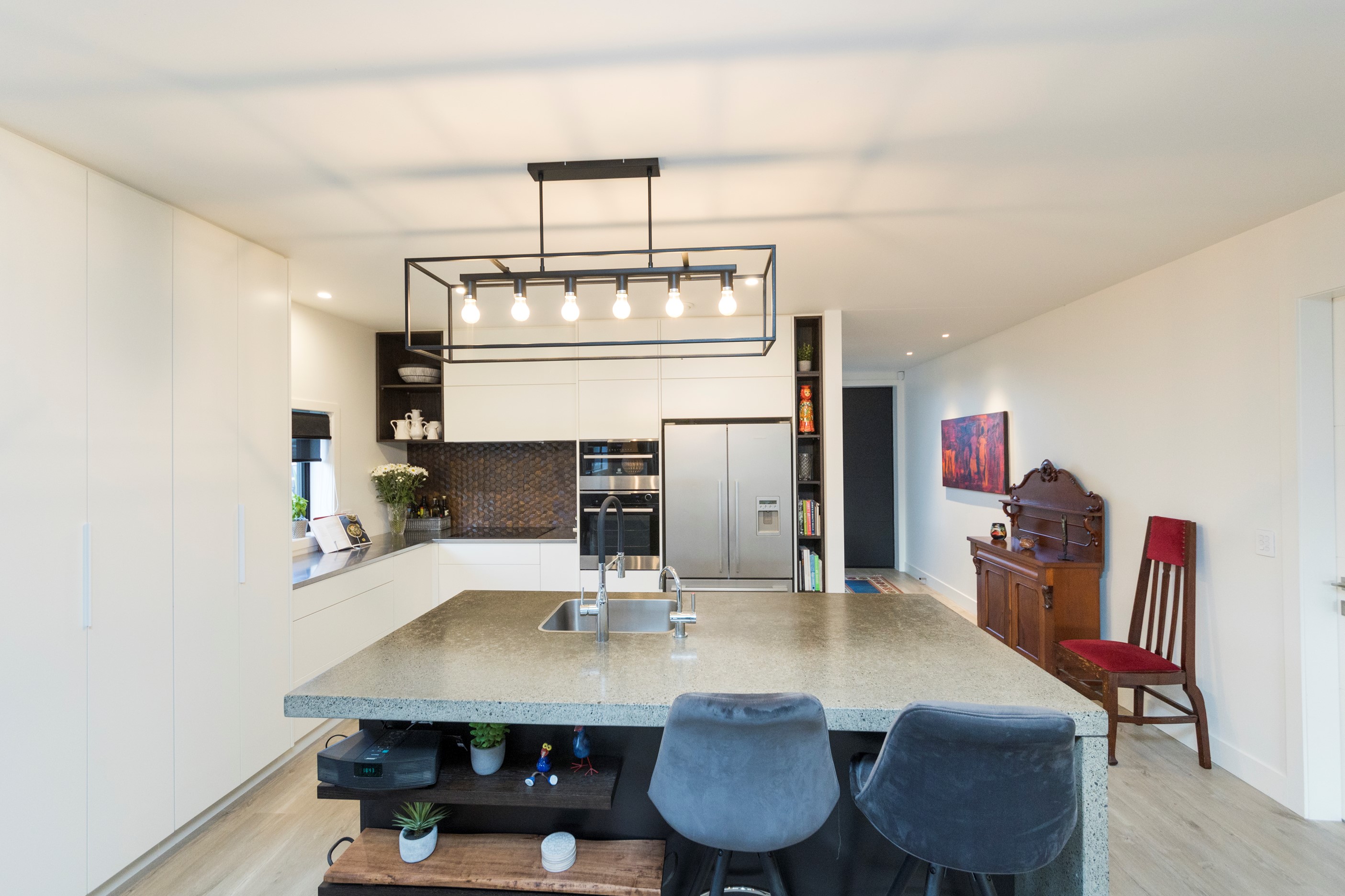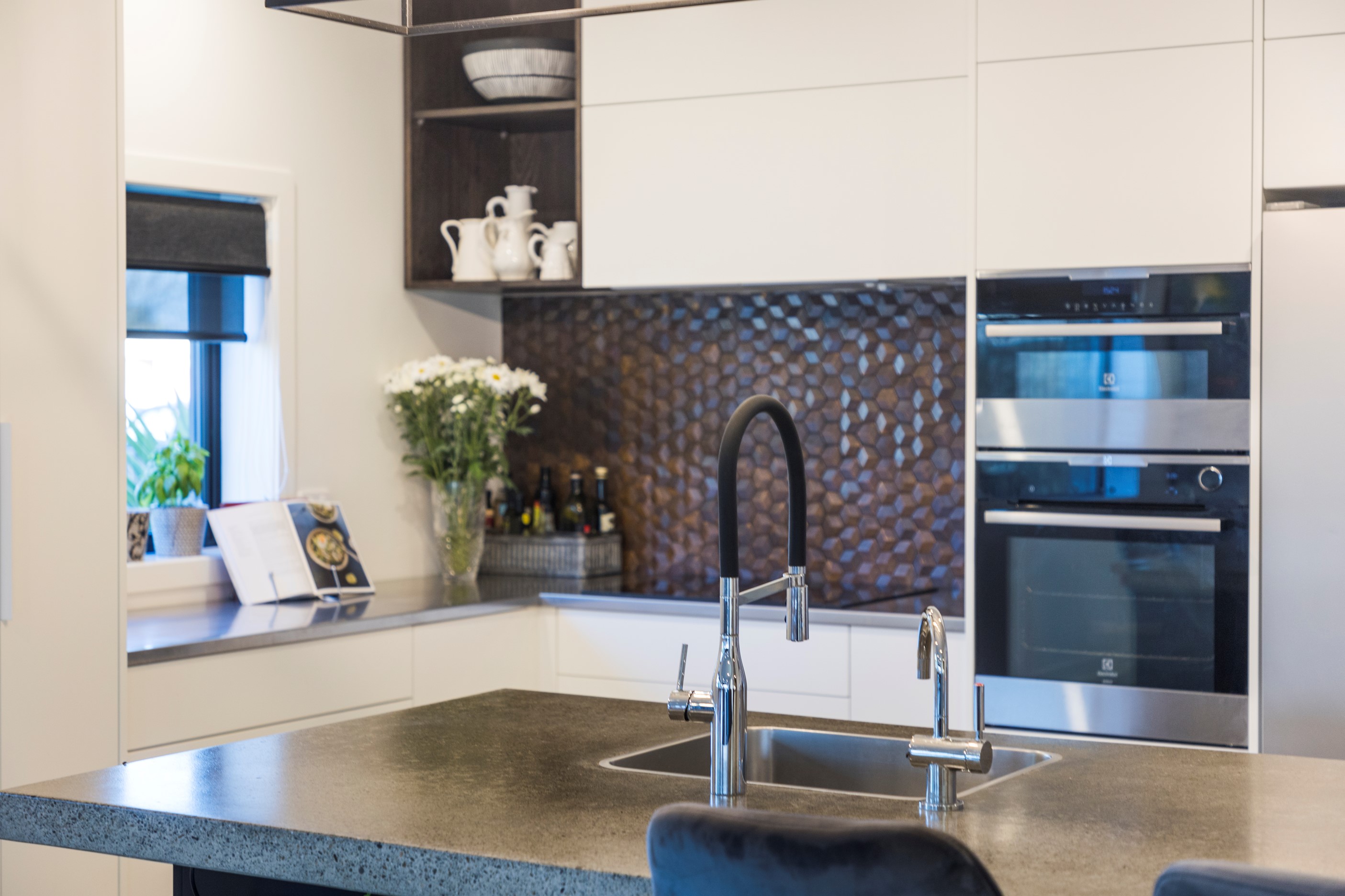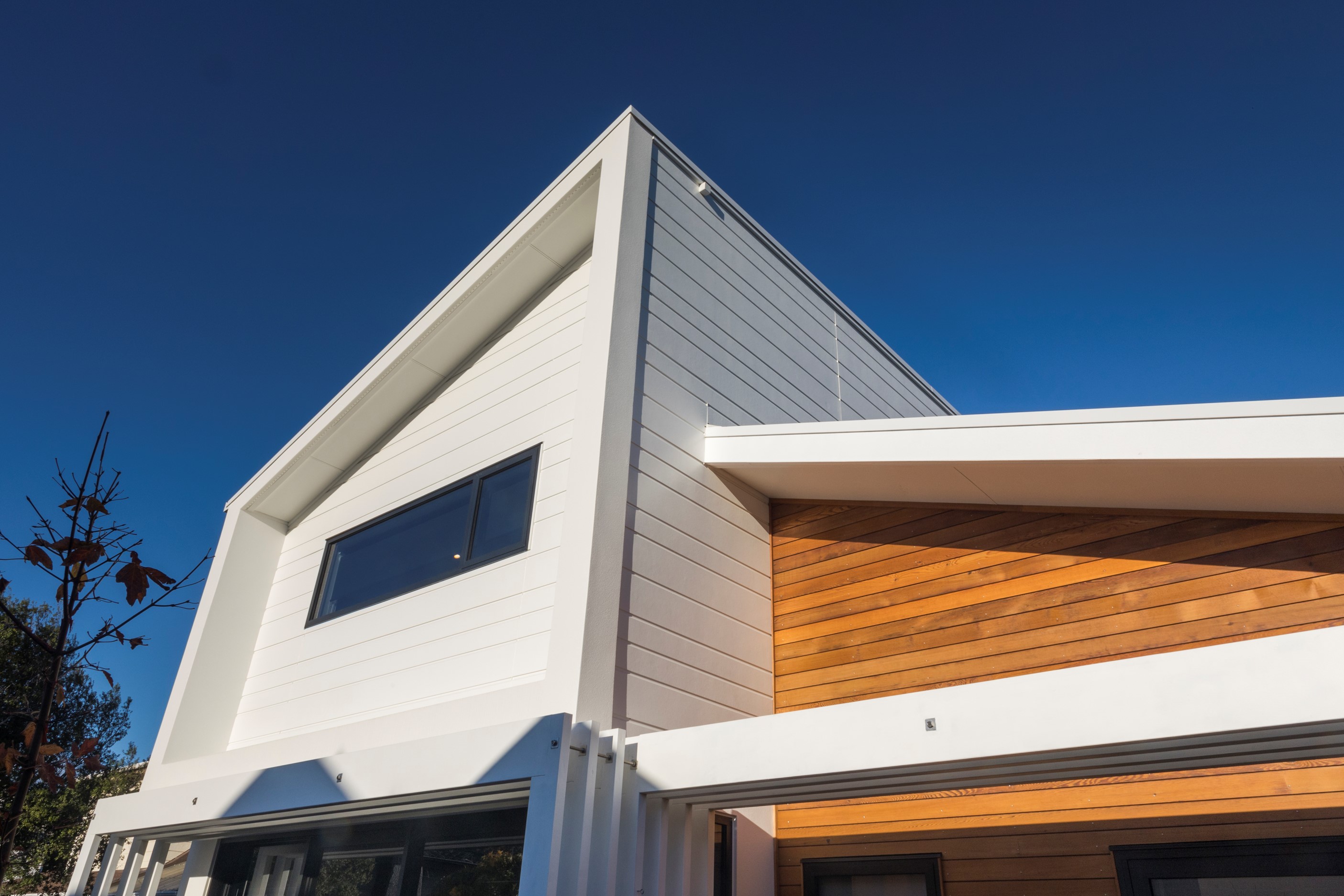 The client brief for this 251sqm build was simple: an energy-efficient three-bedroom, two-bathroom home for their subdivided urban section on one of Feilding’s busiest roads. Coming from a traditional rural setting, this change from the familiar is bold and brilliant. Their modern eHaus not only has sophisticated street appeal, but boasts exceptional construction that meets rigorous performance standards for interior comfort, health and energy efficiency. This is a home that benefits its owners and the environment. On the exterior, multi-sized oblique Linea weatherboards, plaster and cedar shiplap add texture and interest alongside the coloursteel roof and thermally broken aluminium windows. Inside, the owners have added their personal touch with carefully considered design elements, such as a copper tiled splashback and an American white oak staircase. There are smart design details, including the large angular street-facing window that allows light to fall into the stairwell, providing an expansive effect to an otherwise compact space. It’s all so smart.
