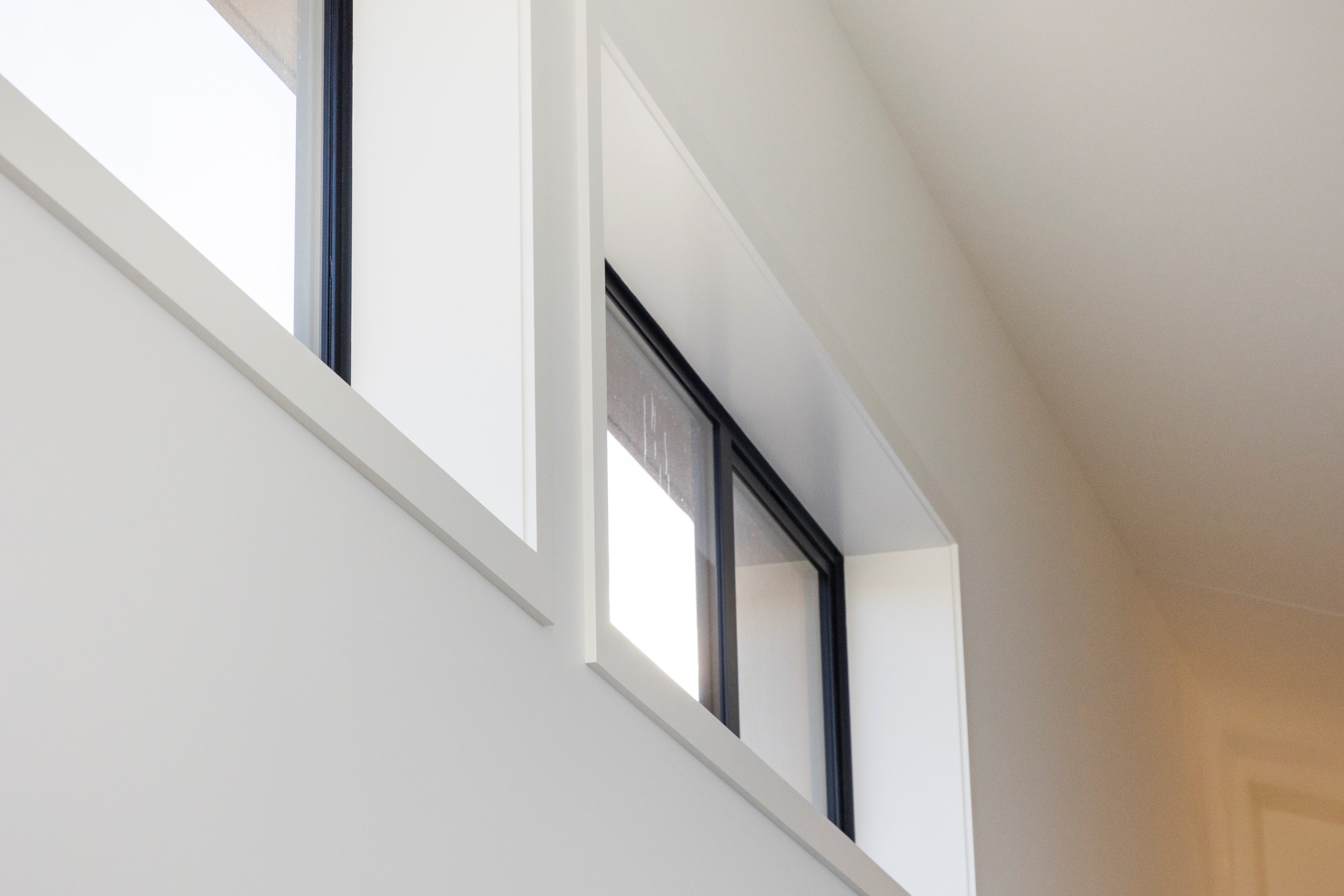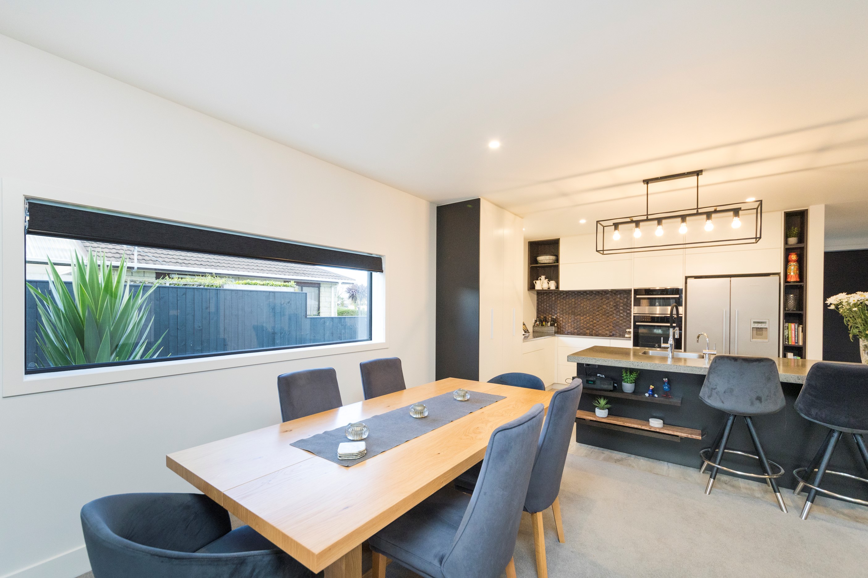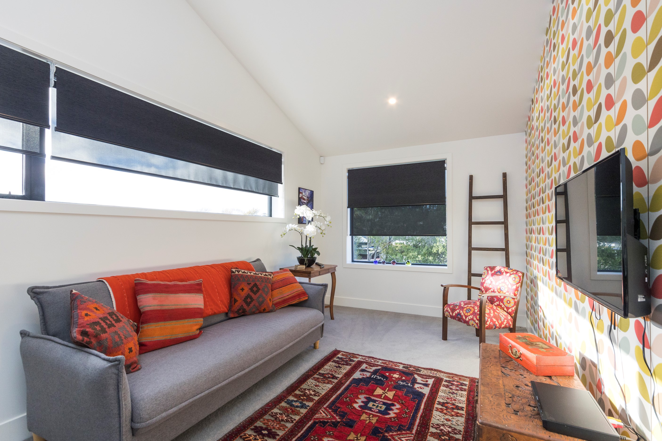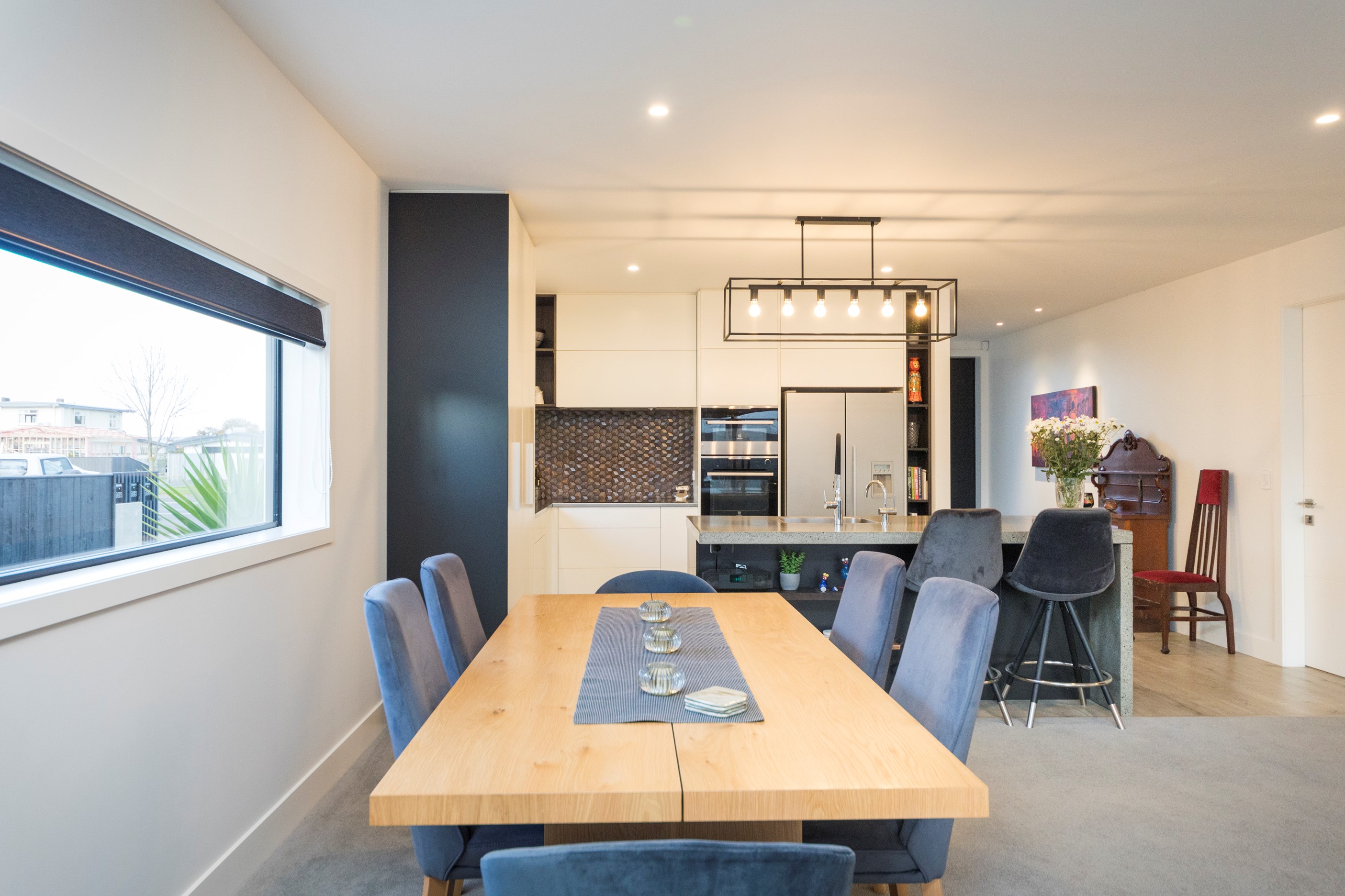 The client brief for this 251sqm build was simple: an energy-efficient three-bedroom, two-bathroom home for their subdivided urban section on one of Feilding’s busiest roads. Coming from a traditional rural setting, this change from the familiar is bold and brilliant. Their modern eHaus not only has sophisticated street appeal, but boasts exceptional construction that meets rigorous performance standards for interior comfort, health and energy efficiency. This is a home that benefits its owners and the environment. On the exterior, multi-sized oblique Linea weatherboards, plaster and cedar shiplap add texture and interest alongside the coloursteel roof and thermally broken aluminium windows. Inside, the owners have added their personal touch with carefully considered design elements, such as a copper tiled splashback and an American white oak staircase. There are smart design details, including the large angular street-facing window that allows light to fall into the stairwell, providing an expansive effect to an otherwise compact space. It’s all so smart.
