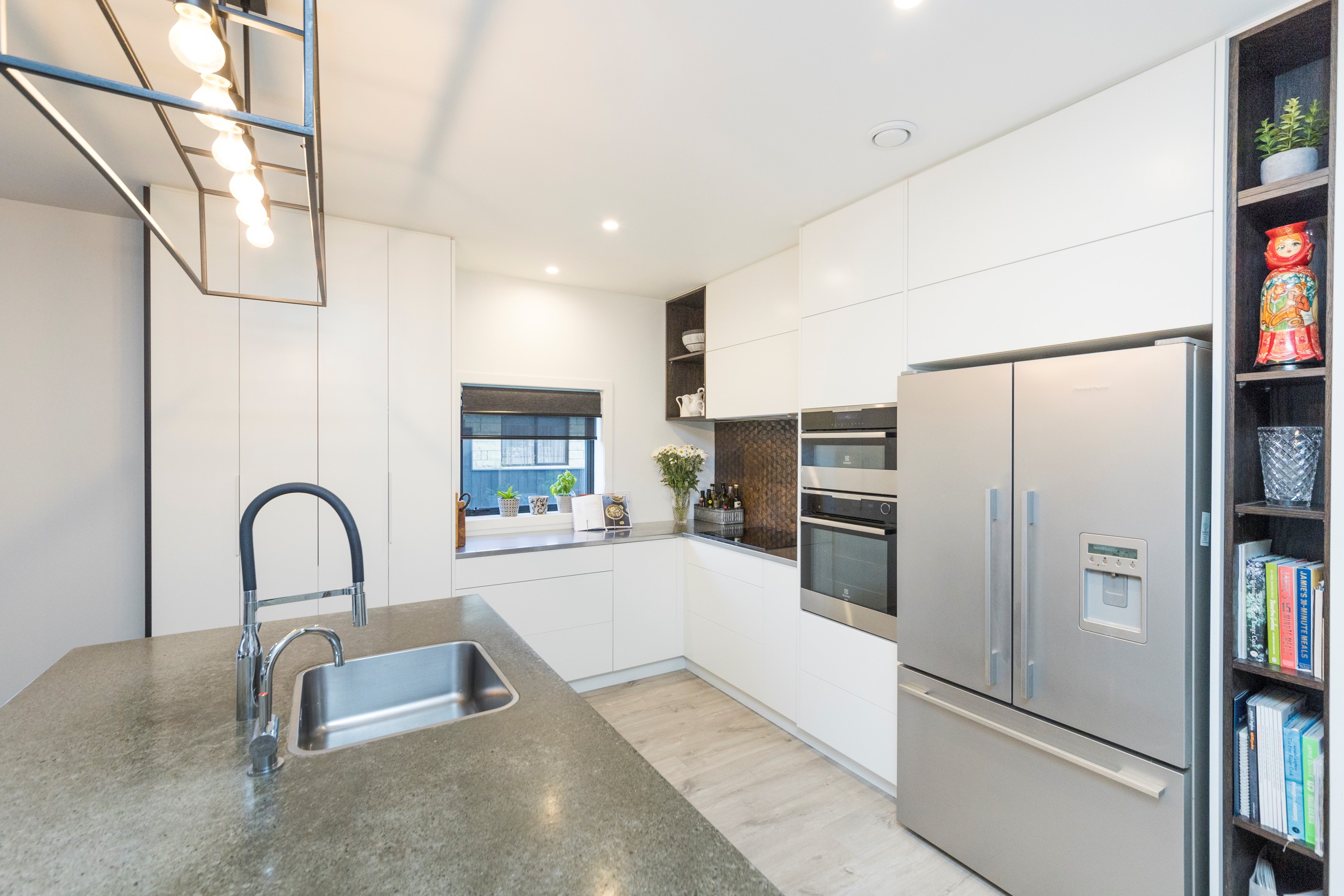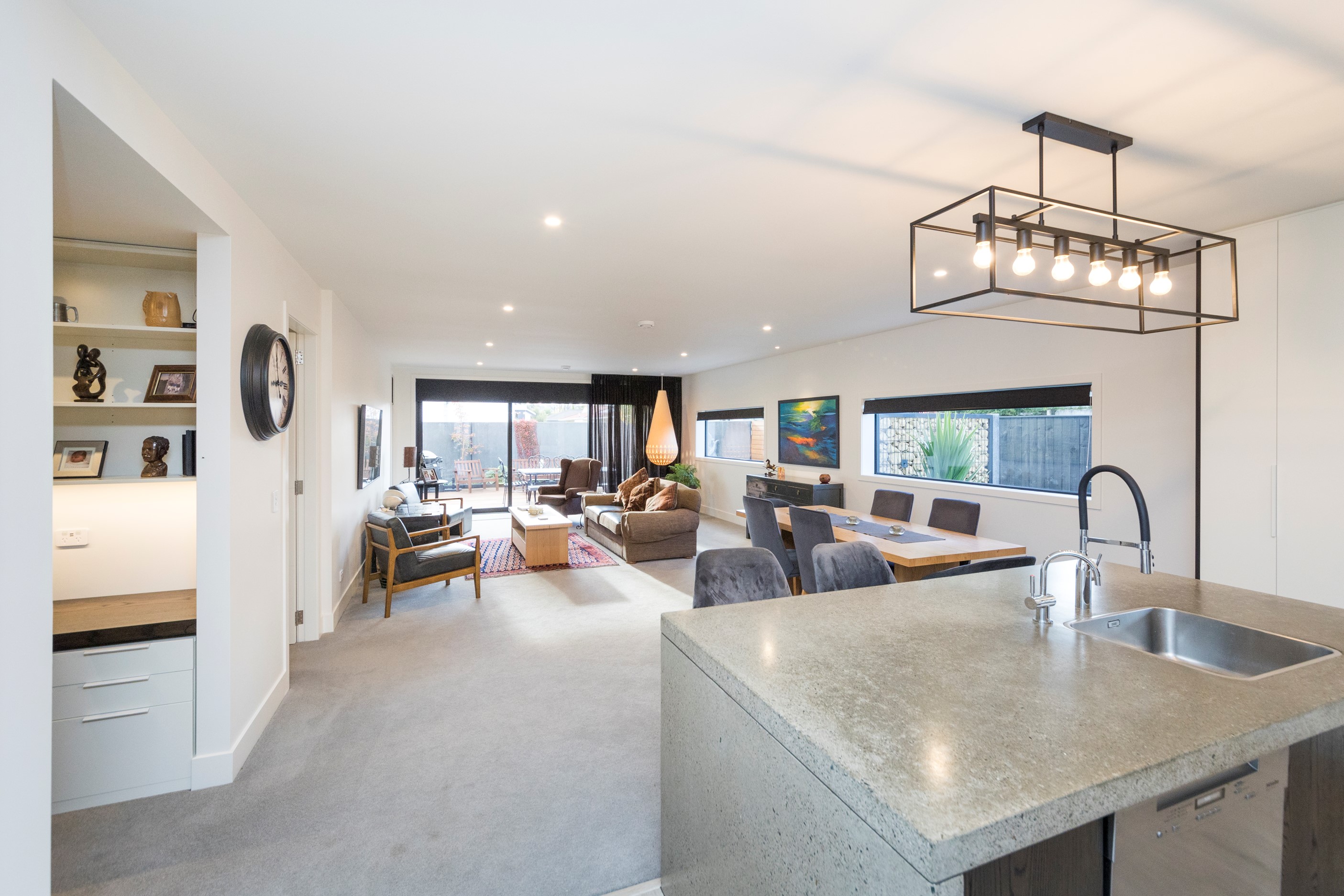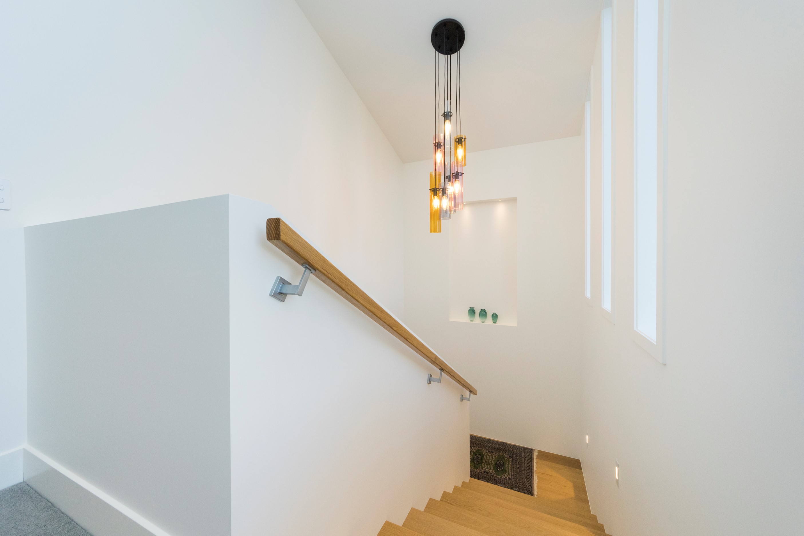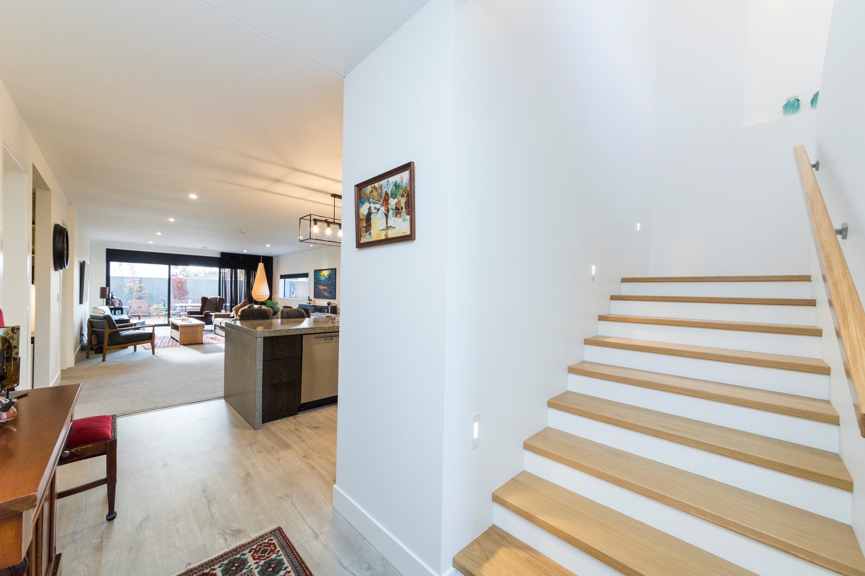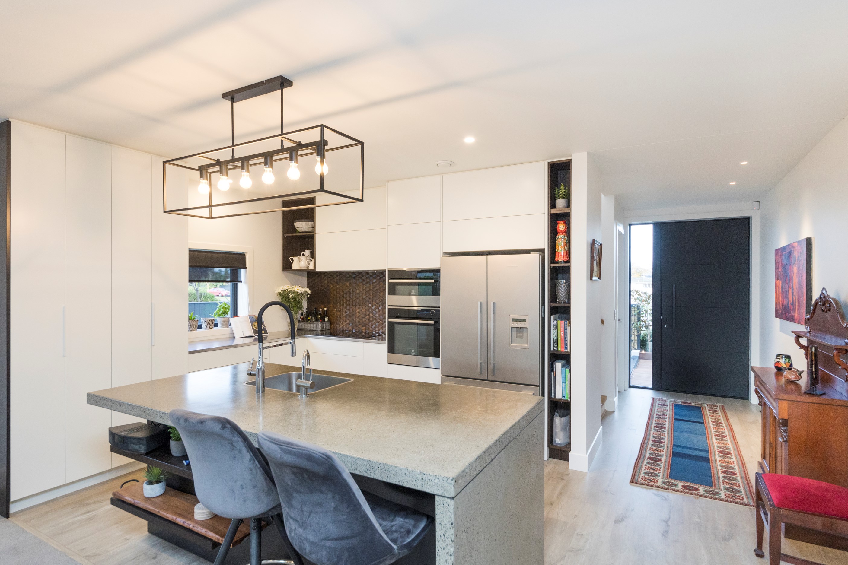 The client brief for this 251sqm build was simple: an energy-efficient three-bedroom, two-bathroom home for their subdivided urban section on one of Feilding’s busiest roads. Coming from a traditional rural setting, this change from the familiar is bold and brilliant. Their modern eHaus not only has sophisticated street appeal, but boasts exceptional construction that meets rigorous performance standards for interior comfort, health and energy efficiency. This is a home that benefits its owners and the environment. On the exterior, multi-sized oblique Linea weatherboards, plaster and cedar shiplap add texture and interest alongside the coloursteel roof and thermally broken aluminium windows. Inside, the owners have added their personal touch with carefully considered design elements, such as a copper tiled splashback and an American white oak staircase. There are smart design details, including the large angular street-facing window that allows light to fall into the stairwell, providing an expansive effect to an otherwise compact space. It’s all so smart.