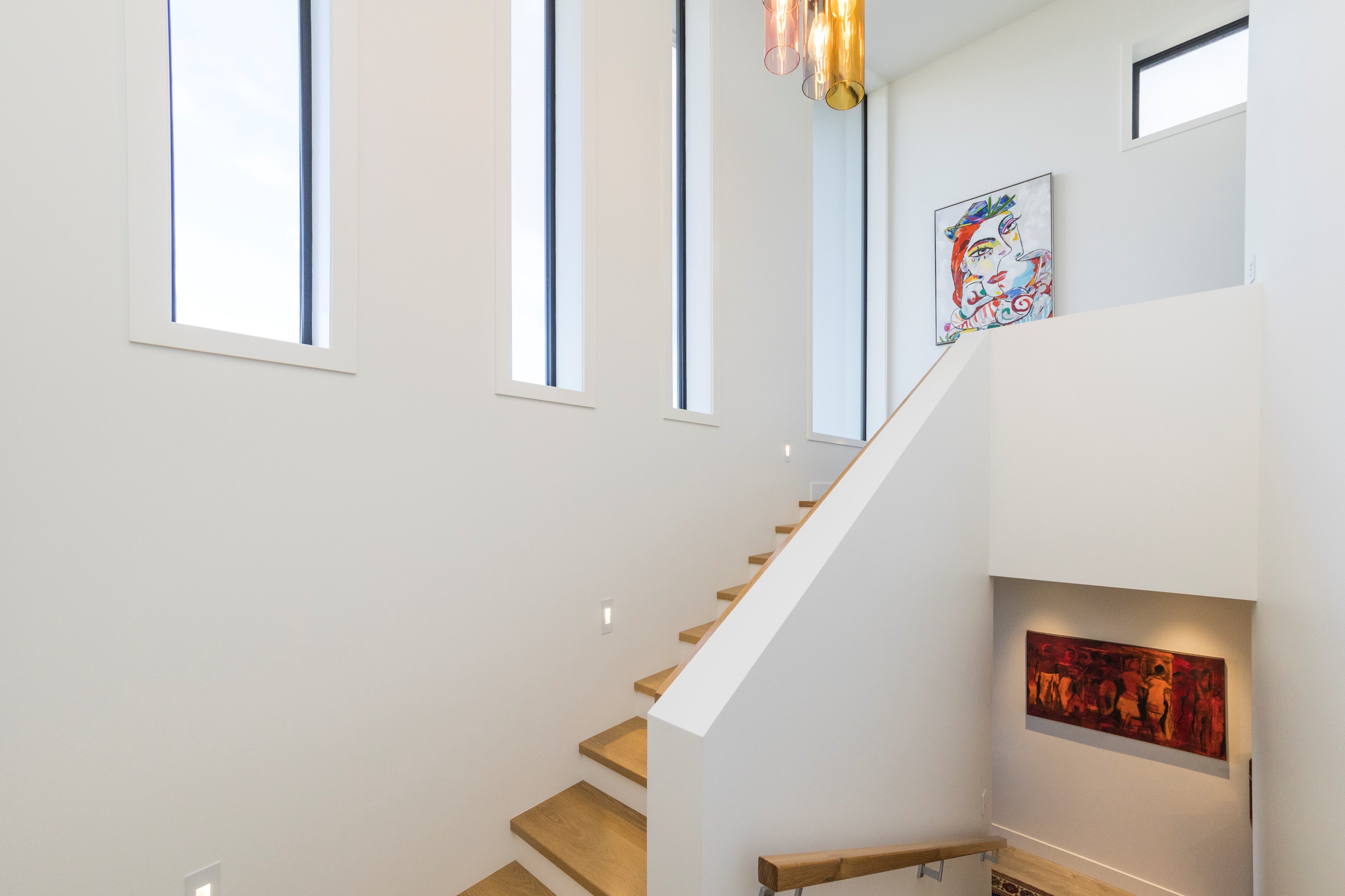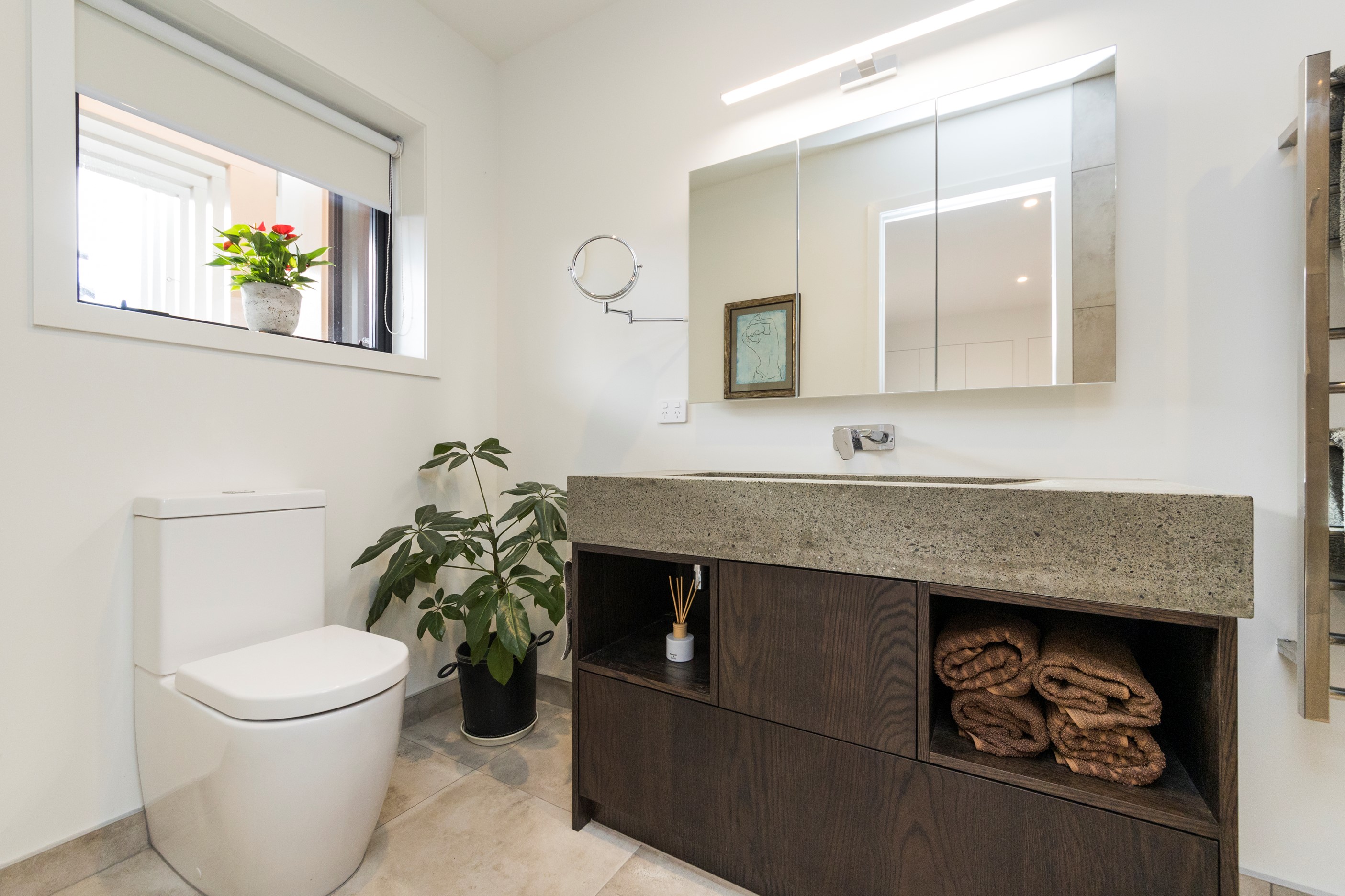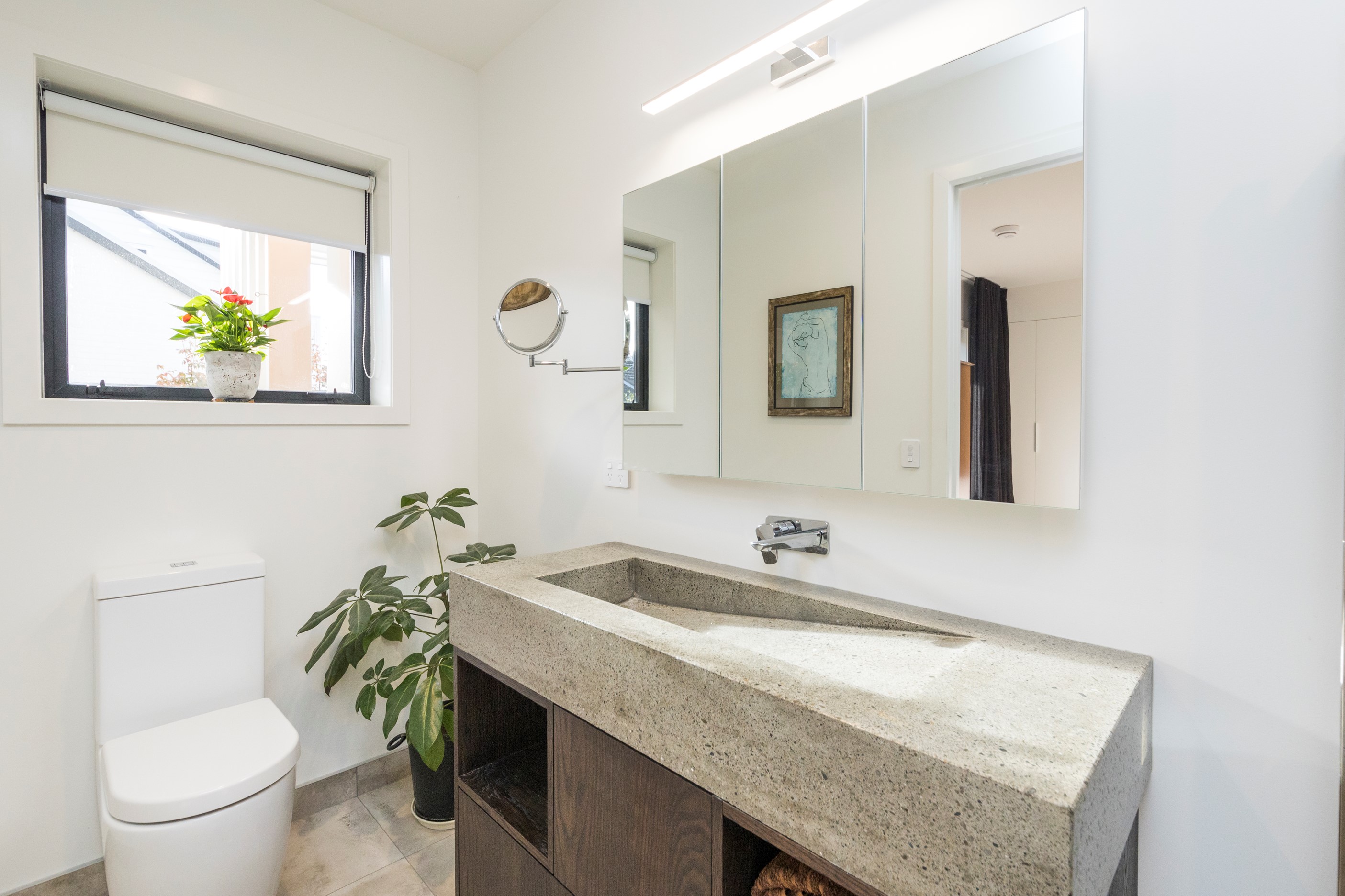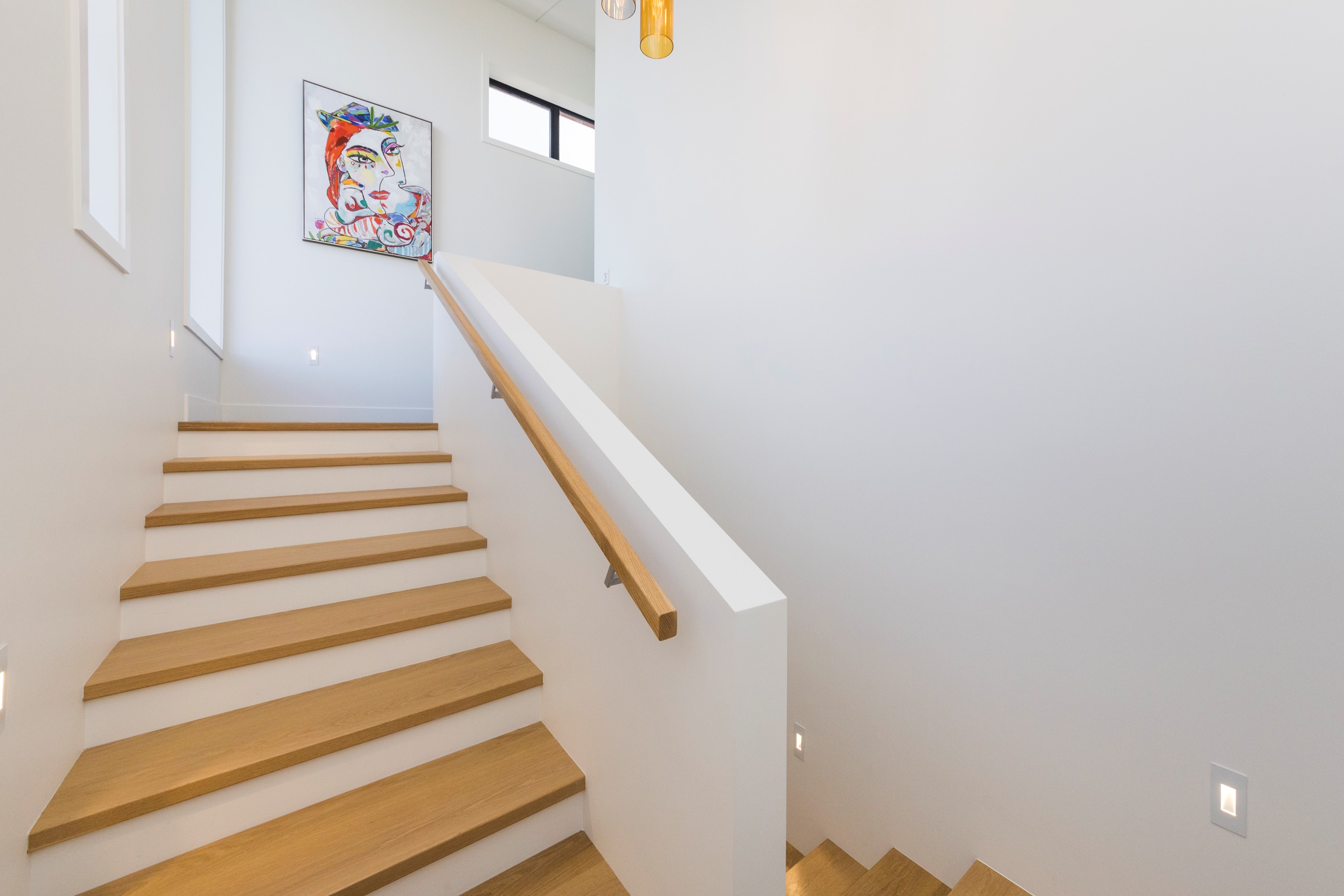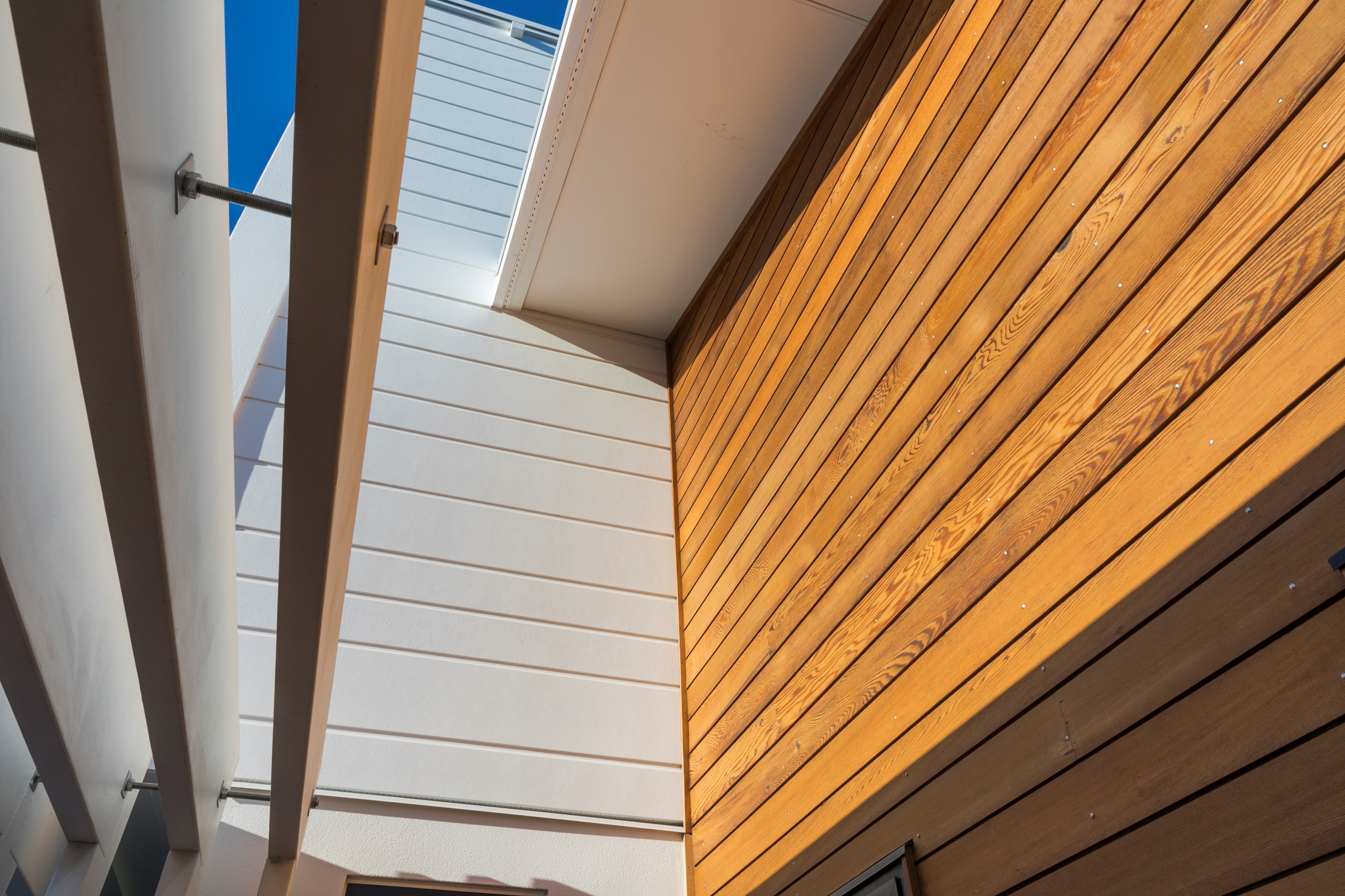 The client brief for this 251sqm build was simple: an energy-efficient three-bedroom, two-bathroom home for their subdivided urban section on one of Feilding’s busiest roads. Coming from a traditional rural setting, this change from the familiar is bold and brilliant. Their modern eHaus not only has sophisticated street appeal, but boasts exceptional construction that meets rigorous performance standards for interior comfort, health and energy efficiency. This is a home that benefits its owners and the environment. On the exterior, multi-sized oblique Linea weatherboards, plaster and cedar shiplap add texture and interest alongside the coloursteel roof and thermally broken aluminium windows. Inside, the owners have added their personal touch with carefully considered design elements, such as a copper tiled splashback and an American white oak staircase. There are smart design details, including the large angular street-facing window that allows light to fall into the stairwell, providing an expansive effect to an otherwise compact space. It’s all so smart.