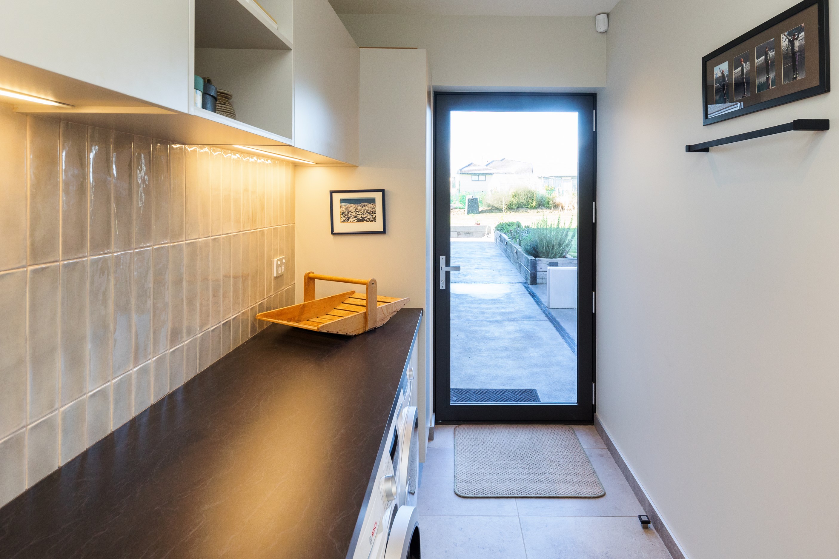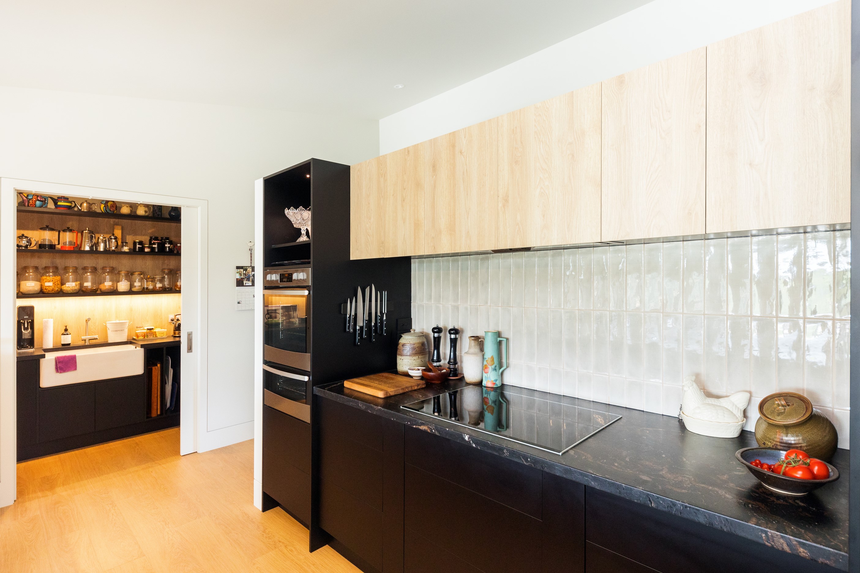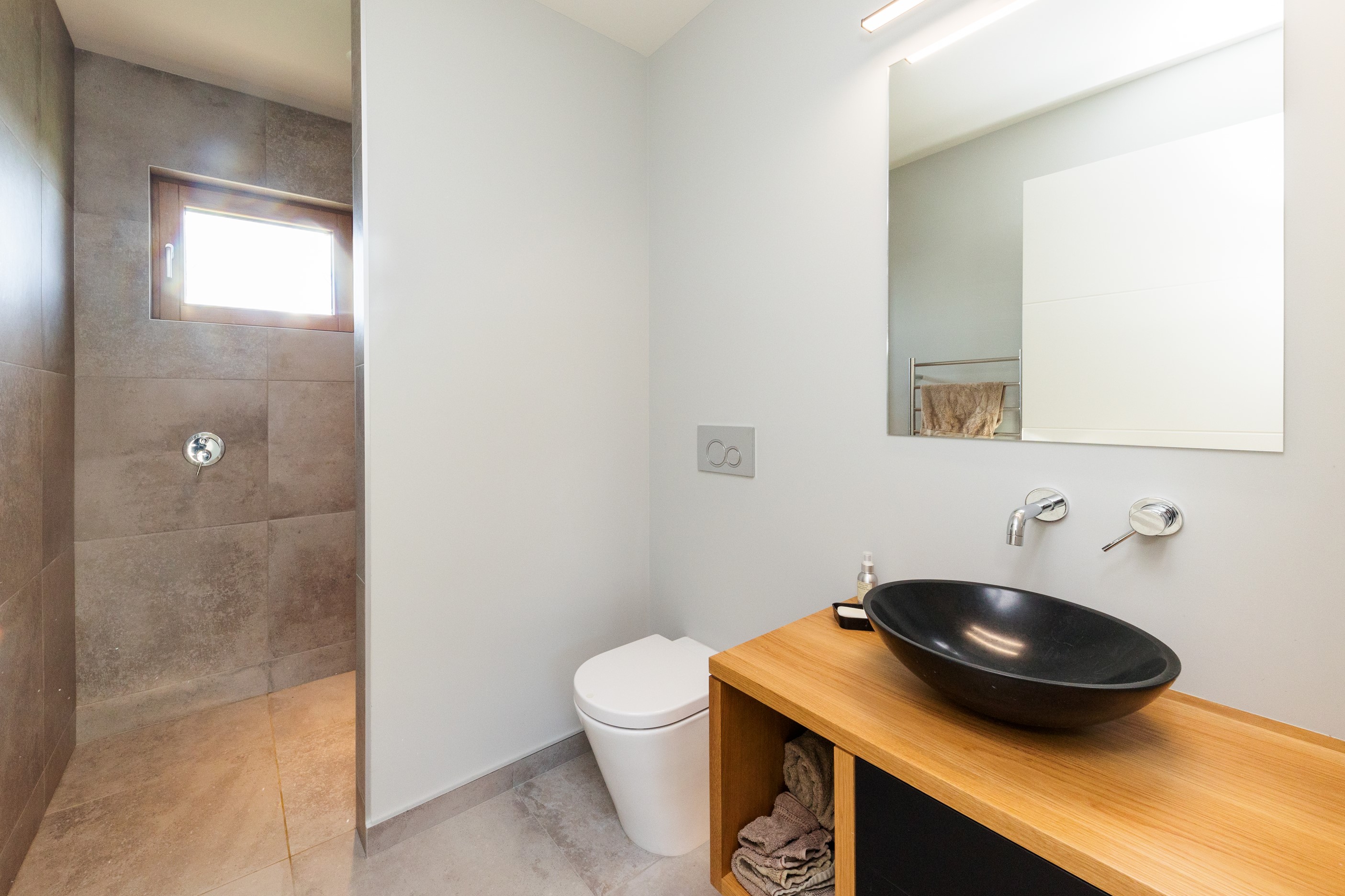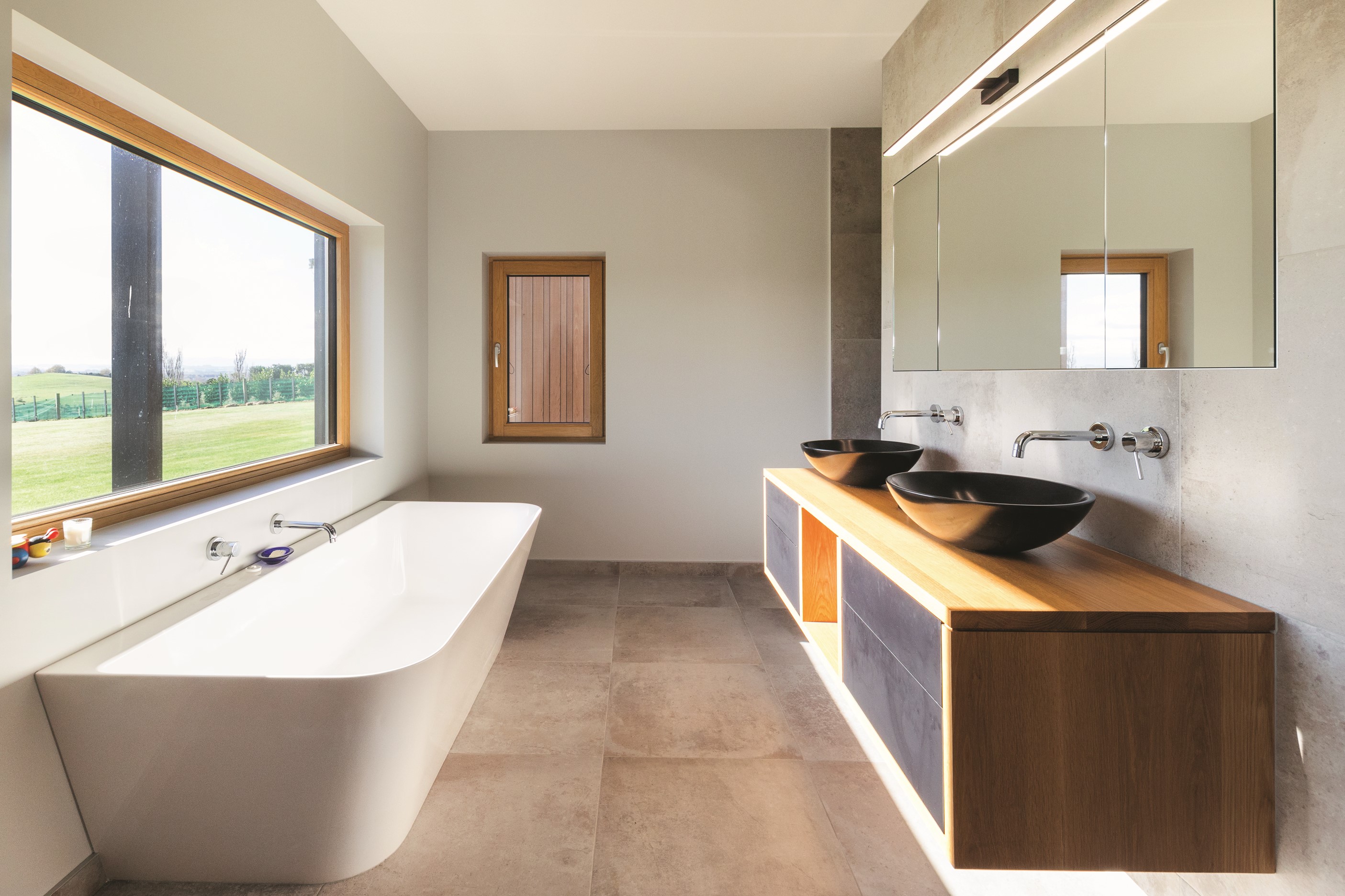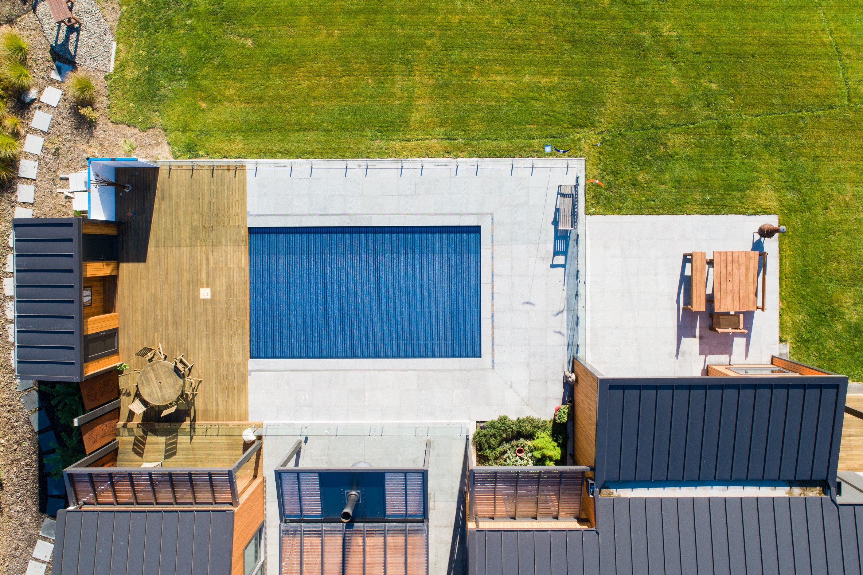 When visitors step into this large and long three-bedroom home, they are greeted with a framed view. They see the contemporary outdoor lounge, featuring a suspended fireplace and an inviting pool area, all backdropped by the green landscape. From here, they’re guided through to the main living and dining area under a prism of oak plywood ceilings. A simple layout and intricate design coupled with clever detailing and artistic panache elevate this 355sqm property into something special. The main bedroom suite opens out onto its own deck, taking in the lush outlook. The ensuite is simply sublime, with a luxurious bath that also captures the stunning rural view. The design challenge for this particular build was to create a home that took advantage of the vista of rolling hills, without succumbing to the mighty winds that sweep in from all directions. Exterior cladding, including Otago schist; vertical shiplap cedar; and high-quality, high-pressure laminate panels, complement the surroundings. Negative detailing on interior walls keeps things contemporary.