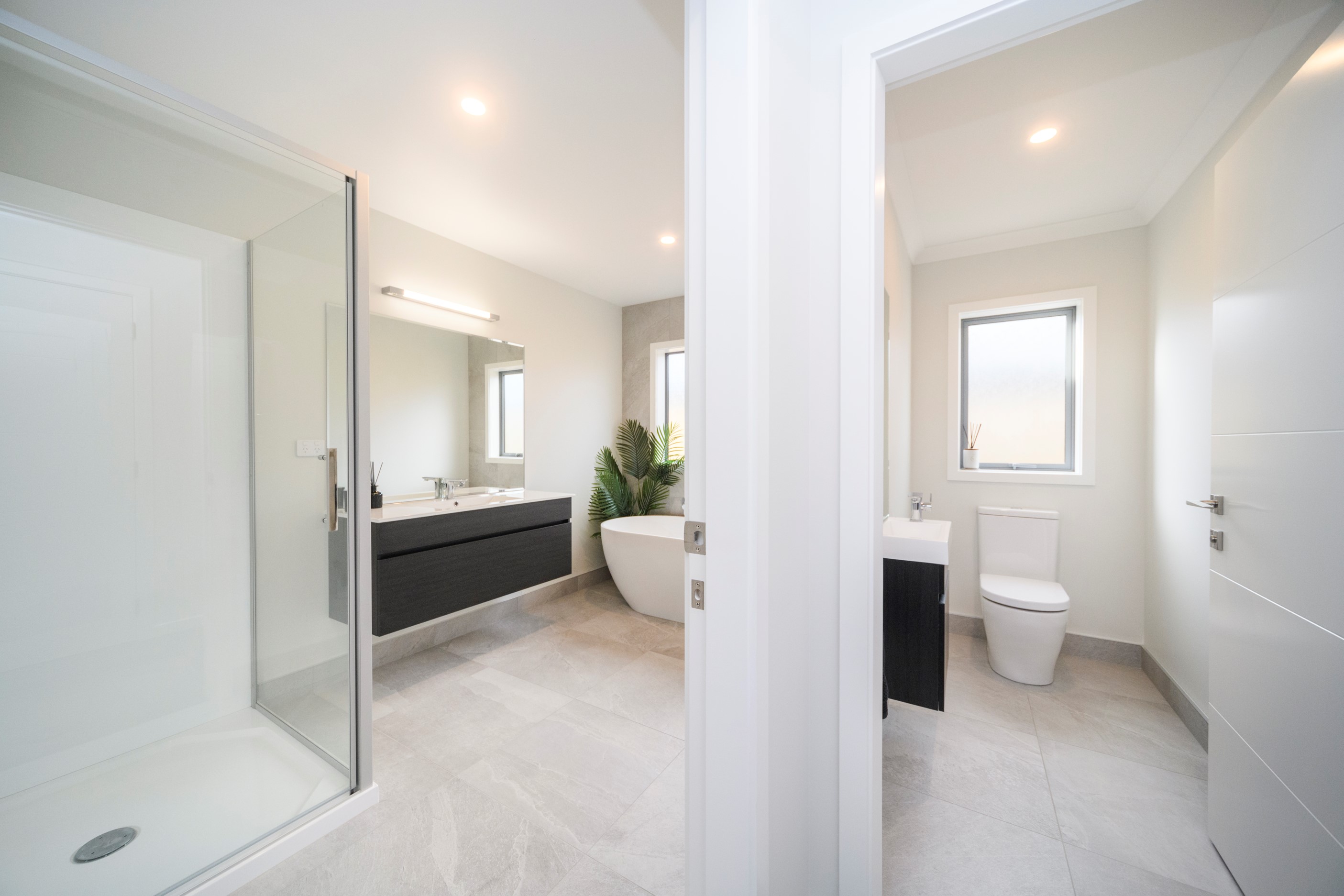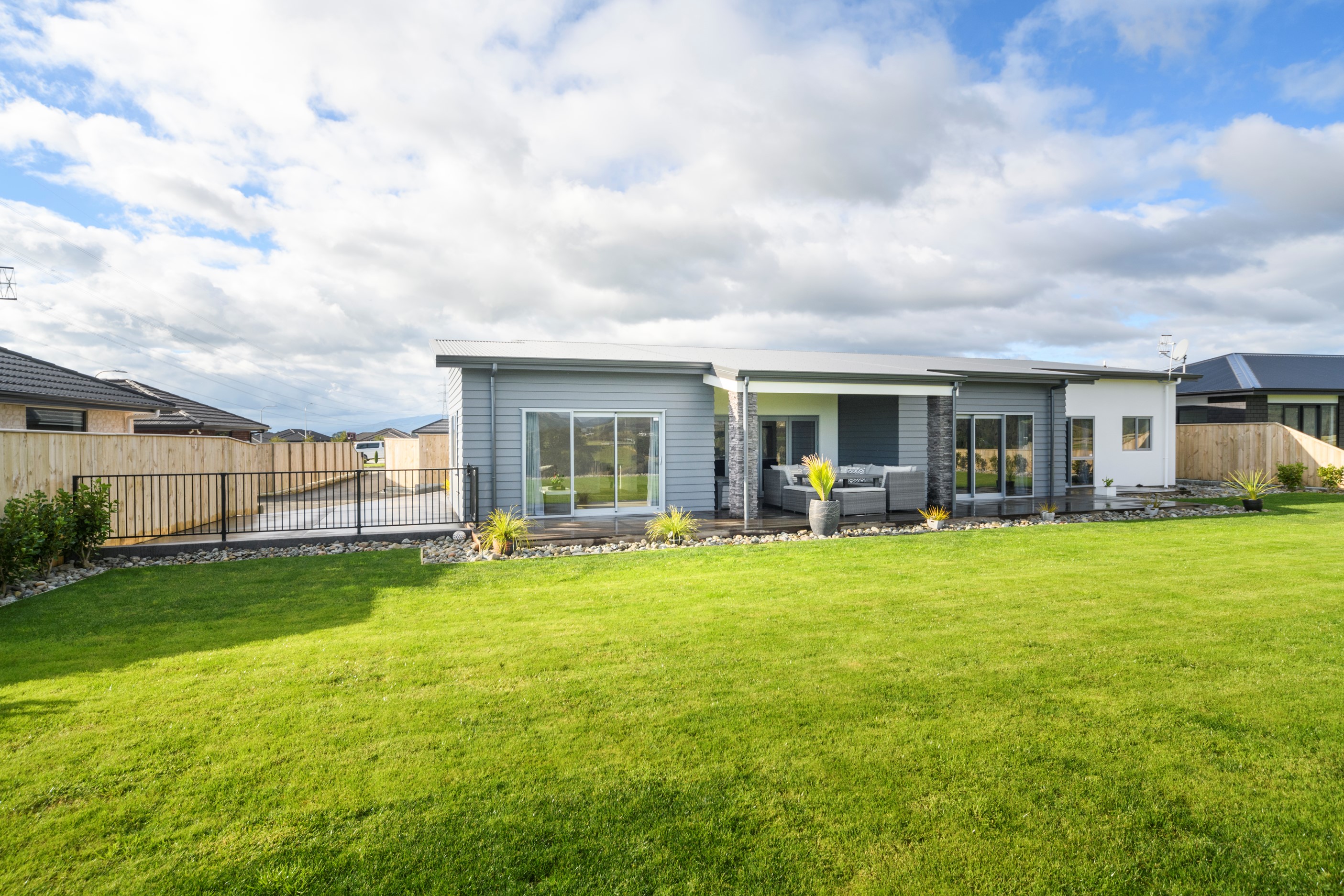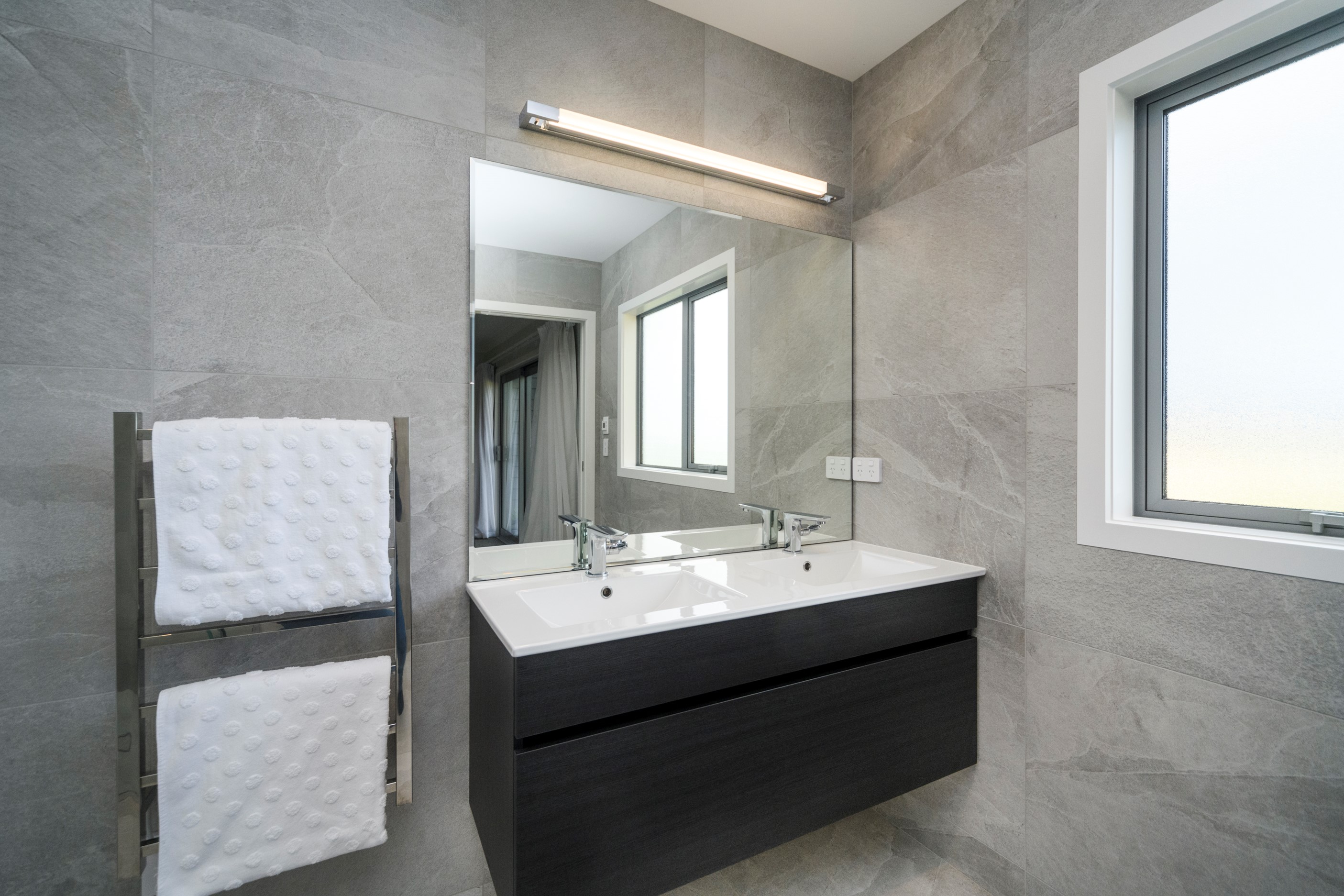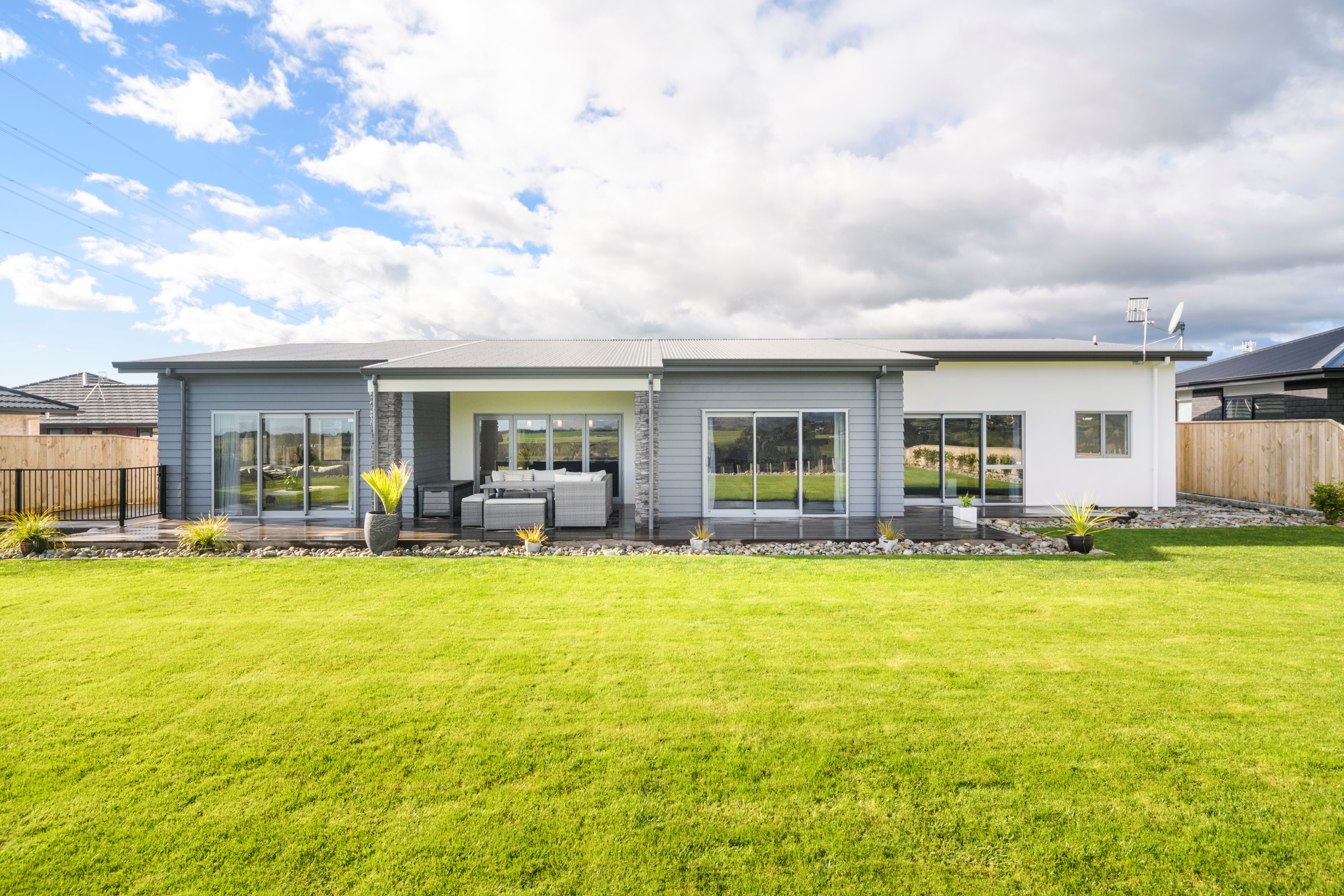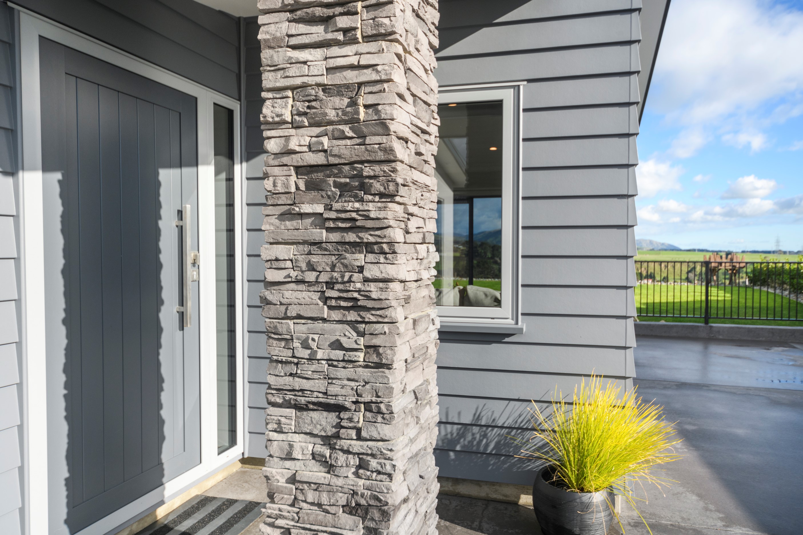 Located on the fringe between city and country, this 201sqm home has been designed to provide a relaxed yet modern sanctuary. On the exterior, a contemporary blend of white Rockcote plaster, grey Linea weatherboards and a hint of schist impress beneath the monopitch roof. With efficient and elegant use of space, this single-level home comfortably provides three bedrooms, two bathrooms and two living areas. Located alongside the living/dining zone, the stylish kitchen is positioned to open up to the covered outdoor living area. With lush green countryside beyond, this space offers a relaxing retreat for those quiet Sunday evenings to enjoy a glass of wine before the new work week begins. The laundry is conveniently tucked away within the internally accessed double garage, where there’s also additional storage space. The main bedroom suite provides ample room with a walk-in wardrobe and fully tiled ensuite, which includes a double-bowl wall-hung vanity and large shower. The family bathroom has been tastefully appointed with an elegant freestanding bath and separate shower.