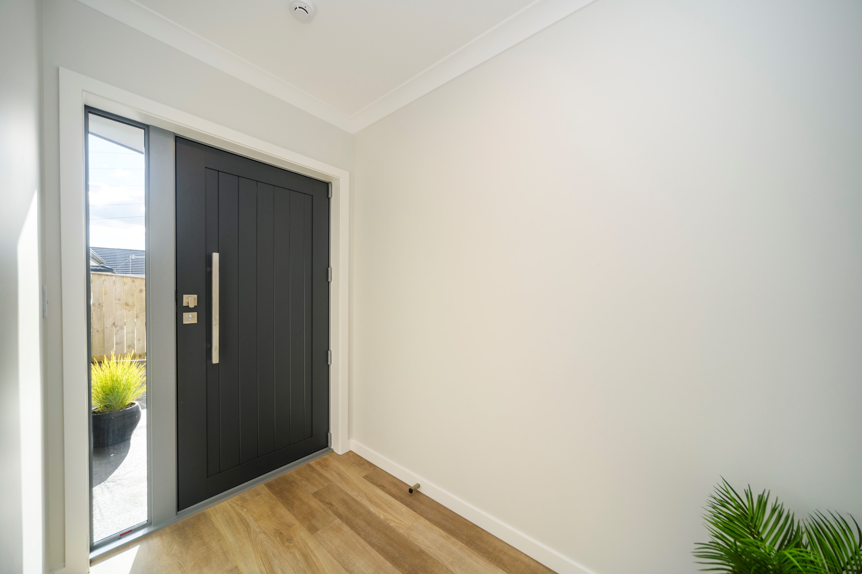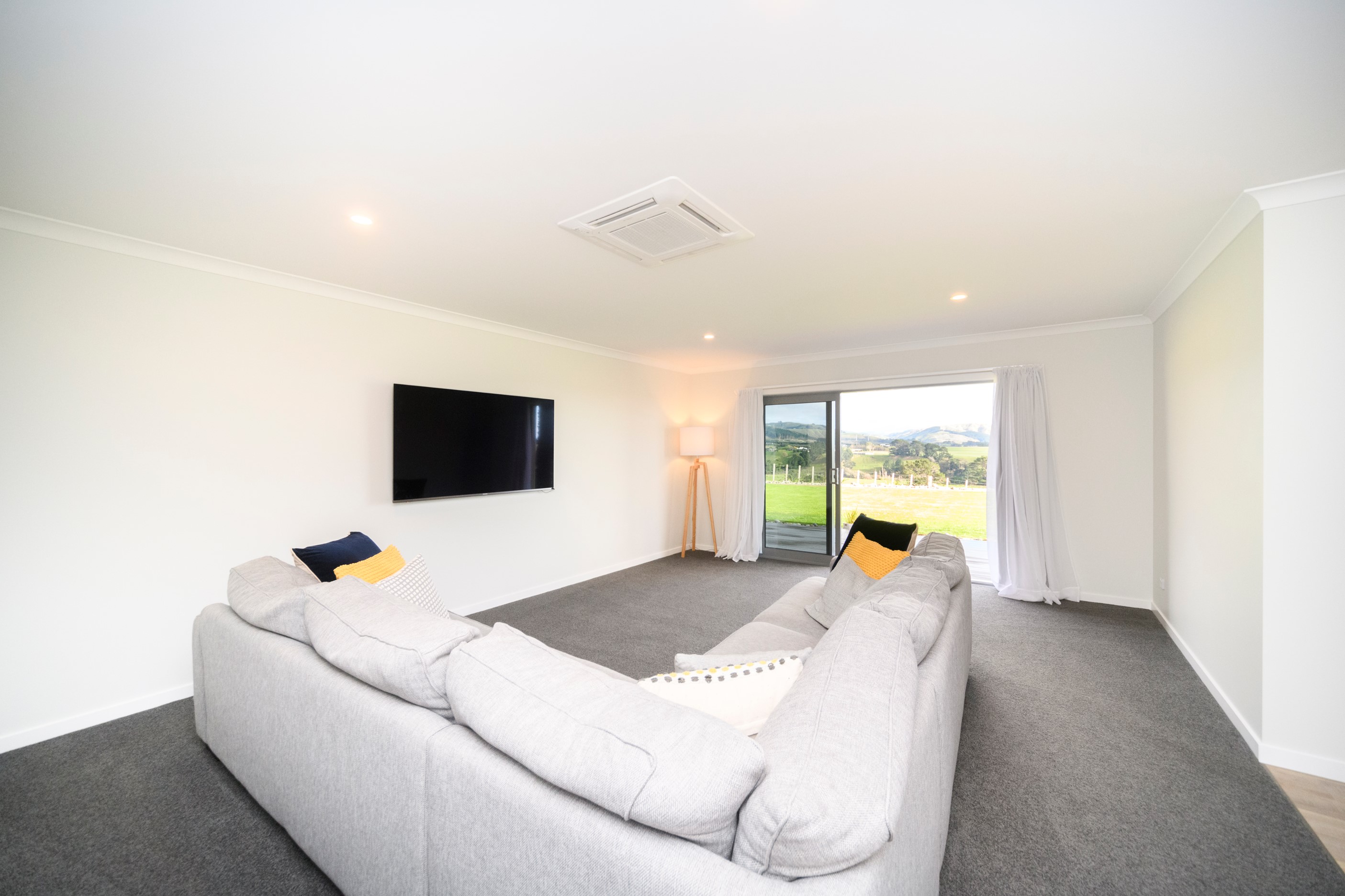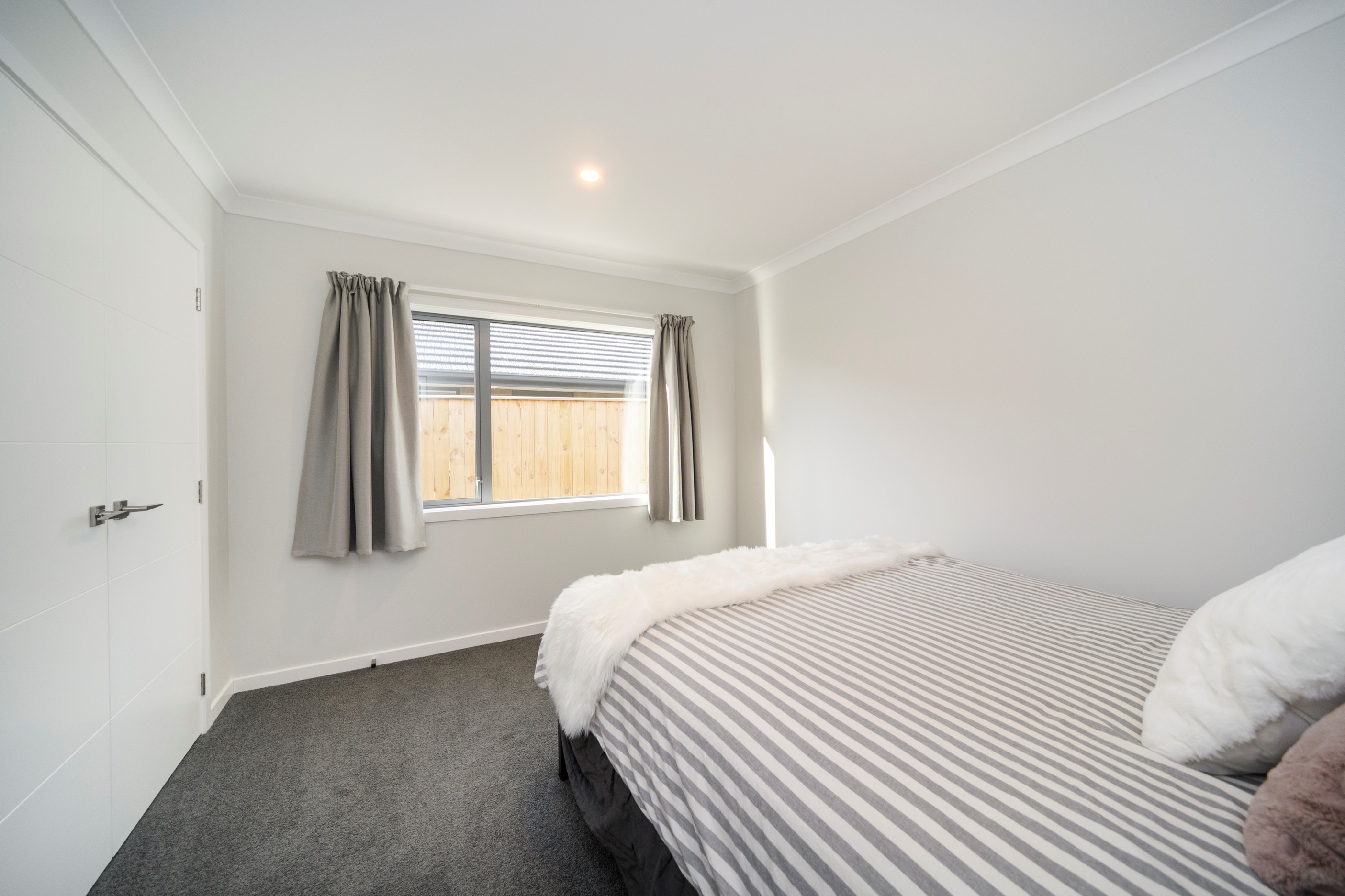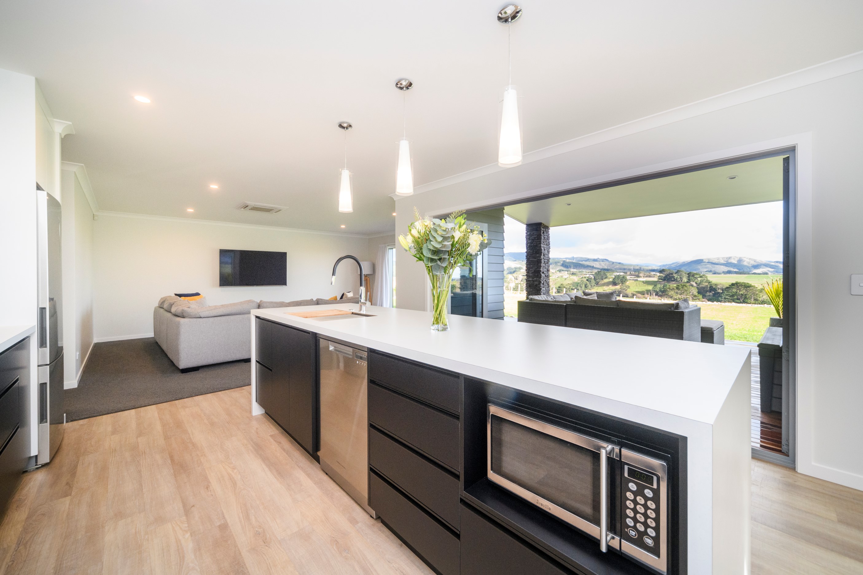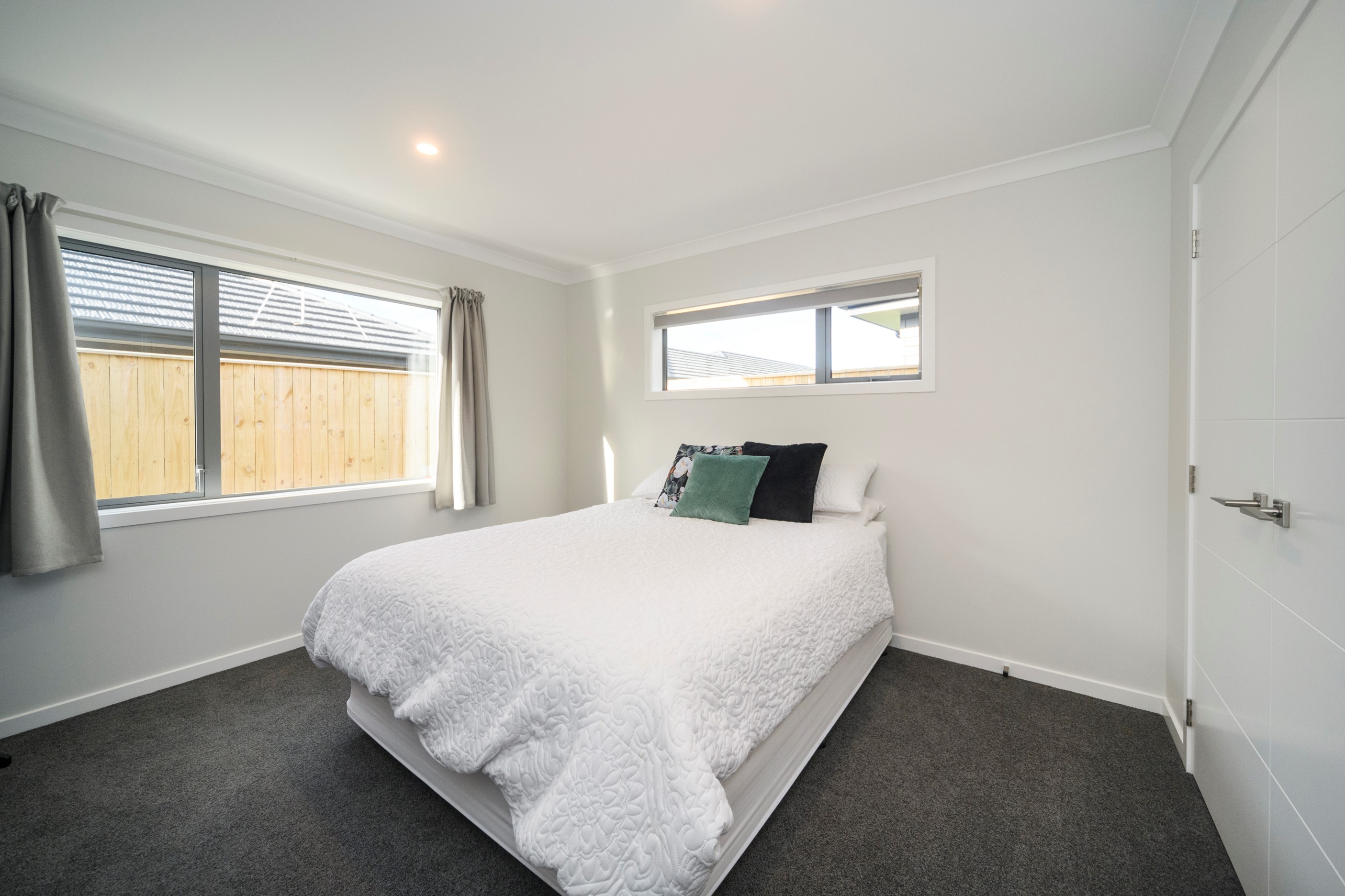 Located on the fringe between city and country, this 201sqm home has been designed to provide a relaxed yet modern sanctuary. On the exterior, a contemporary blend of white Rockcote plaster, grey Linea weatherboards and a hint of schist impress beneath the monopitch roof. With efficient and elegant use of space, this single-level home comfortably provides three bedrooms, two bathrooms and two living areas. Located alongside the living/dining zone, the stylish kitchen is positioned to open up to the covered outdoor living area. With lush green countryside beyond, this space offers a relaxing retreat for those quiet Sunday evenings to enjoy a glass of wine before the new work week begins. The laundry is conveniently tucked away within the internally accessed double garage, where there’s also additional storage space. The main bedroom suite provides ample room with a walk-in wardrobe and fully tiled ensuite, which includes a double-bowl wall-hung vanity and large shower. The family bathroom has been tastefully appointed with an elegant freestanding bath and separate shower.
