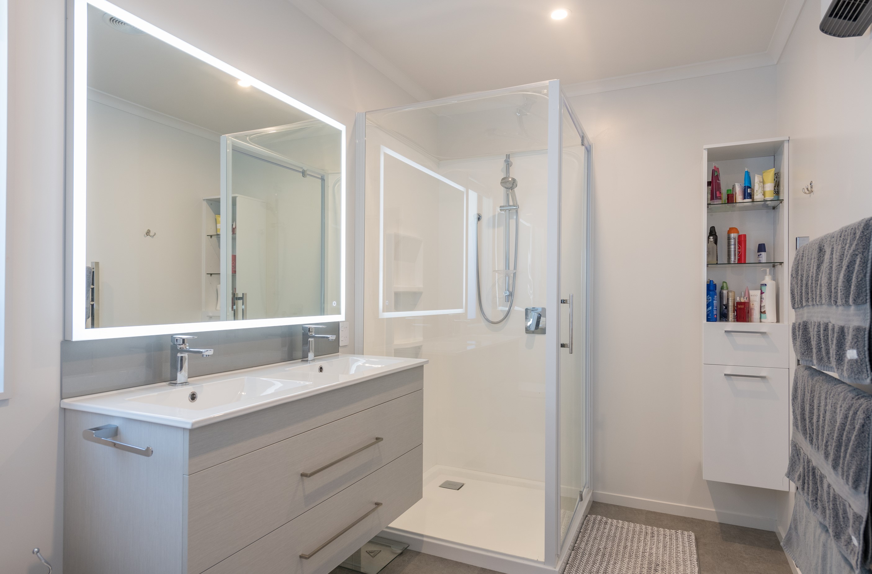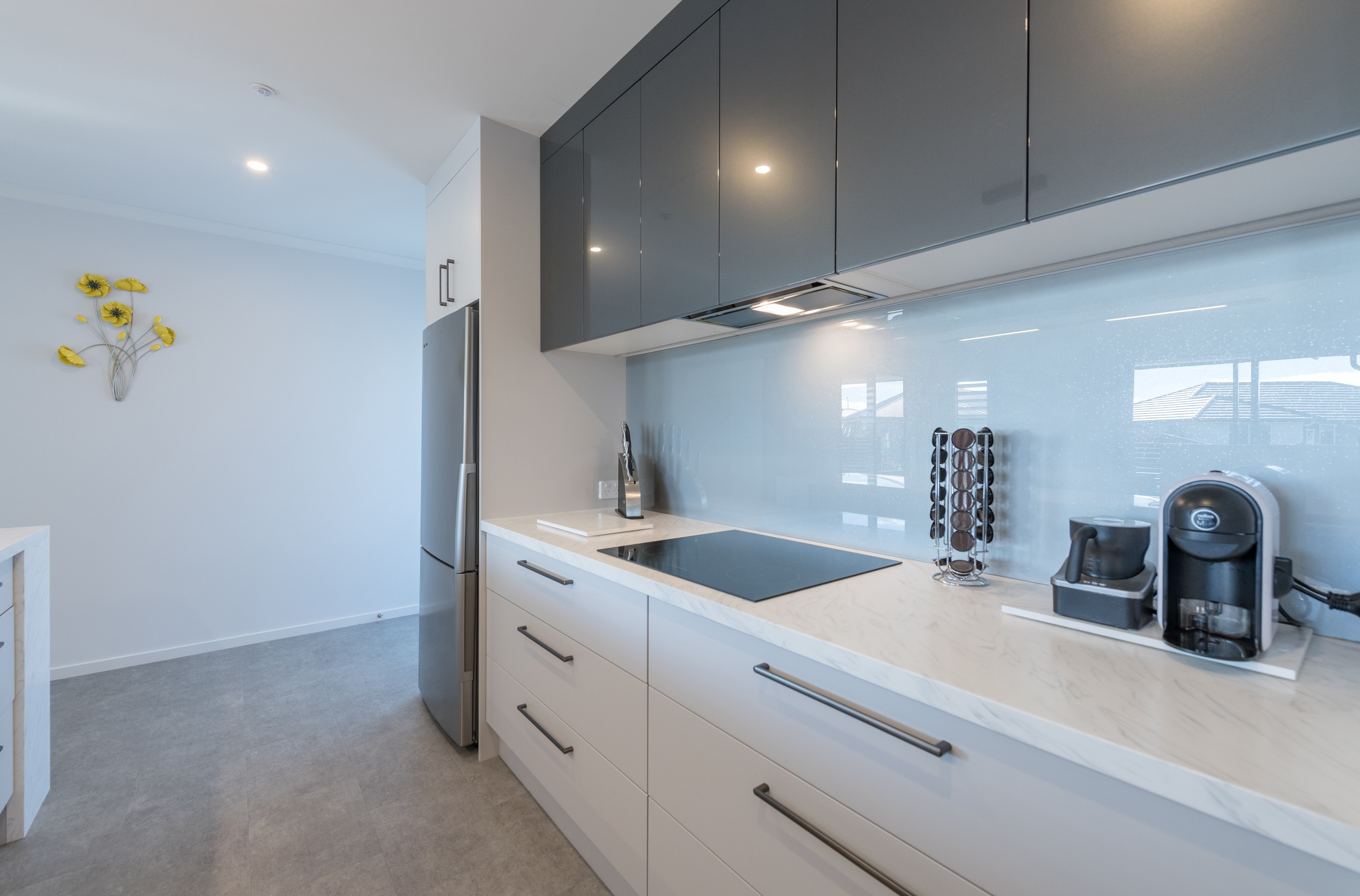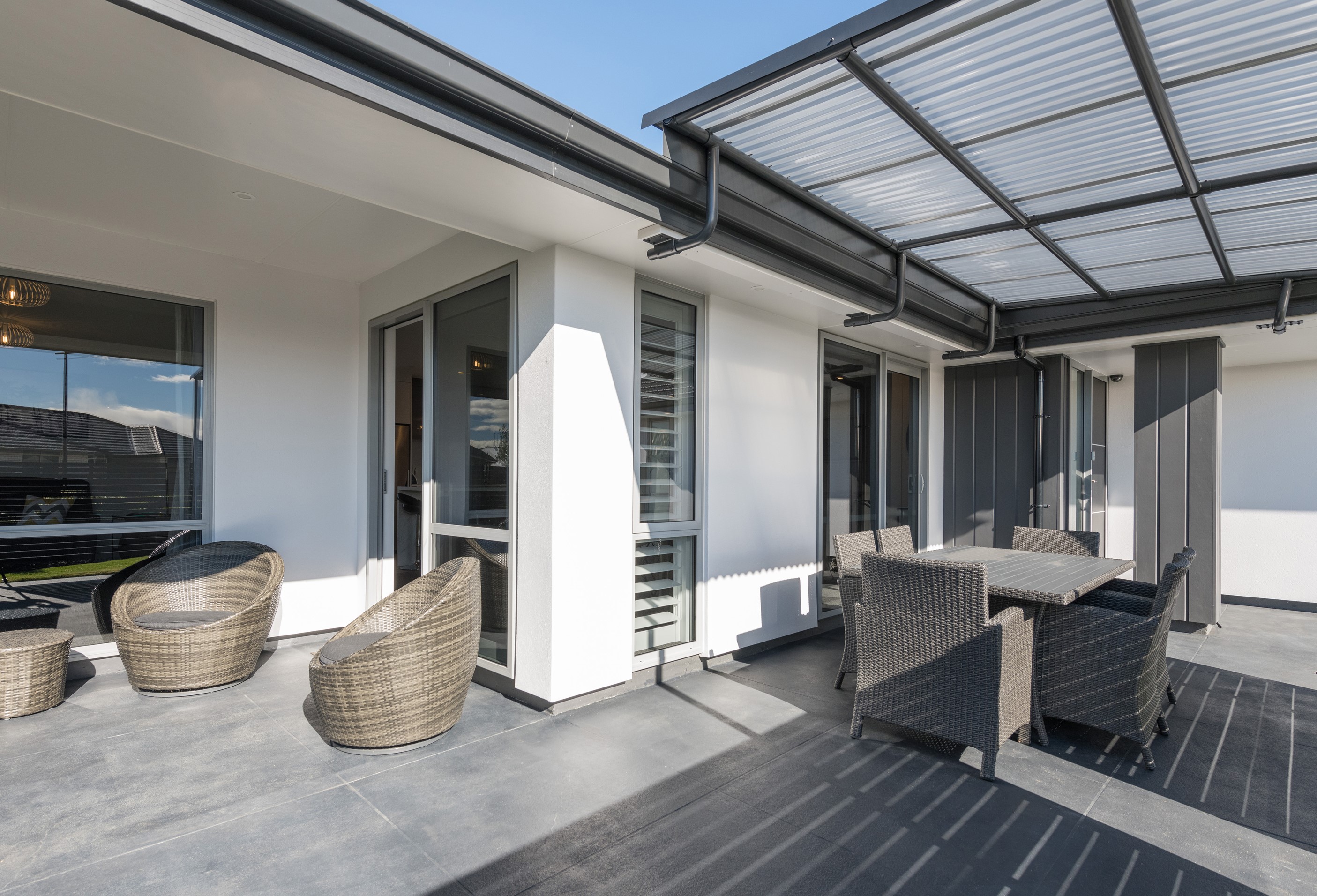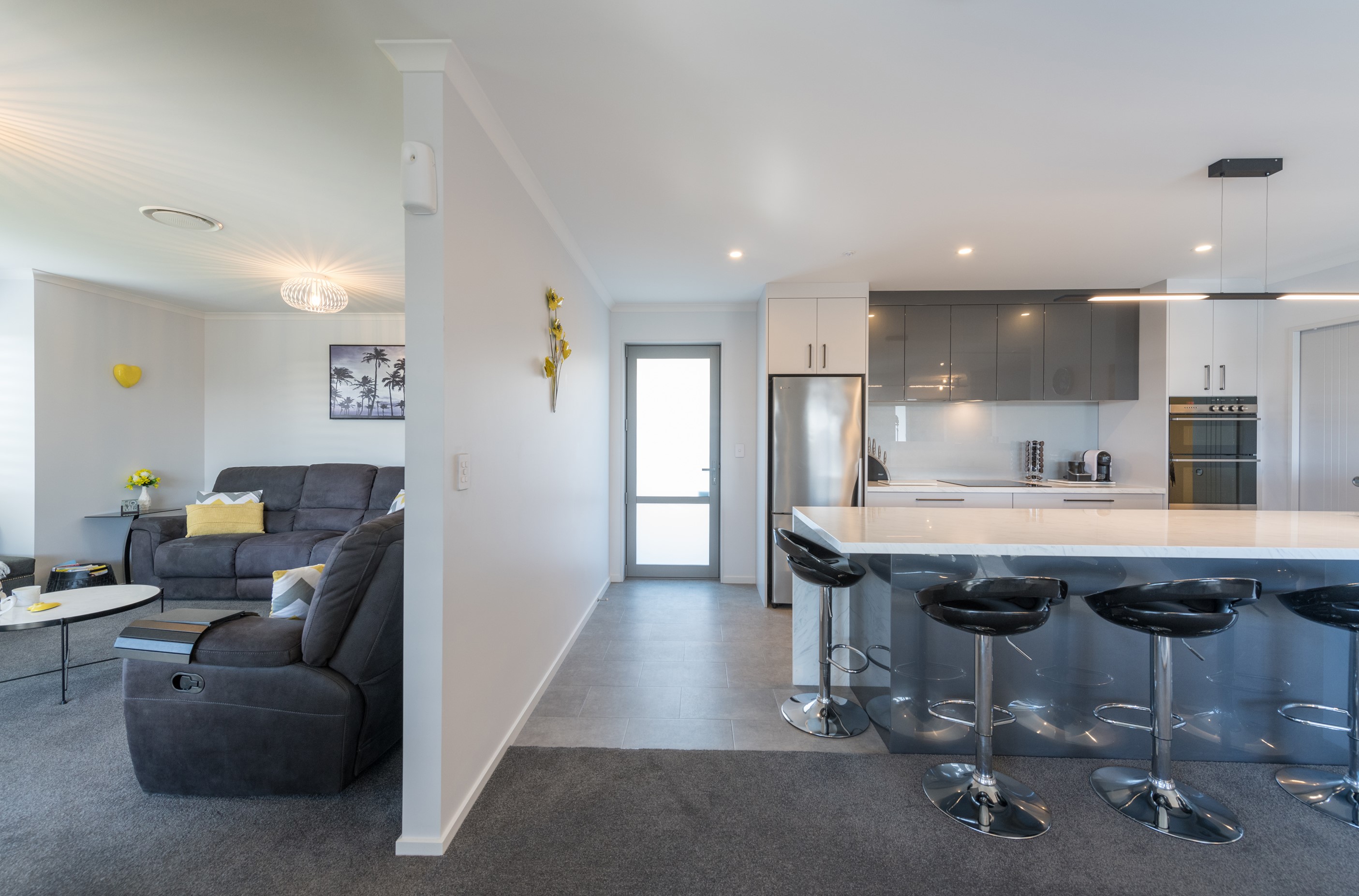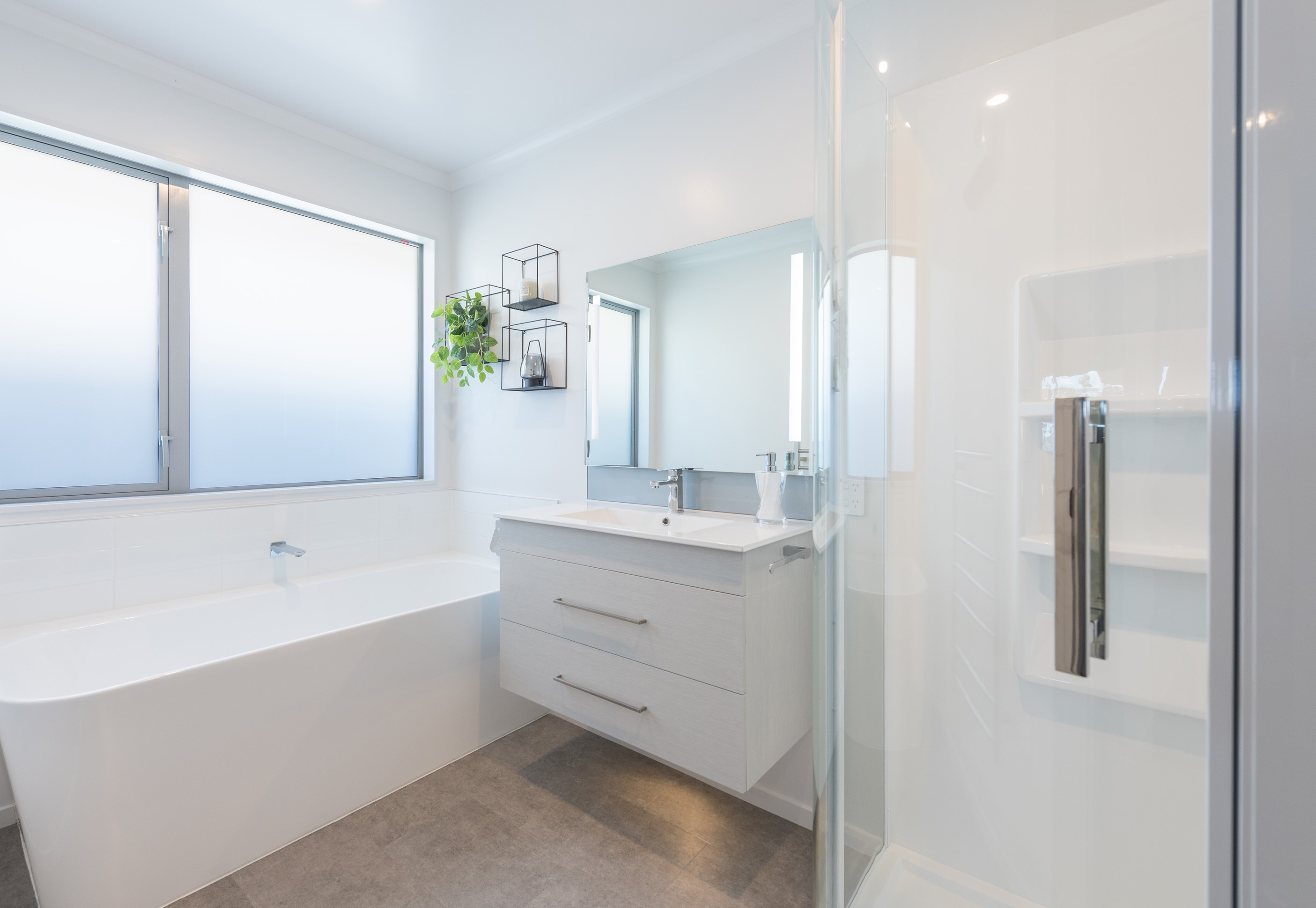 Designed for a retired couple, this single-level three-bedroom, two-bathroom home is exactly right for the owners’ lifestyle. It’s warm, sunny and open-plan. There’s plenty of room for vehicles, and even a space for a boat or campervan. And the maintenance? It’s a cinch, with powder-coated aluminium joinery, roof tiles and Linea weatherboards and plaster cladding on the exterior. The layout is ideal too. In the 186sqm floorplan you’ll find flowing living, dining and lounge spaces plus two sunny, covered alfresco areas, so sipping coffee outside is always an option. Screens provide privacy and shelter. The glossy kitchen is at the centre of everything and has a pantry and decent-sized breakfast bar – always a good place for visitors to gather or for chatting to the cook. Capturing the sun was also a major consideration in this build. The house is positioned to allow light to flood in and provide natural warmth. The main bedroom is a place of true relaxation, with a fresh, tiled ensuite and walk-in wardrobe. This home has plenty of storage options too – in the double garage and linen cupboard. In fact, it has it all.